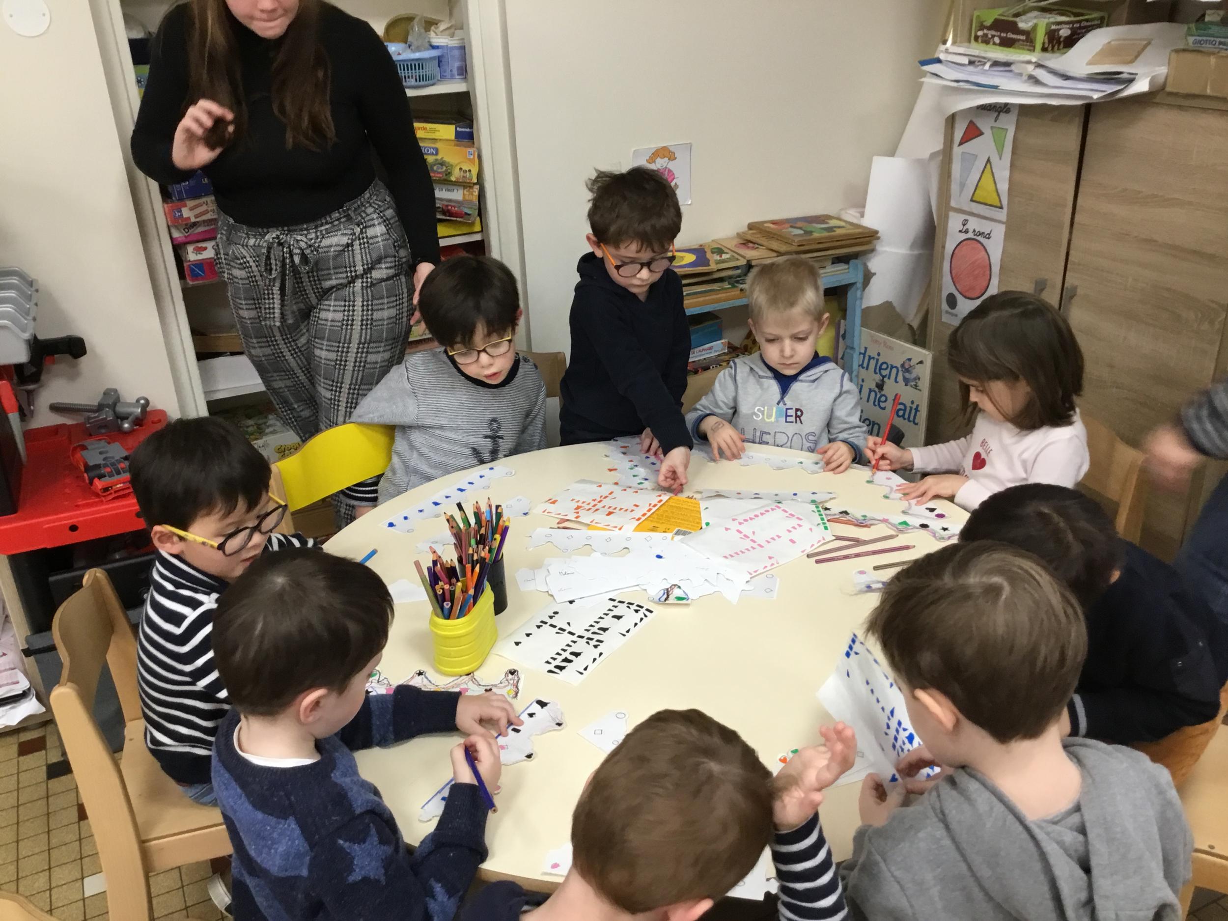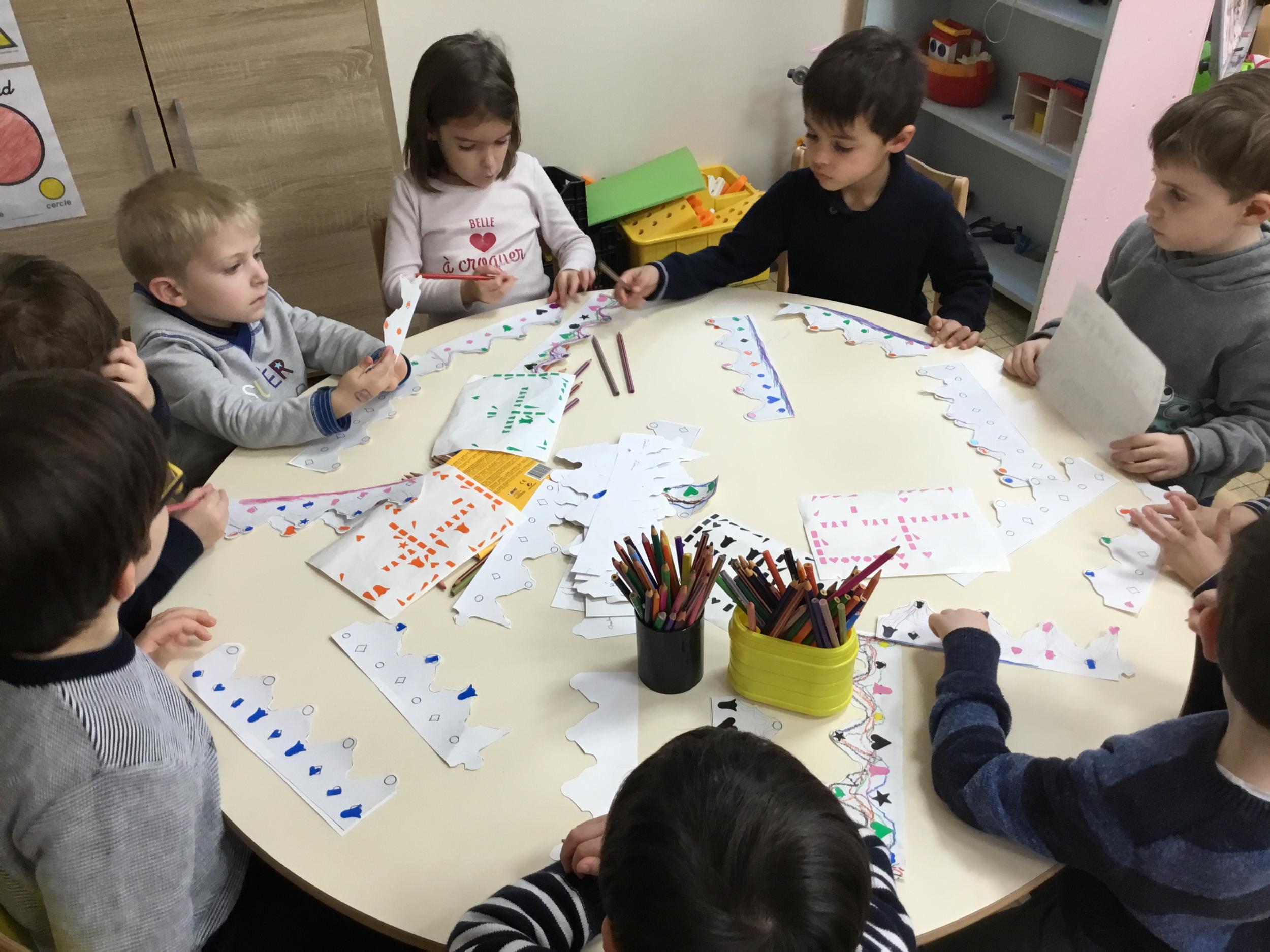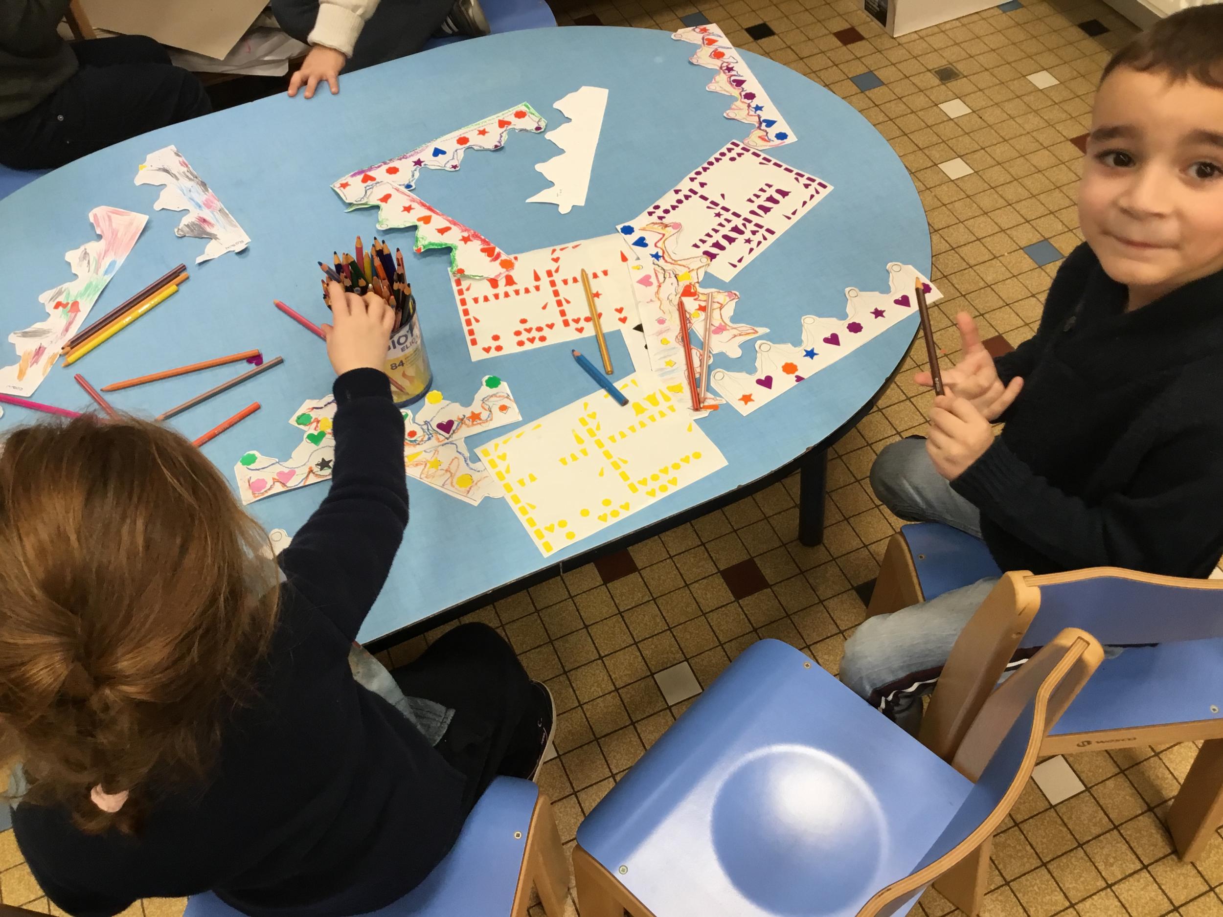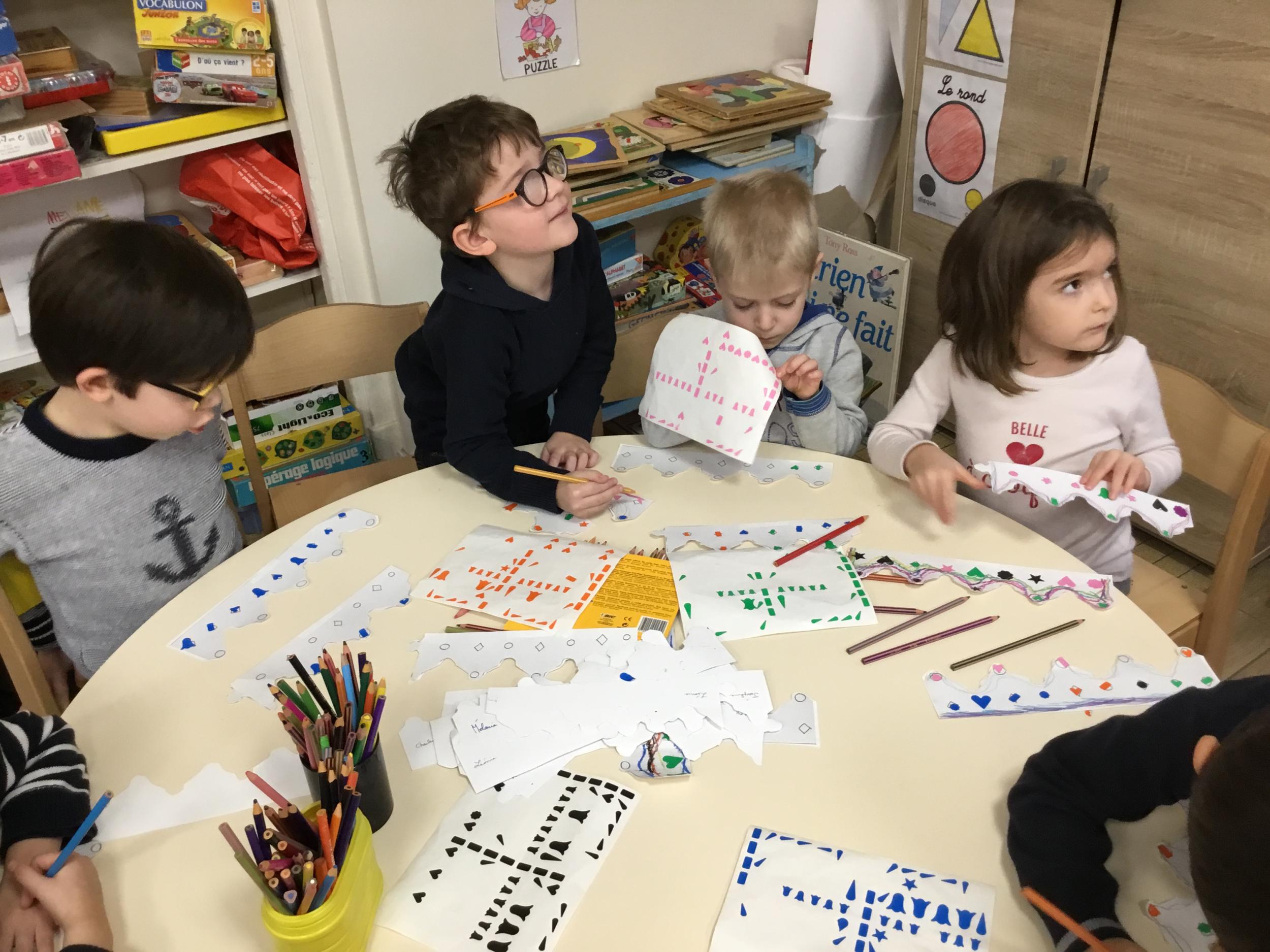 Par l’intermédiaire de la fabrication de couronnes , les enfants apprennent à suivre un algorithme en collant des gommettes dans le bon ordre ou en dessinant les symboles dans l’ordre indiqué par l’algorithme.