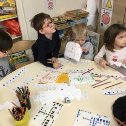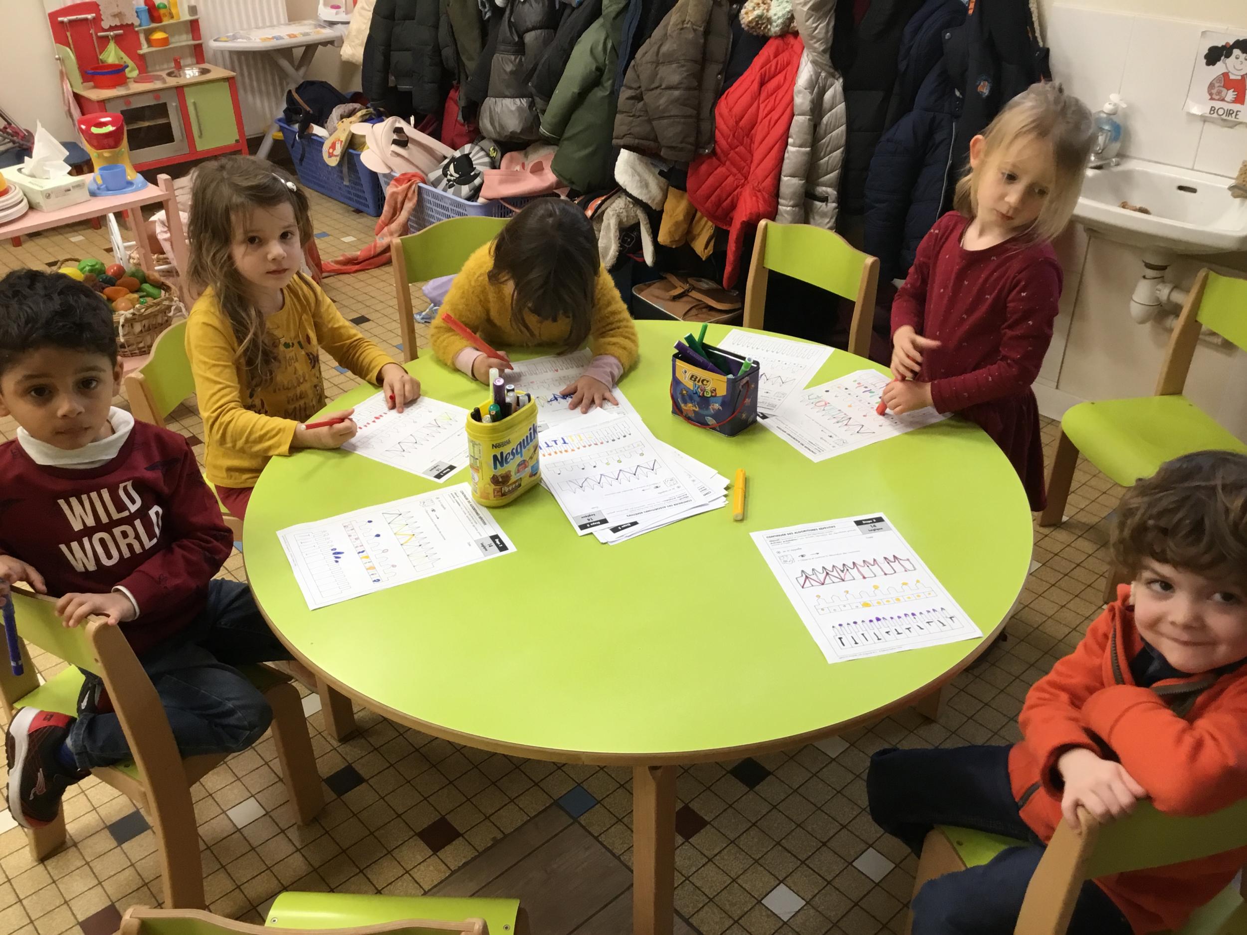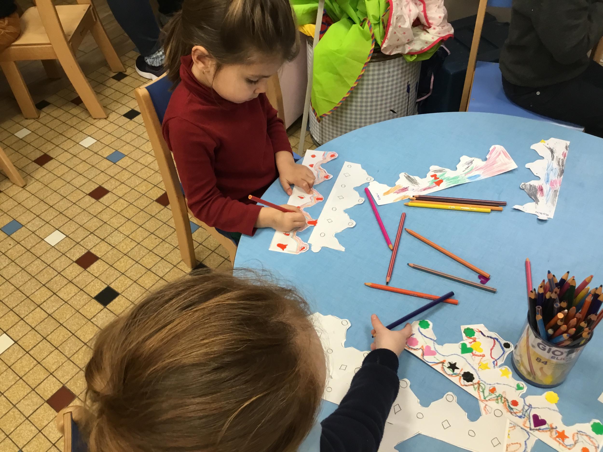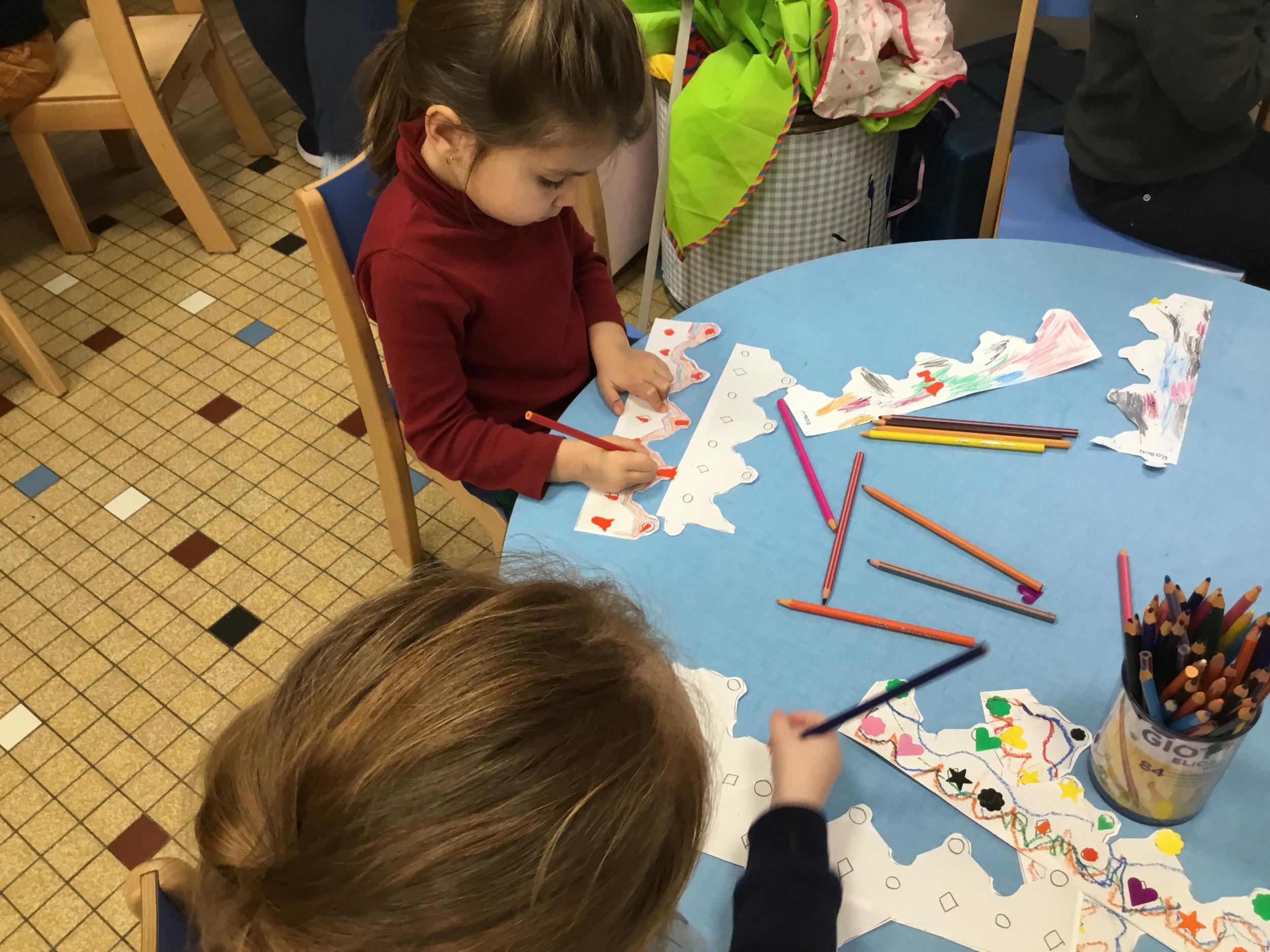 Par l’intermédiaire de la fabrication de couronnes , les enfants apprennent à suivre un algorithme en collant des gommettes dans le bon ordre ou en dessinant les symboles dans l’ordre indiqué par l’algorithme.