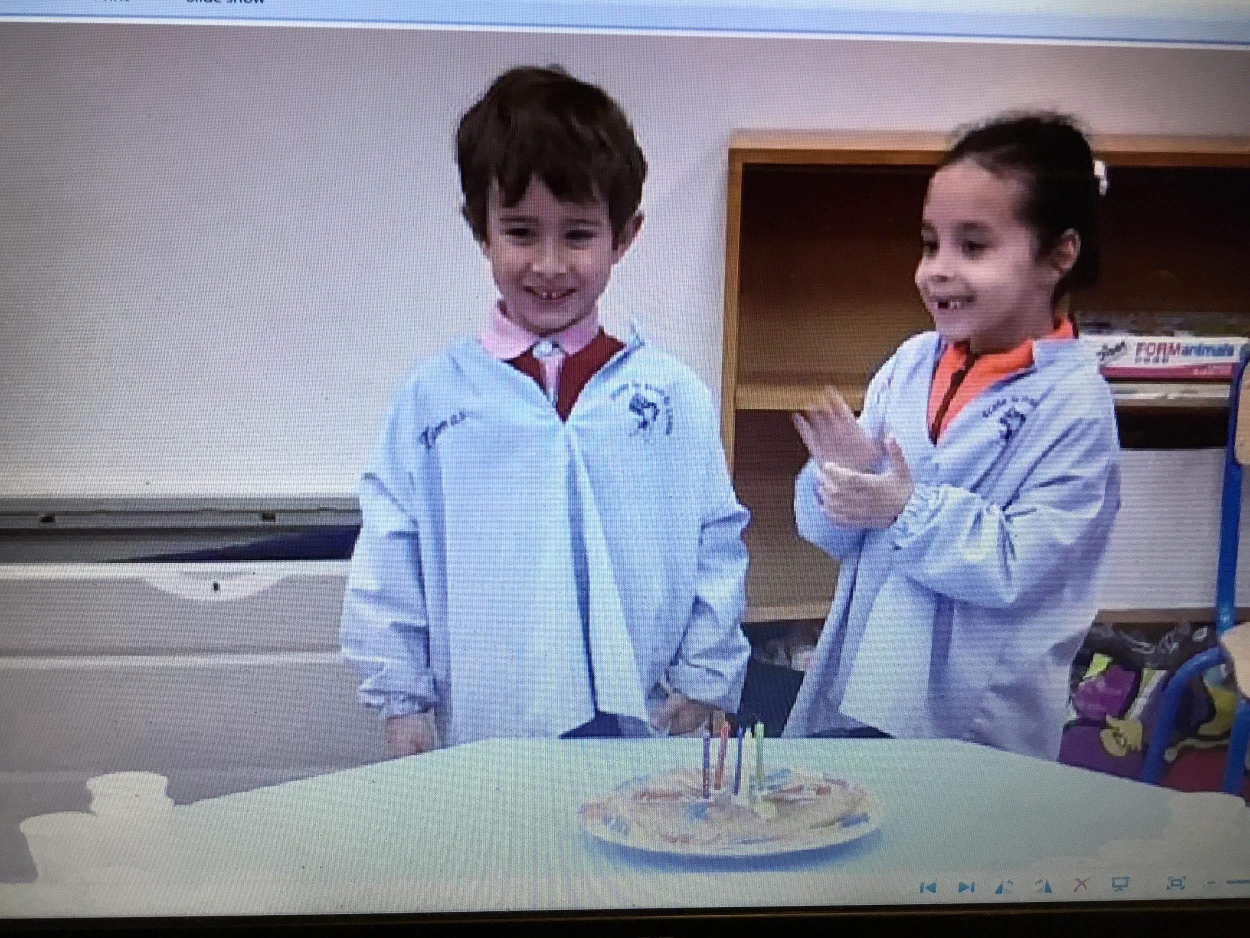 Petite et moyenne section 02/05/2021 Jeudi dernier, nous avons fait des gâteaux d’anniversaire et nous avons fêté les anniversaires de Jules P , Gabrielle et Thomas Vendredi .Nous nous sommes bien régalés !