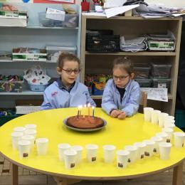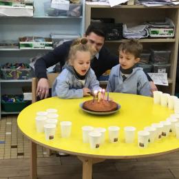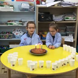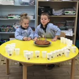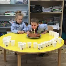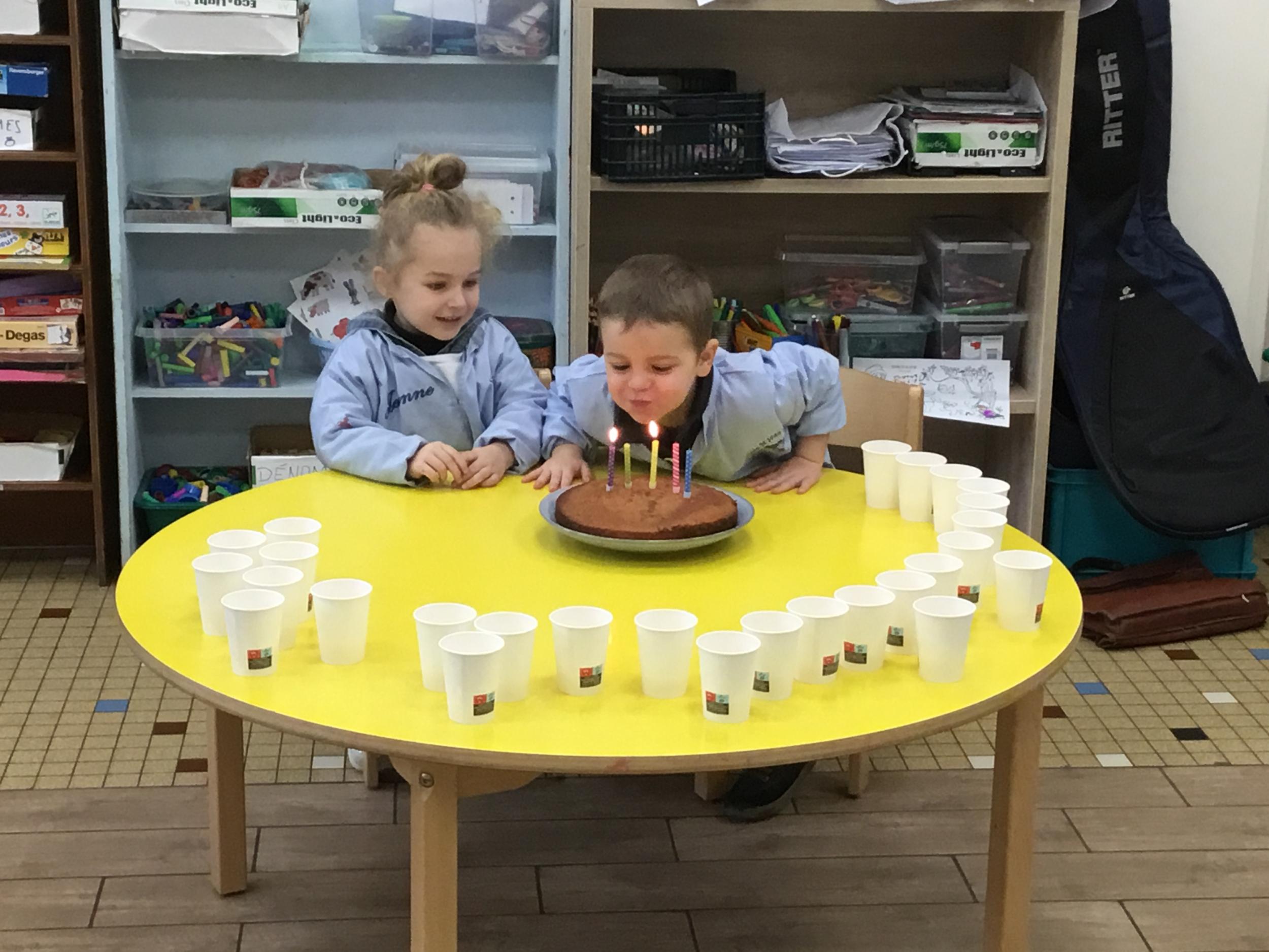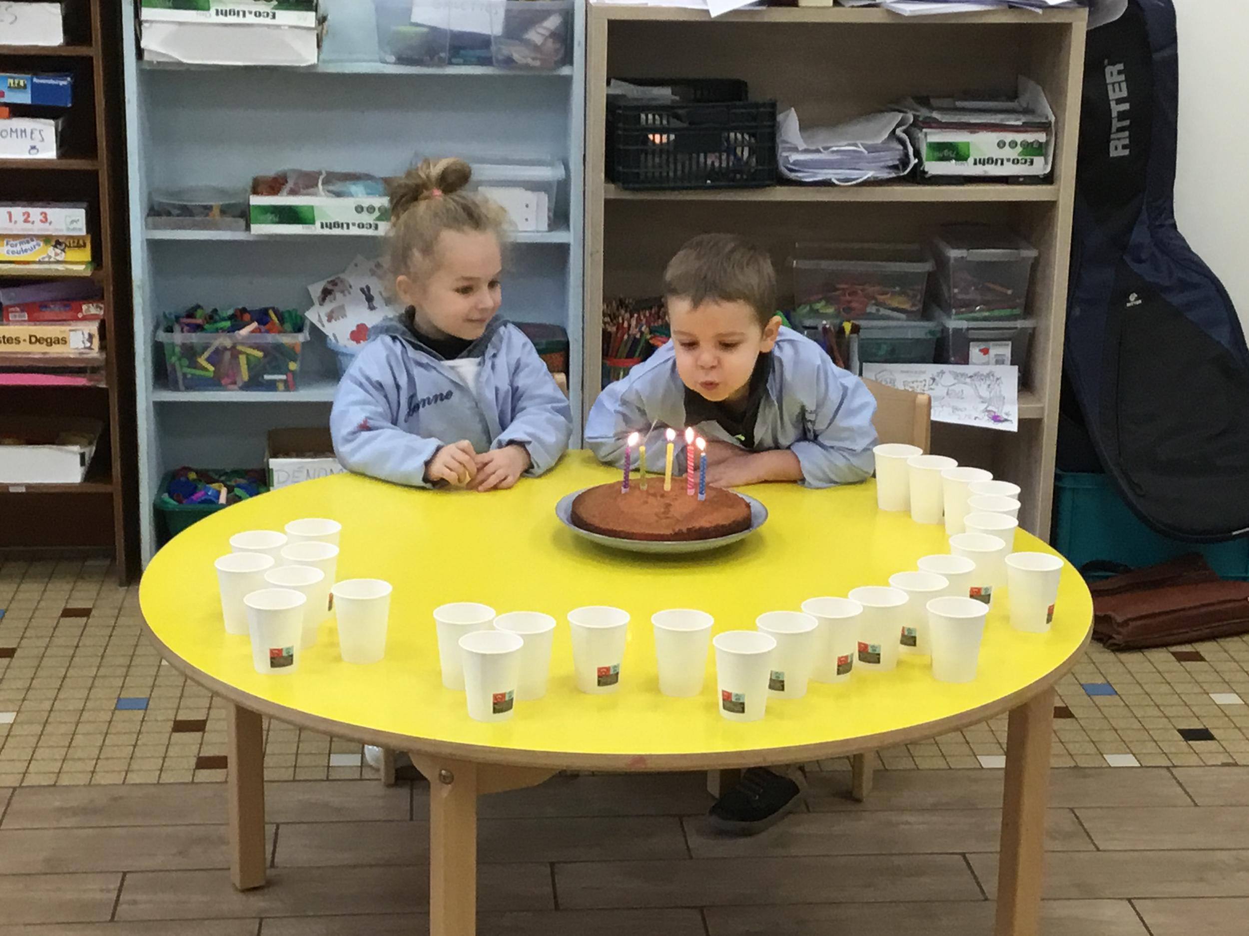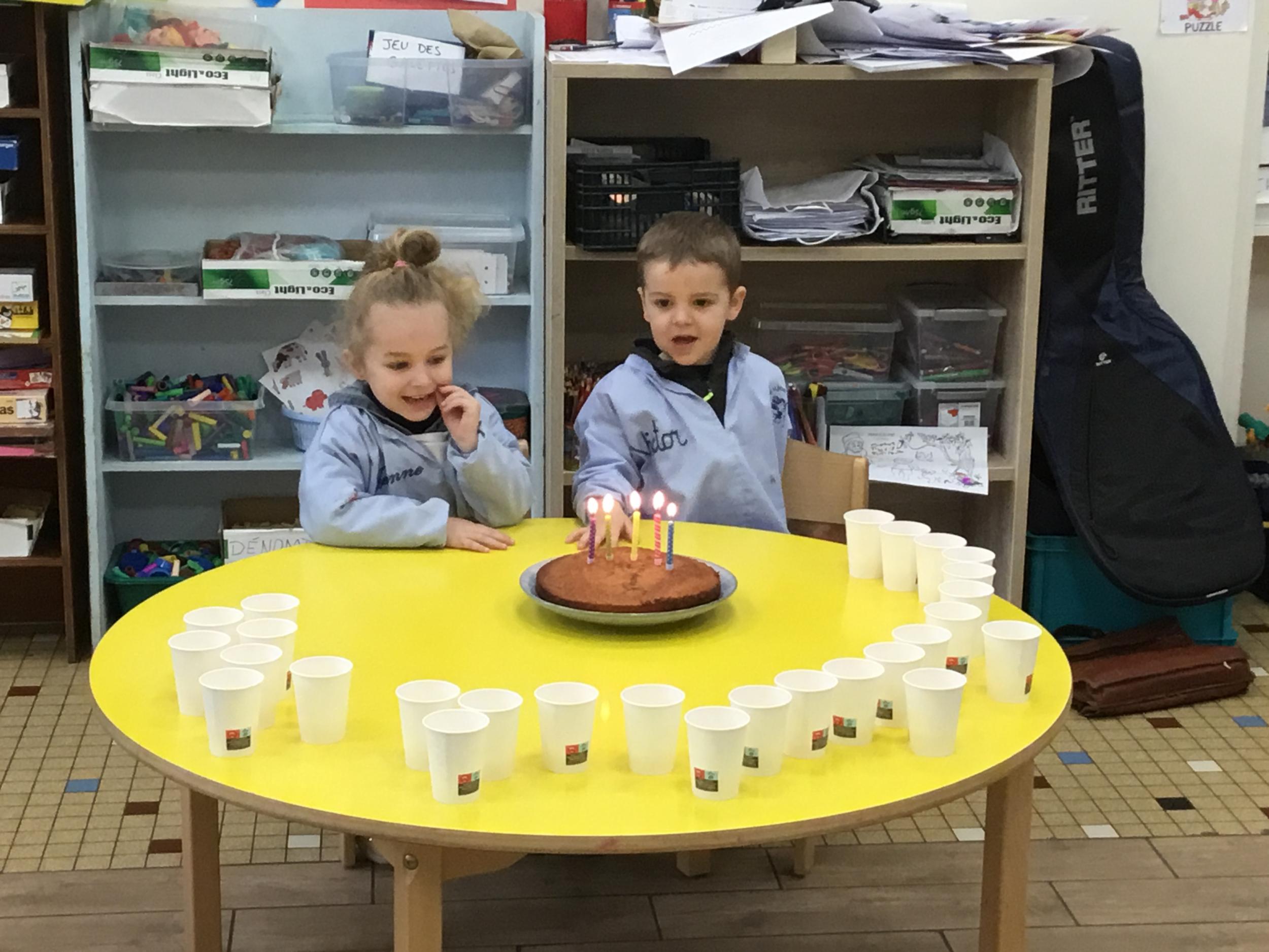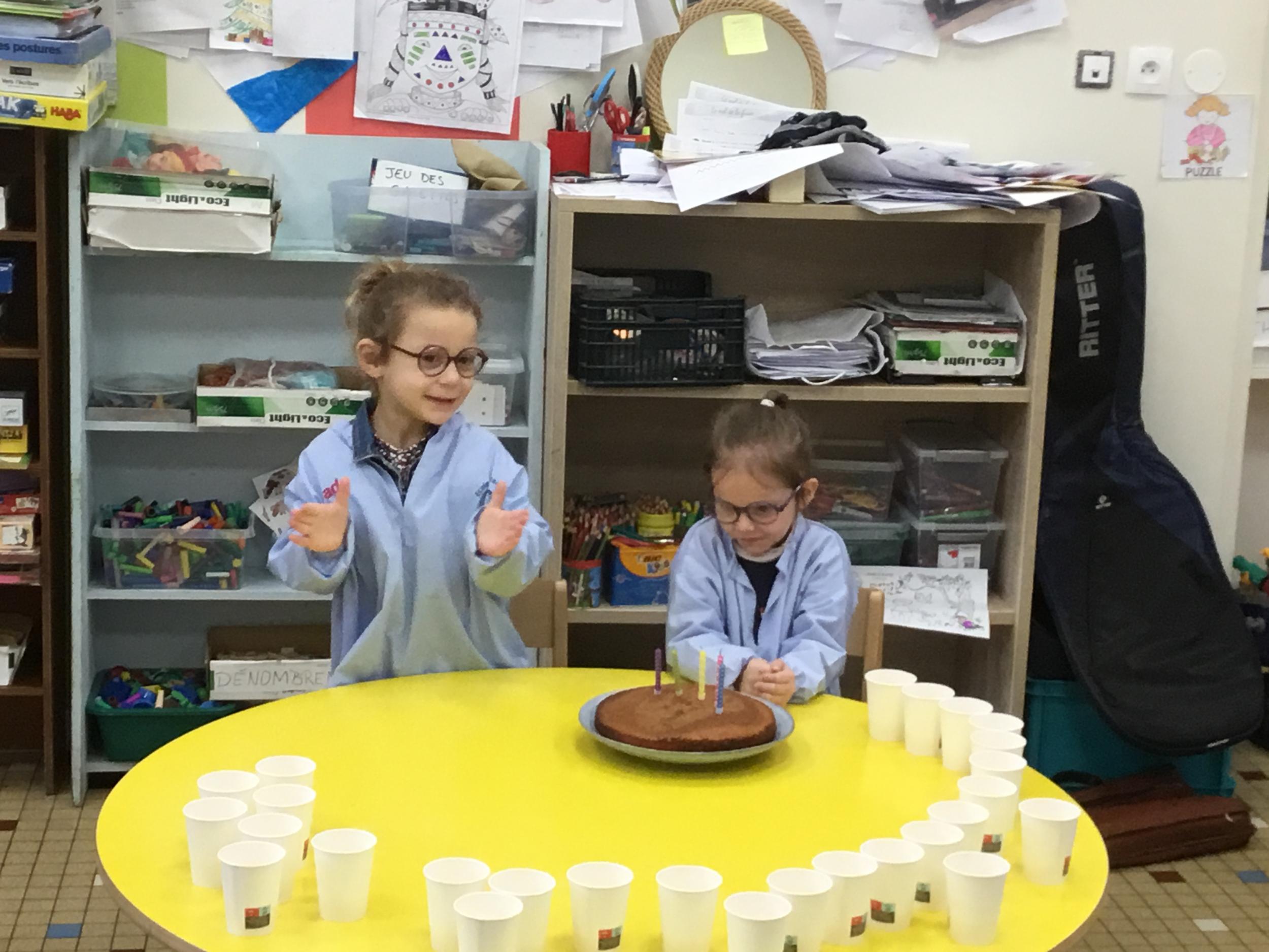 Petite et moyenne section 07/03/2024 Nous avons fêté les anniversaires la semaine dernière, nous avons mangé les gâteaux que nous avions confectionnés la veille.Nous nous sommes régalés.