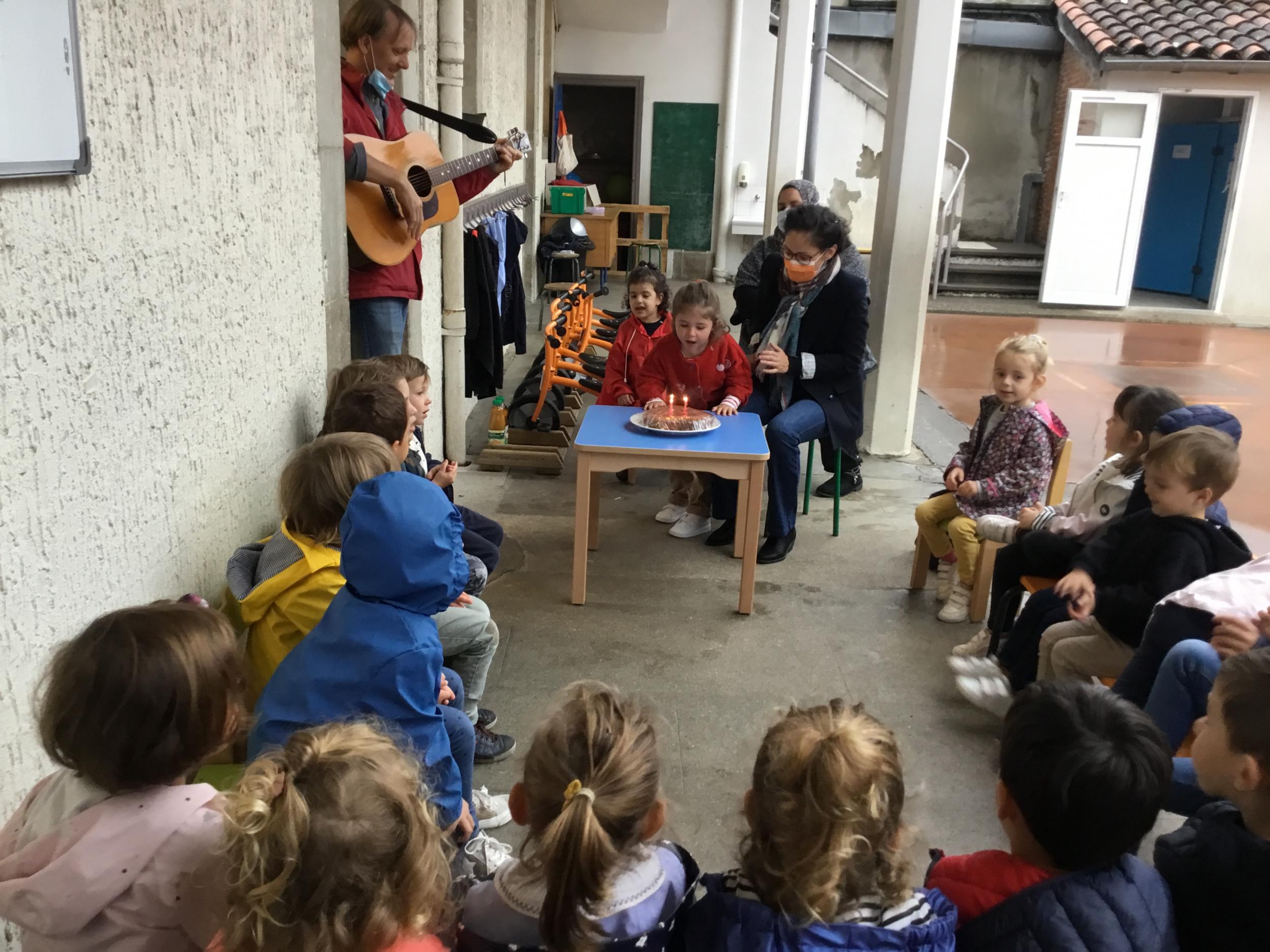 Le Mardi 21 Septembre , nous avons fêté les anniversaires de Mathilde et Joude. Nous avons chanté aux mamans la chanson des trois petits moustiques et la chanson de la rentrée des classes. Nous avons mangé les gâteaux confectionnés la veille.Nous nous sommes régalés!
