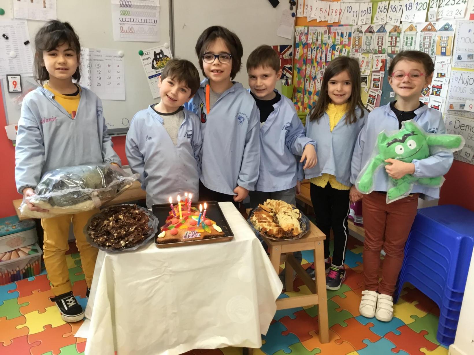 Grande section 07/05/2021 En mars, nous avons pu fêter les 6 ans des premiers élèves les plus âgés! Bon anniversaire!