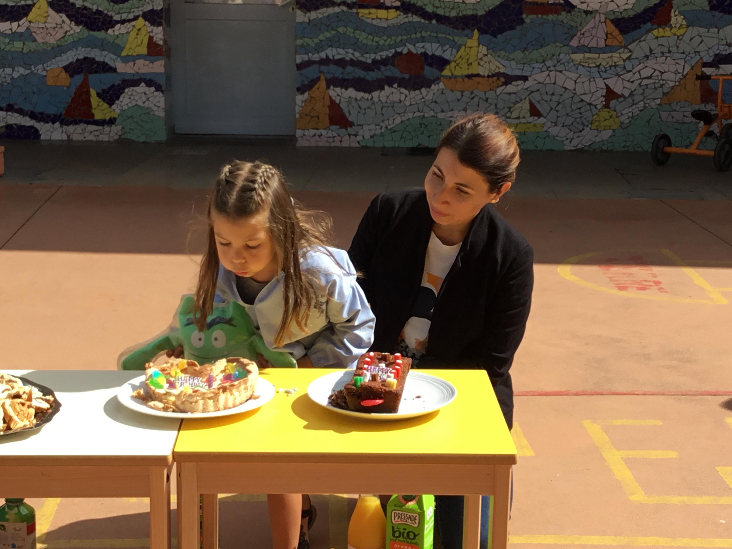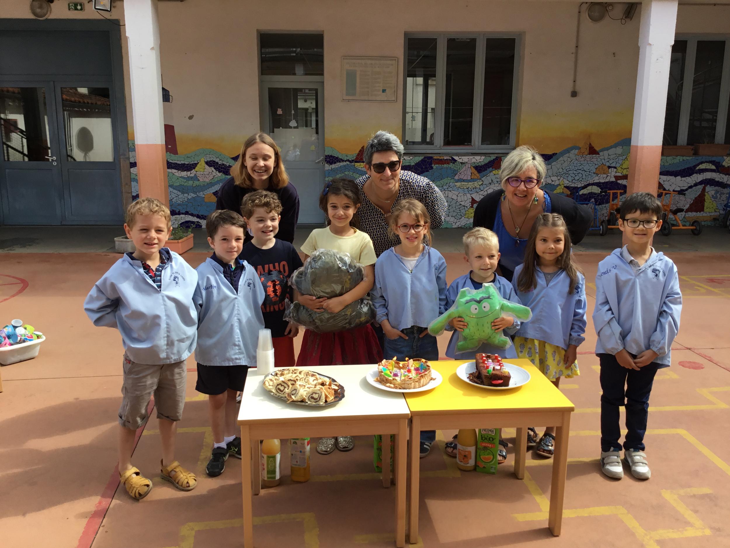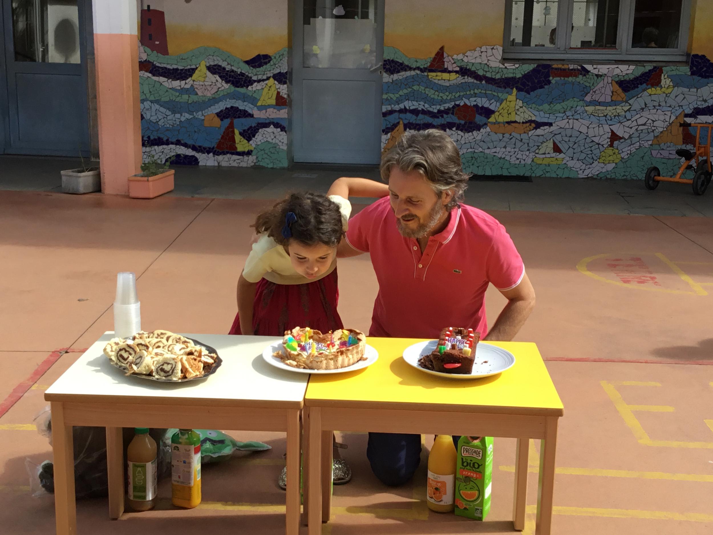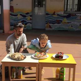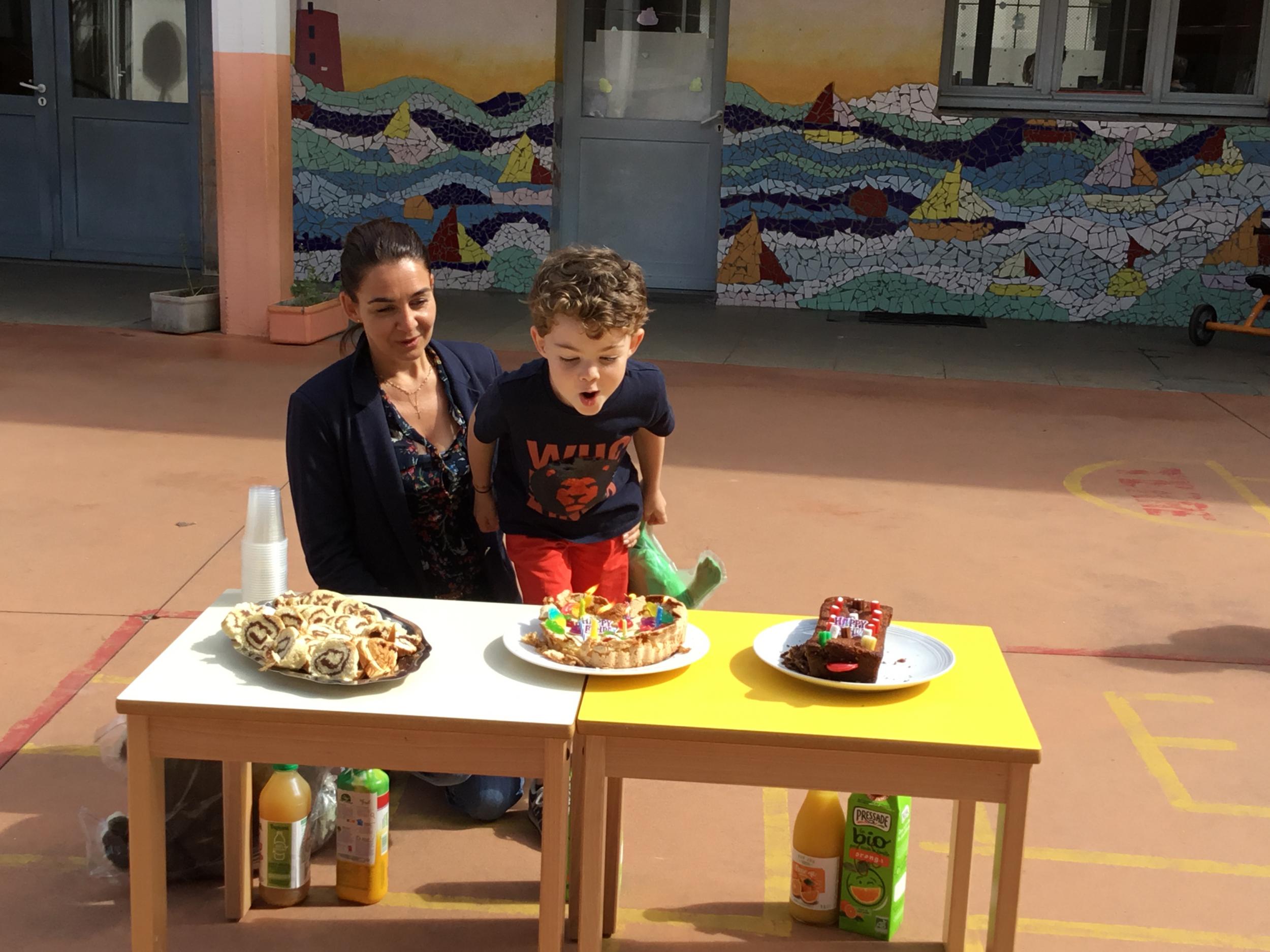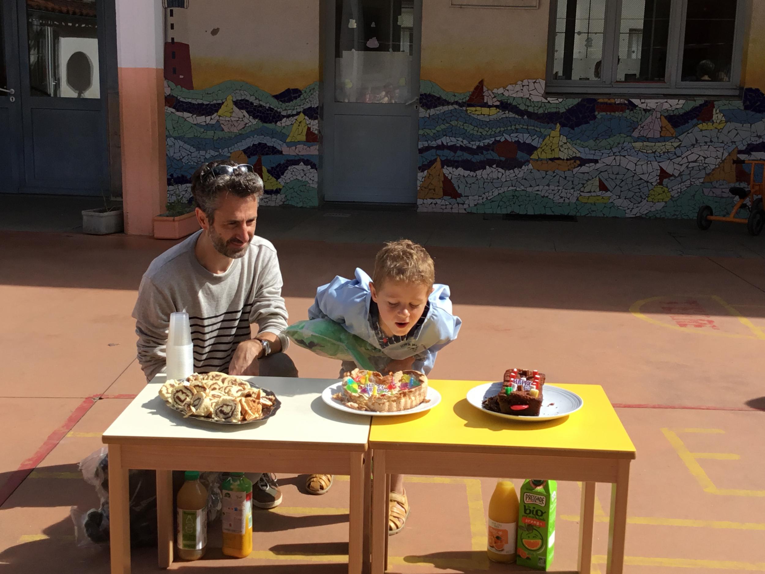 Profitant du beau temps et de la cour libre en fin de matinée, nous avons pu fêter les anniversaires des enfants nés entre mars et juillet ! (et des adultes!) et inviter leurs parents pour ce moment chaleureux!