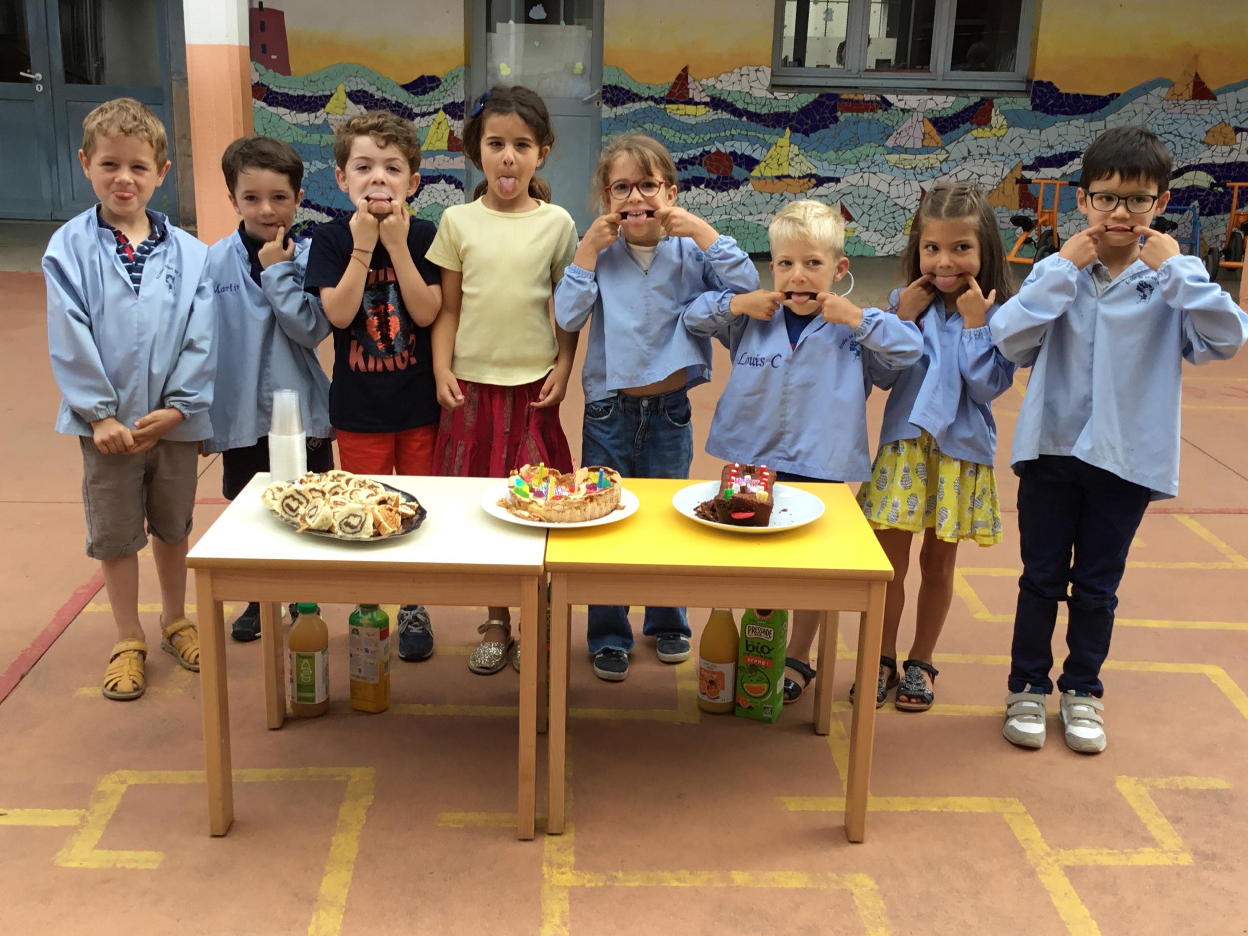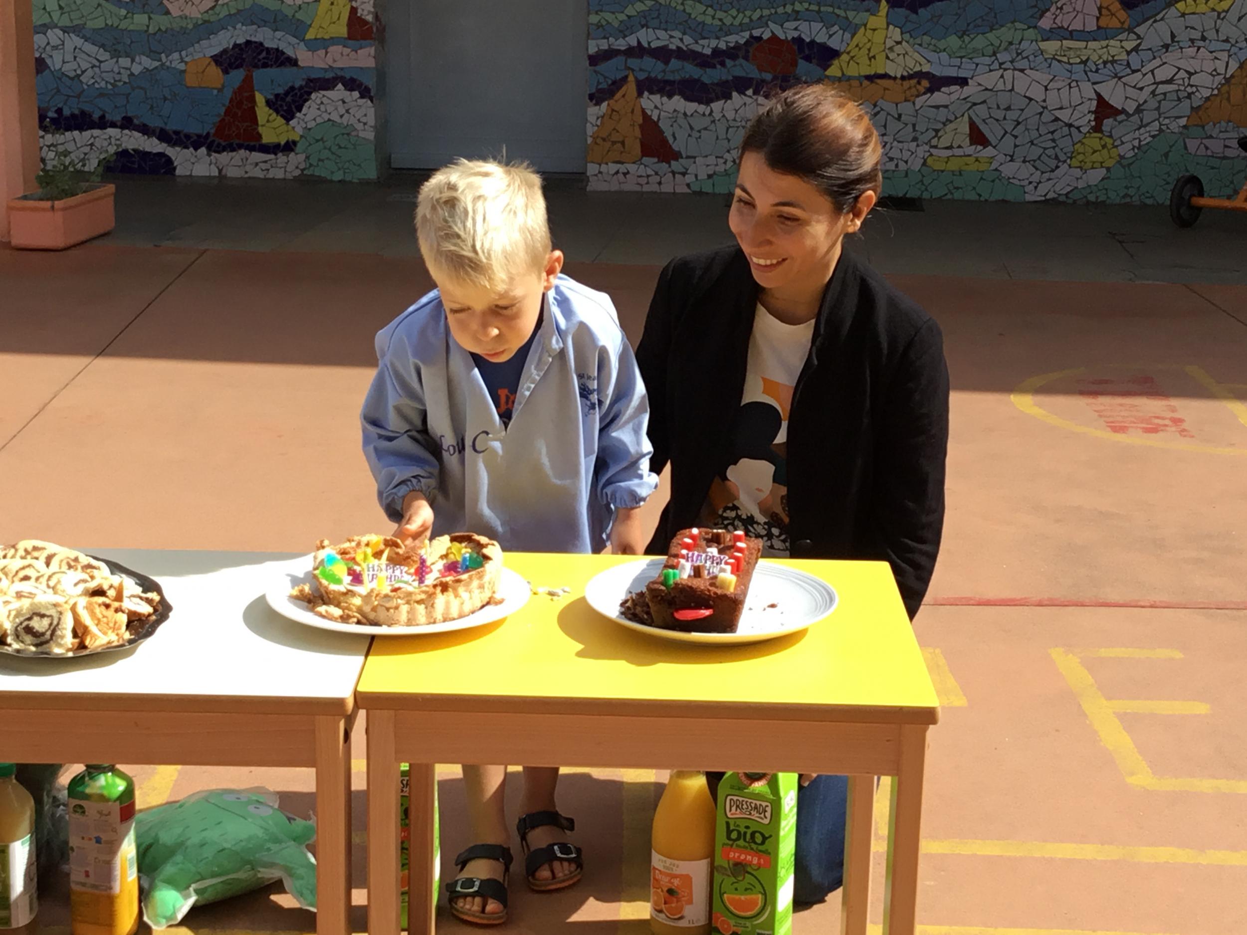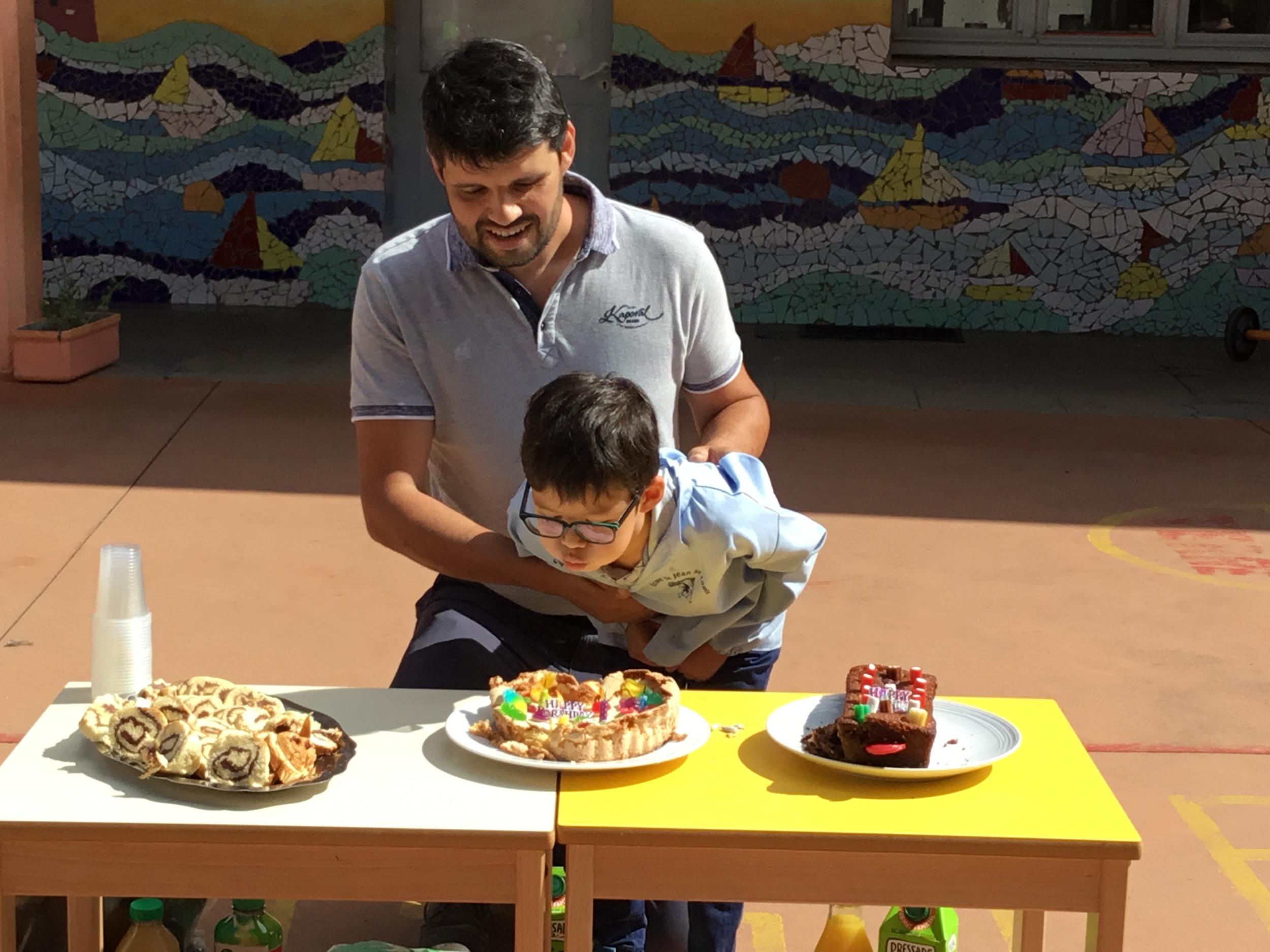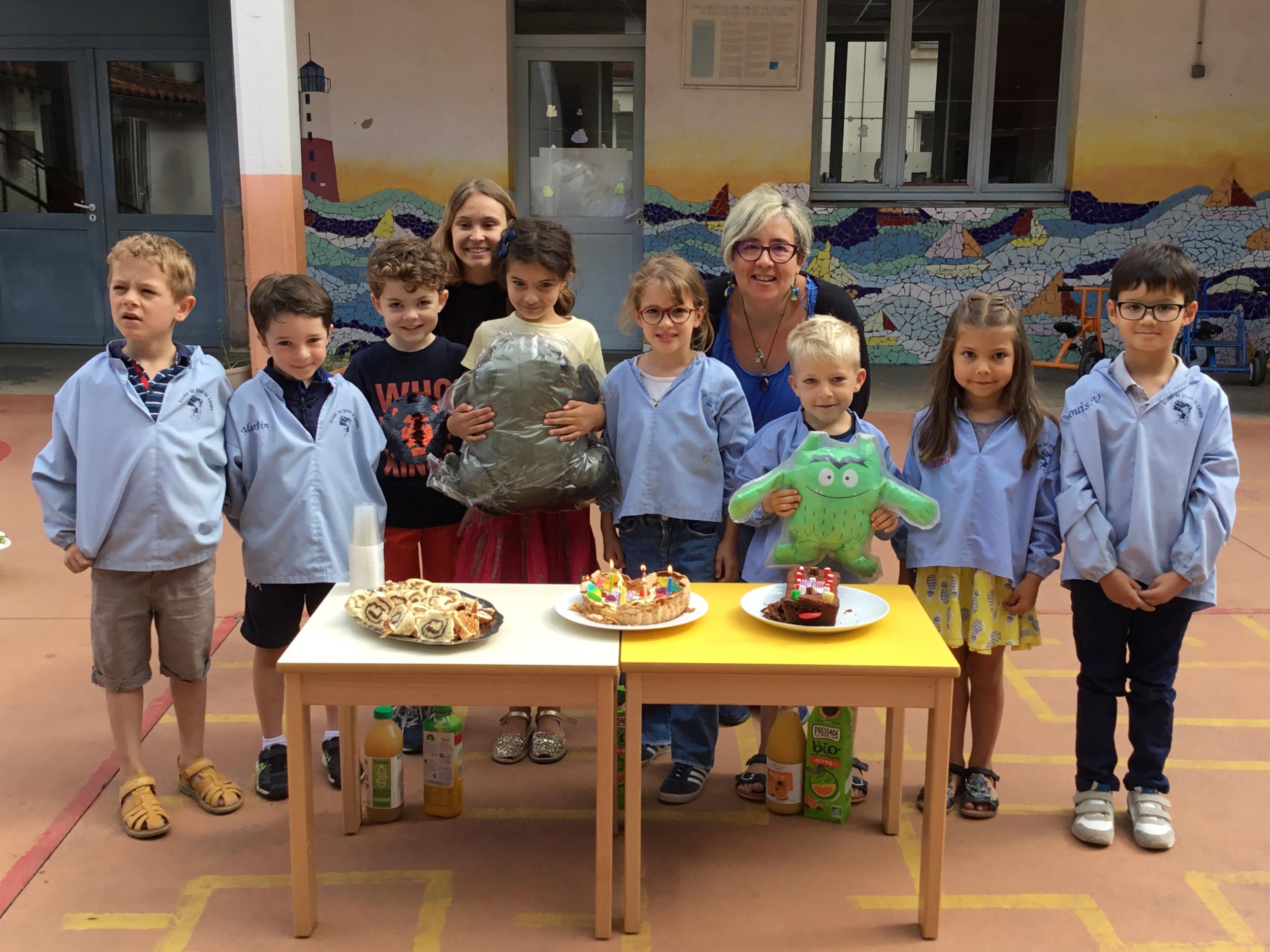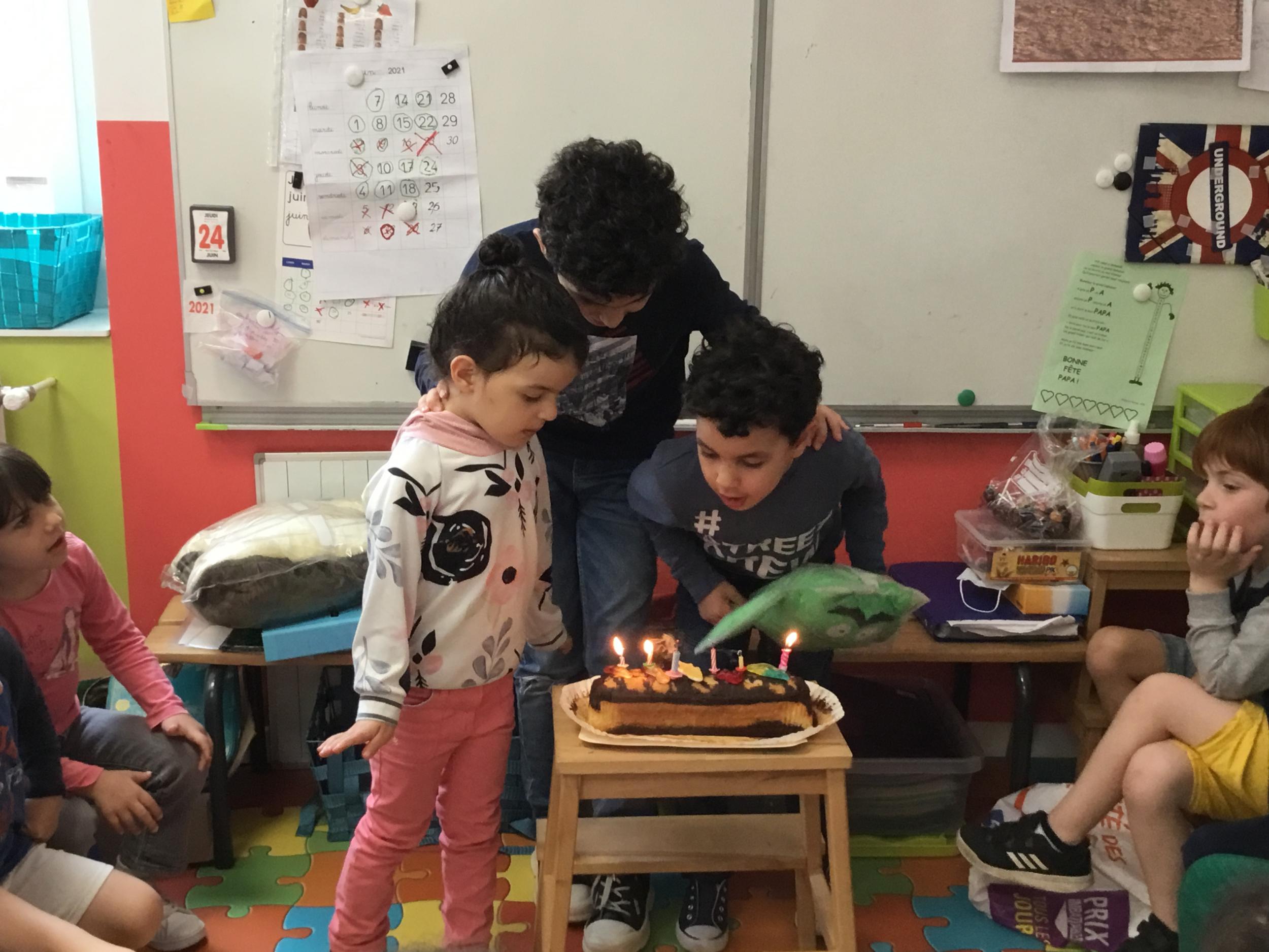 Profitant du beau temps et de la cour libre en fin de matinée, nous avons pu fêter les anniversaires des enfants nés entre mars et juillet ! (et des adultes!) et inviter leurs parents pour ce moment chaleureux!