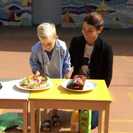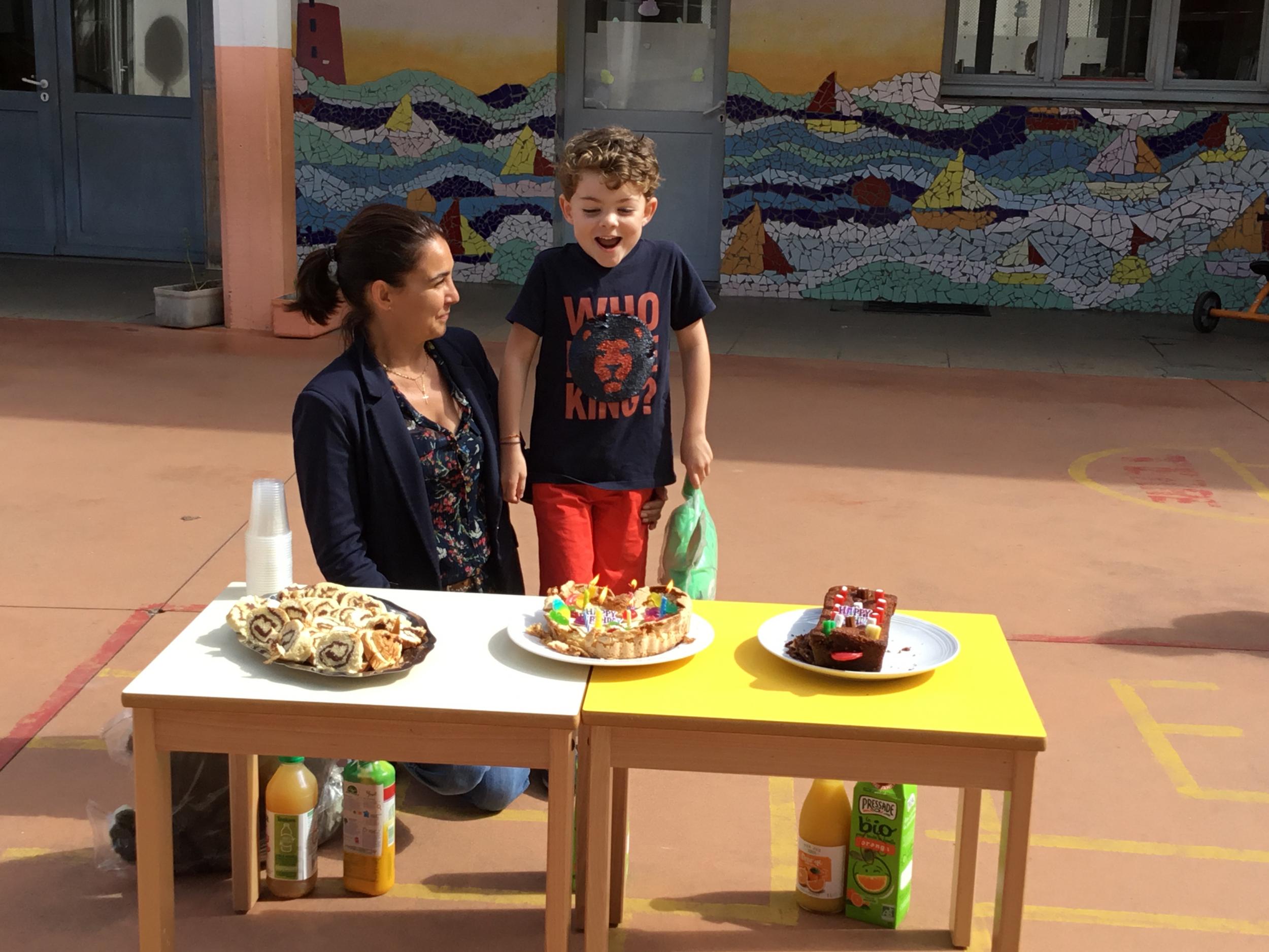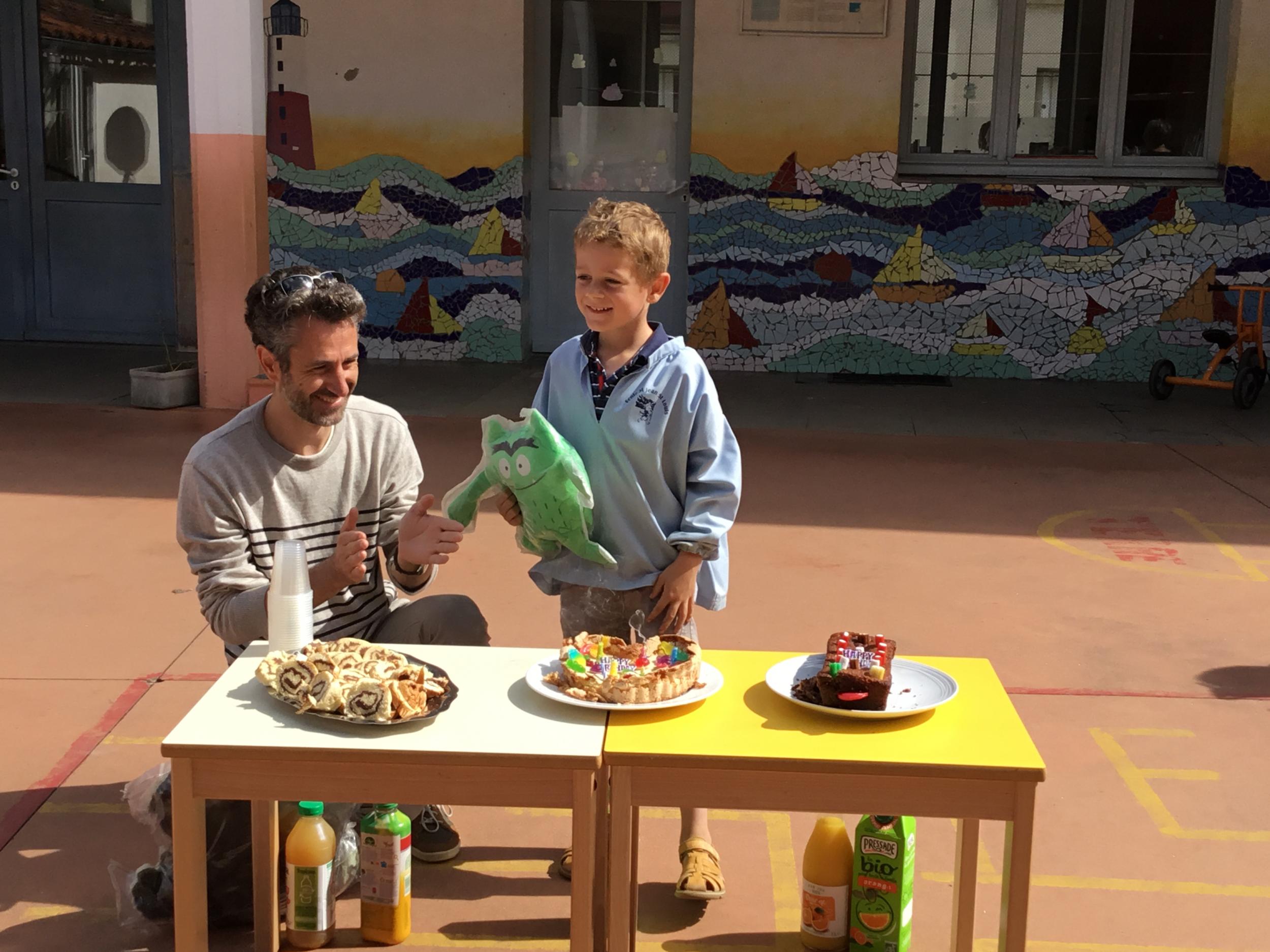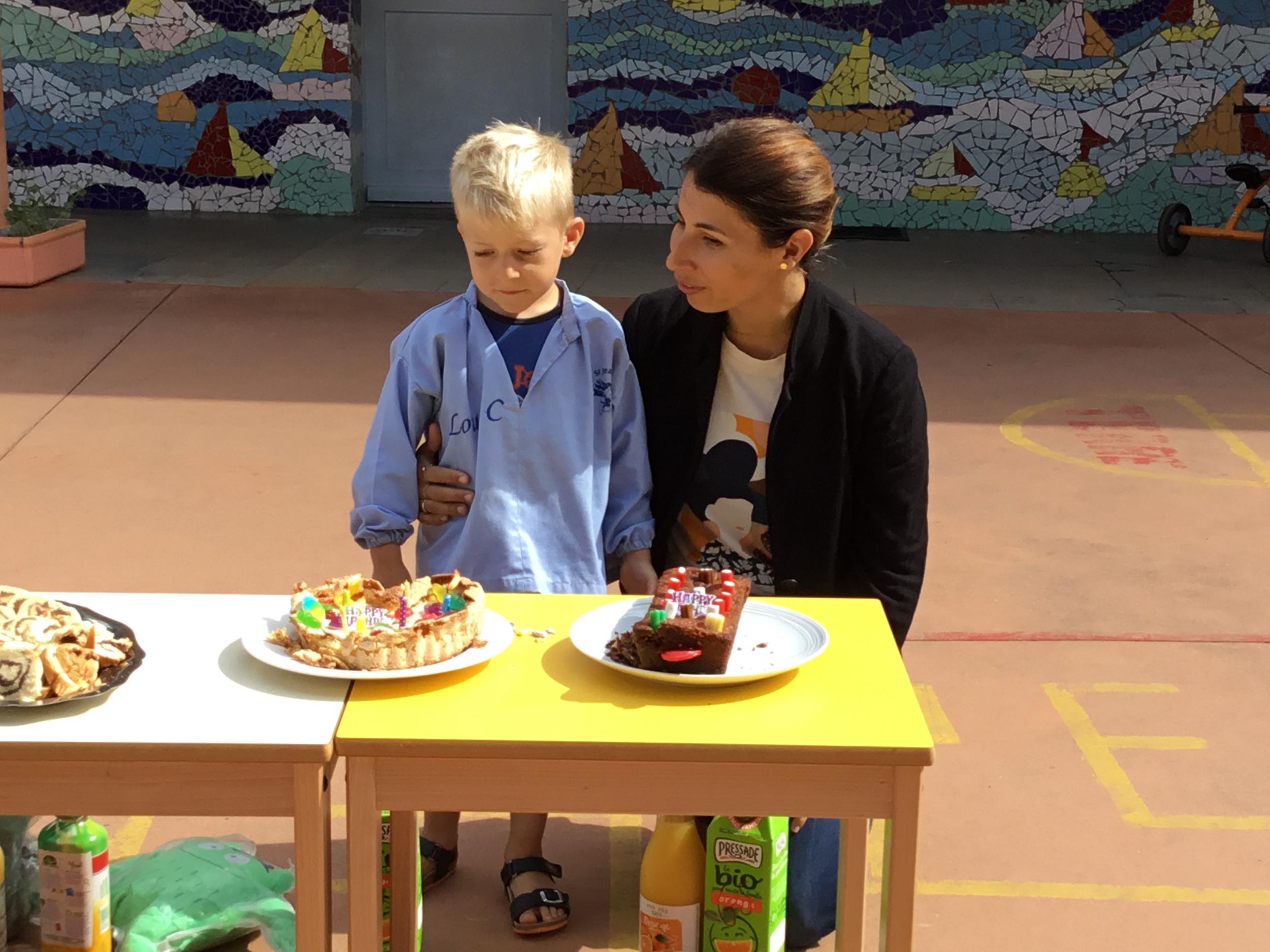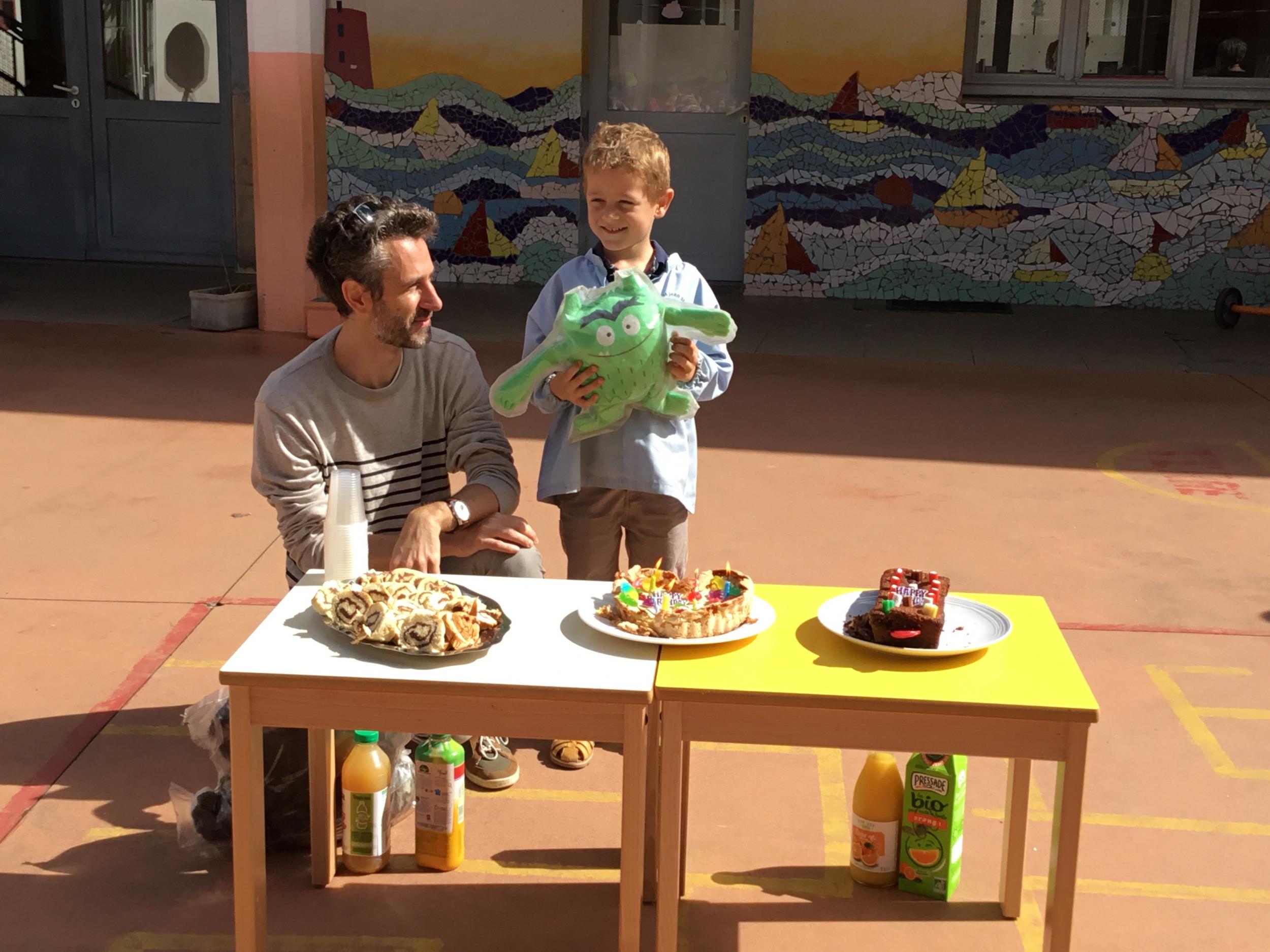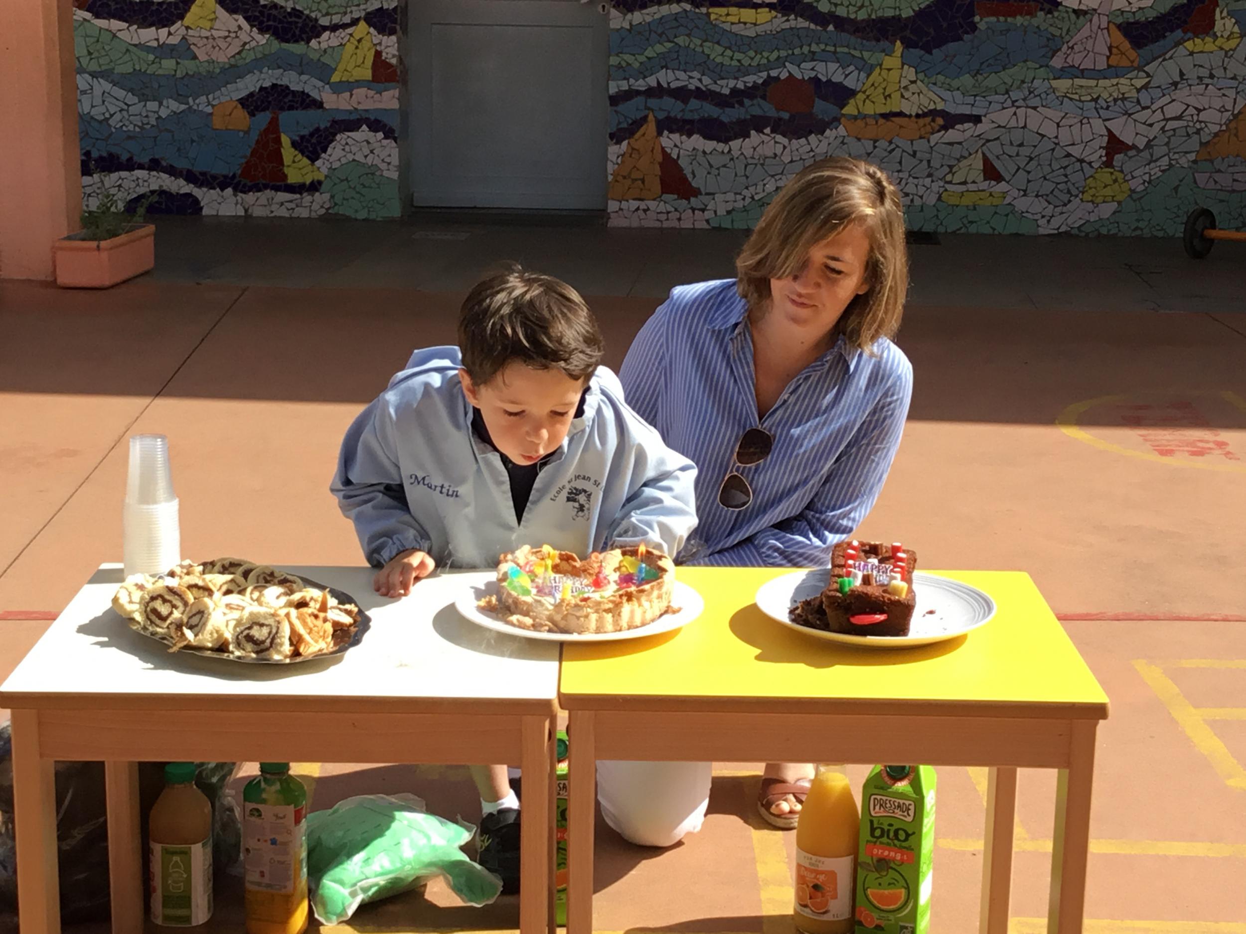 Profitant du beau temps et de la cour libre en fin de matinée, nous avons pu fêter les anniversaires des enfants nés entre mars et juillet ! (et des adultes!) et inviter leurs parents pour ce moment chaleureux!