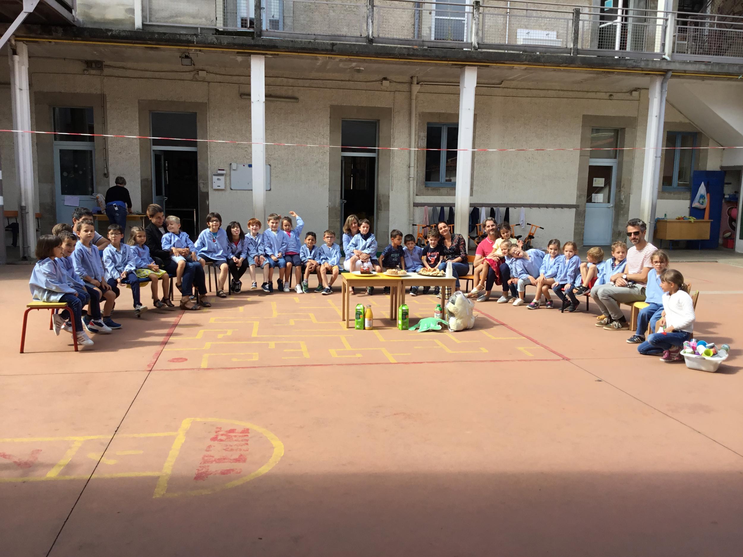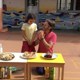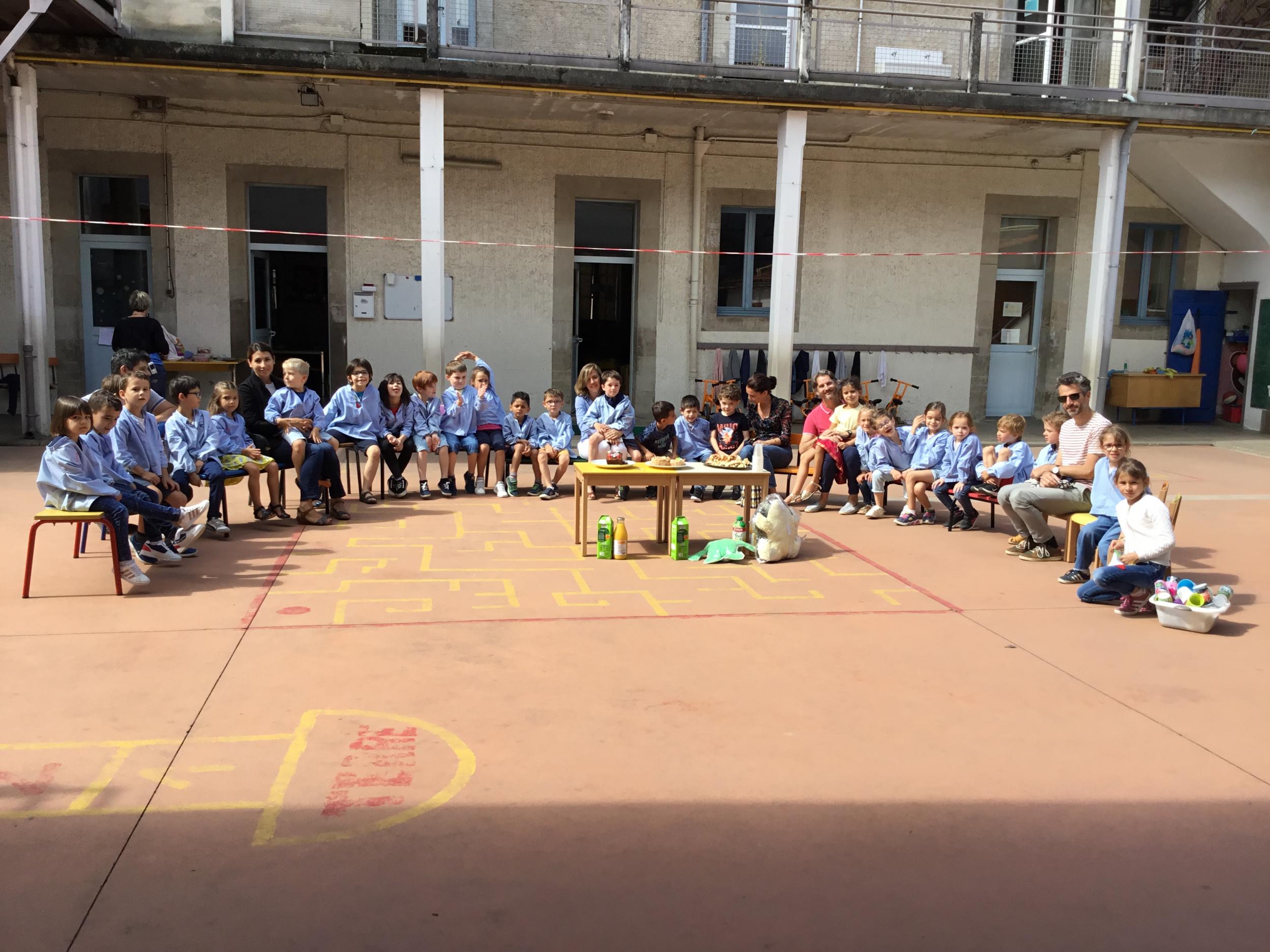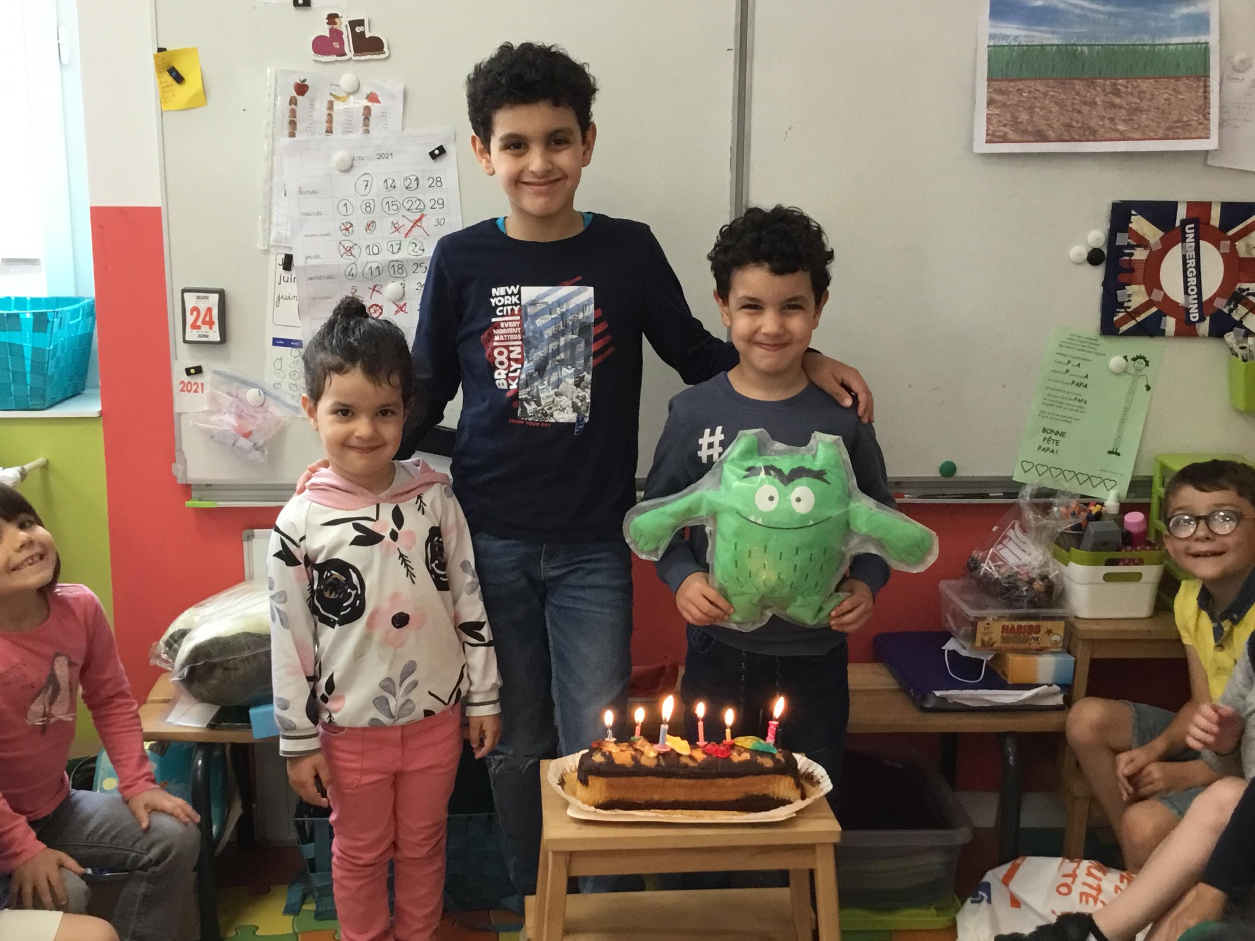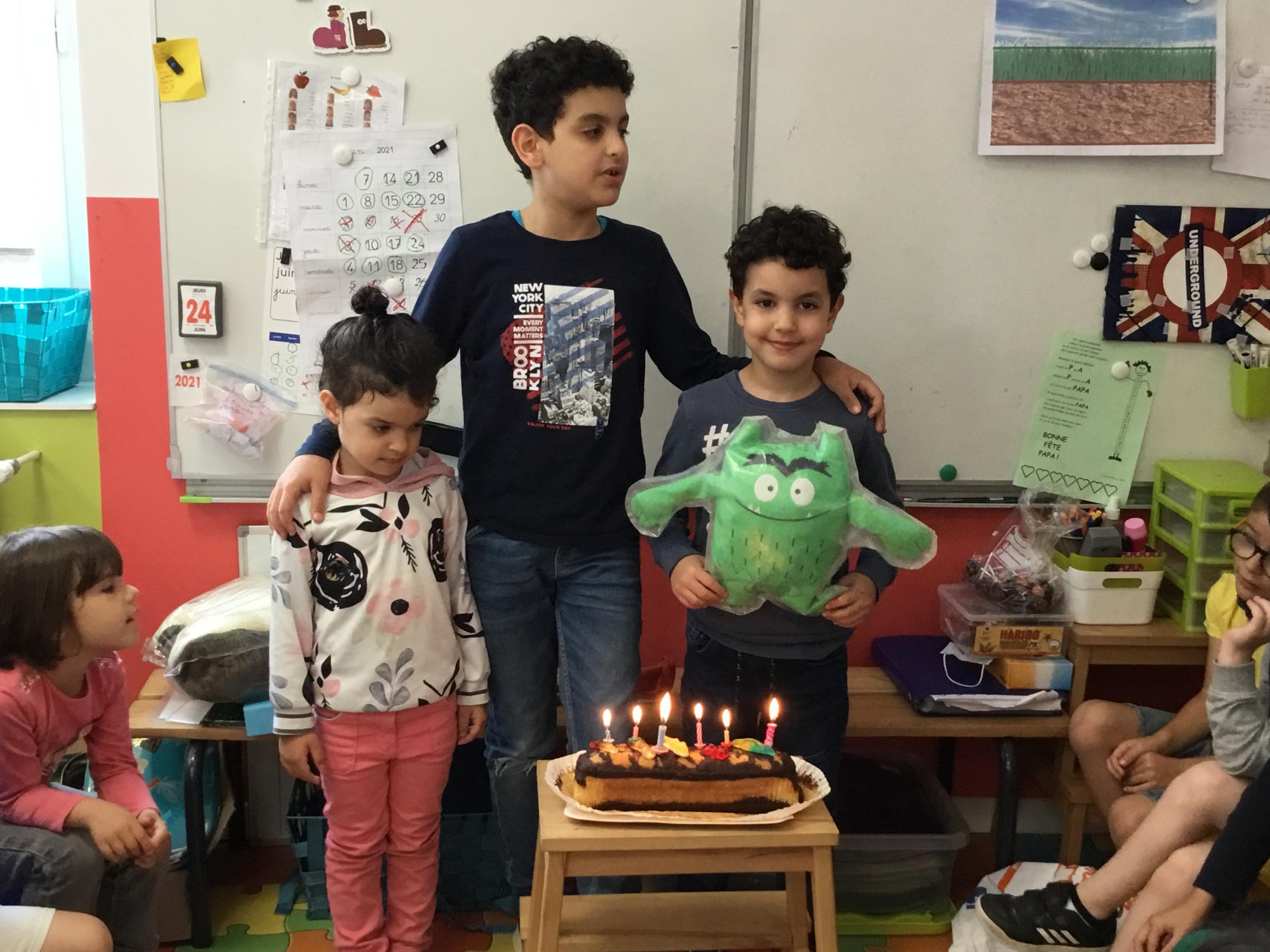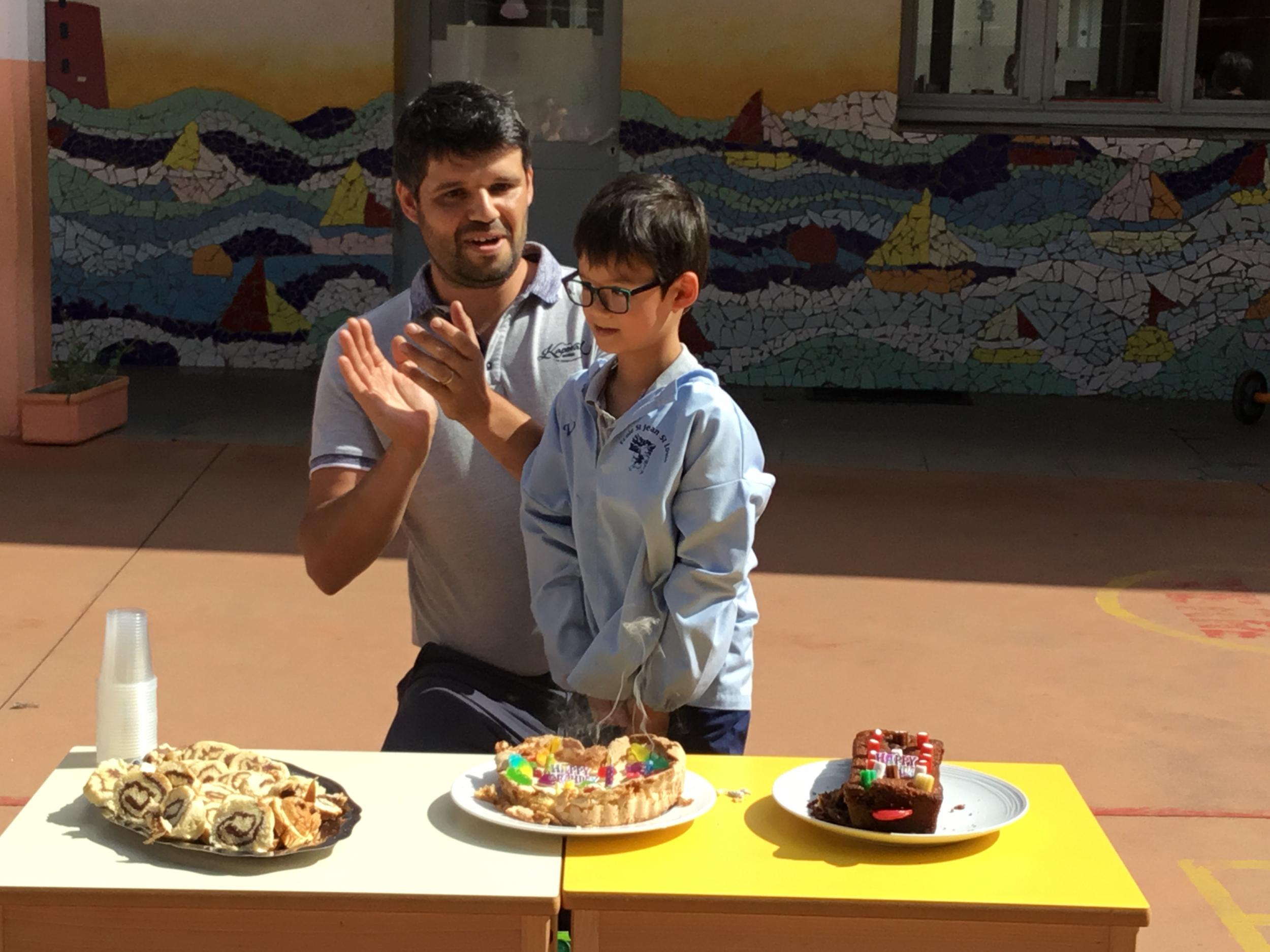 Profitant du beau temps et de la cour libre en fin de matinée, nous avons pu fêter les anniversaires des enfants nés entre mars et juillet ! (et des adultes!) et inviter leurs parents pour ce moment chaleureux!