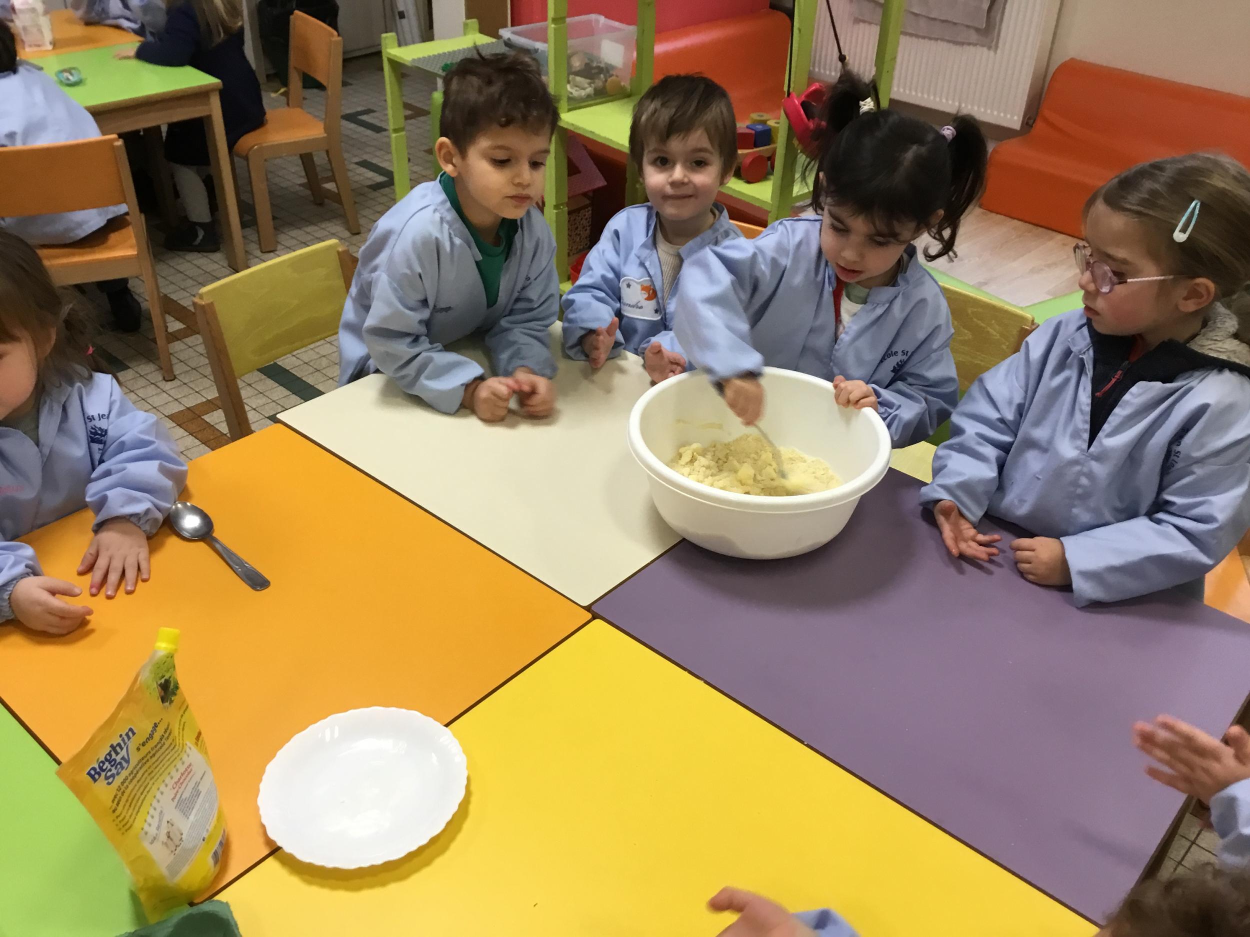 Petite et moyenne section 22/01/2023 L’atelier patisserie Le jour de fête Le bonhomme du mois de janvier Une jolie brochette de copains