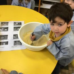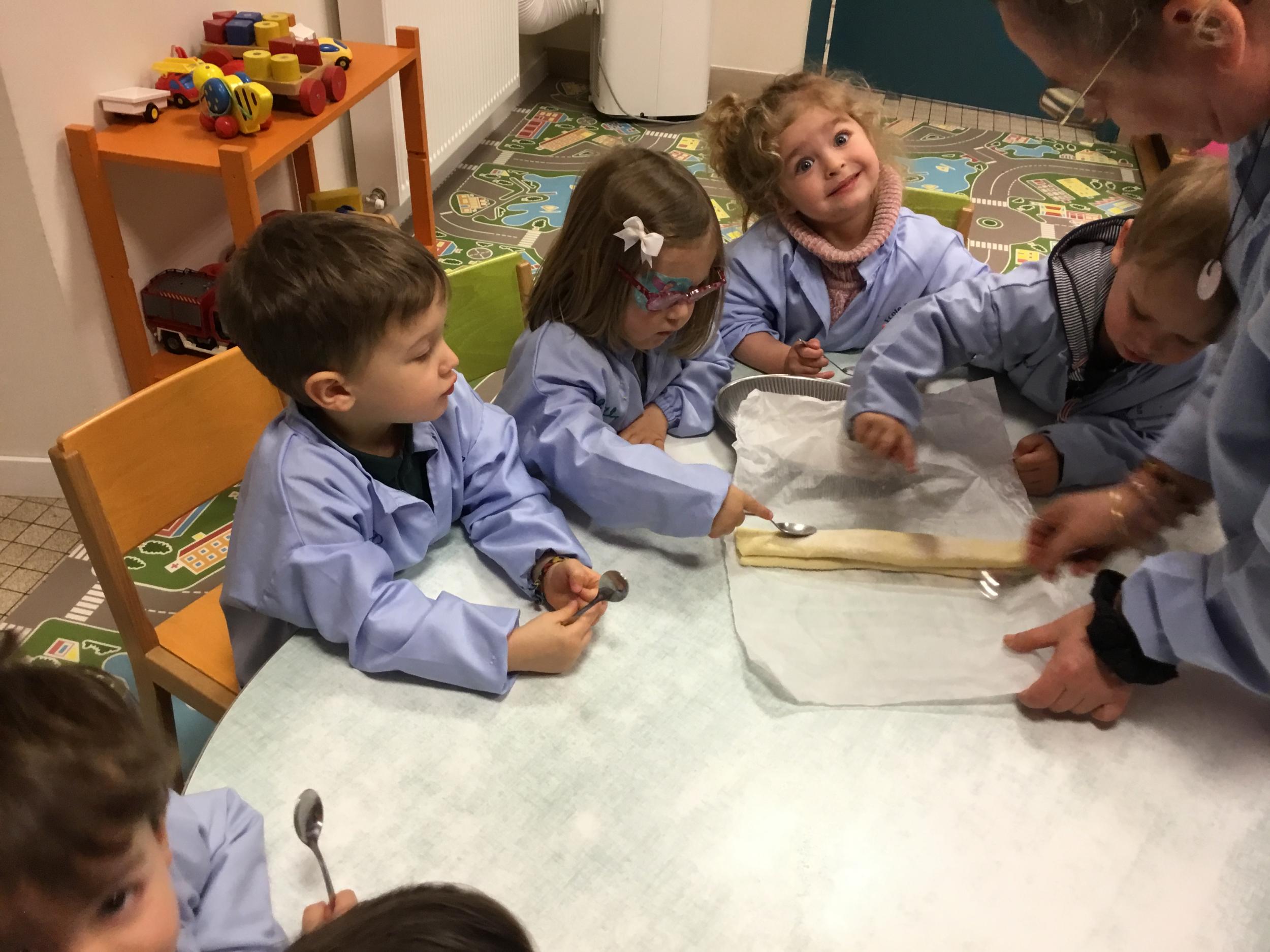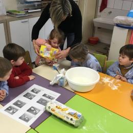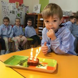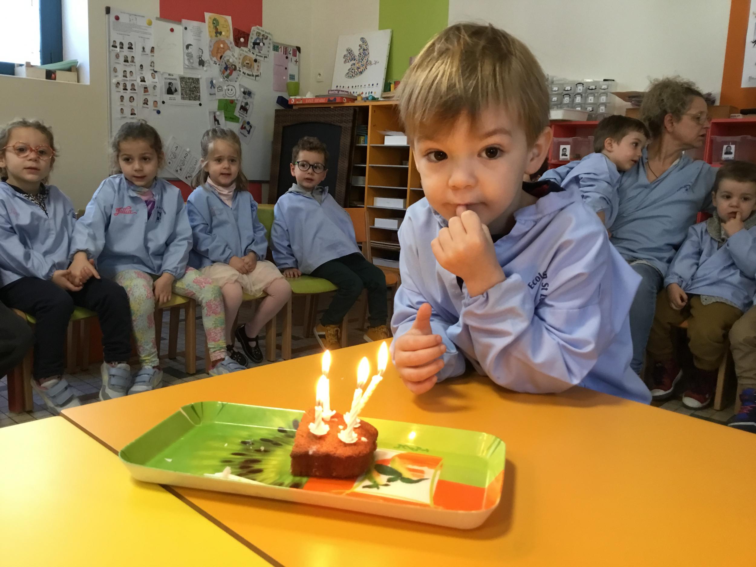 Petite et moyenne section 02/04/2023 Cette semaine nous avons fêté les anniversaires d’Agathe, Jade, Lucas et Gaspard. L’atelier pâtisserie Jour de fête Le bonhomme du mois de mars