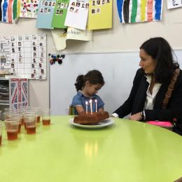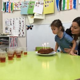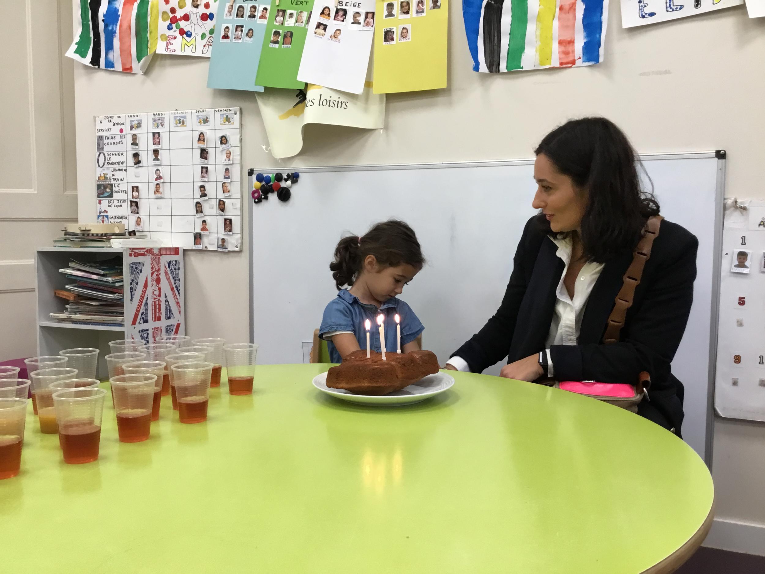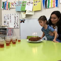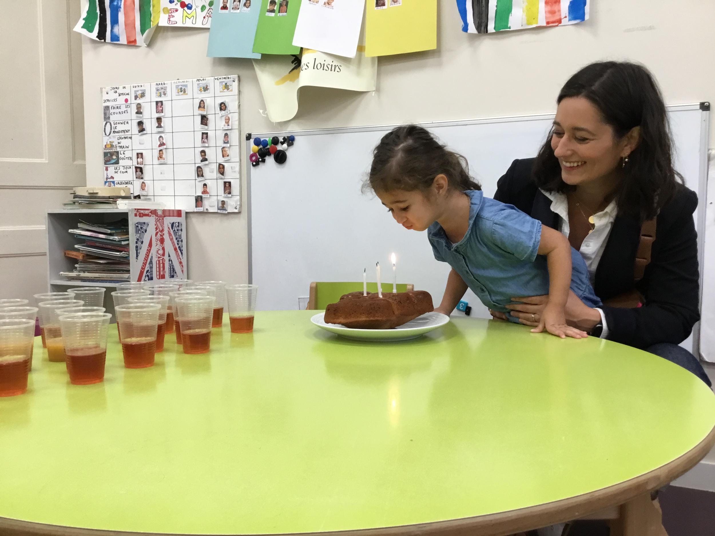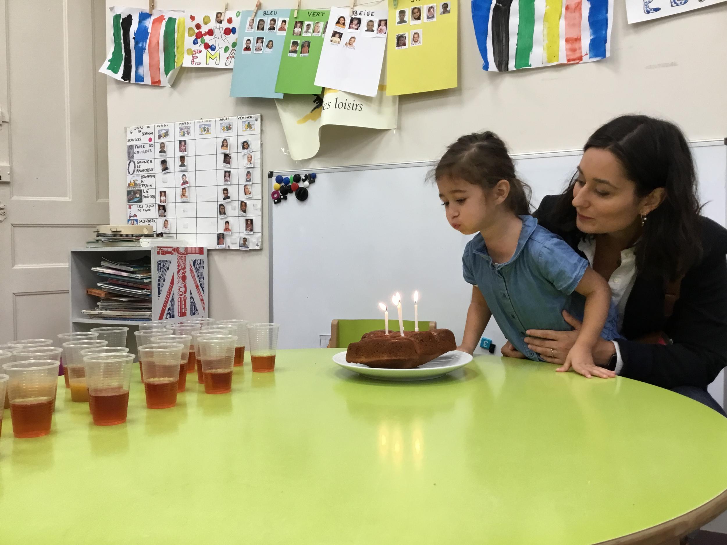 Vendredi dernier, nous avons fêté les anniversaires de Céleste et Léon . Nous avons chanté puis mangé les gâteaux que nous avions fait la veille. Nous nous sommes une fois de plus régalés.