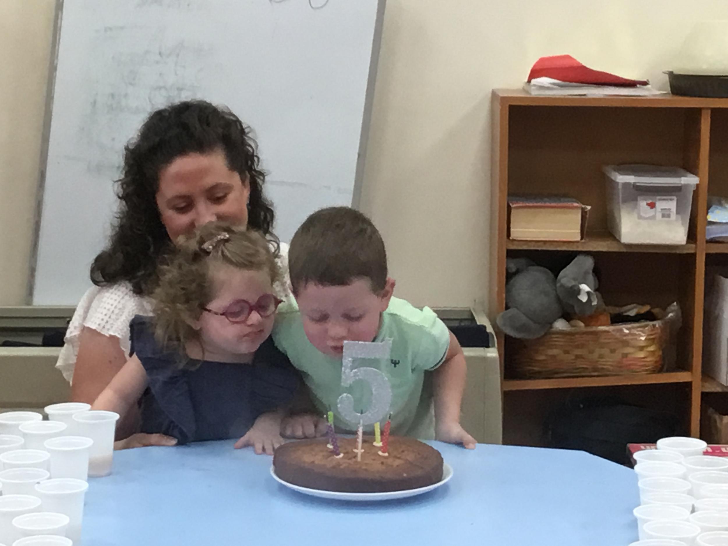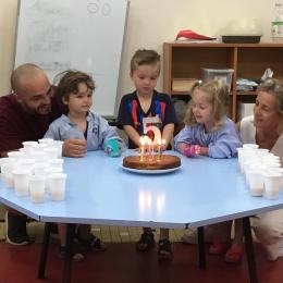 Petite et moyenne section 11/06/2023 Lundi dernier nous avons confectionné des gâteaux et avons fêté les anniversaires le lendemain avec les parents. On s’est tous régalé.