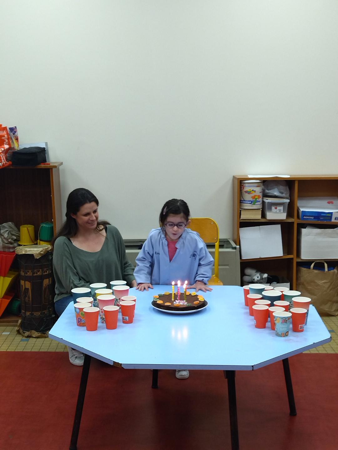 Mardi dernier, nous avons fêté les anniversaires des mois d'Avril Mai et nous avons mangé les fameux gâteaux confectionnés la veille . Nous avons chanté notre répertoire de l'année et nous nous sommes régalés !