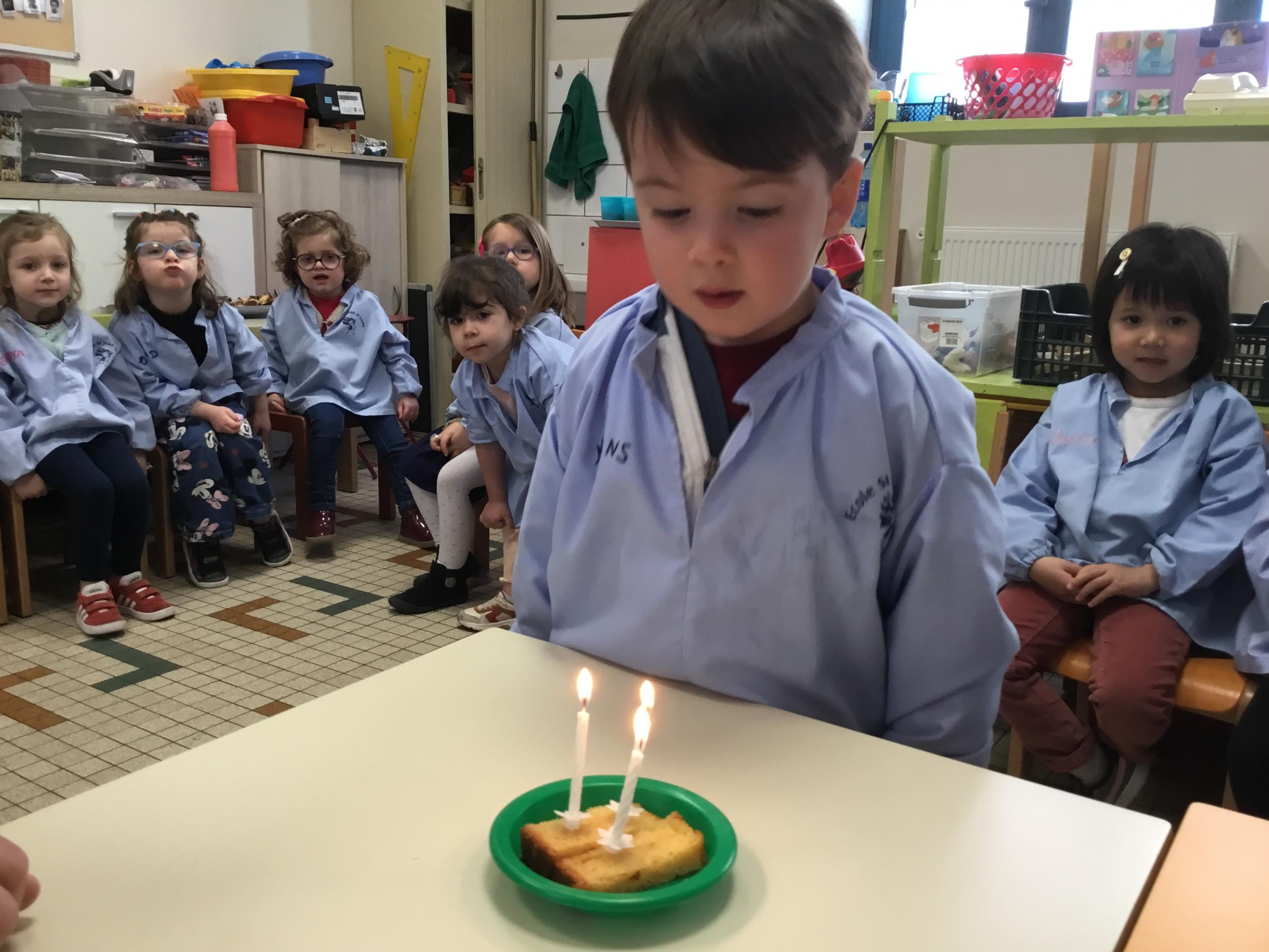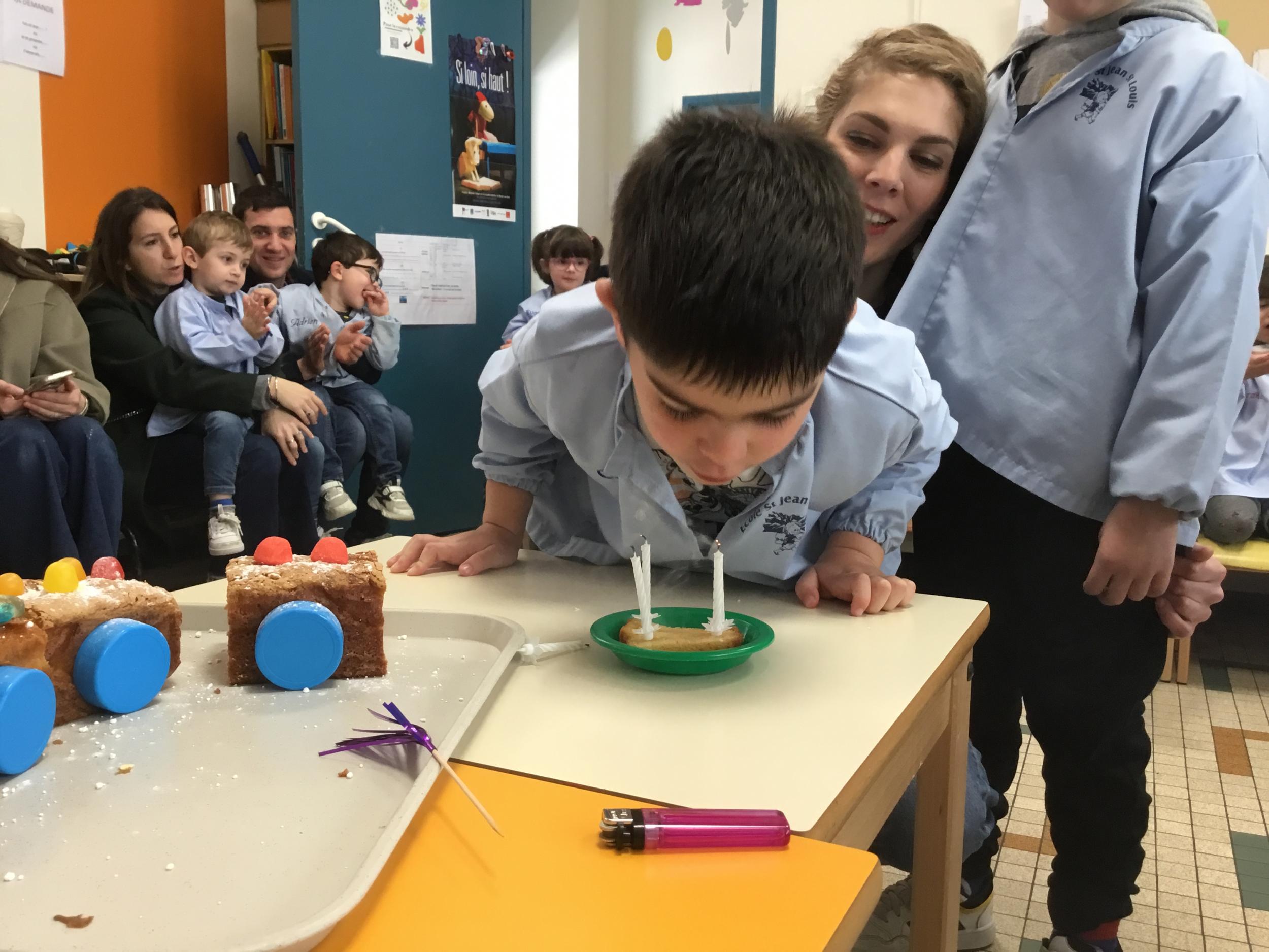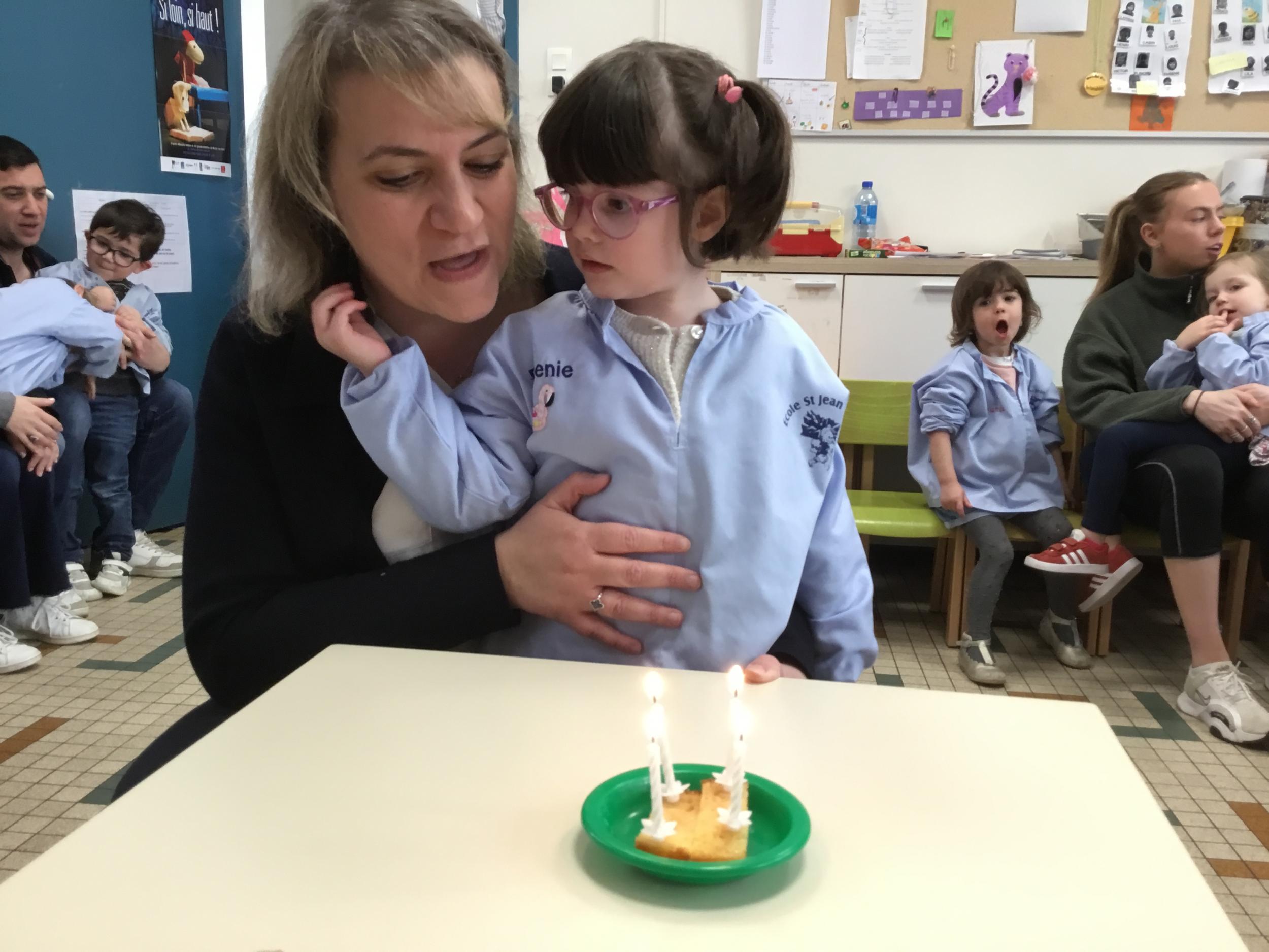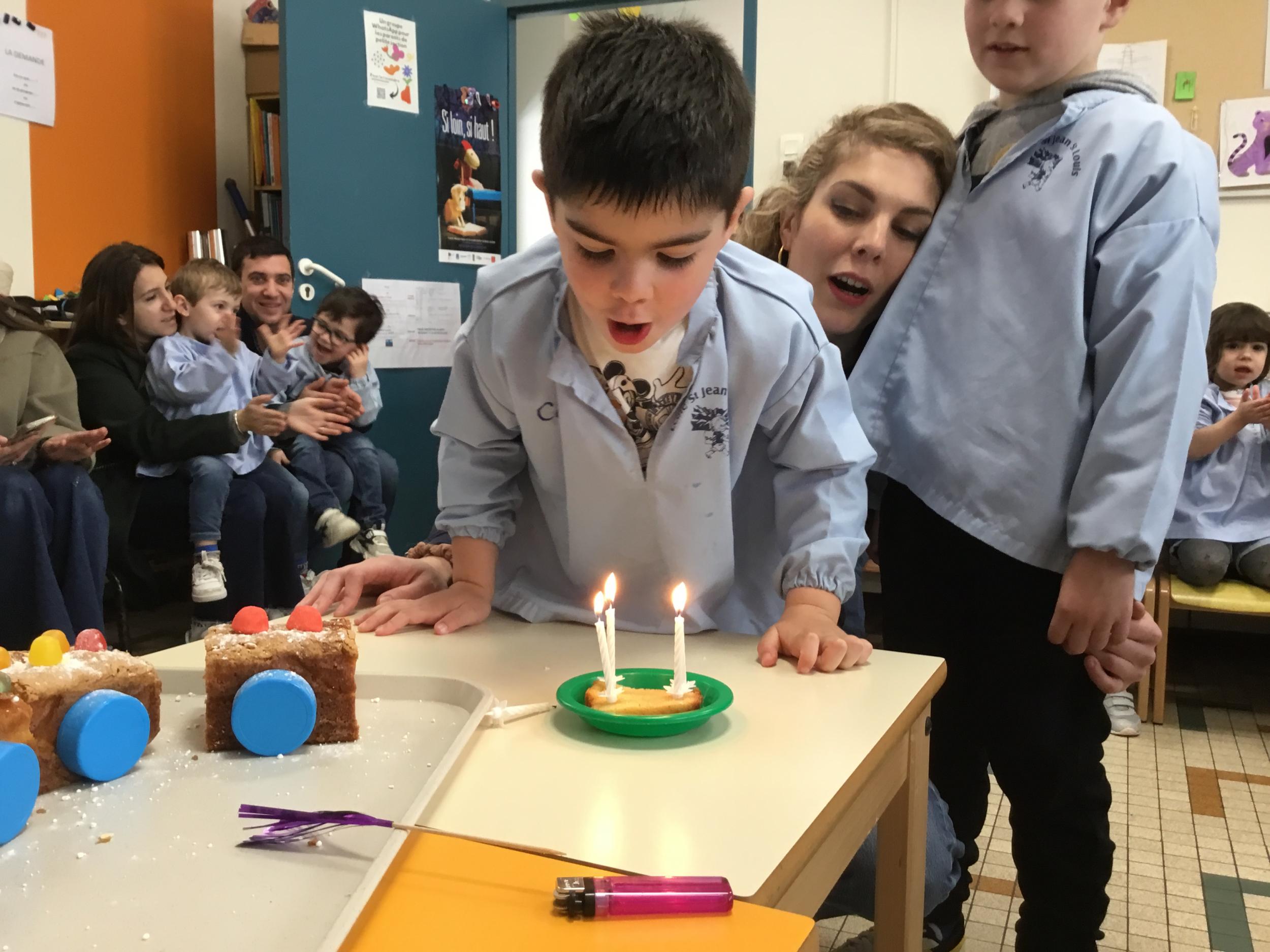 Petite et moyenne section 01/04/2024 Nous avons souhaité un joyeux anniversaire à nos tps, Nans et Jules, et à nos grands ps Eugénie, Victor, Kenzo et Gabin L’atelier patisserie Jour de fête Le bonhomme du mois de mars