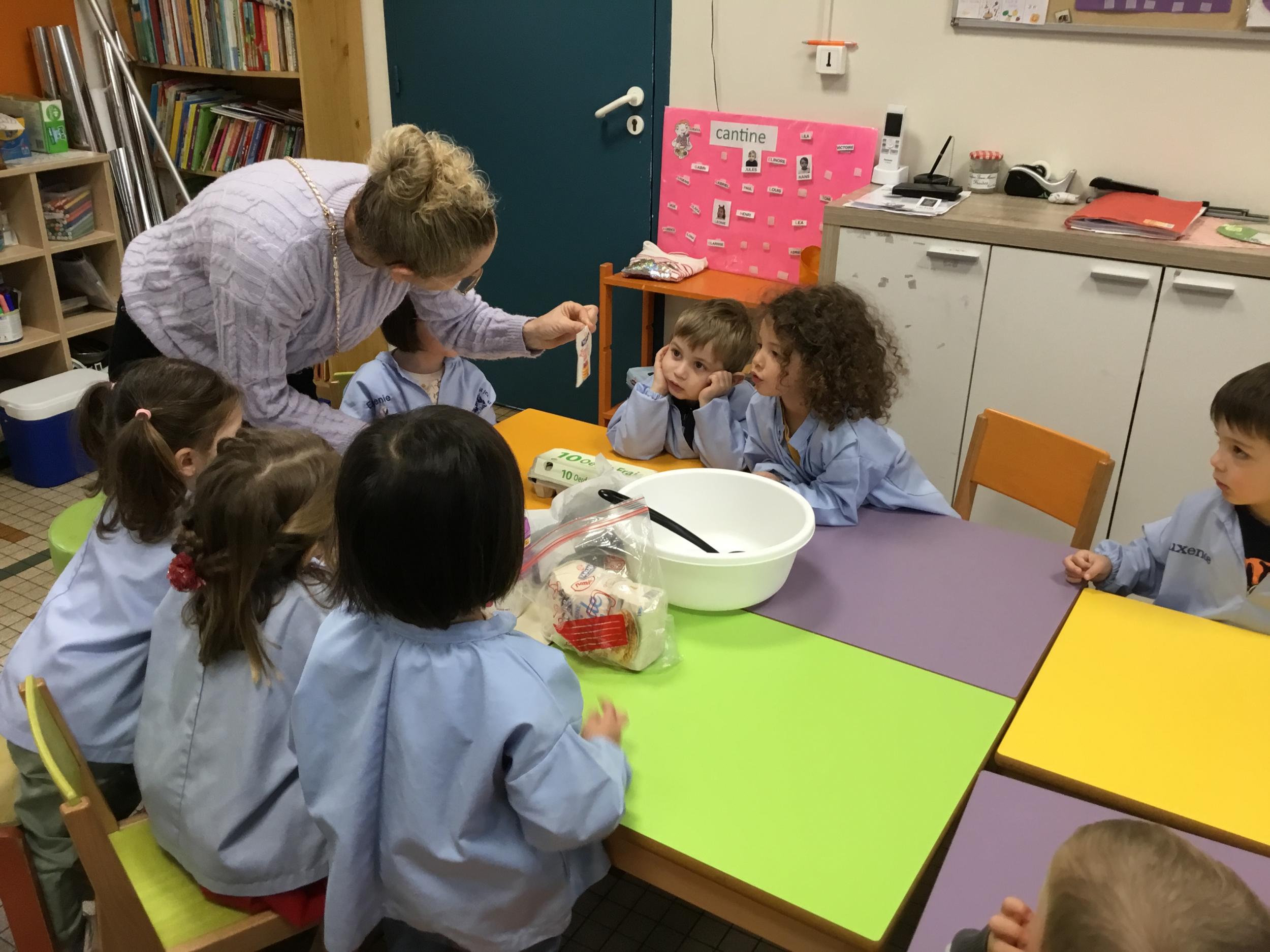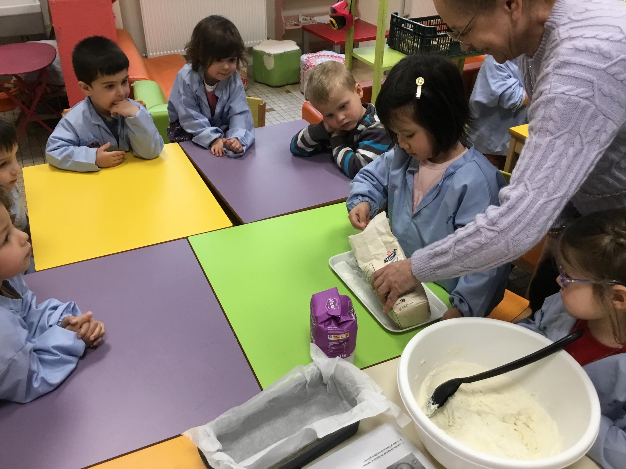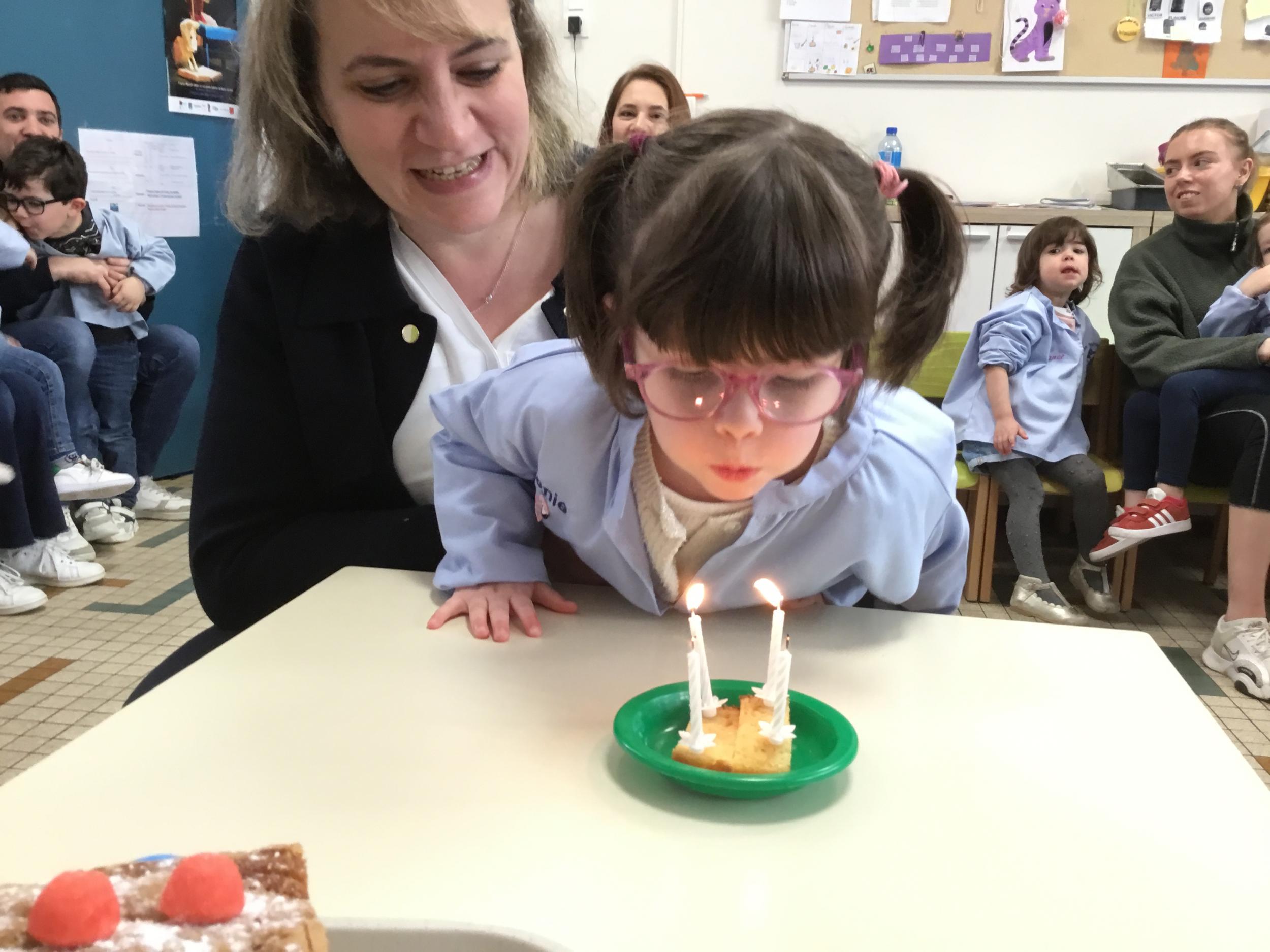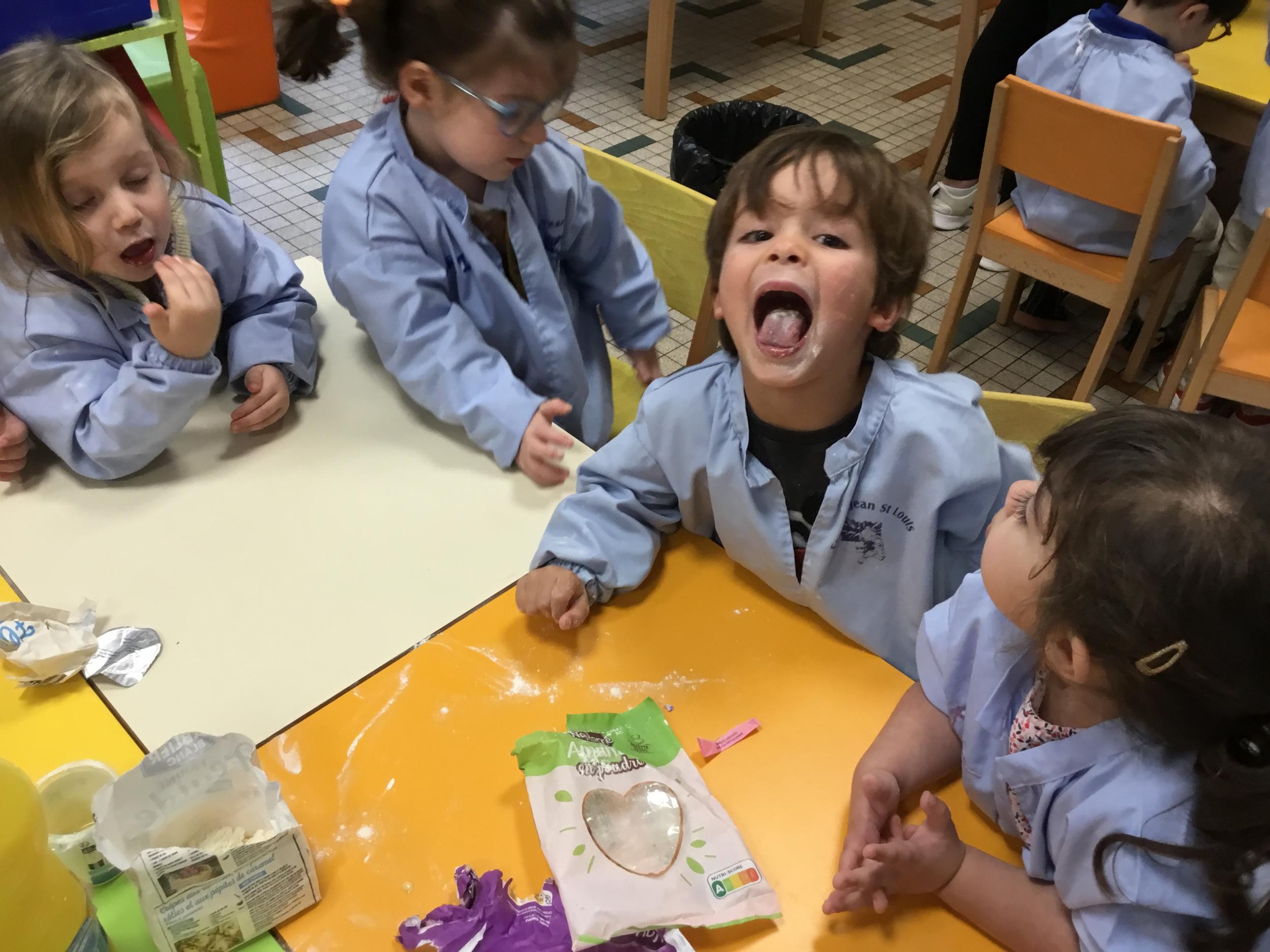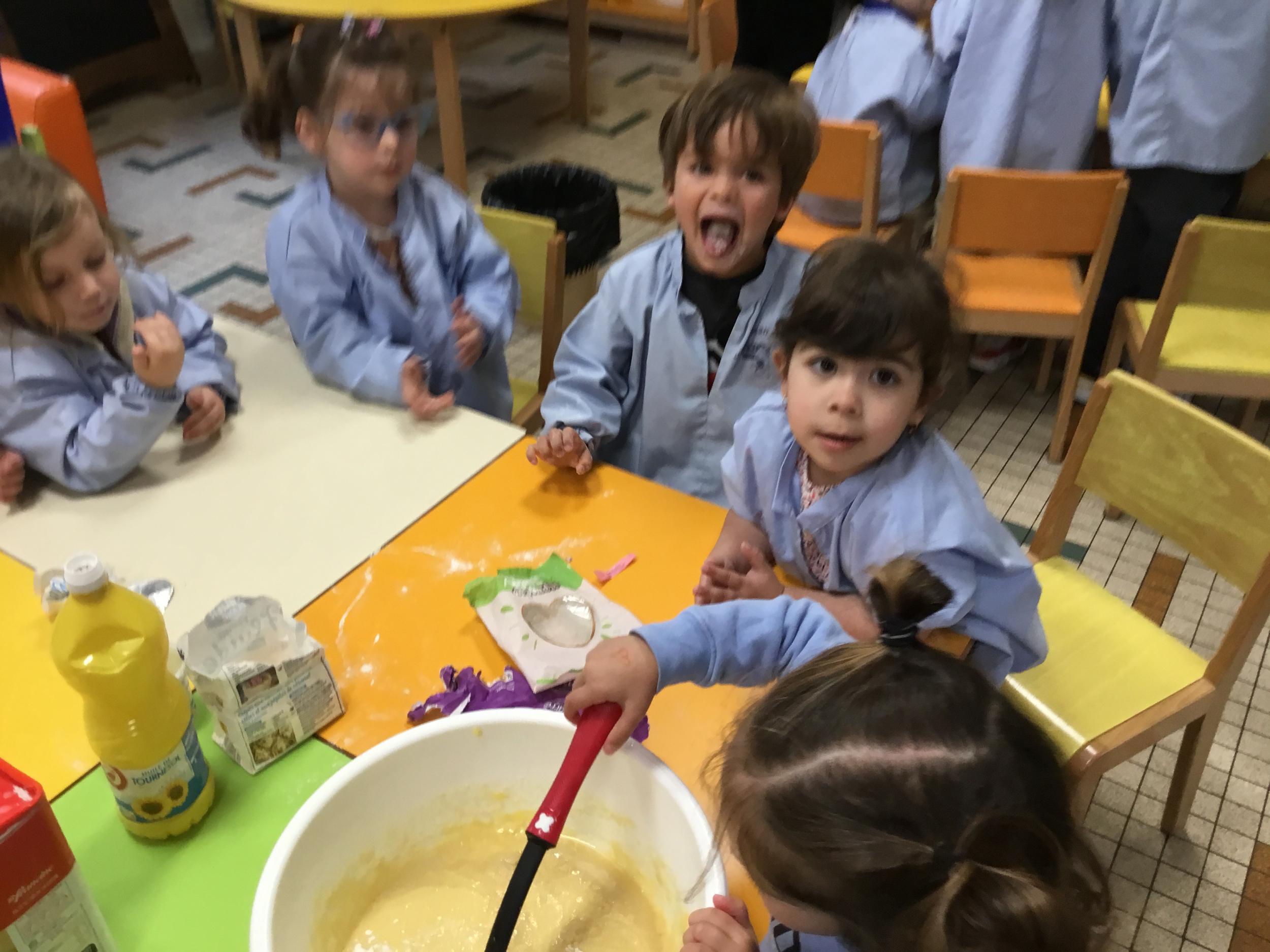 Petite et moyenne section 01/04/2024 Nous avons souhaité un joyeux anniversaire à nos tps, Nans et Jules, et à nos grands ps Eugénie, Victor, Kenzo et Gabin L’atelier patisserie Jour de fête Le bonhomme du mois de mars