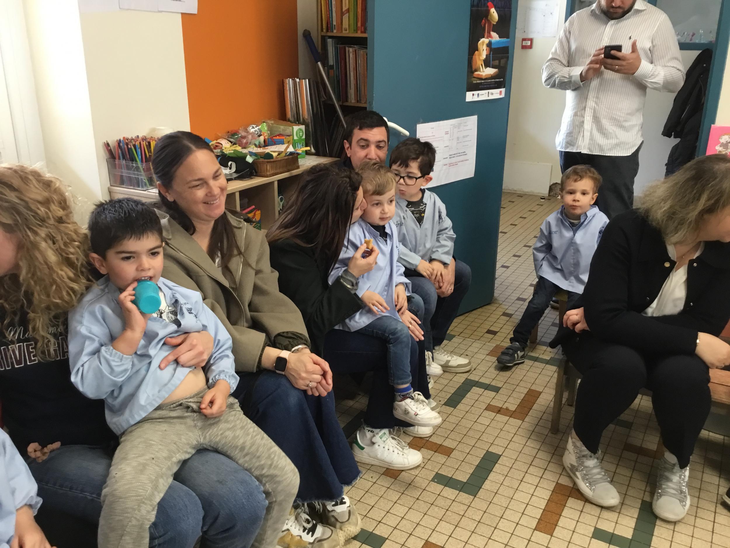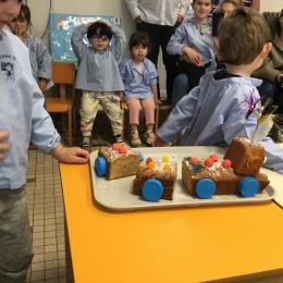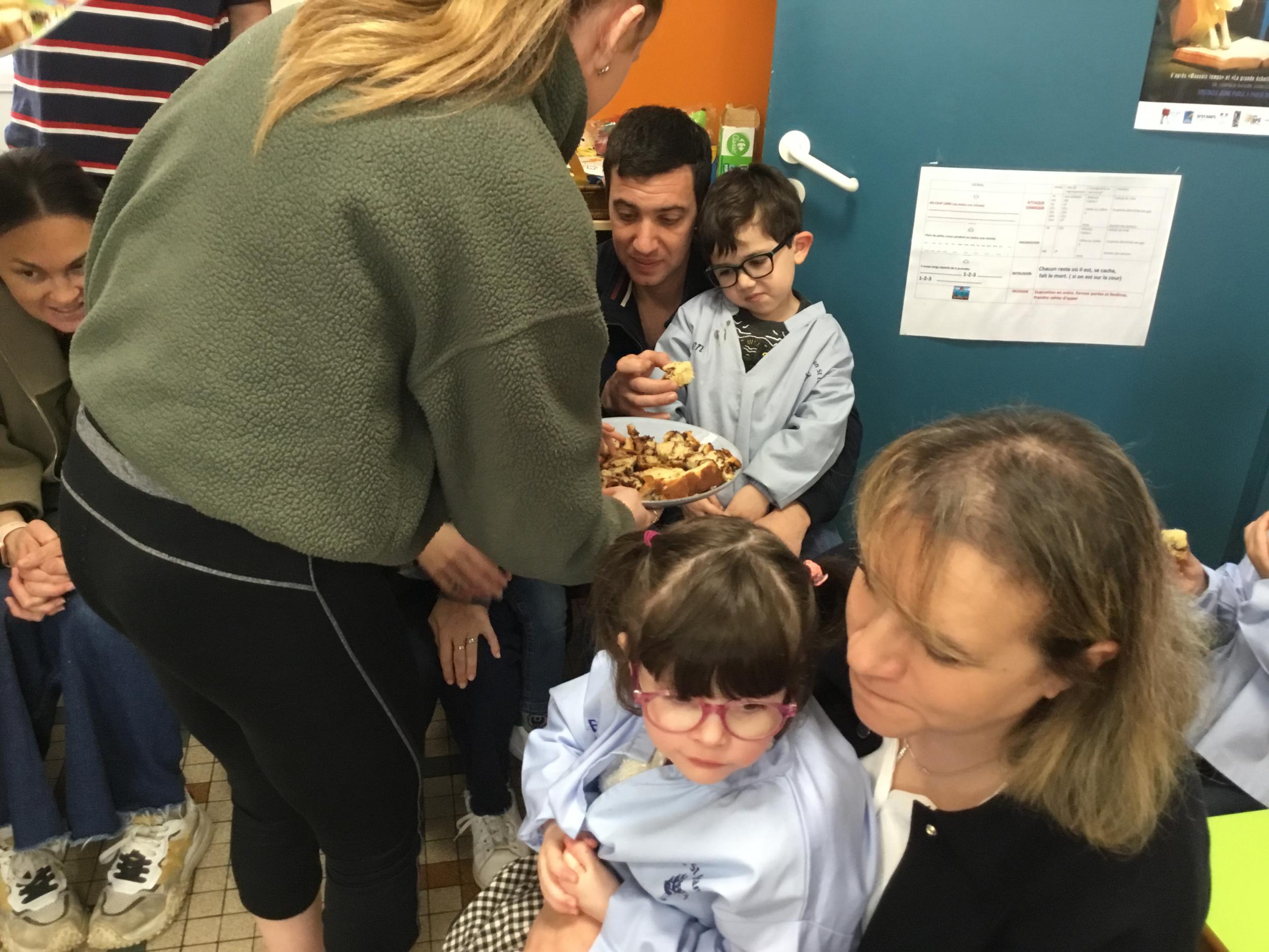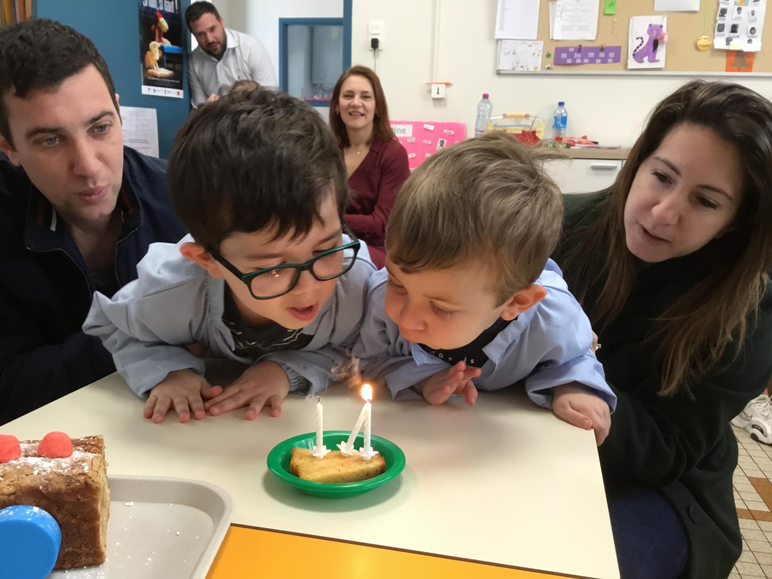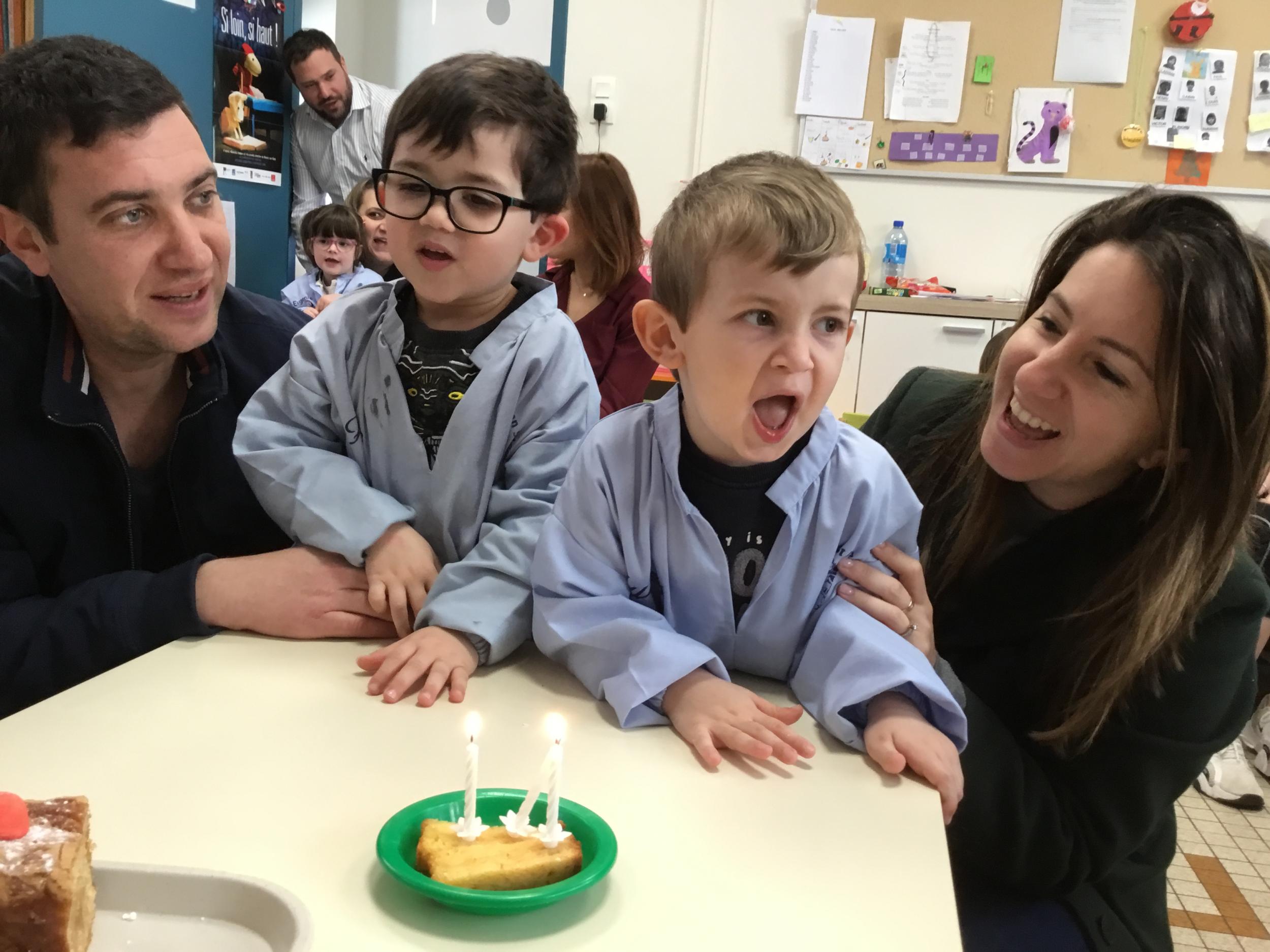 Petite et moyenne section 01/04/2024 Nous avons souhaité un joyeux anniversaire à nos tps, Nans et Jules, et à nos grands ps Eugénie, Victor, Kenzo et Gabin L’atelier patisserie Jour de fête Le bonhomme du mois de mars