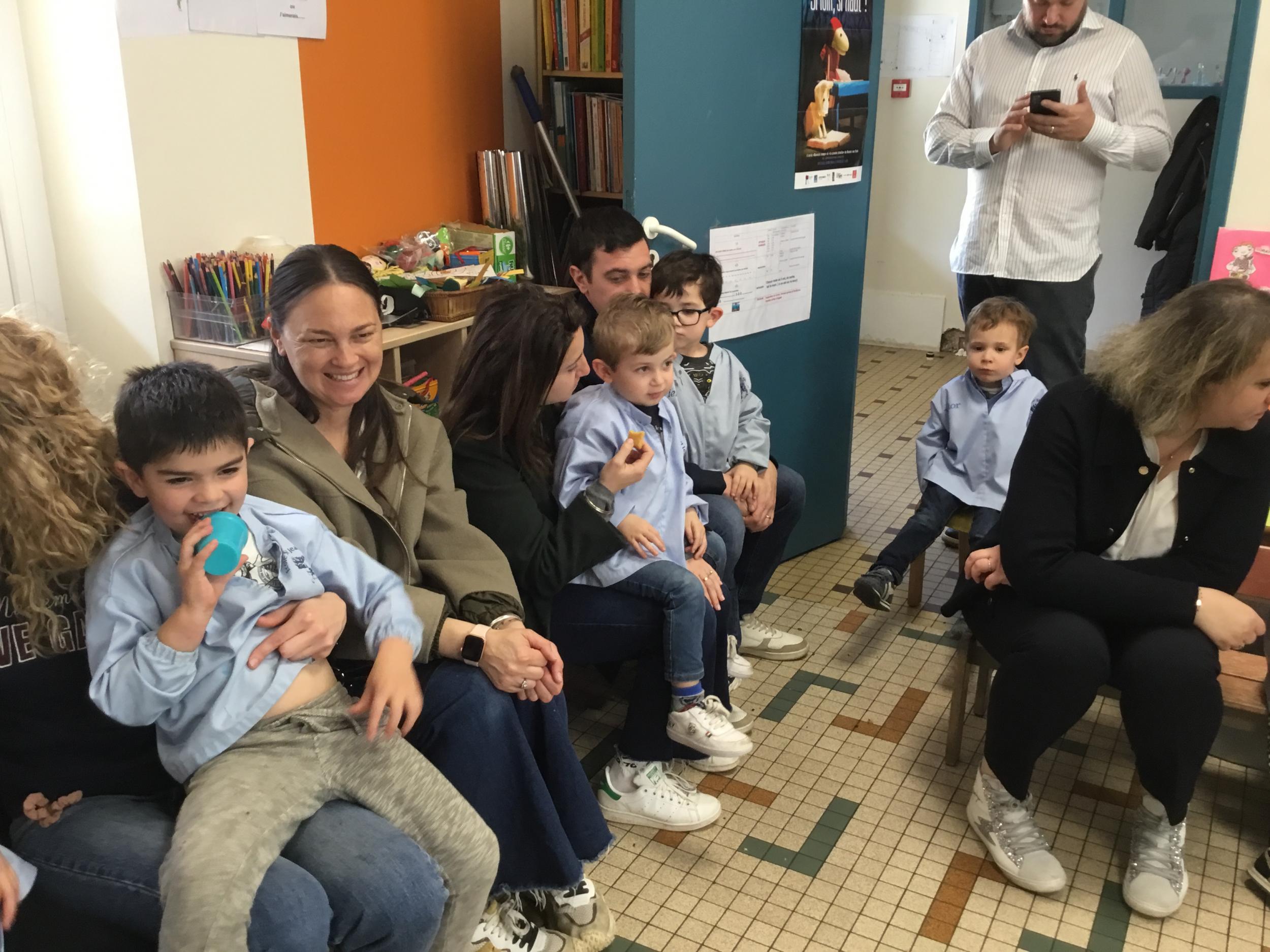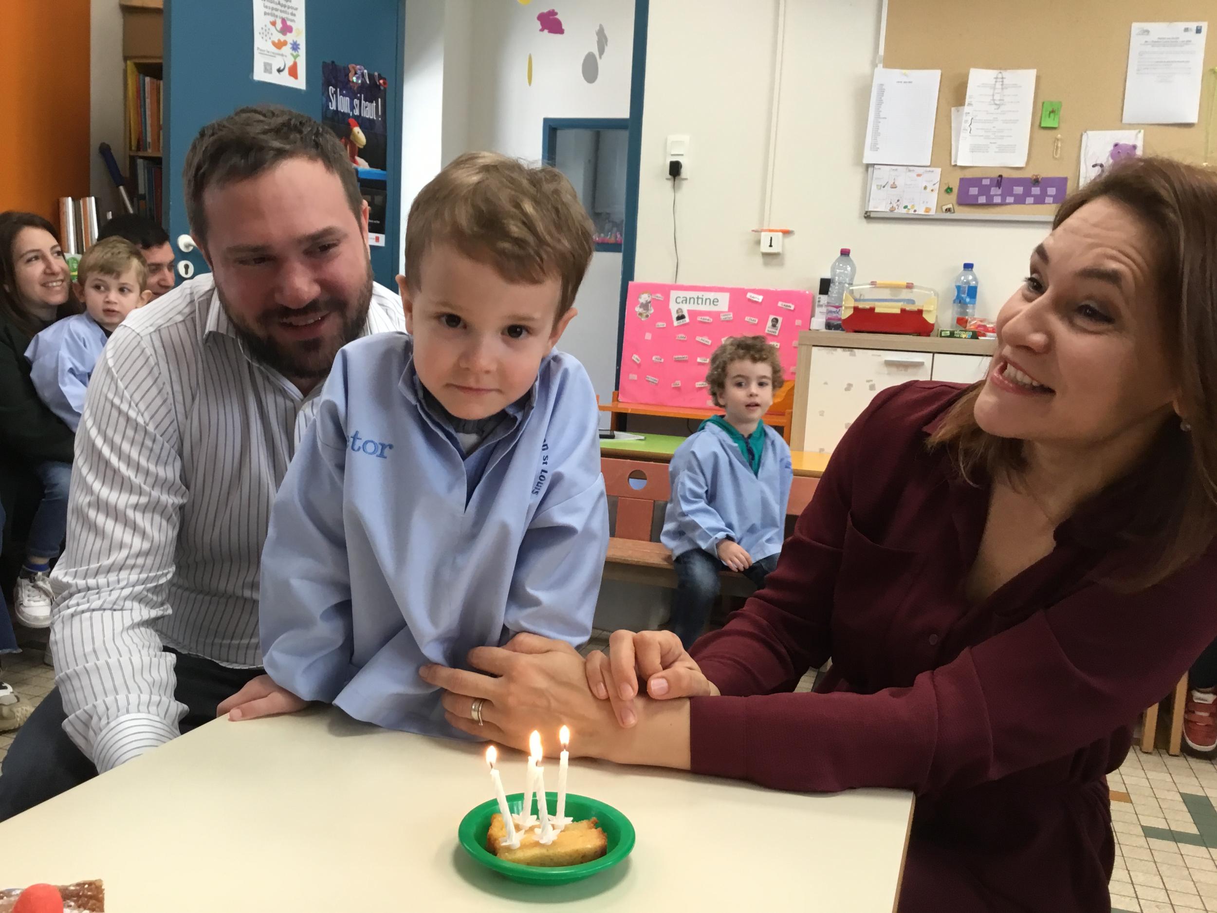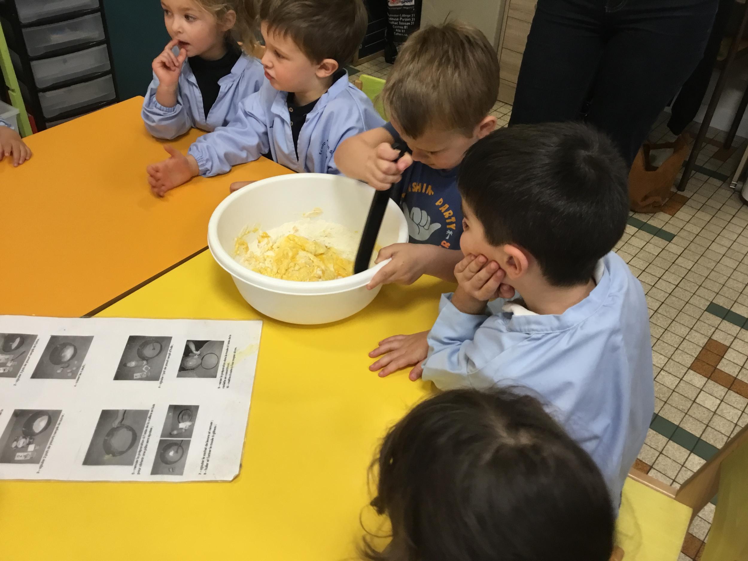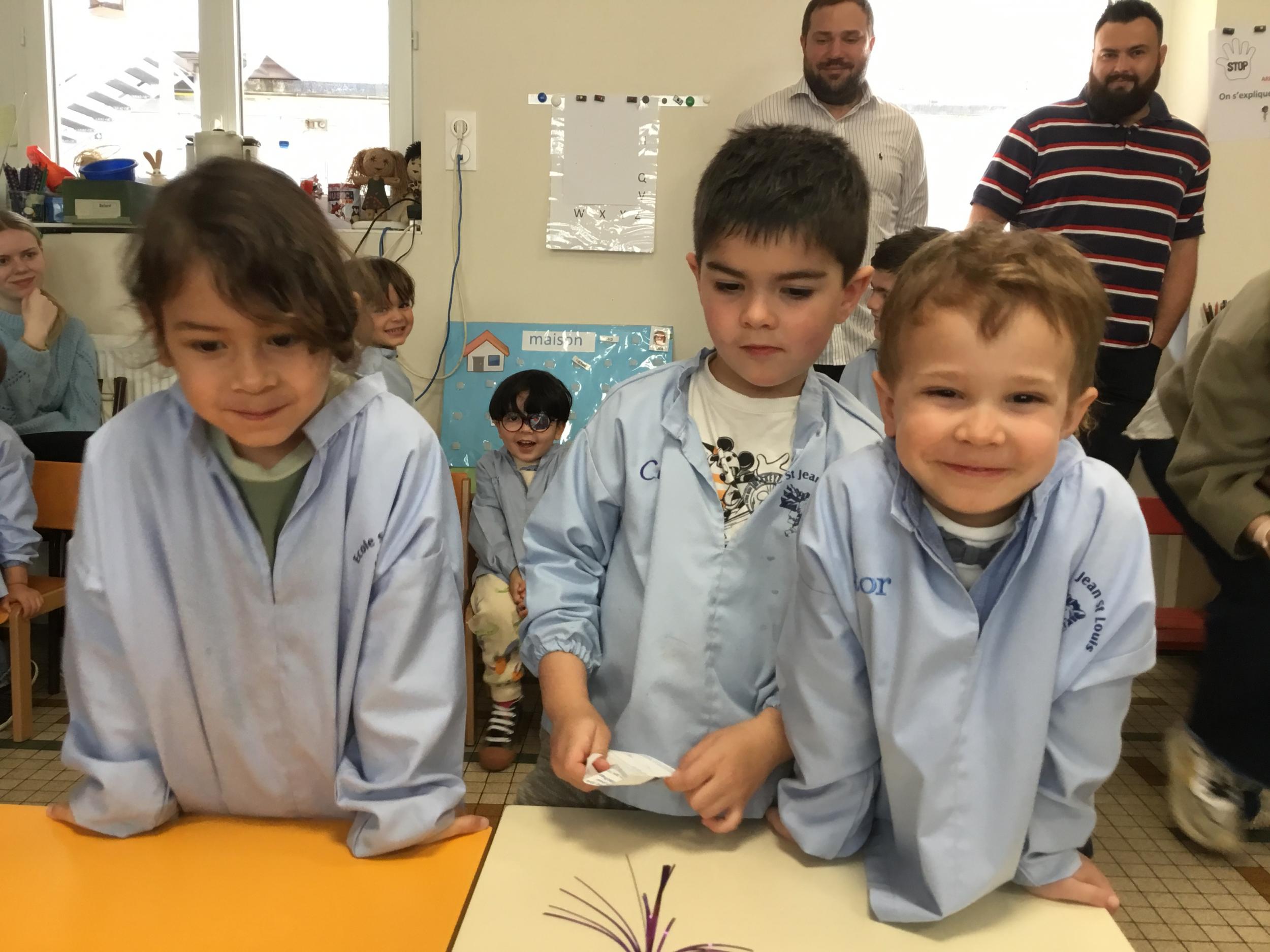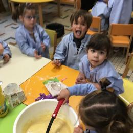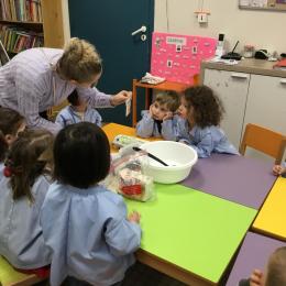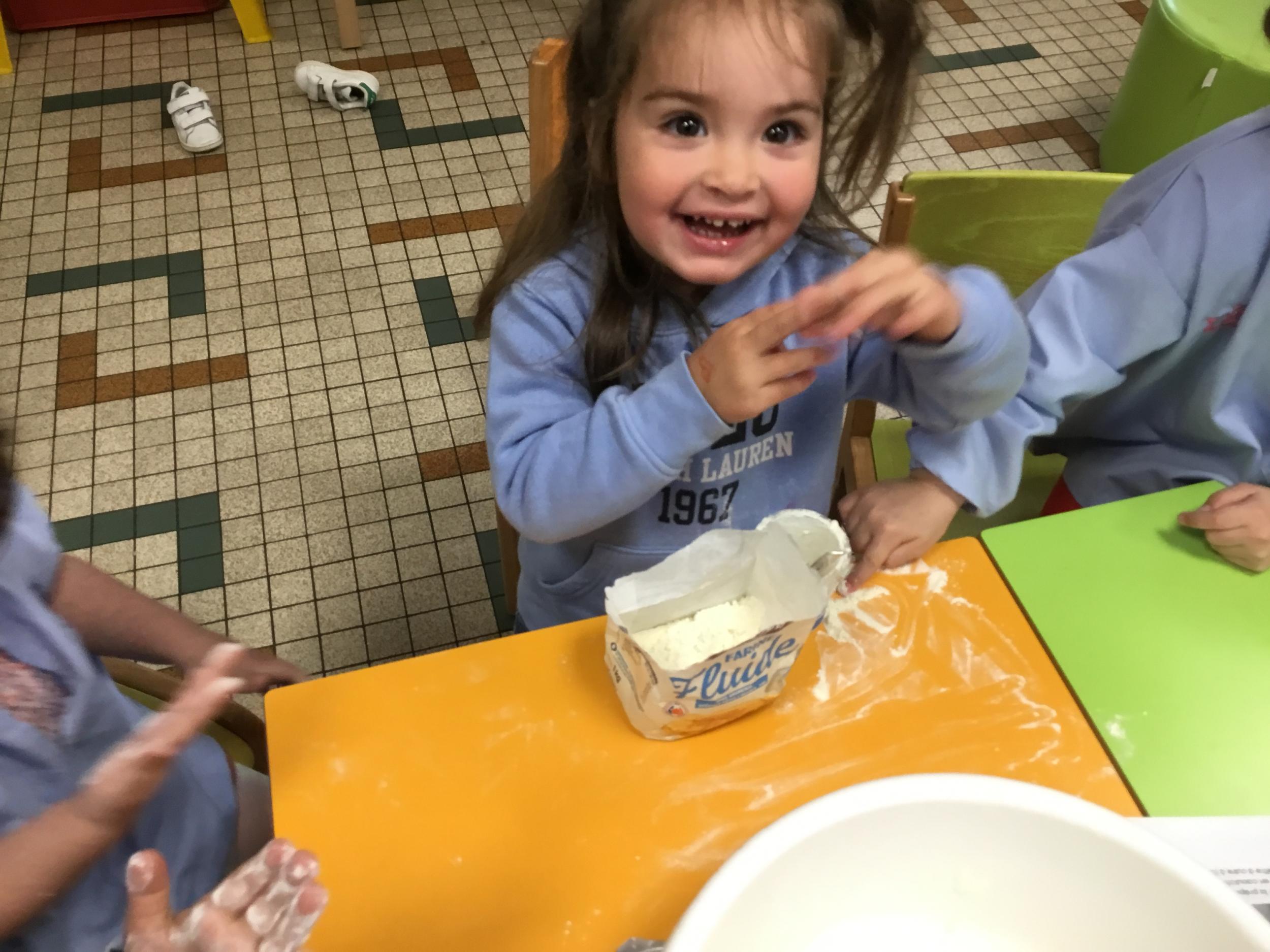 Petite et moyenne section 01/04/2024 Nous avons souhaité un joyeux anniversaire à nos tps, Nans et Jules, et à nos grands ps Eugénie, Victor, Kenzo et Gabin L’atelier patisserie Jour de fête Le bonhomme du mois de mars