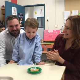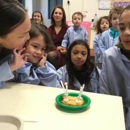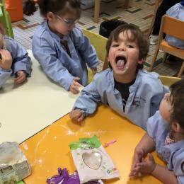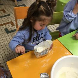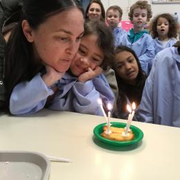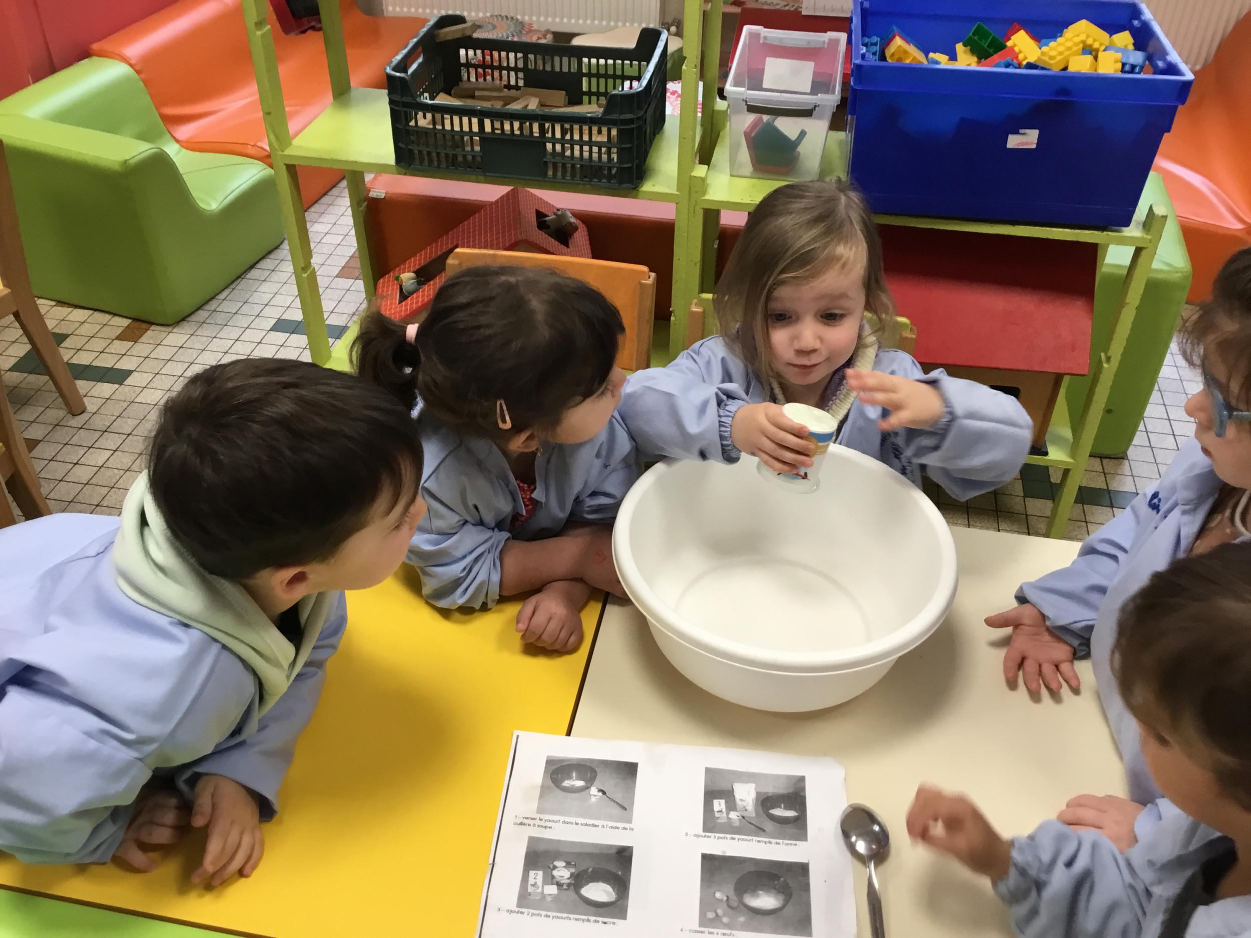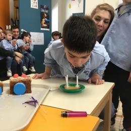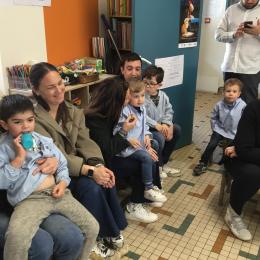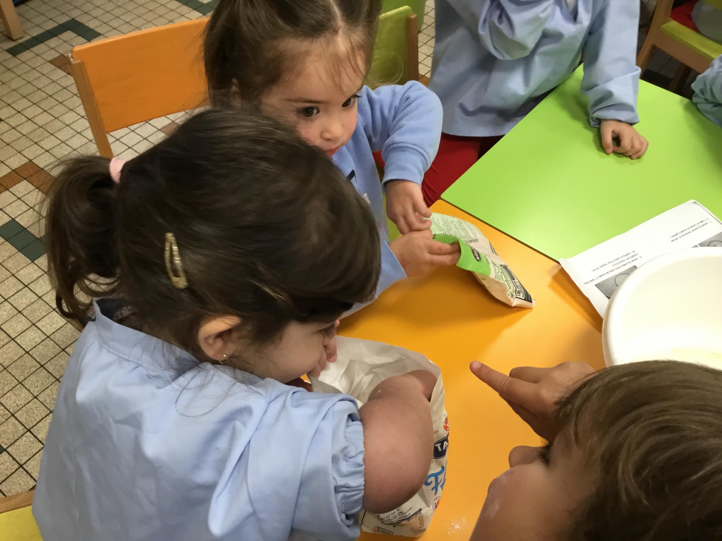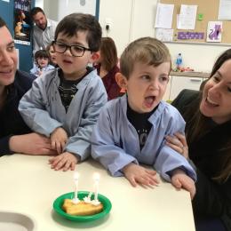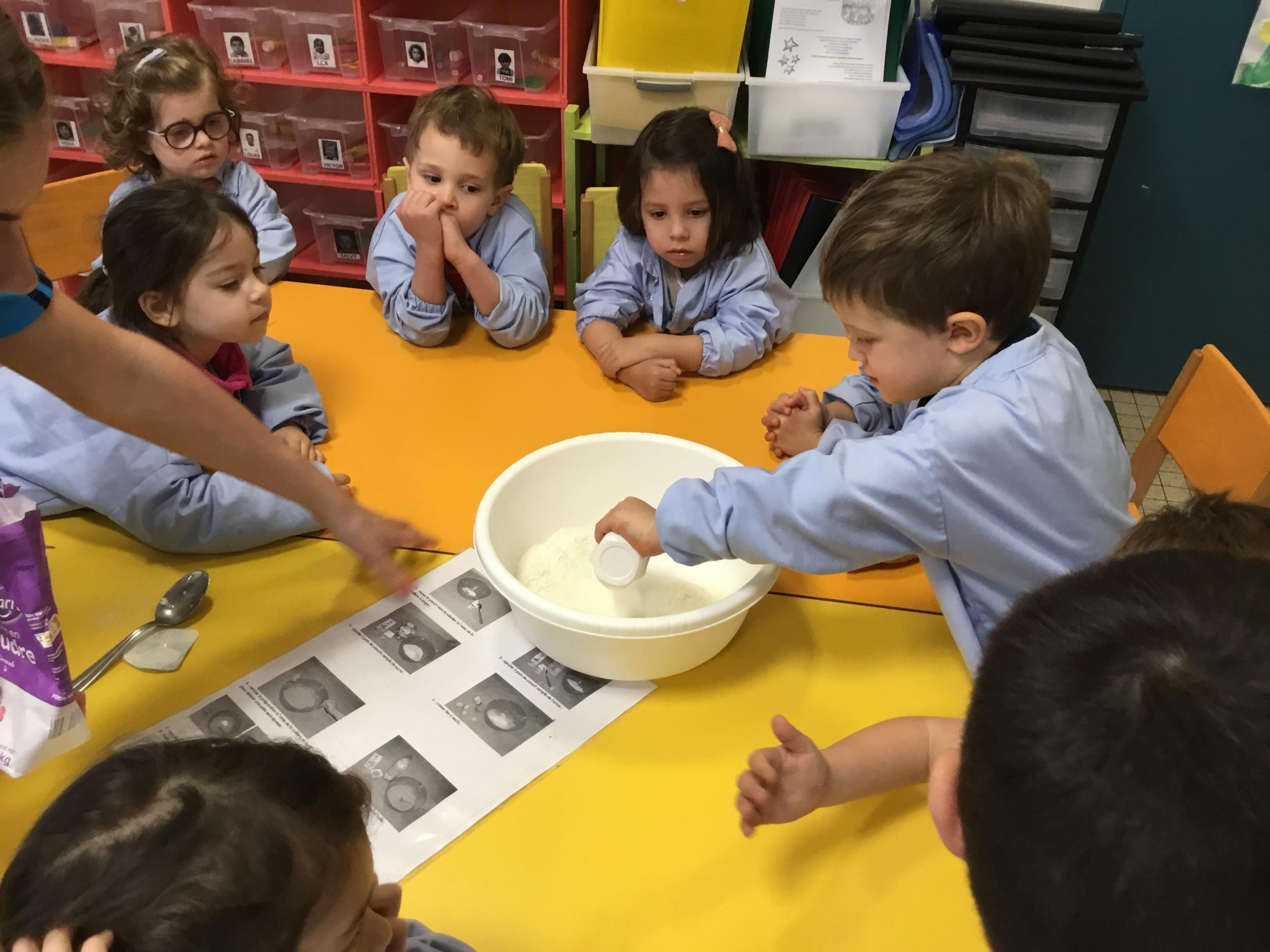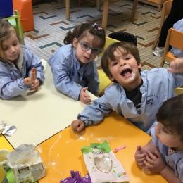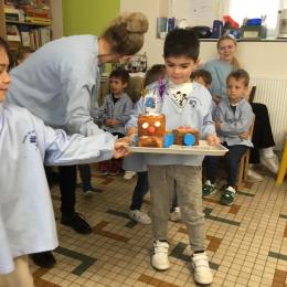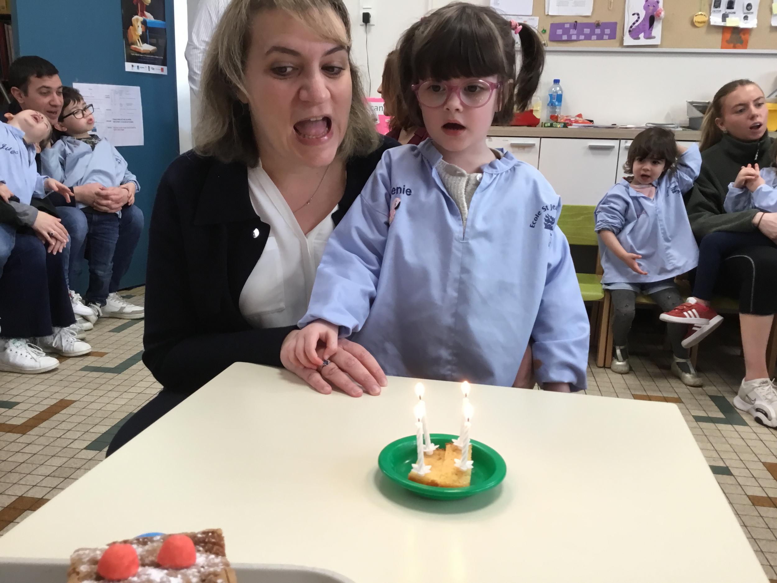 Petite et moyenne section 01/04/2024 Nous avons souhaité un joyeux anniversaire à nos tps, Nans et Jules, et à nos grands ps Eugénie, Victor, Kenzo et Gabin L’atelier patisserie Jour de fête Le bonhomme du mois de mars
