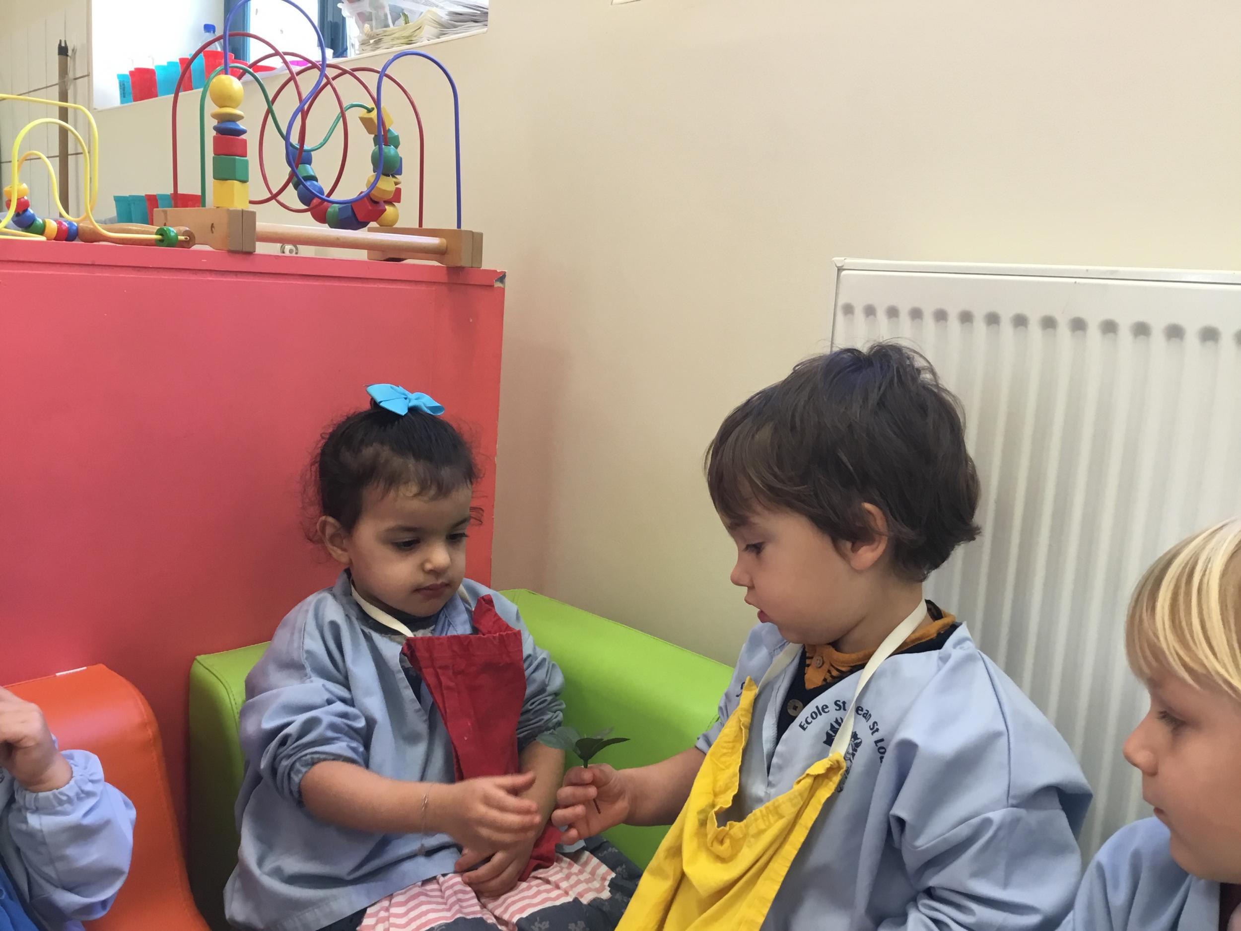 La consigne était la suivante : « Je te regarde dans les yeux et je te donne la branche de la paix.ça veut dire , je suis ton ami »