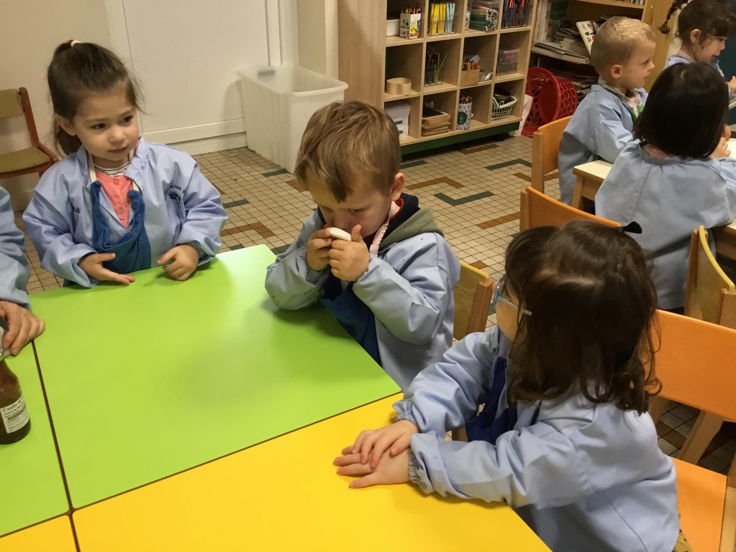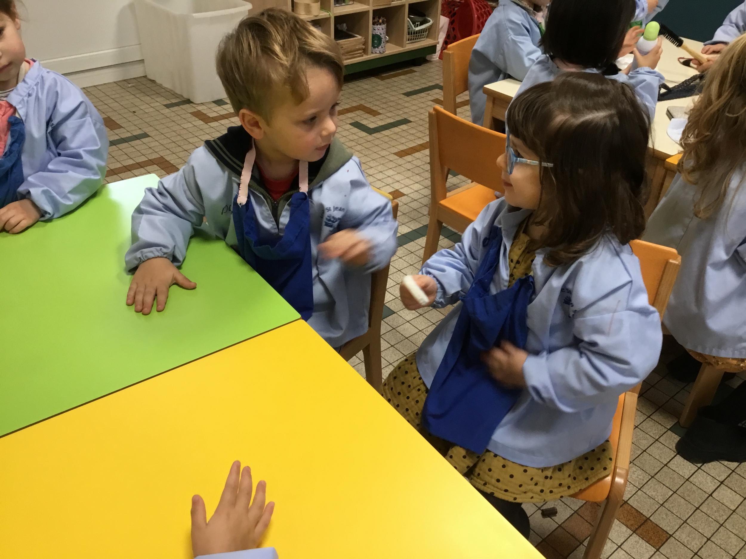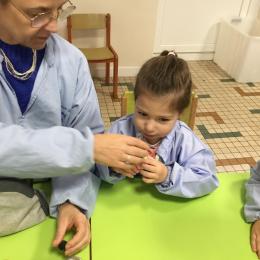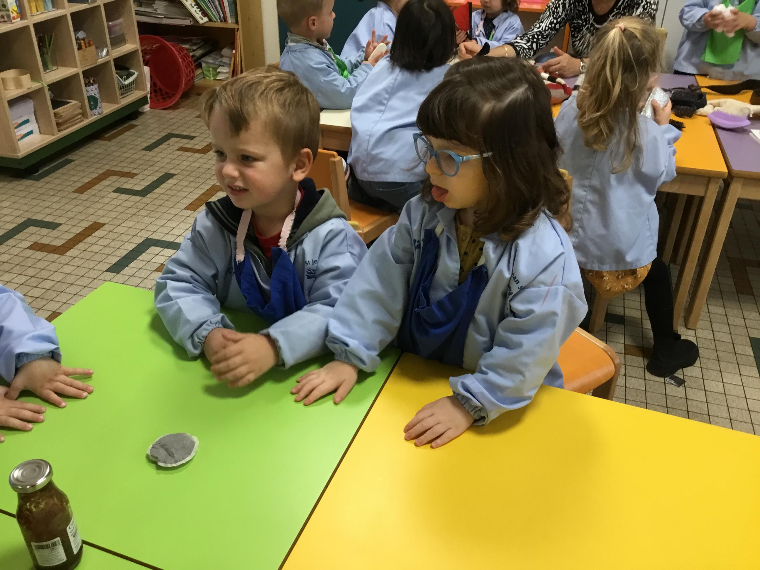 Ce matin , 4 ateliers étaient proposés pour reconnaître les sens, y associer un organe, apprendre du vocabulaire.