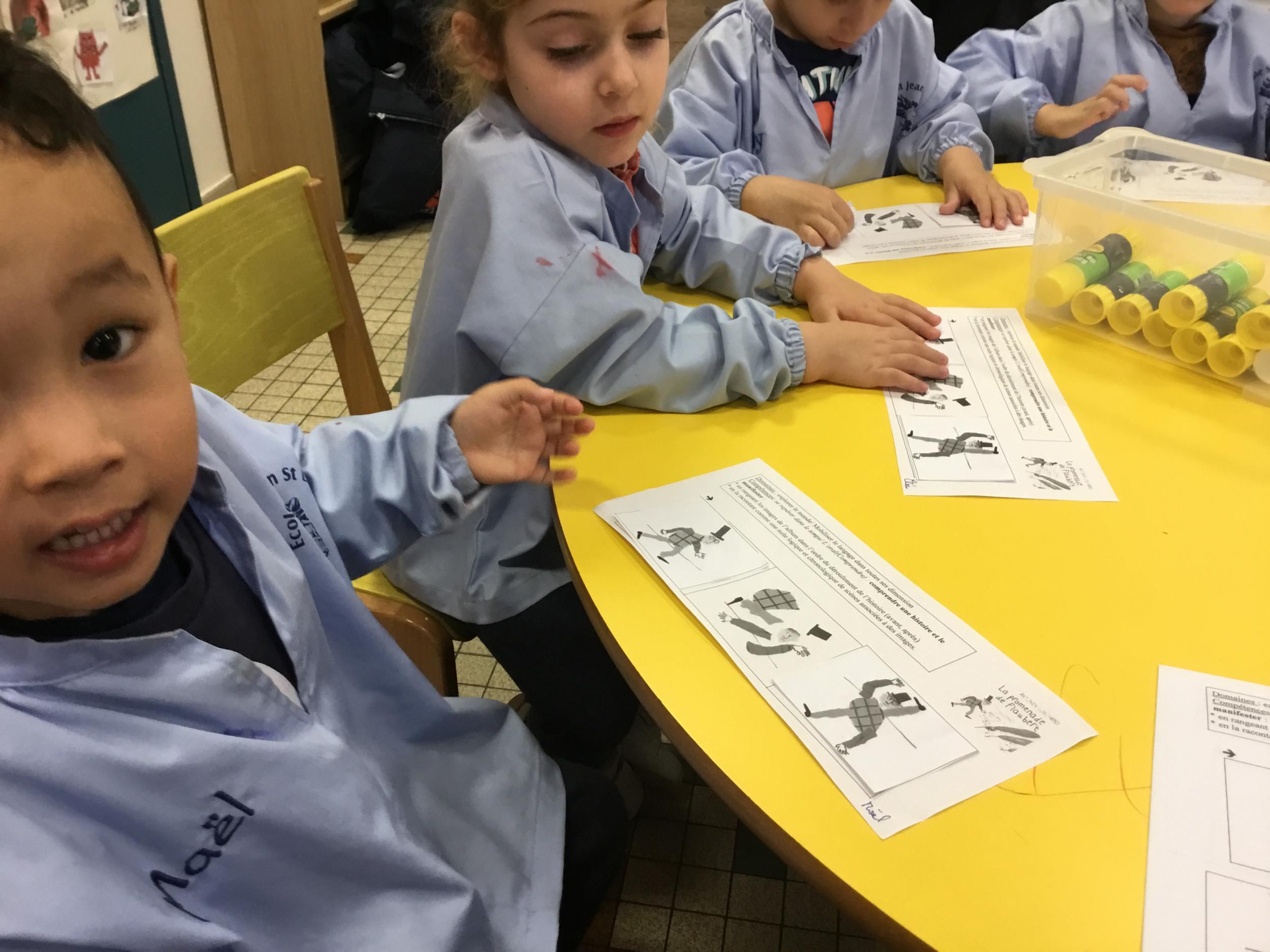 Petite et moyenne section 27/11/2022 Cette semaine, les élèves de PS ont rangé 3 images dans l’ordre de l’histoire « La promenade de Flaubert ». Une fois ce travail achevé, chaque élève a raconté l’histoire. Raconter une histoire Le set table en anglais est enfin fini Le vocabulaire de Noël en anglais Trier des formes Le trait vertical Atelier de découpage
