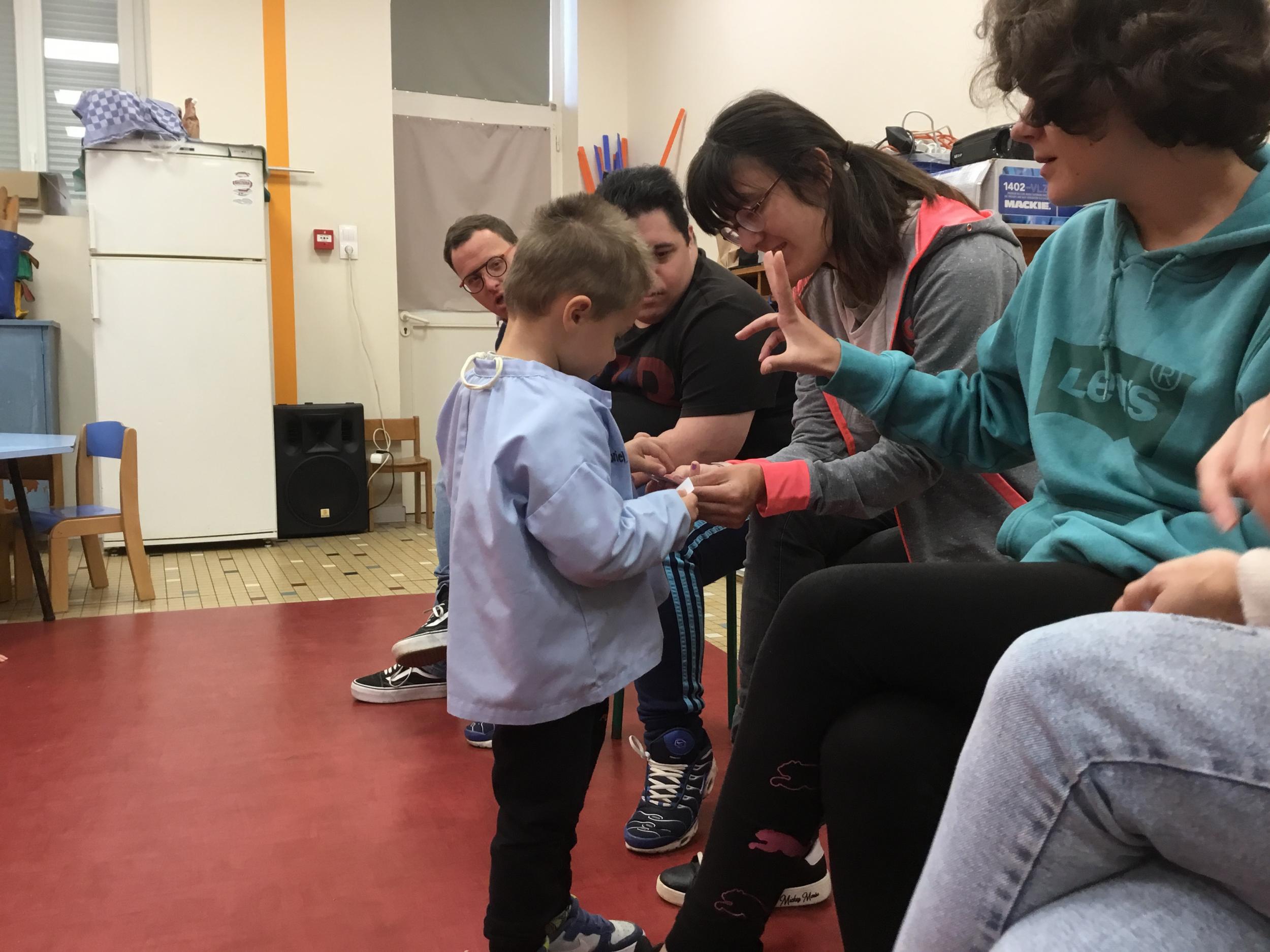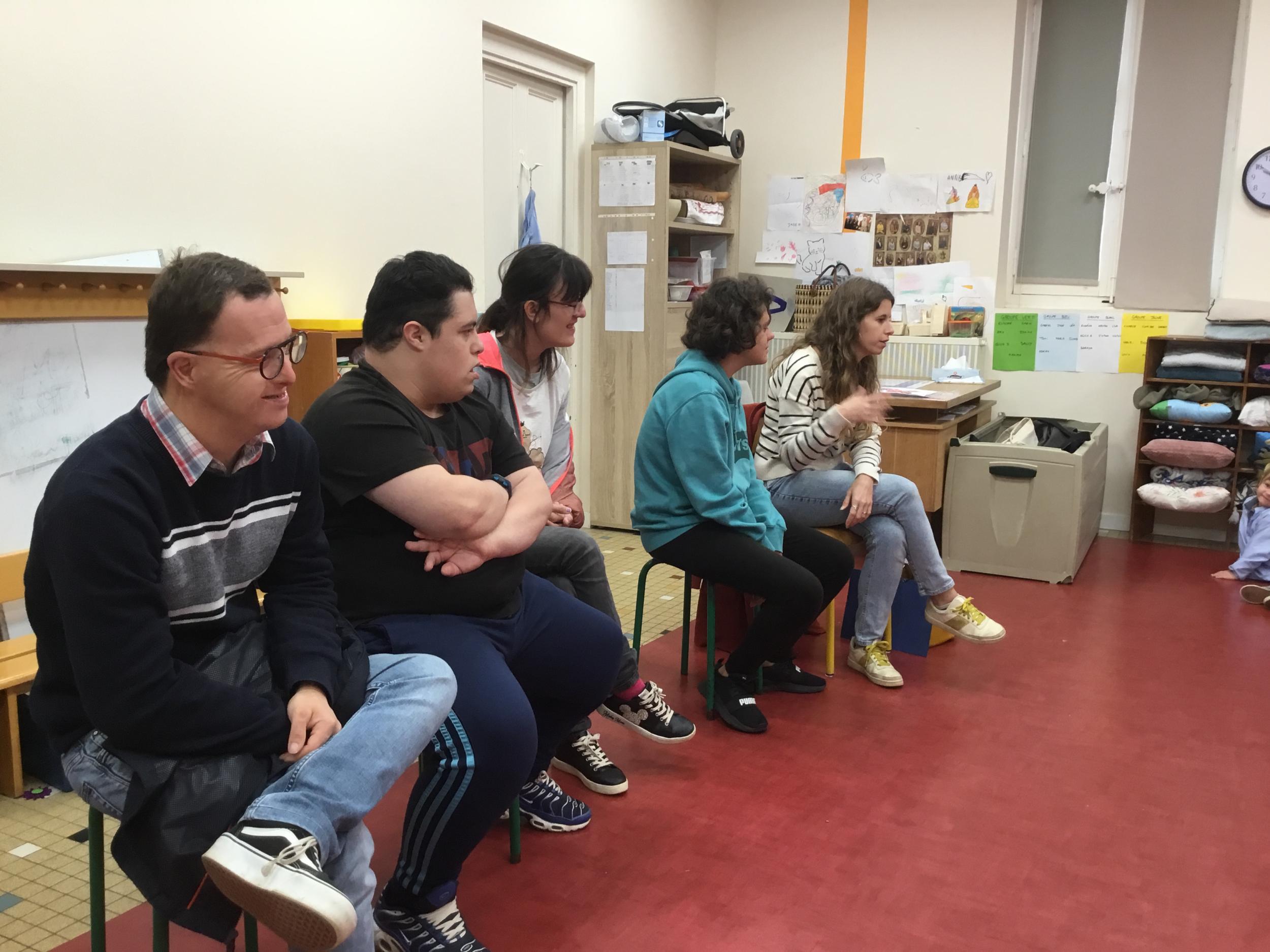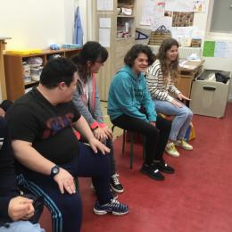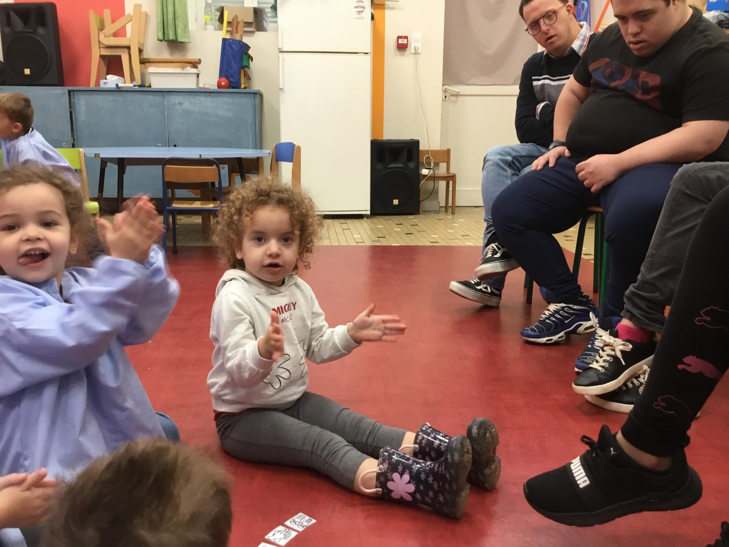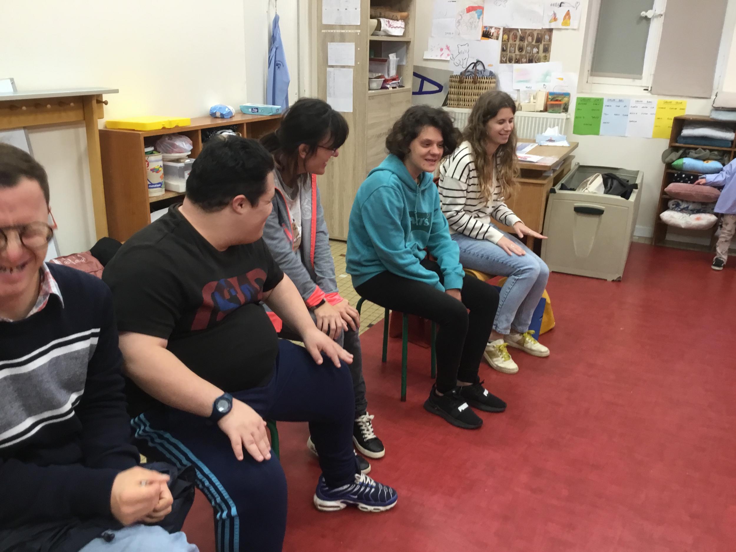 Cette semaine les élèves ont fait connaissance avec les résidents de Chanteclerc. Une fois par moi, ils travailleront autour du son. Ce lundi, ils ont tout d’abord cherché comment produire des sons avec leur corps et, ensuite, ils ont reproduit des rythmes à l’aide de pictogrammes.