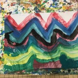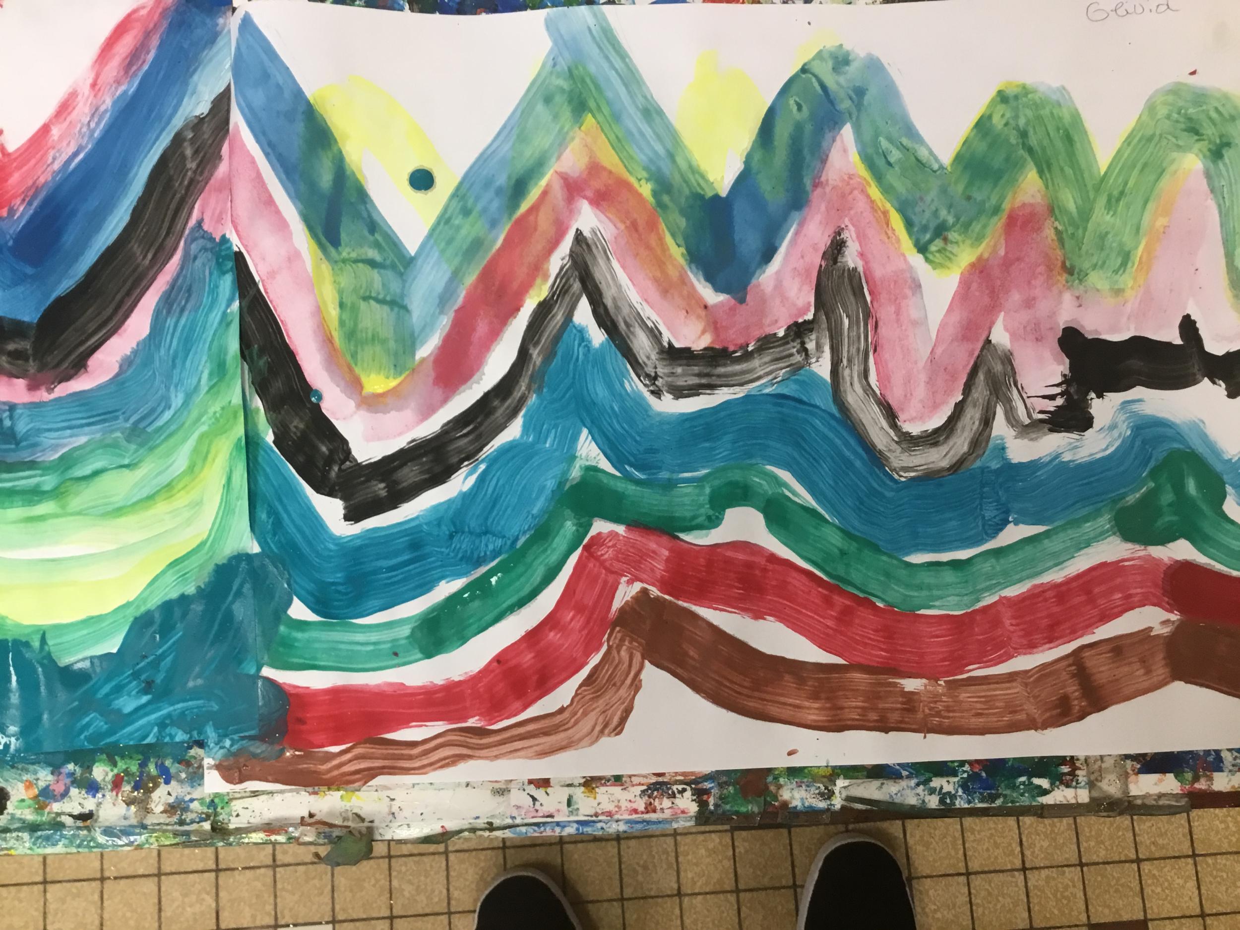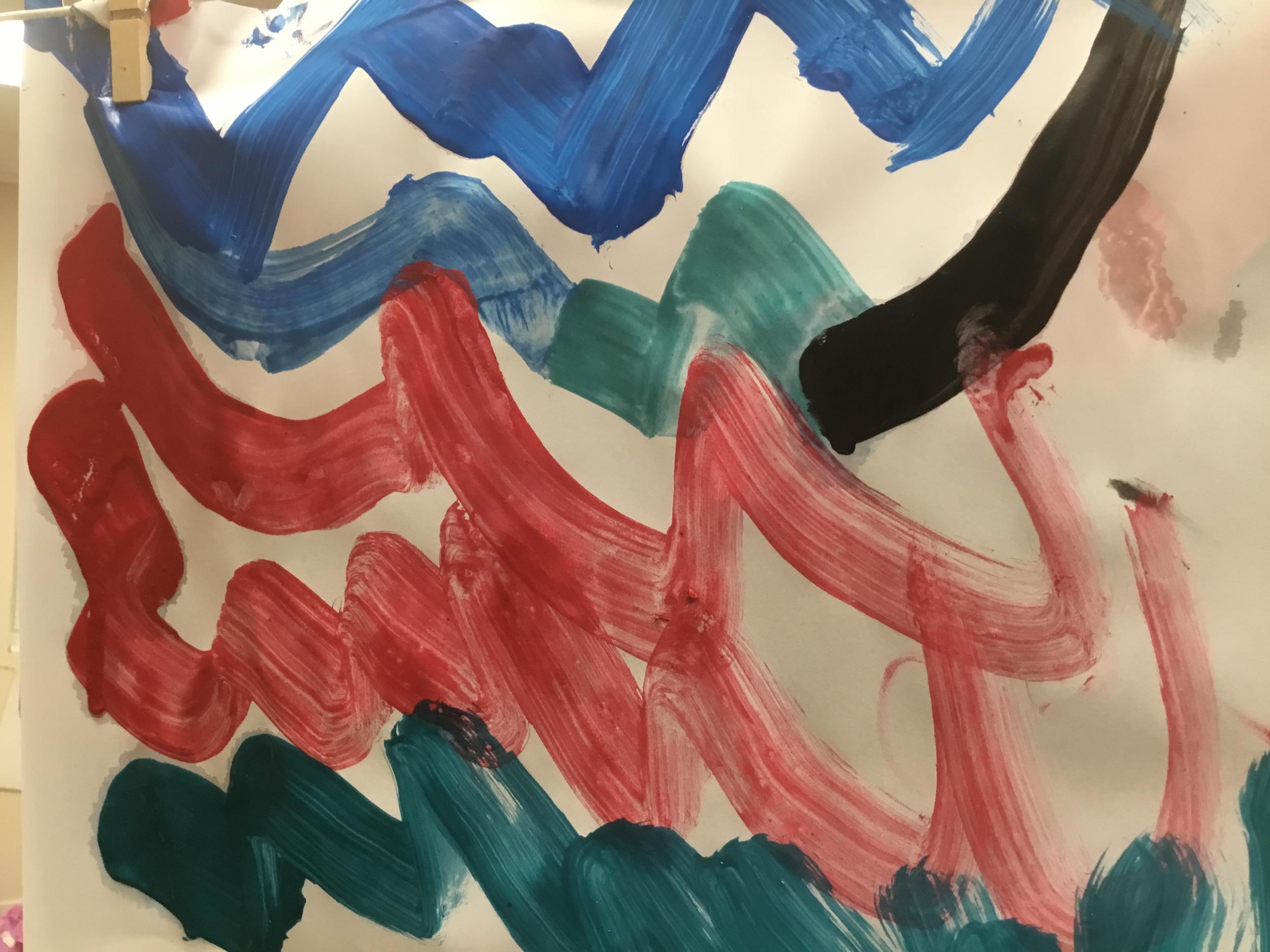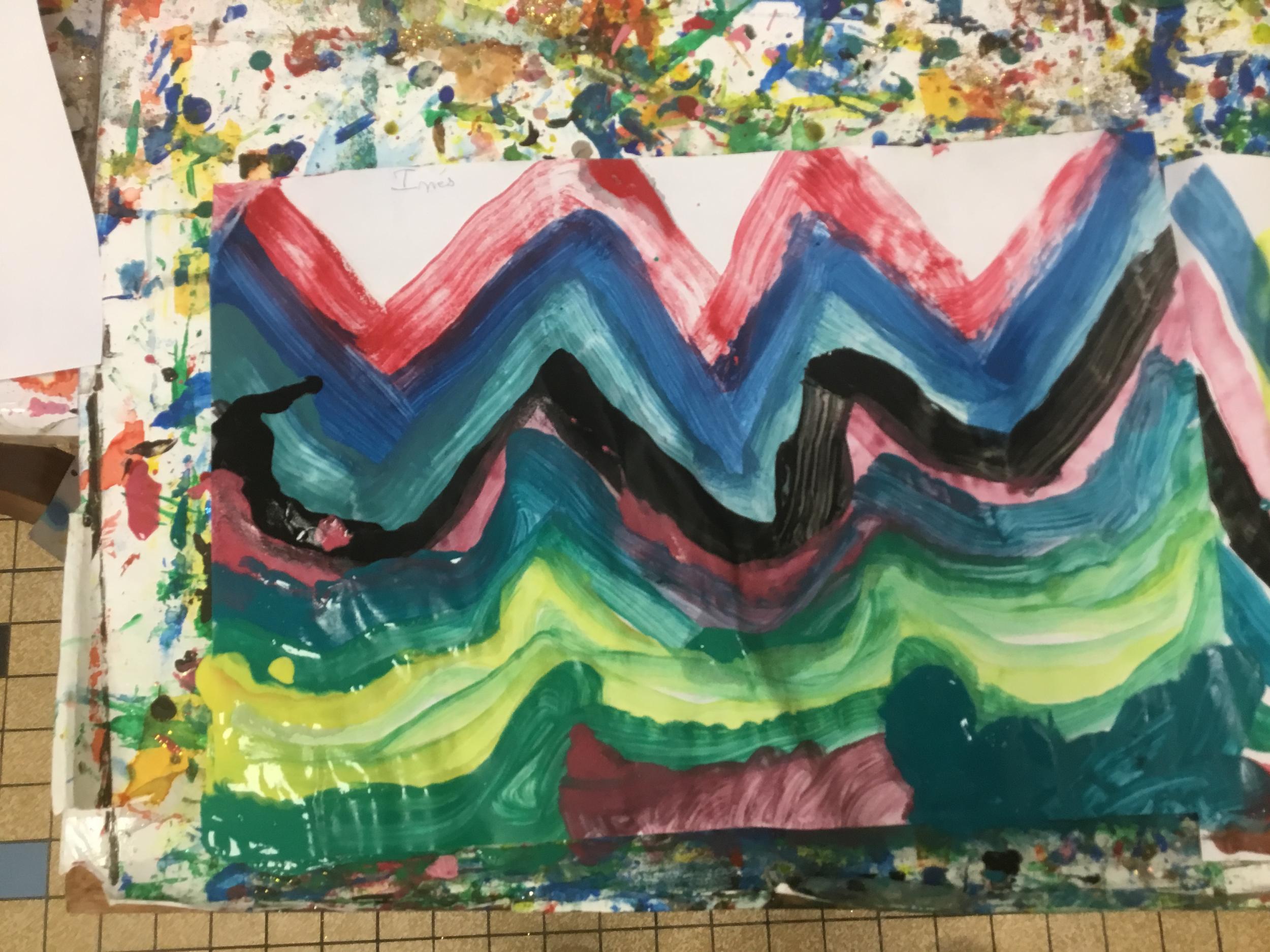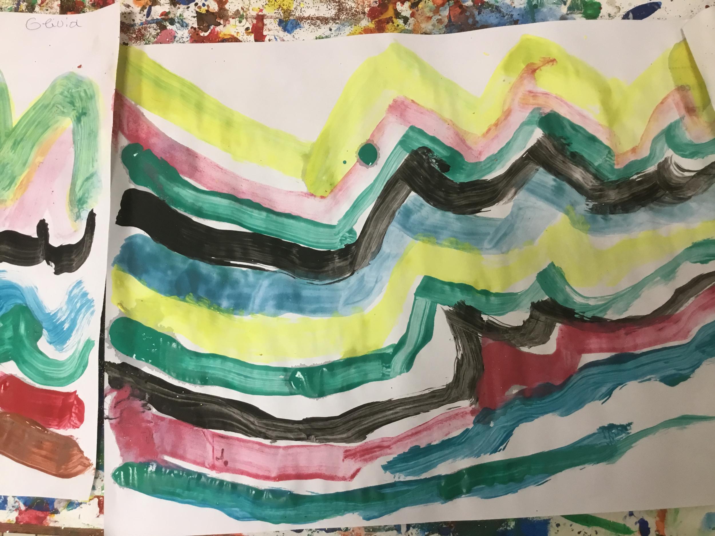 Petite et moyenne section 09/01/2023 Cet atelier consiste à tracer des lignes brisées avec des pinceaux pour apprendre à écrire les lettres majuscules V W Z K N M A Y X.