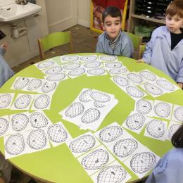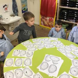 Le but du jeu était d’aller chercher une fève à la dînette pour chaque galette en un seul trajet sachant que chaque élève avait 6 galettes devant lui.Chaque élève a verbalisé oralement sa stratégie.