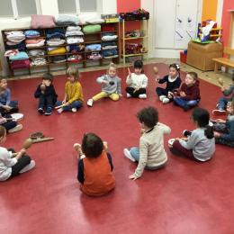 Cette année, pour aider les élèves à entendre les syllabes dans un mot et ainsi bien parler , lire et écrire , nous ferons des jeux rythmiques en chantant des phonèmes avec des instruments de percussion.
