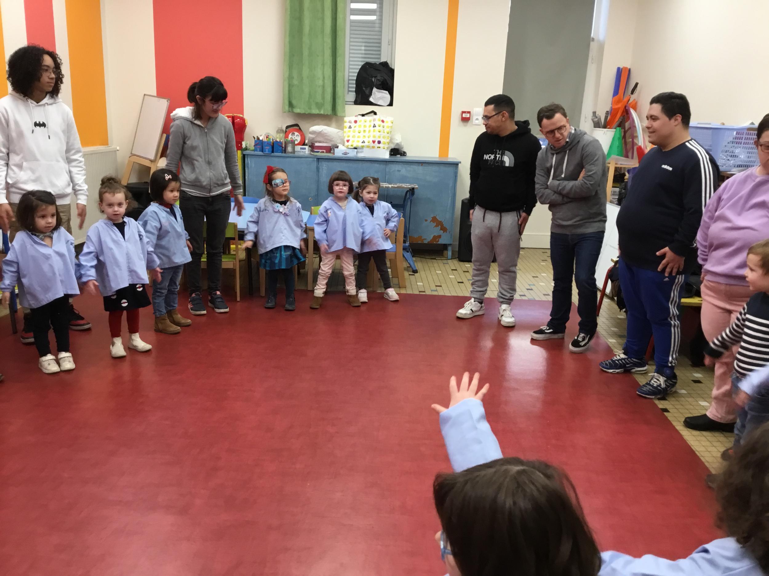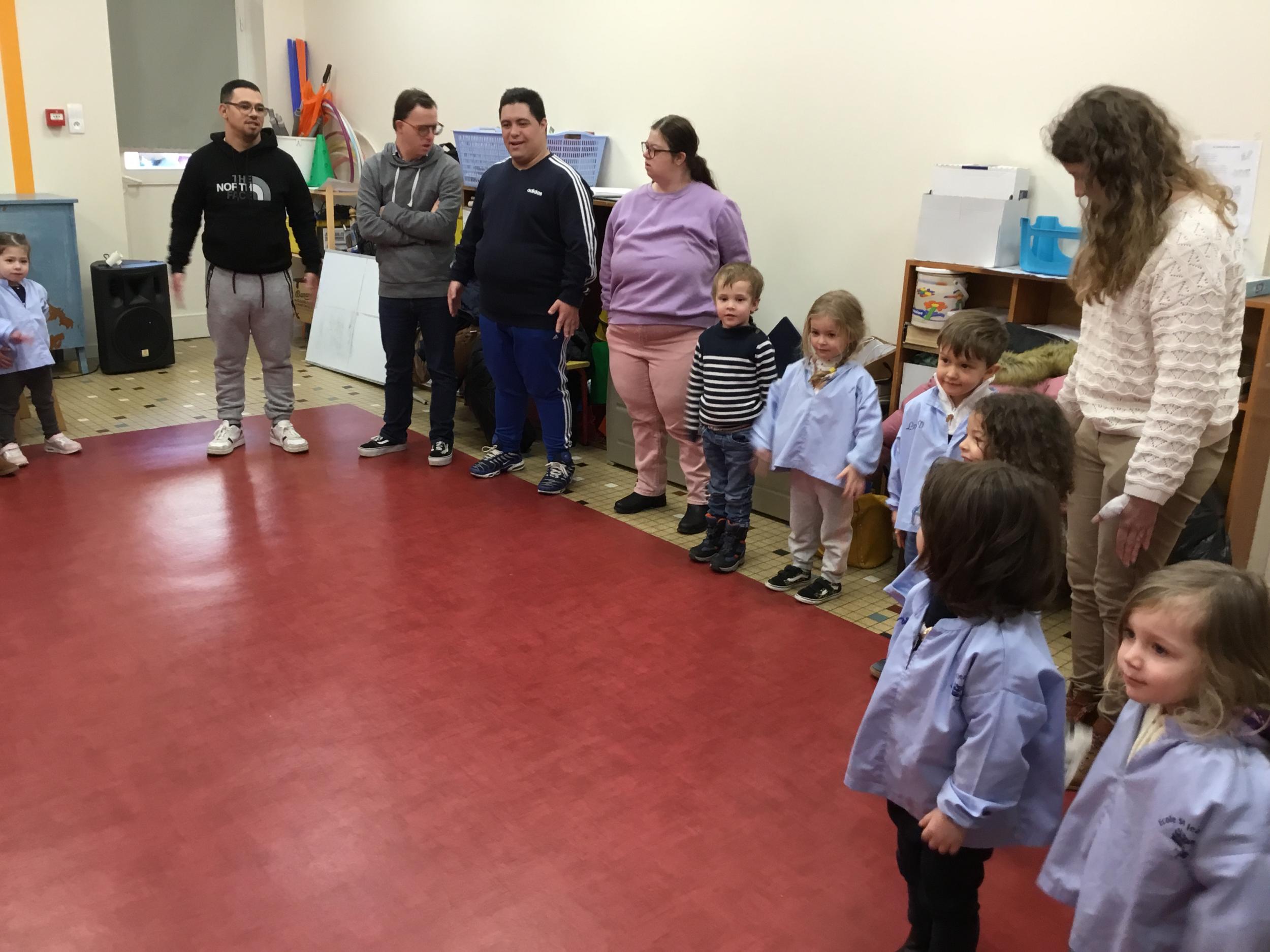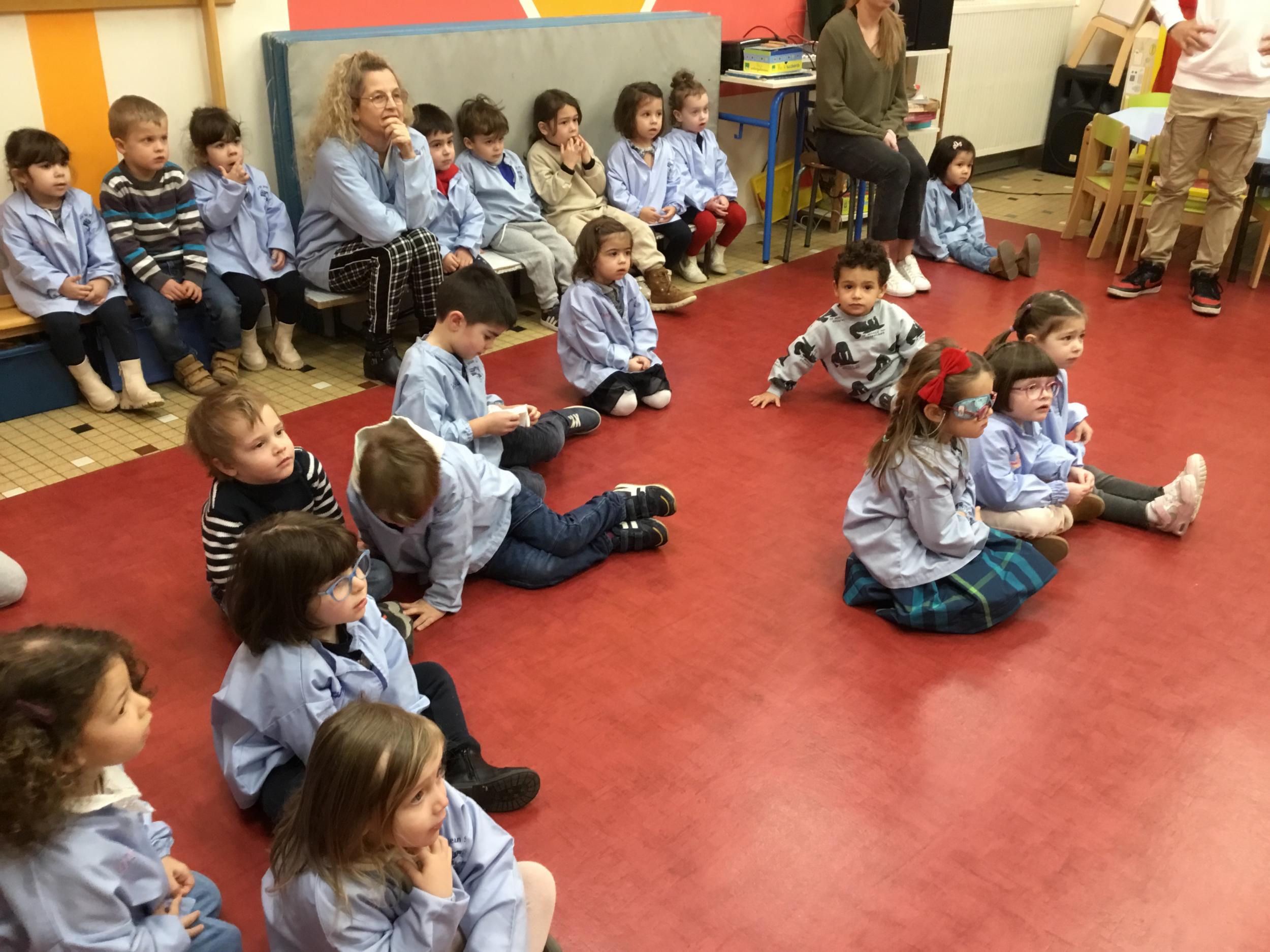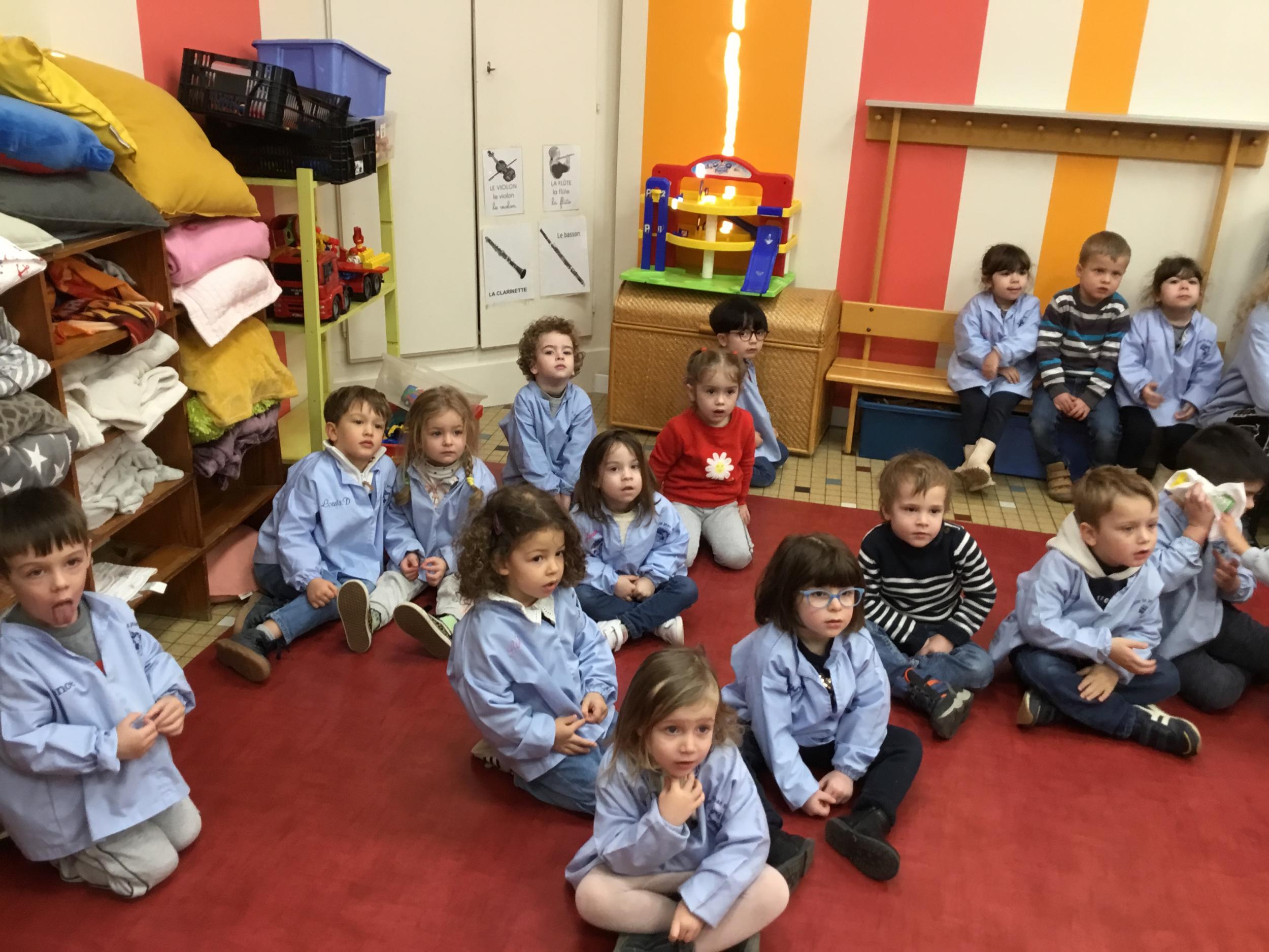 Ce lundi, les élèves de petite section ont débuté leur premier atelier qui se déroulera un lundi par mois jusqu’au mois de juin autour du son animé par l’éducatrice et les résidents du foyer de vie de Chantecler.