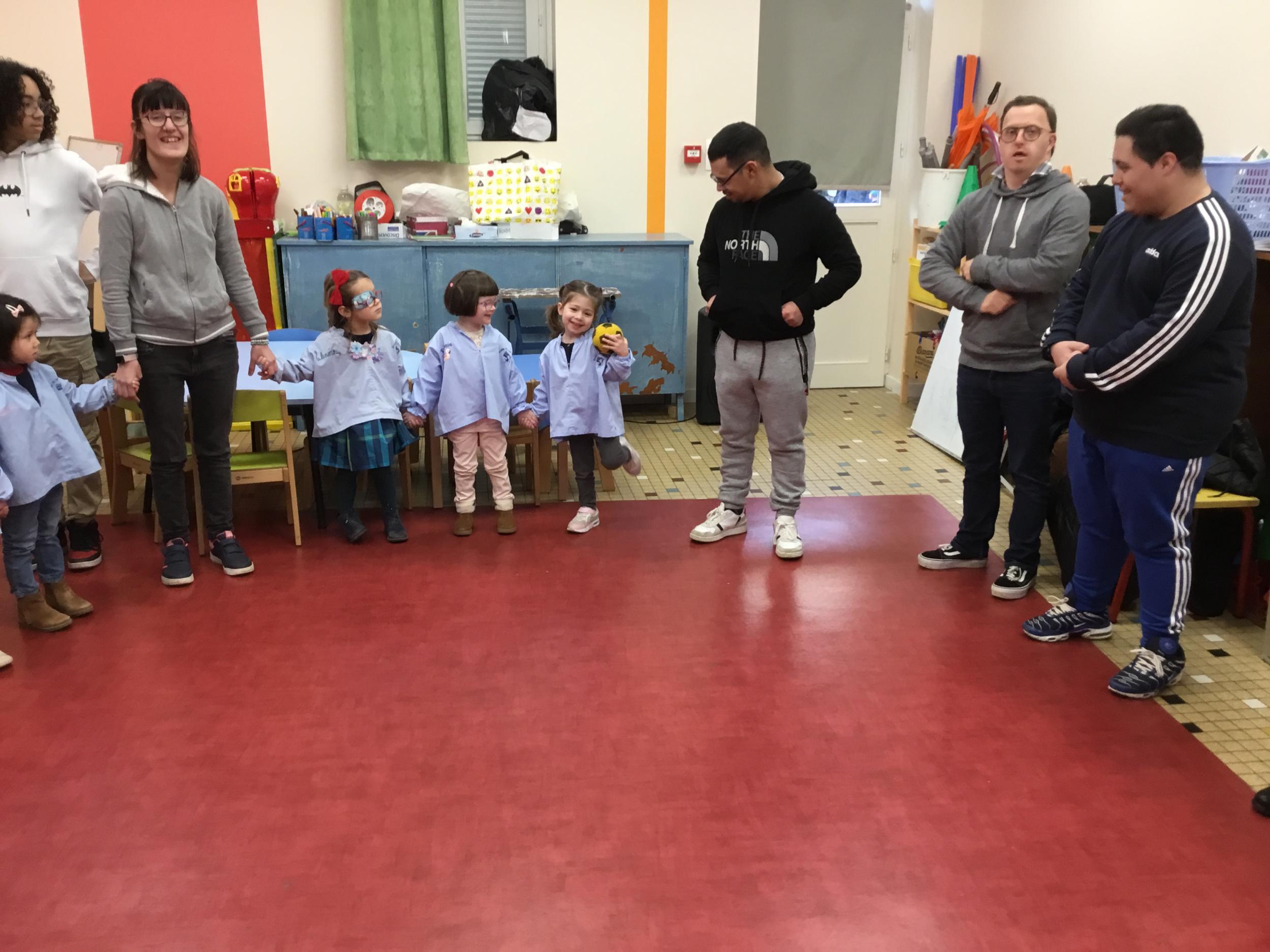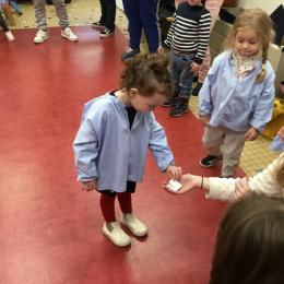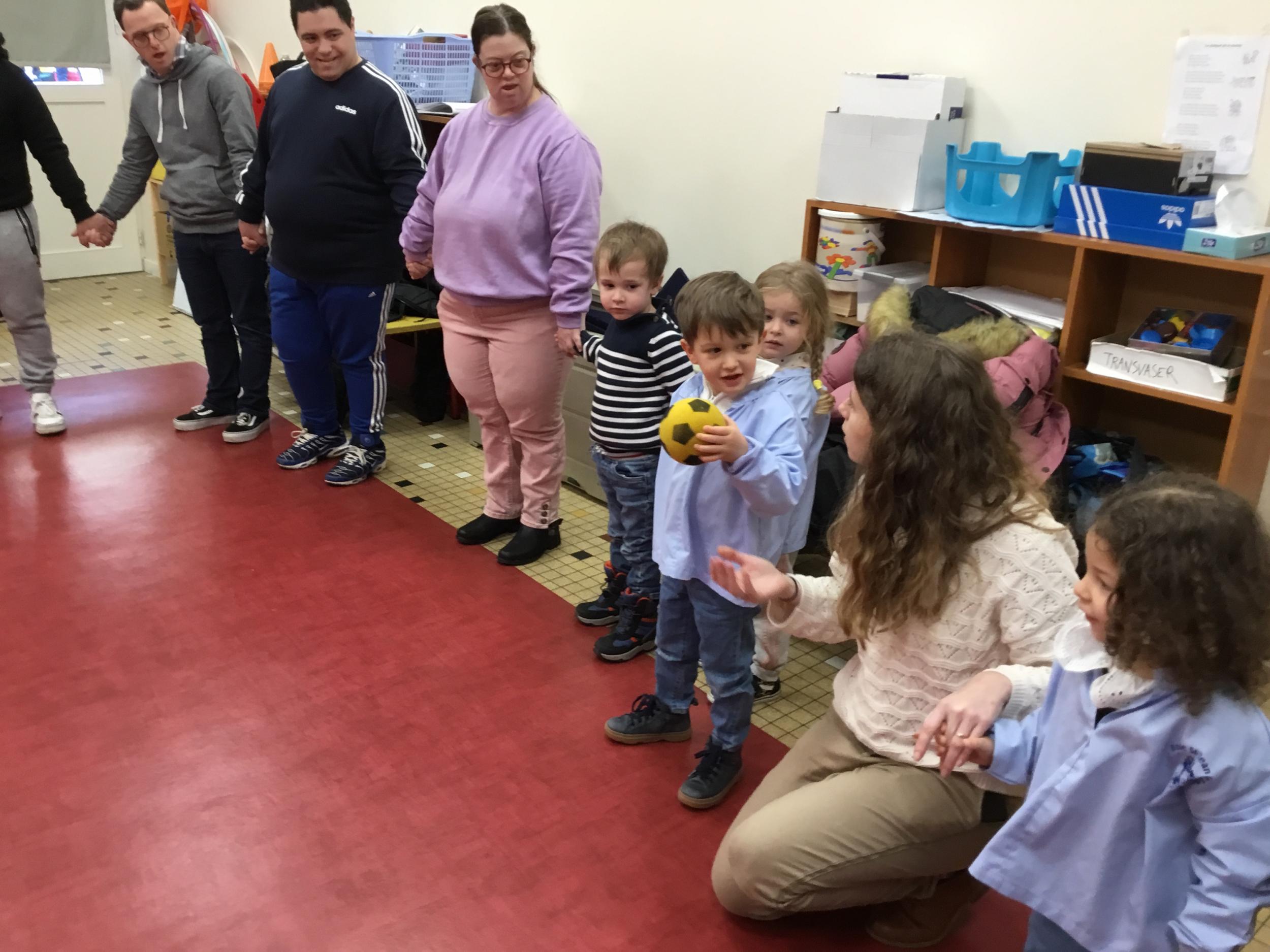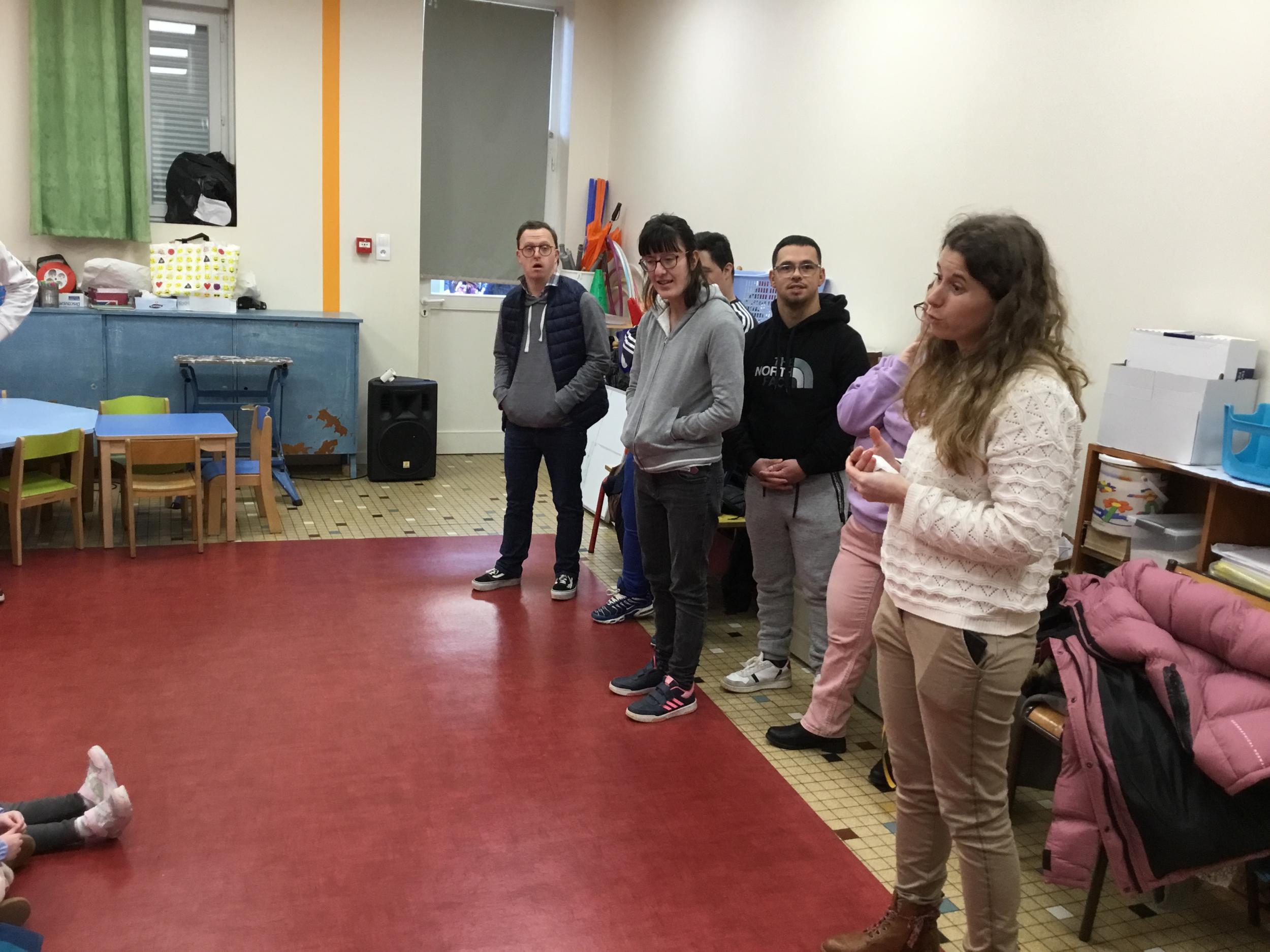 Ce lundi, les élèves de petite section ont débuté leur premier atelier qui se déroulera un lundi par mois jusqu’au mois de juin autour du son animé par l’éducatrice et les résidents du foyer de vie de Chantecler.