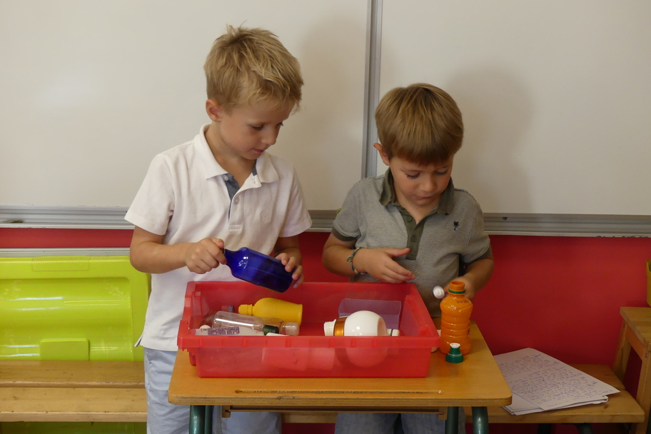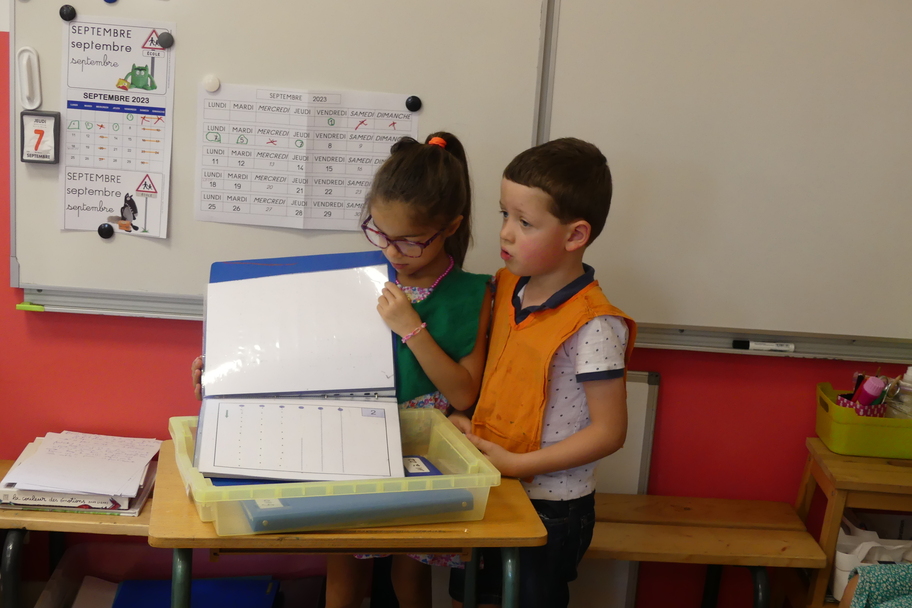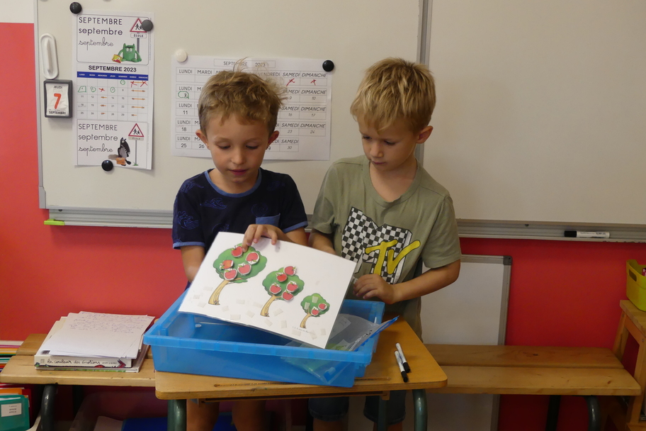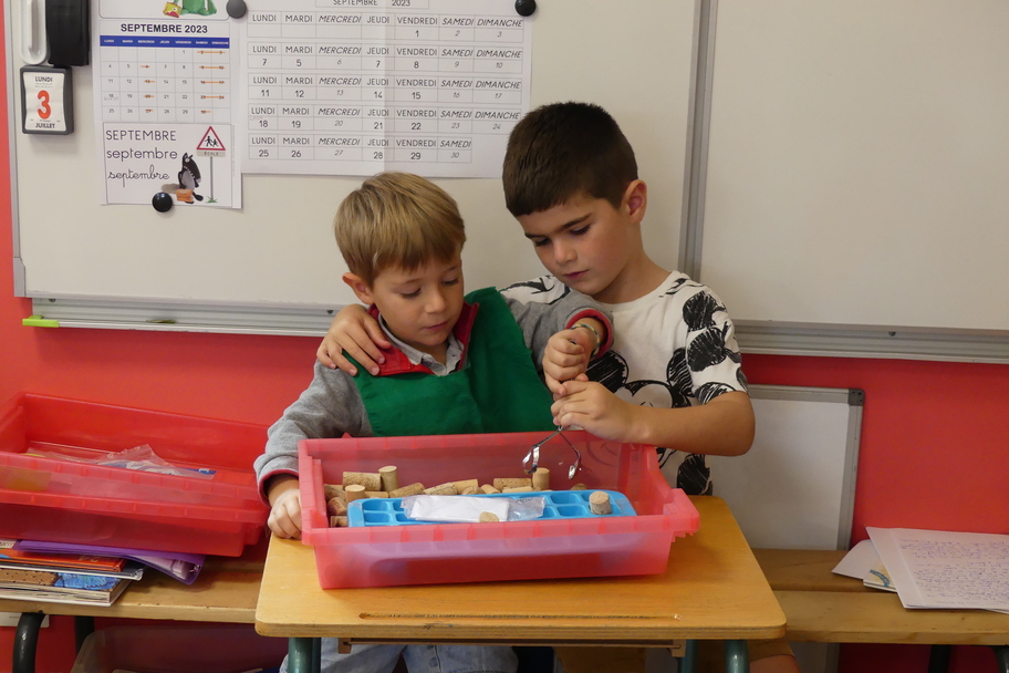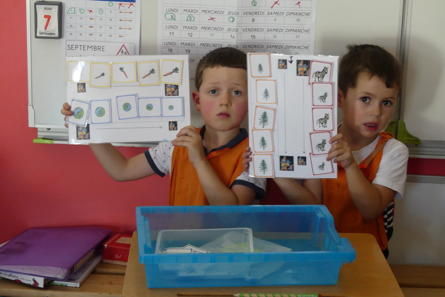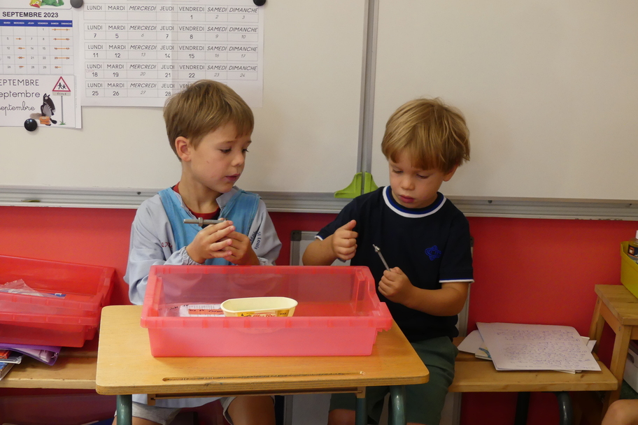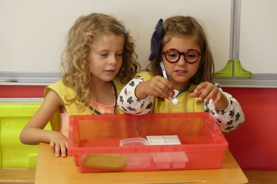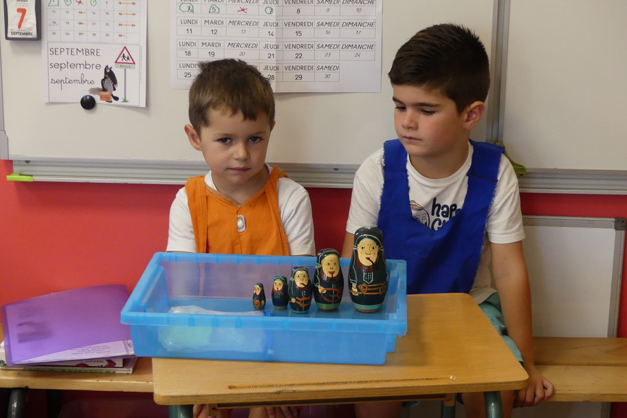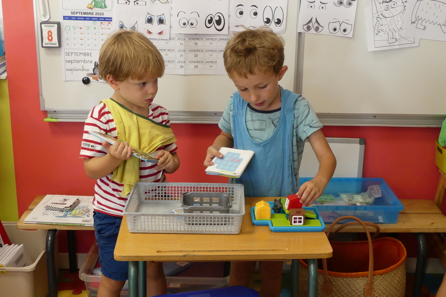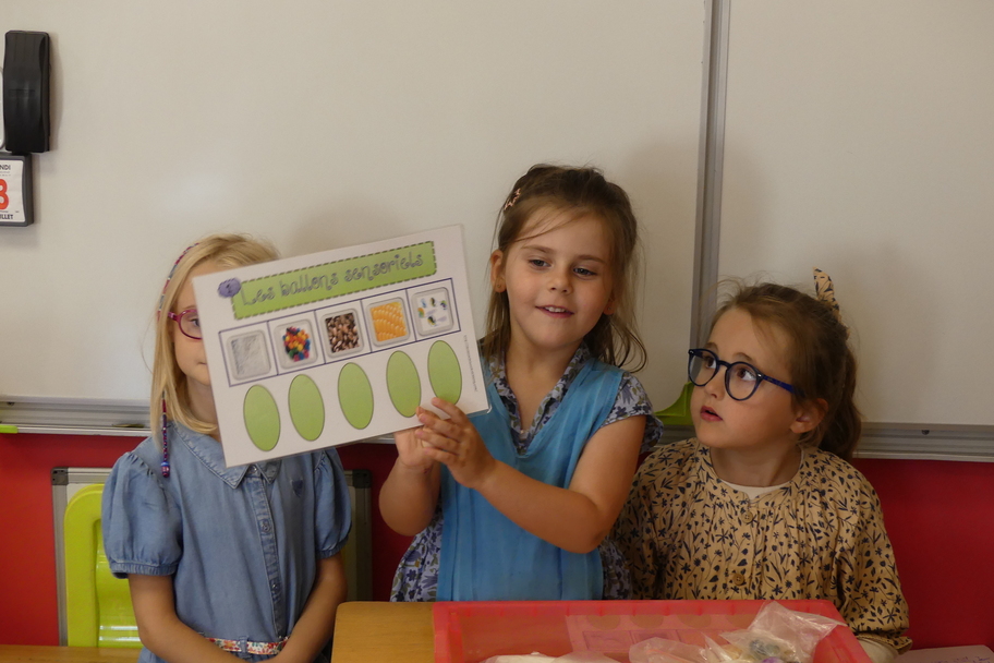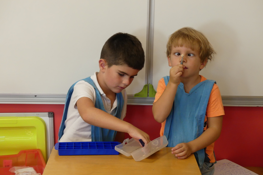Les quinze premiers jours d'école sont principalement consacrés à la découverte des ateliers de type Montessori. Ces ateliers permettent à l'élève d'apprendre à travers le jeu et la manipulation. Il est intéressant que ce soit les élèves qui découvrent ce matériel en le manipulant librement pour en découvrir le fonctionnement, les règles... Ensuite, après cette phase de manipulation par deux, ils expliquent leur matériel au reste de la classe, s'appropriant ainsi le matériel et ayant leurs propres mots pour l'expliquer aux autres élèves.
