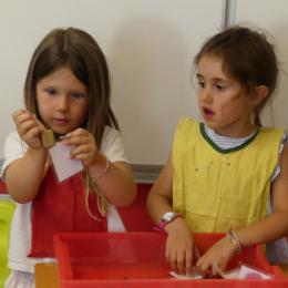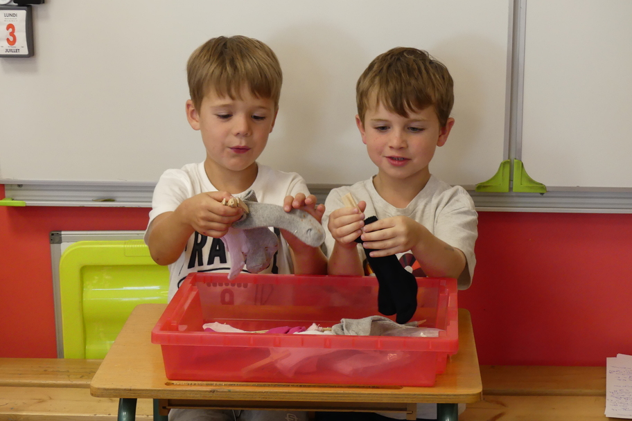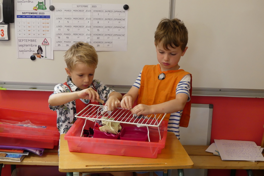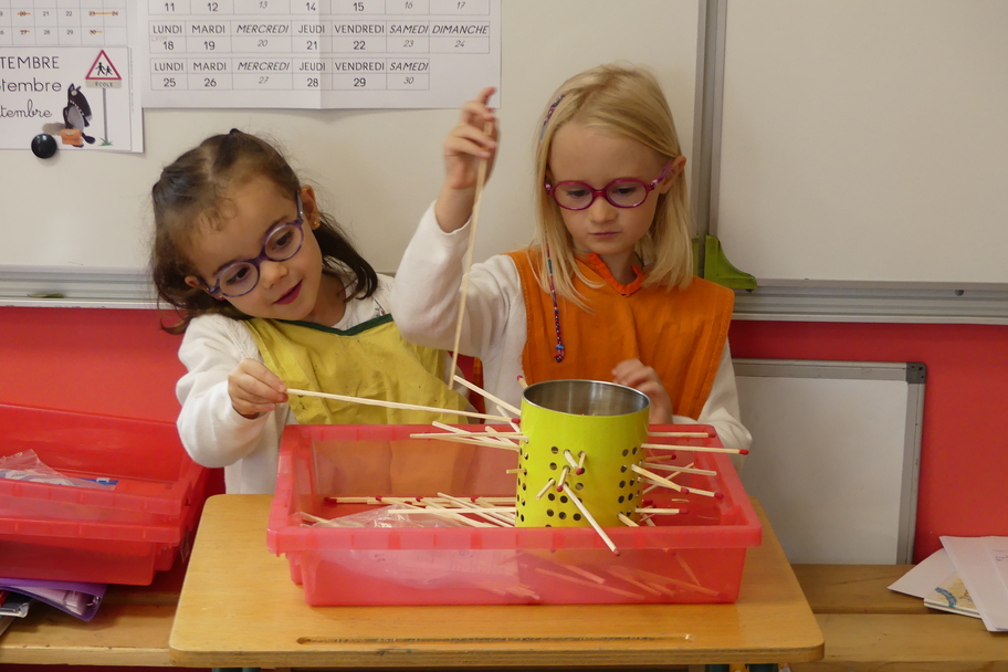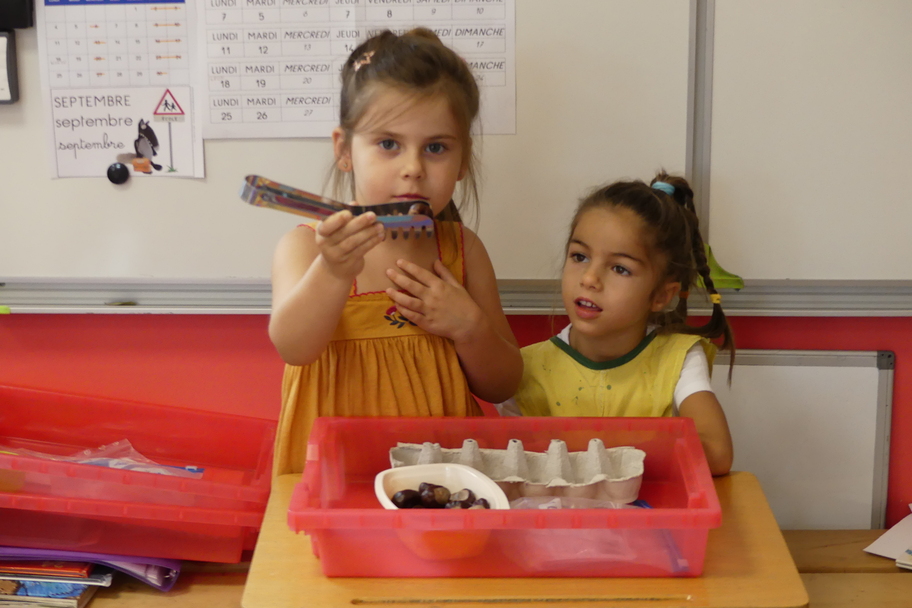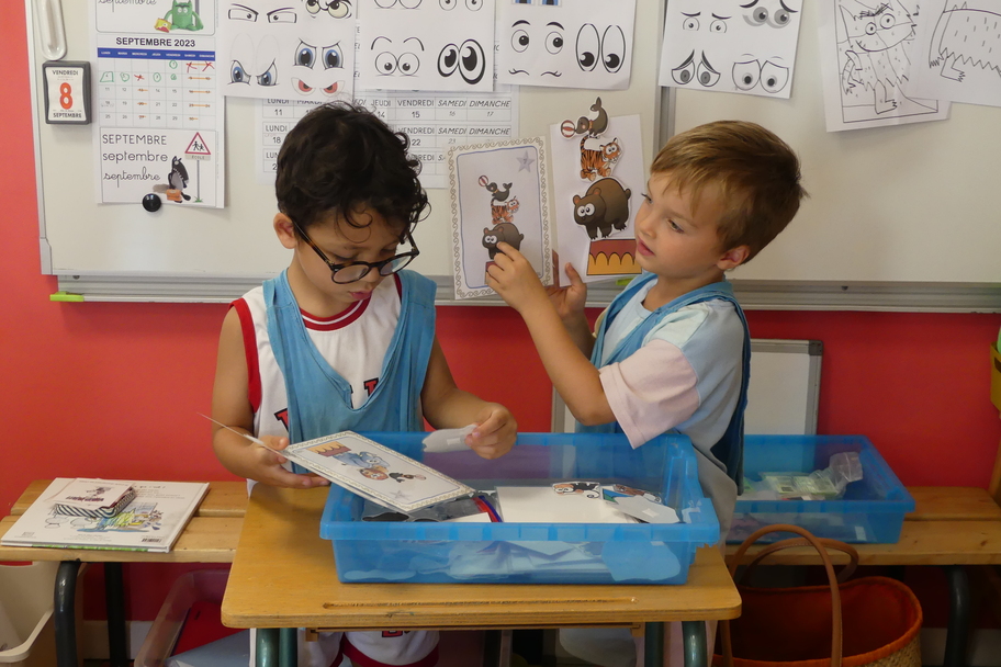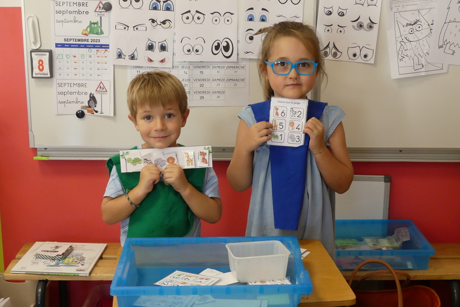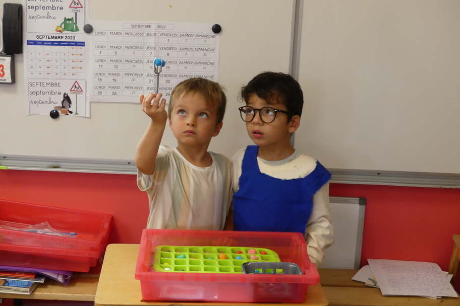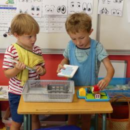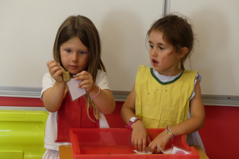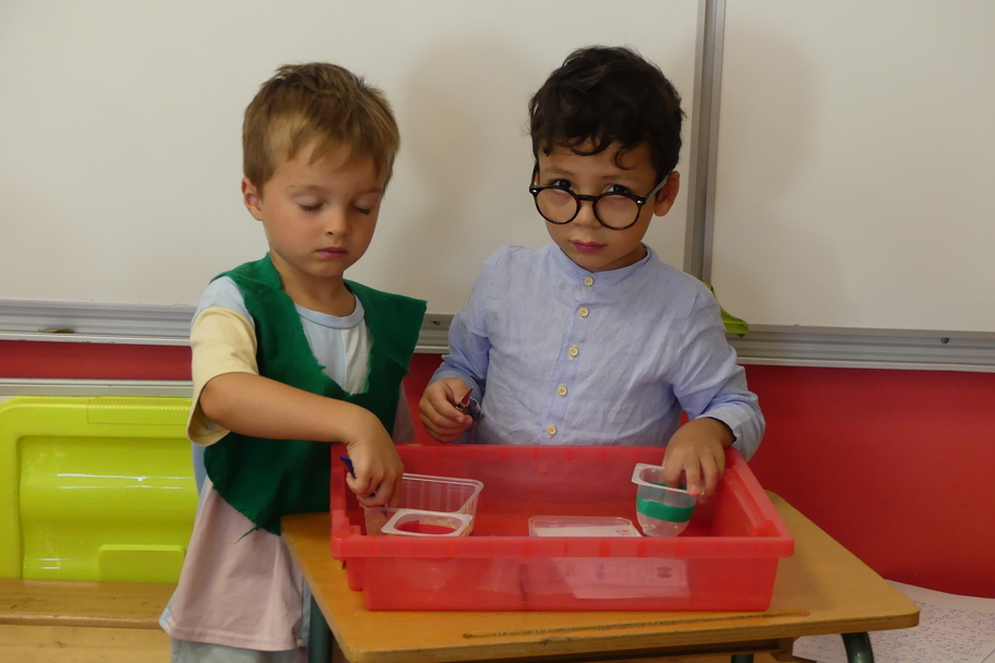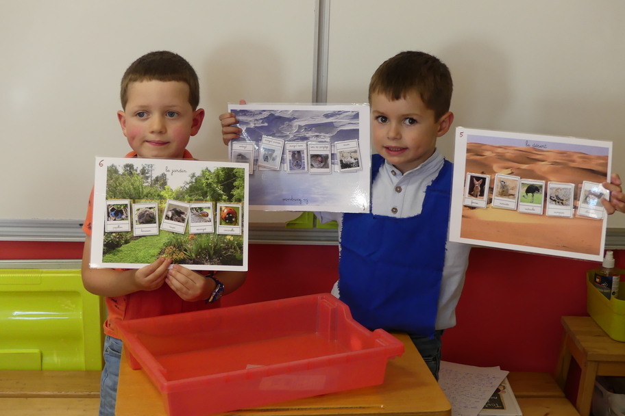 Les quinze premiers jours d'école sont principalement consacrés à la découverte des ateliers de type Montessori. Ces ateliers permettent à l'élève d'apprendre à travers le jeu et la manipulation. Il est intéressant que ce soit les élèves qui découvrent ce matériel en le manipulant librement pour en découvrir le fonctionnement, les règles... Ensuite, après cette phase de manipulation par deux, ils expliquent leur matériel au reste de la classe, s'appropriant ainsi le matériel et ayant leurs propres mots pour l'expliquer aux autres élèves.