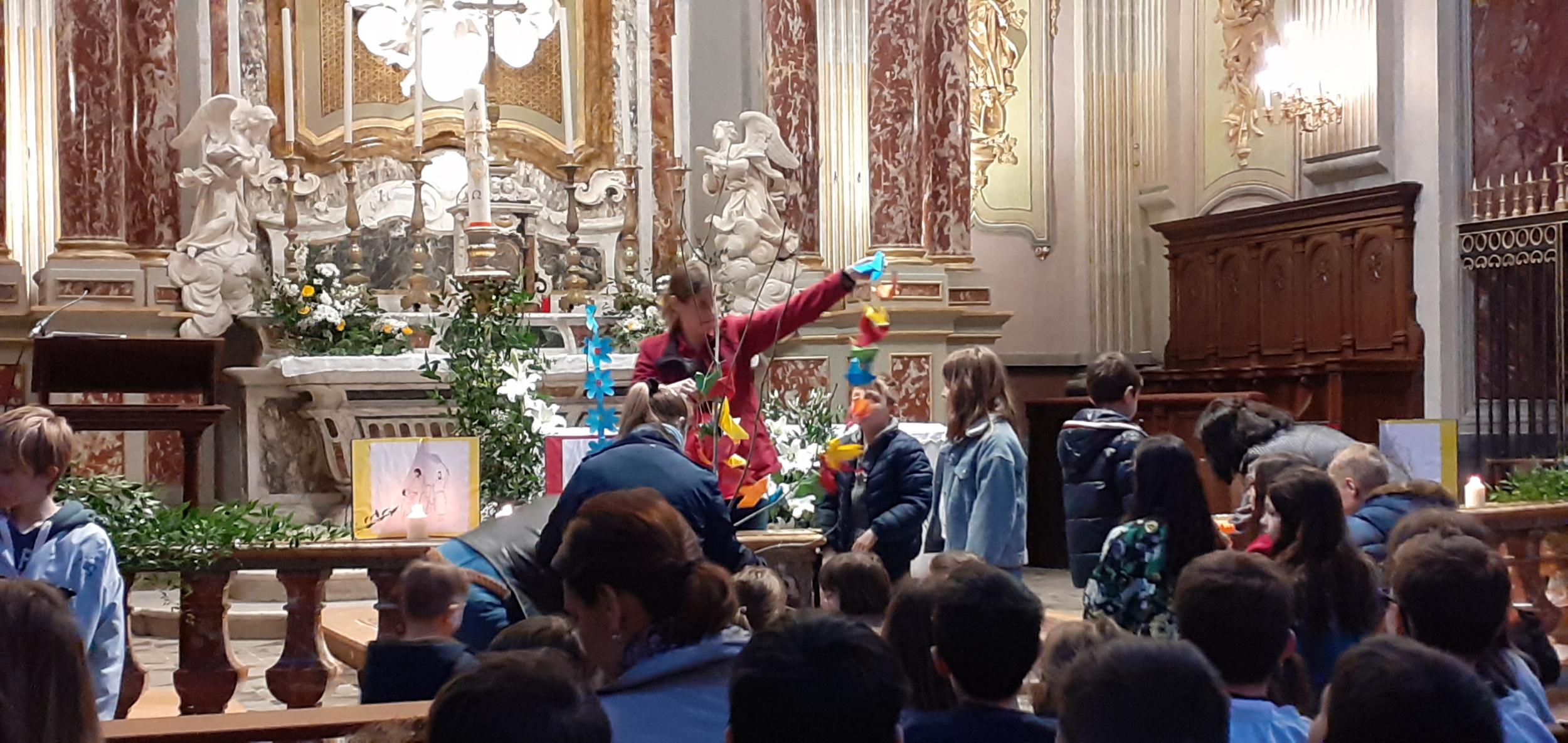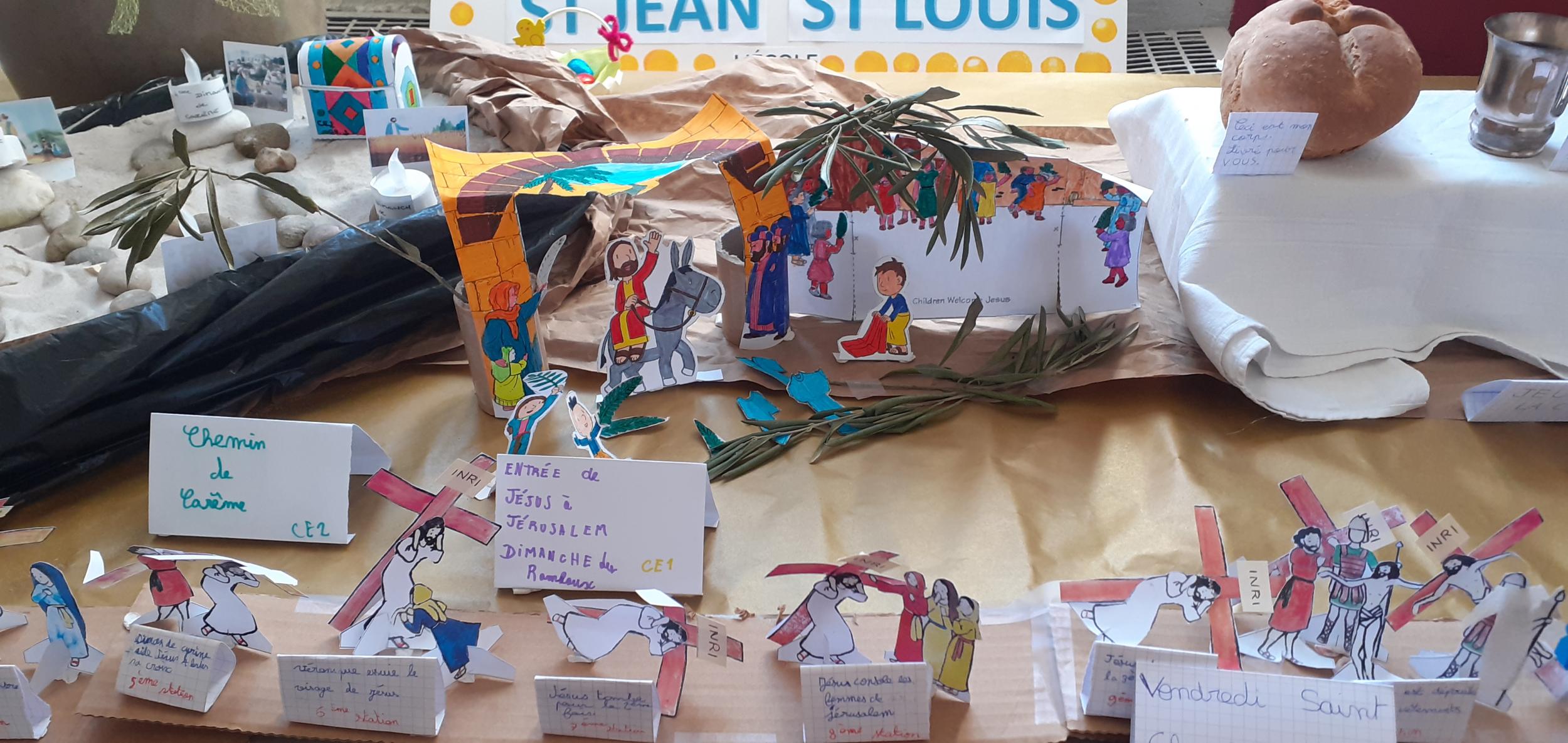 - Les CE1 ont représenté l'entrée de Jésus à Jérusalem avec les Rameaux.