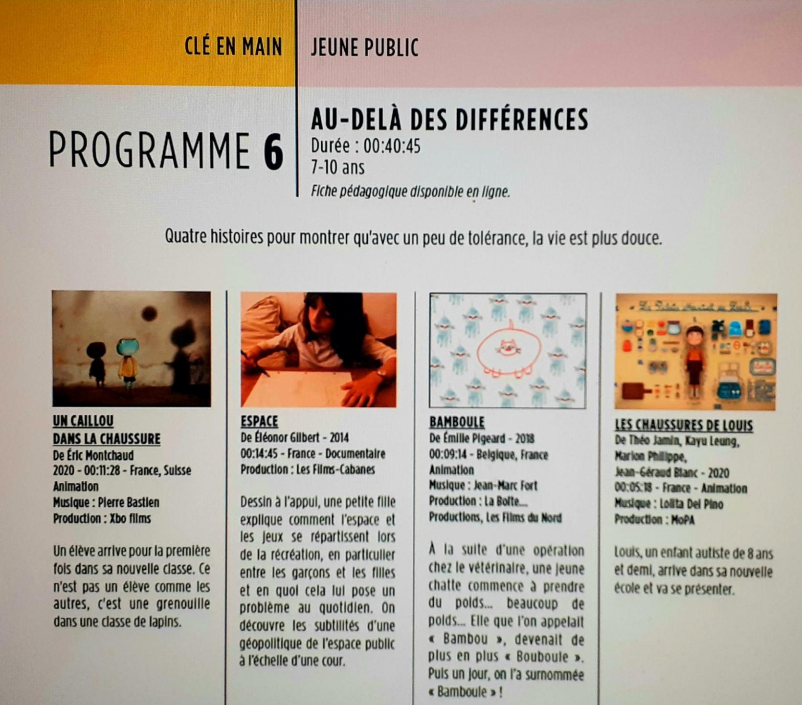 Dans le cadre de la fête du Court-Métrage, les CM1 ont visionné 4 films très courts sur le thème "Au-delà des différences...", recommandés par le Ministère de l'Education Nationale.