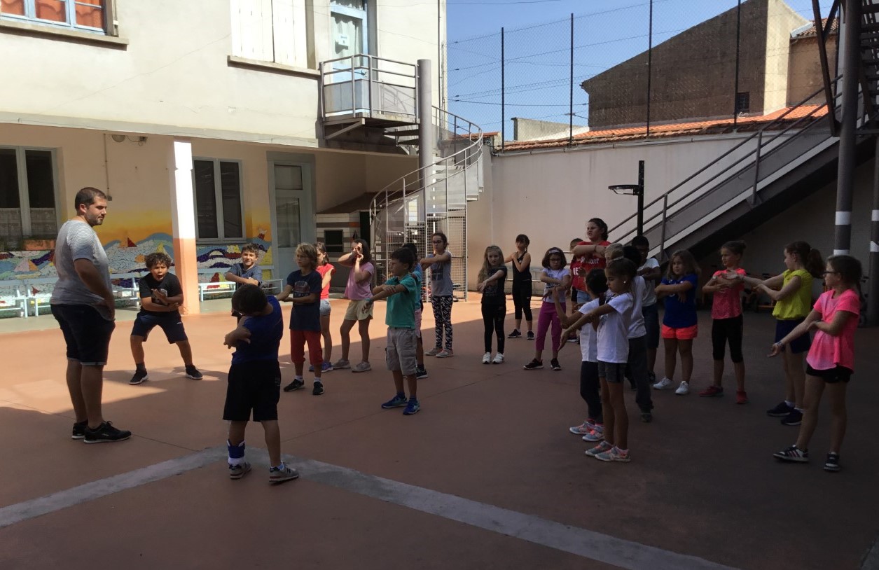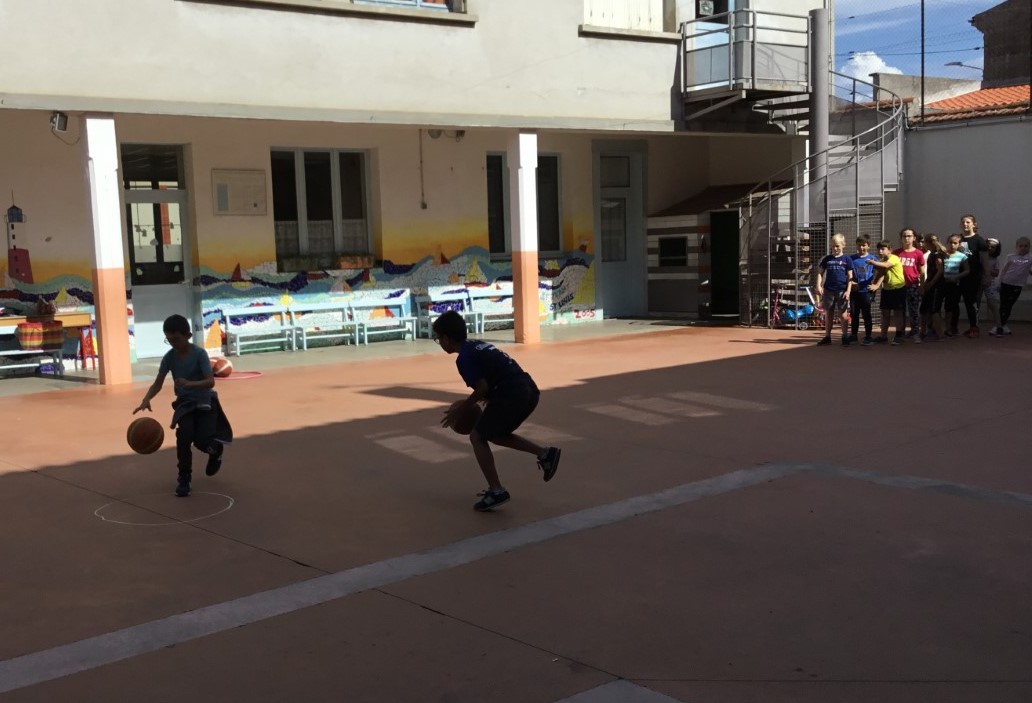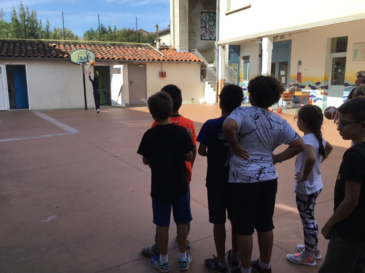 Tous les mardis après-midi, les CM1 ont une séance de basket avec Grégory : des exercices pour apprendre à dribbler, se faire des passes et marquer des paniers.