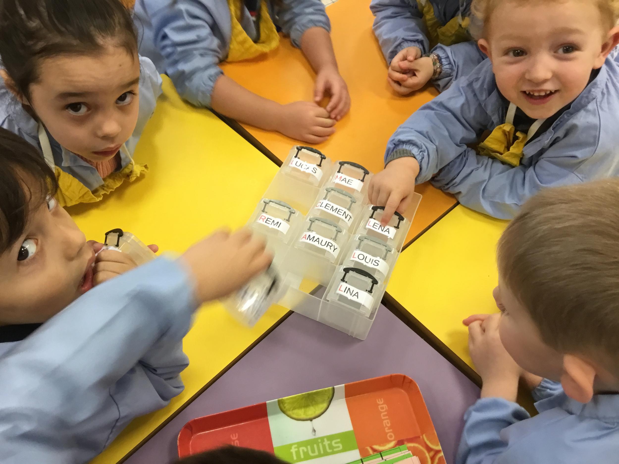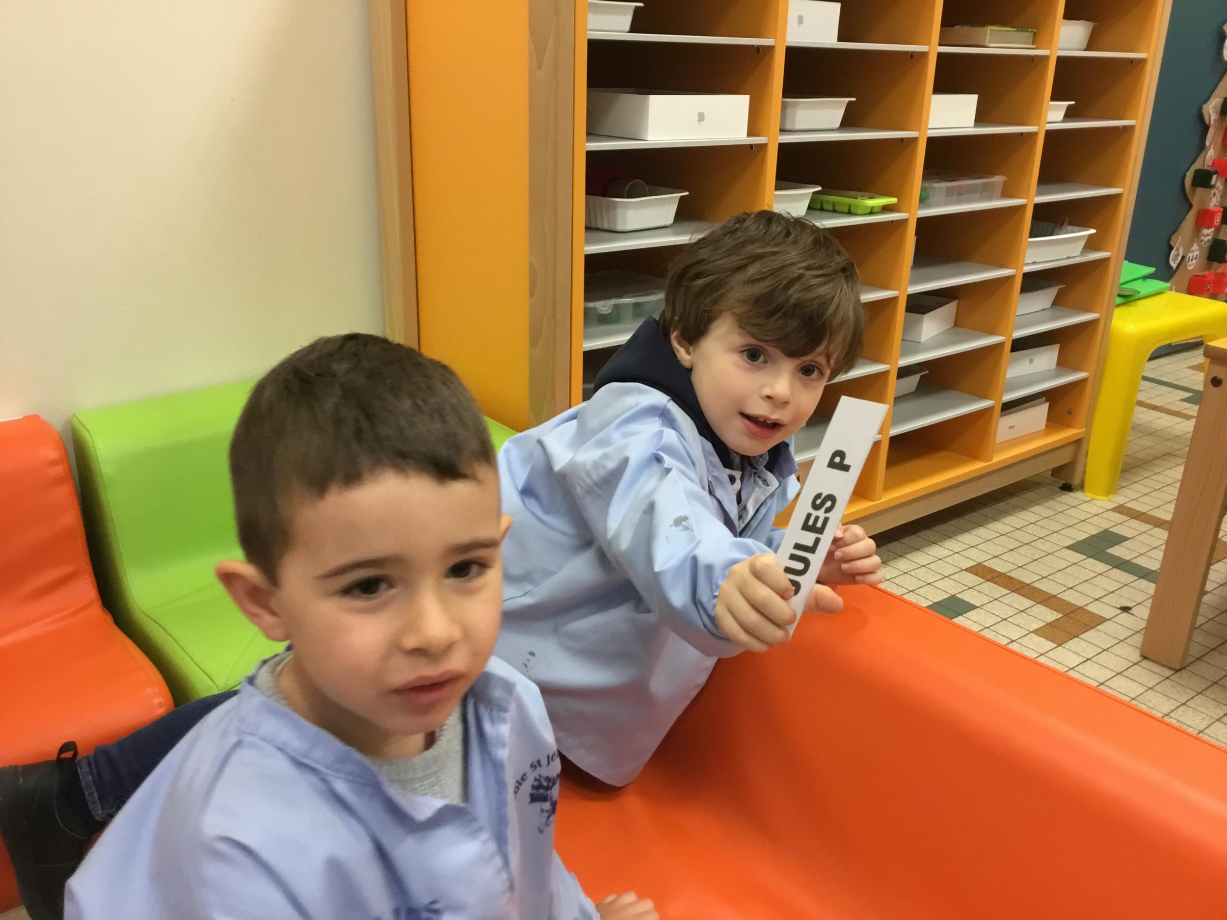De retour des vacances, les élèves se sont remis au travail avec grand plaisir. Nous avons repris les activités sur la reconnaissance de leur prénom et de son initiale