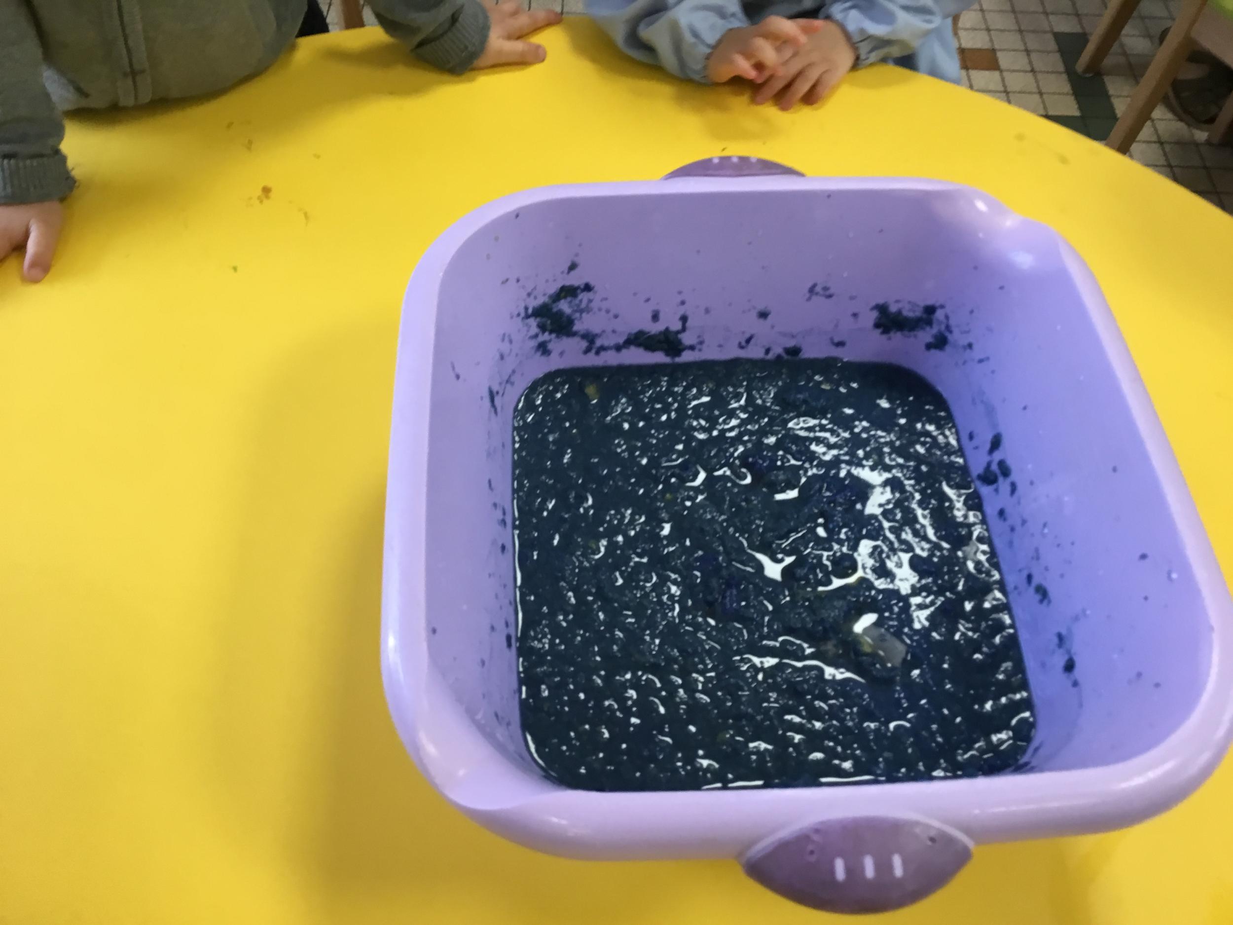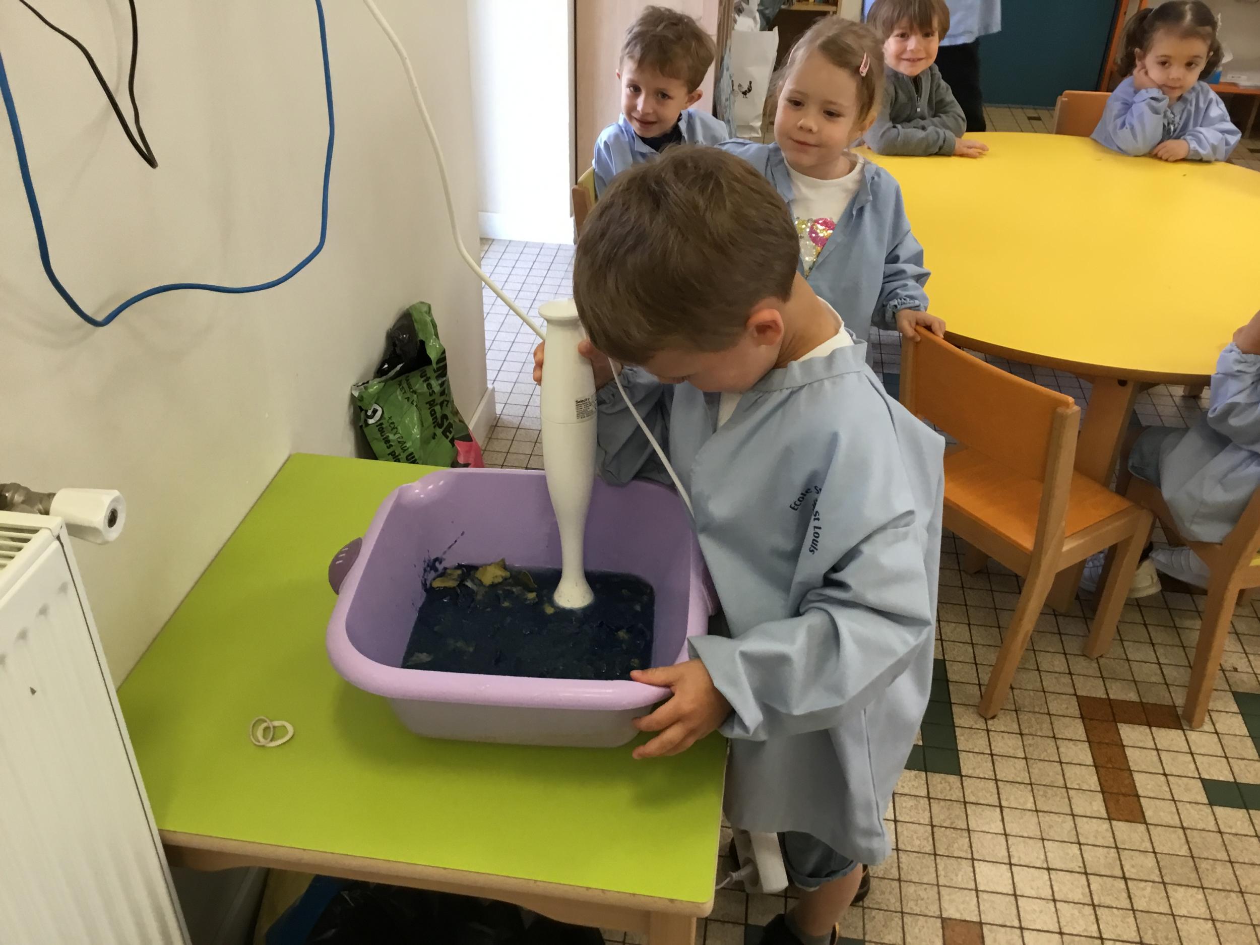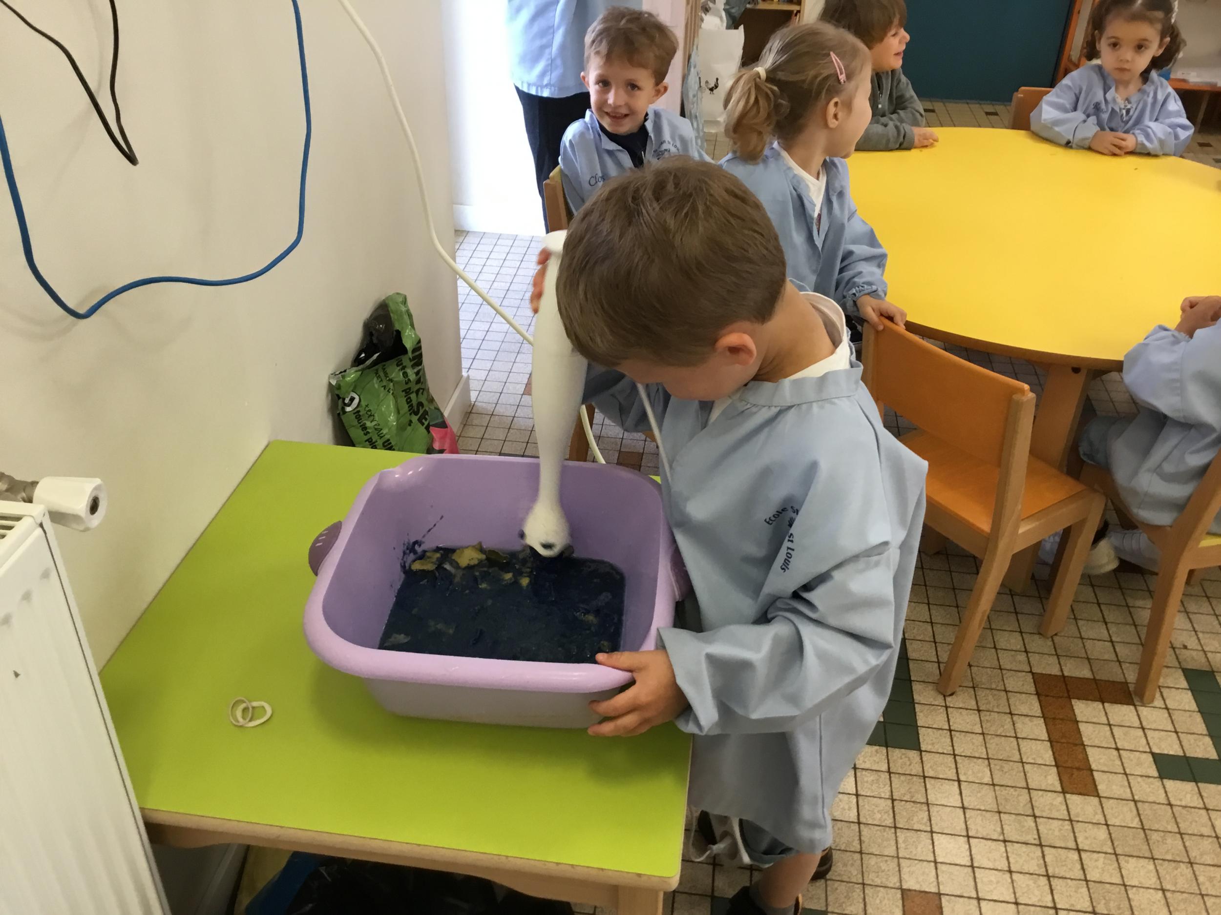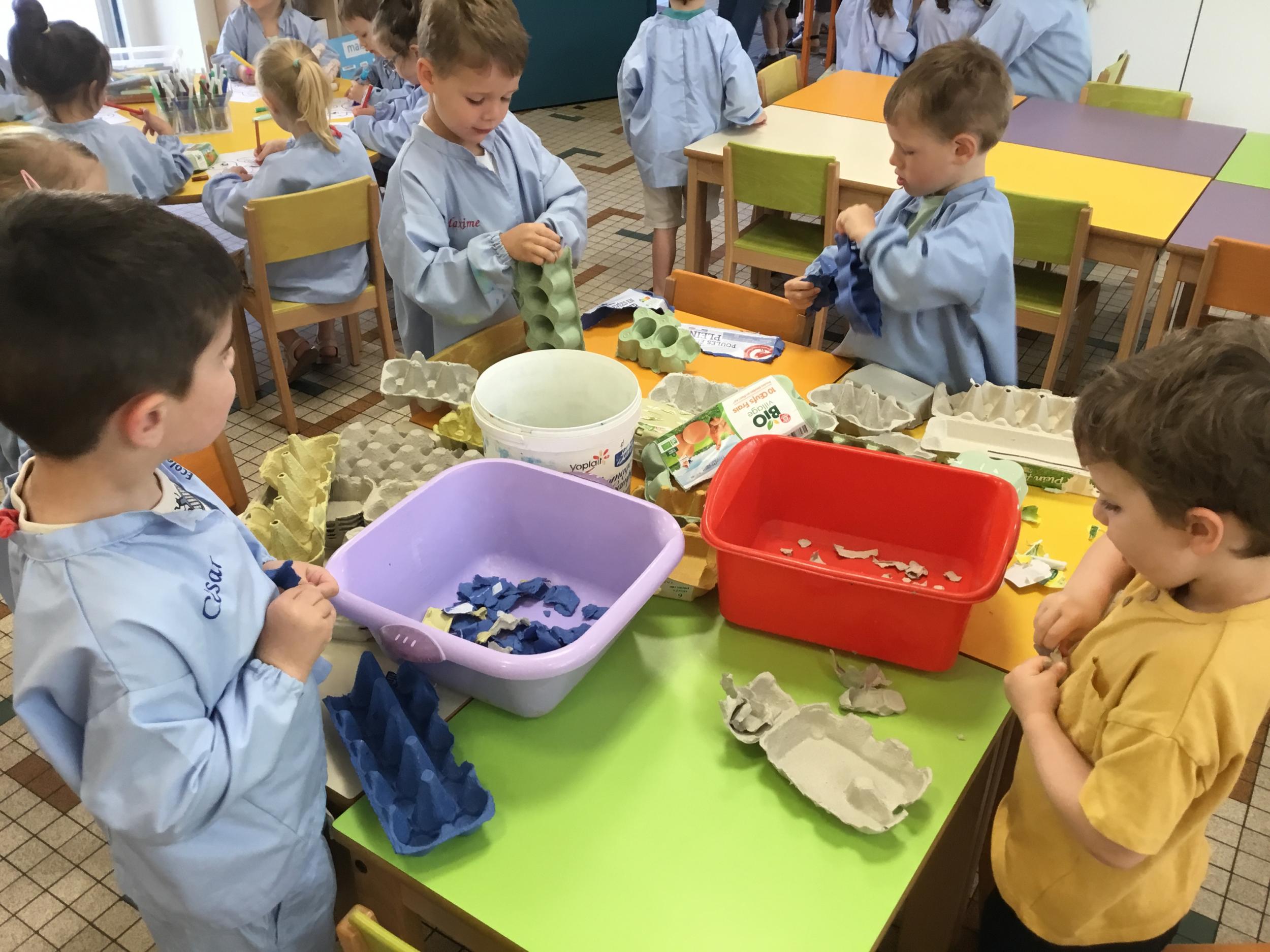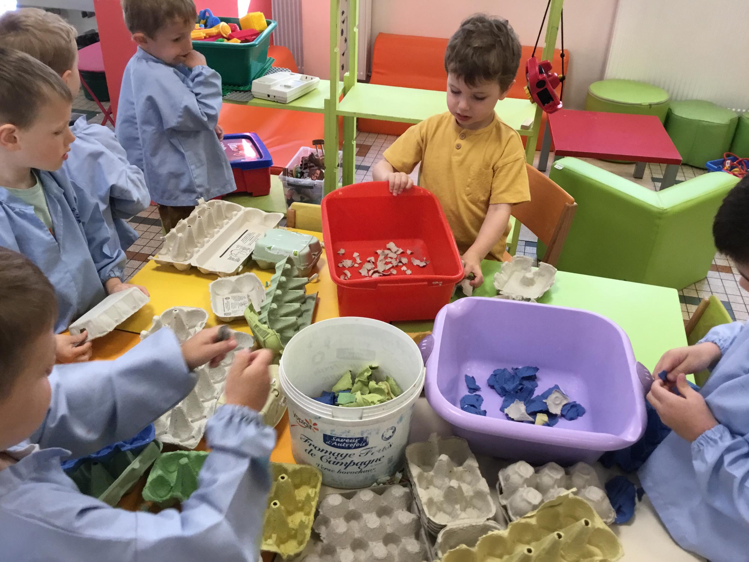 Déchirer des boites à œufs, les laisser tremper dans l’eau et mixer