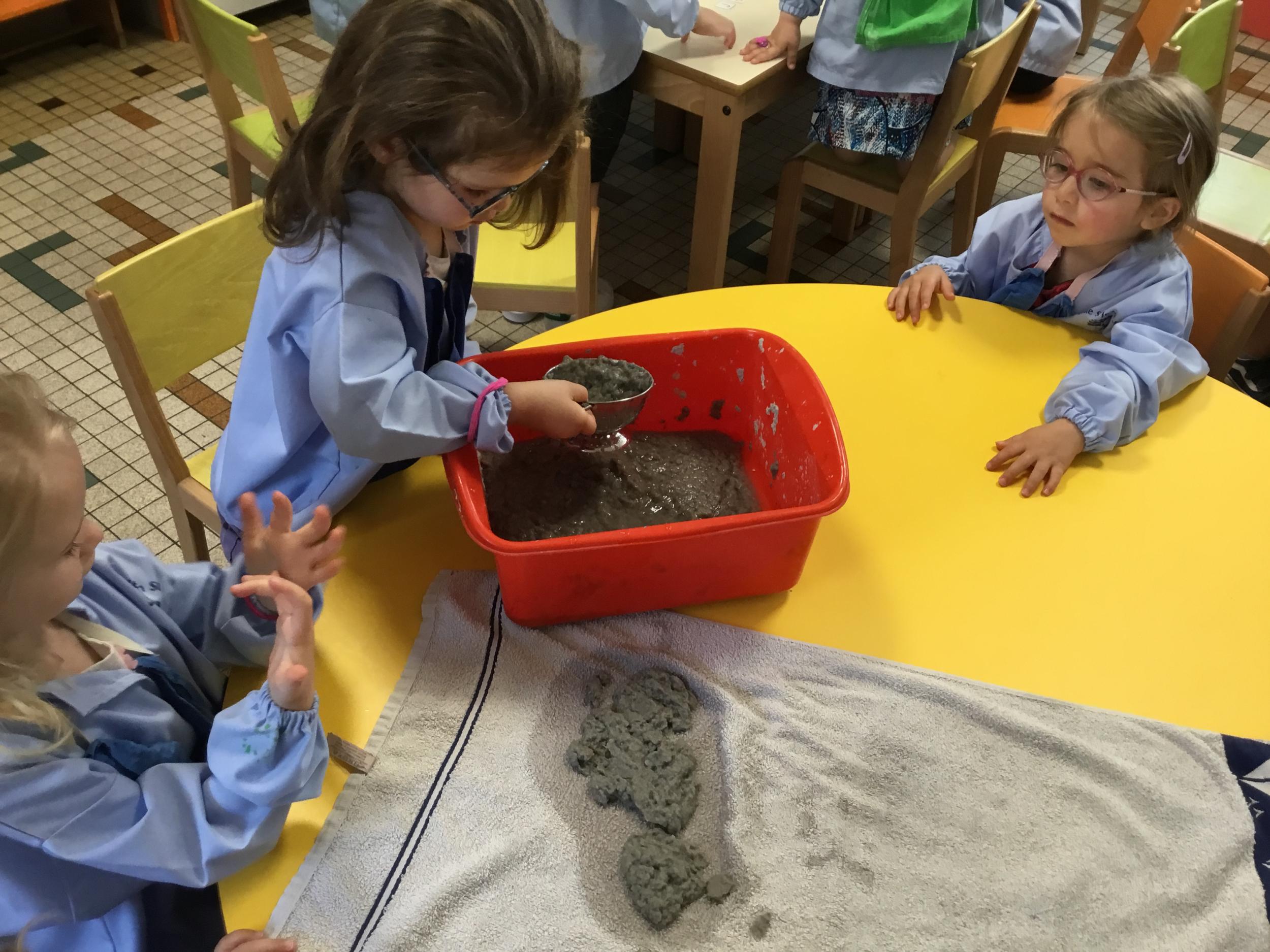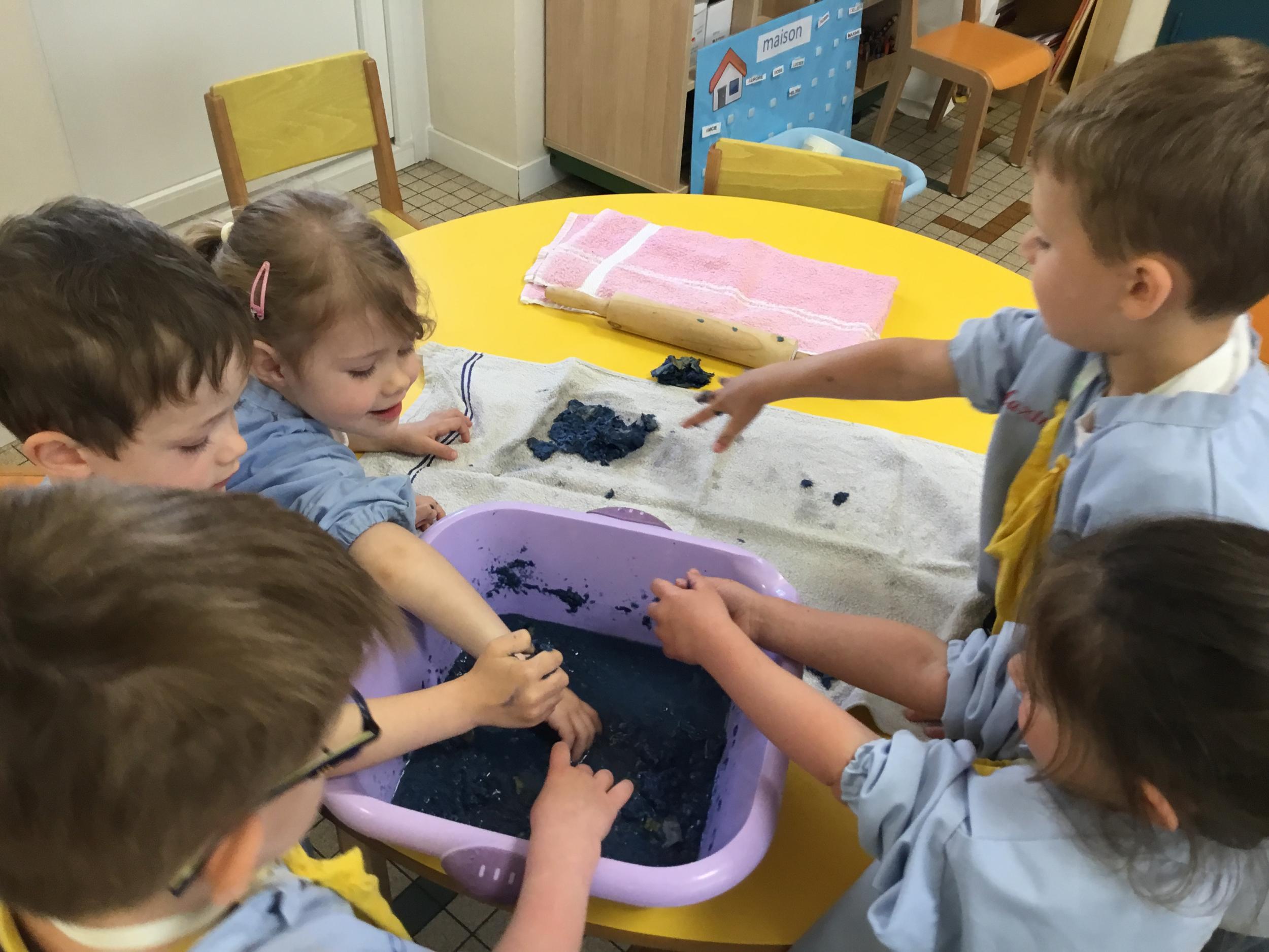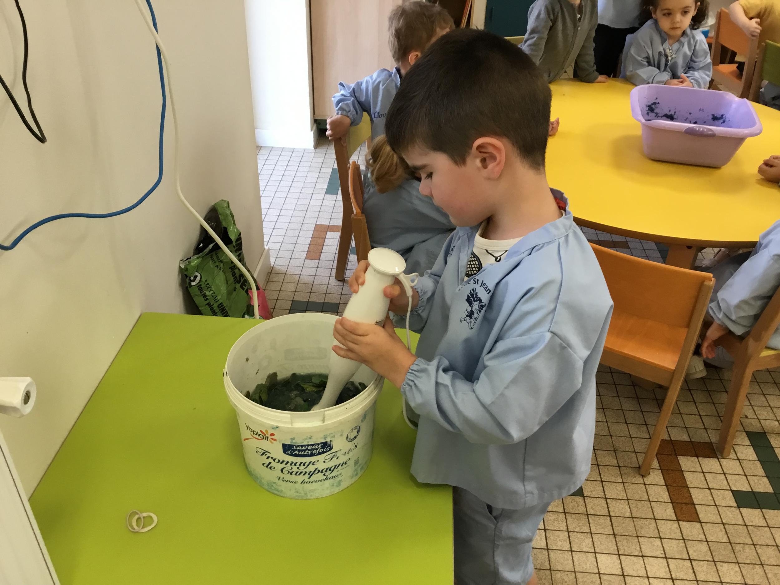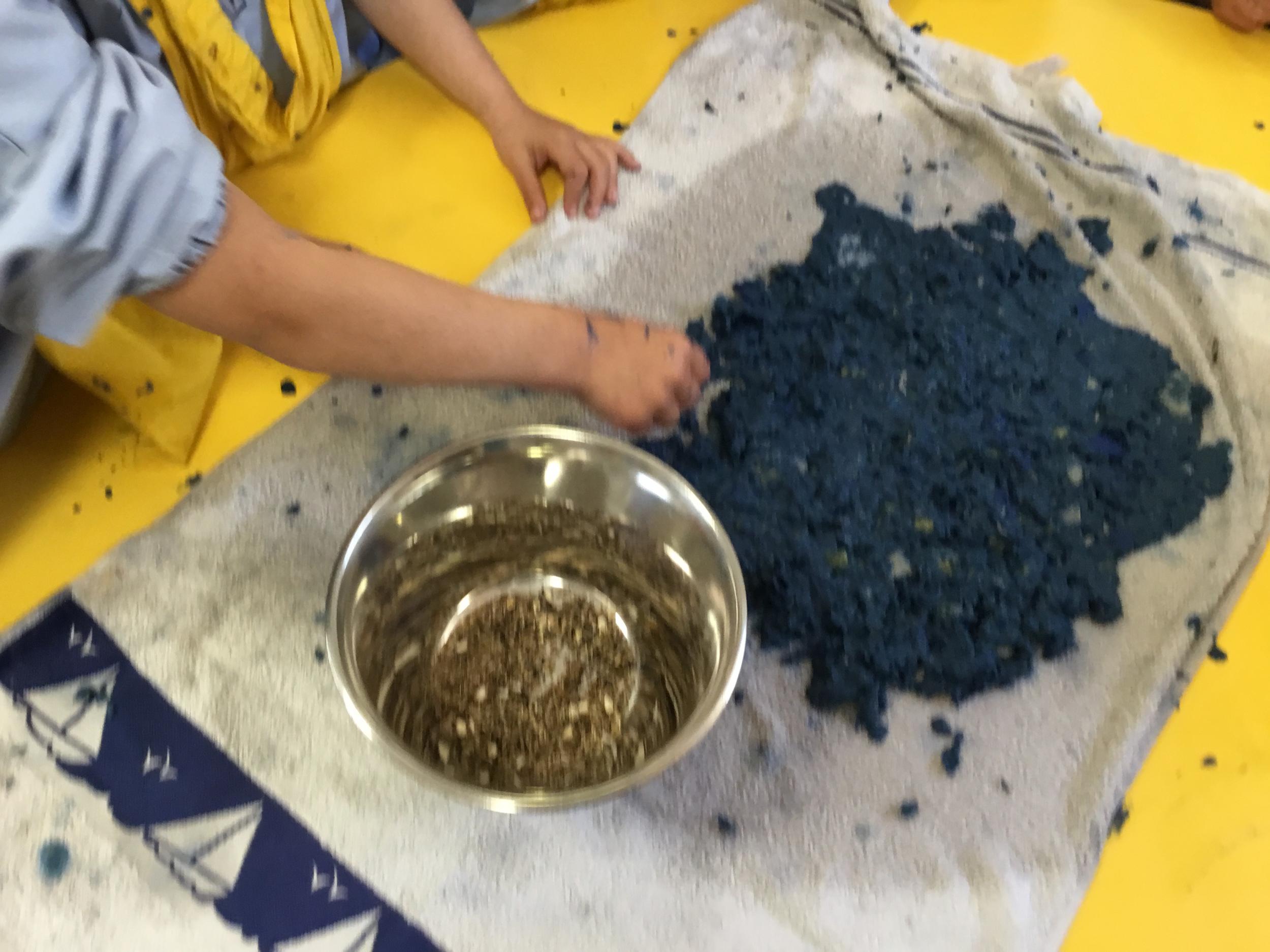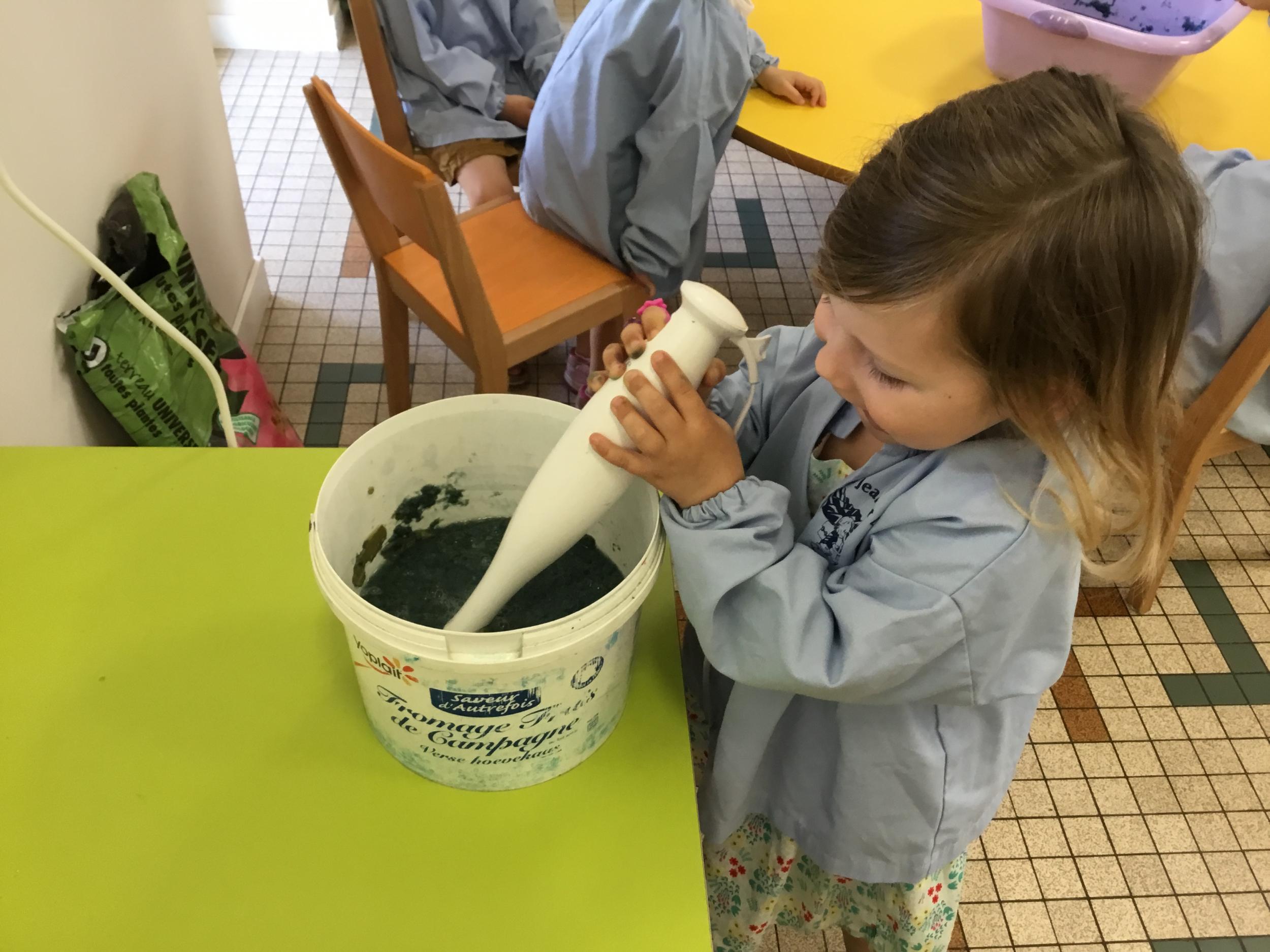 Déchirer des boites à œufs, les laisser tremper dans l’eau et mixer