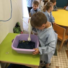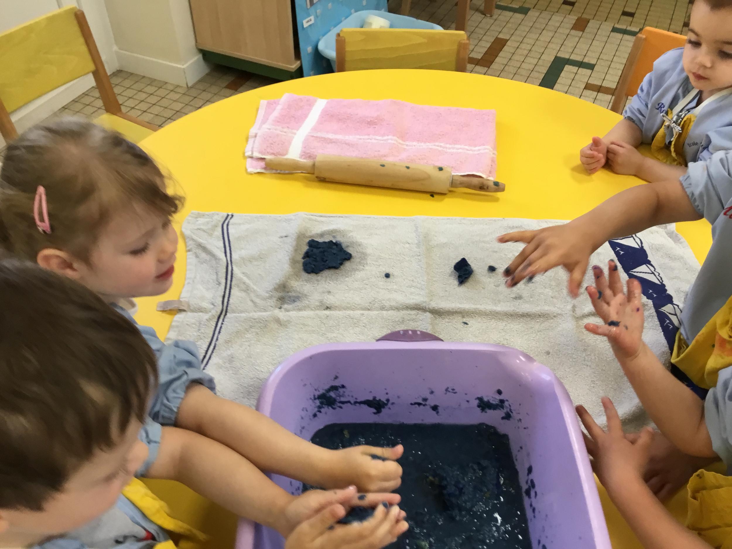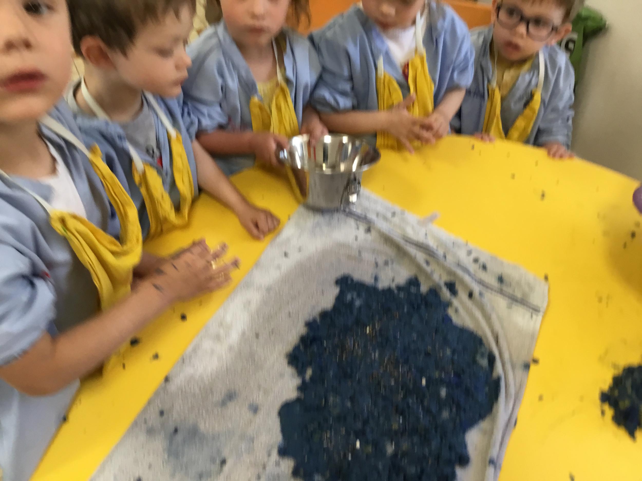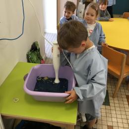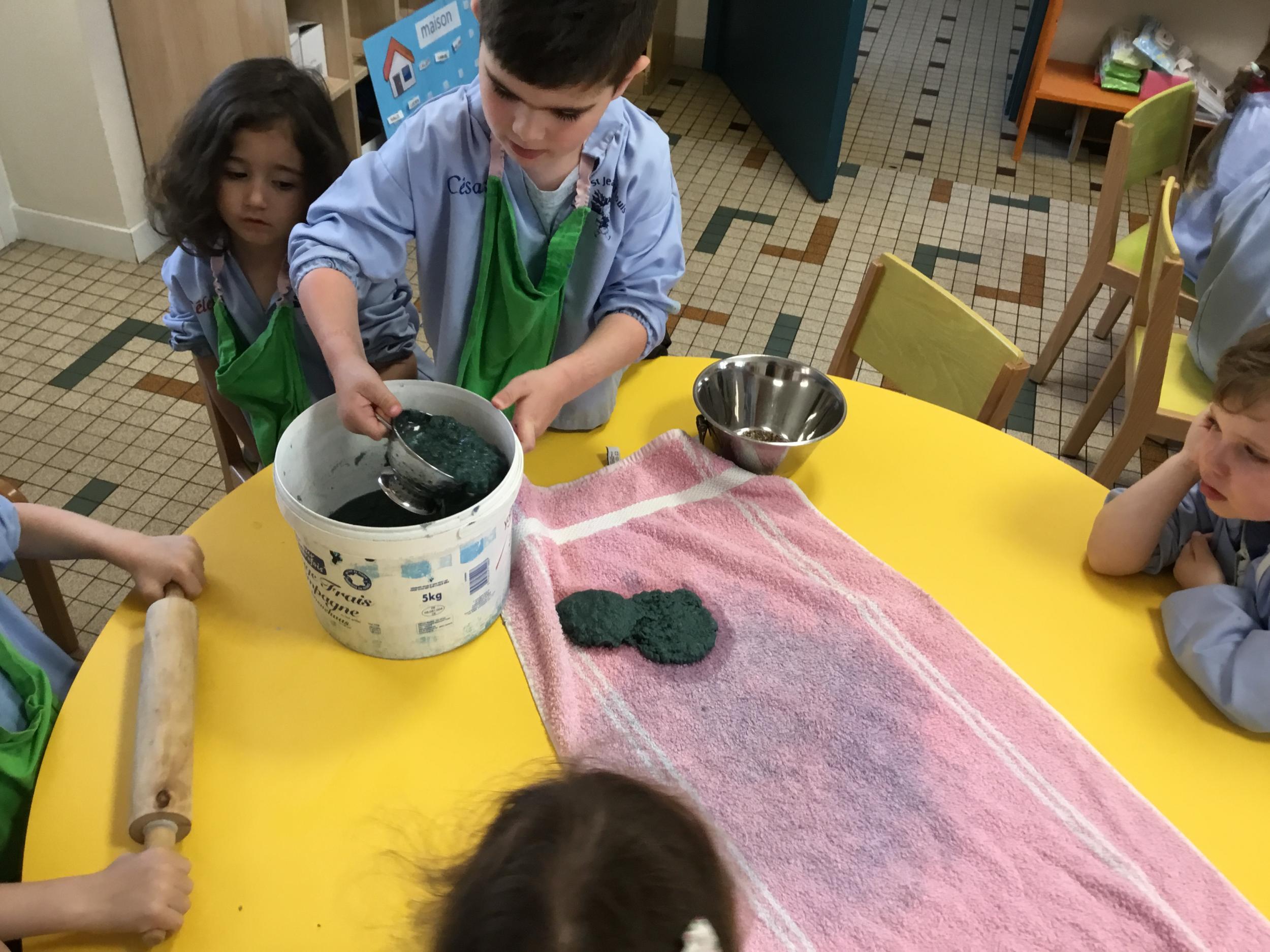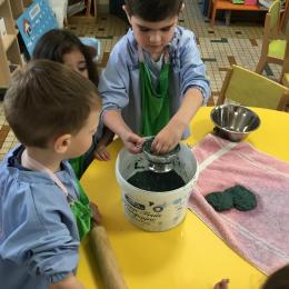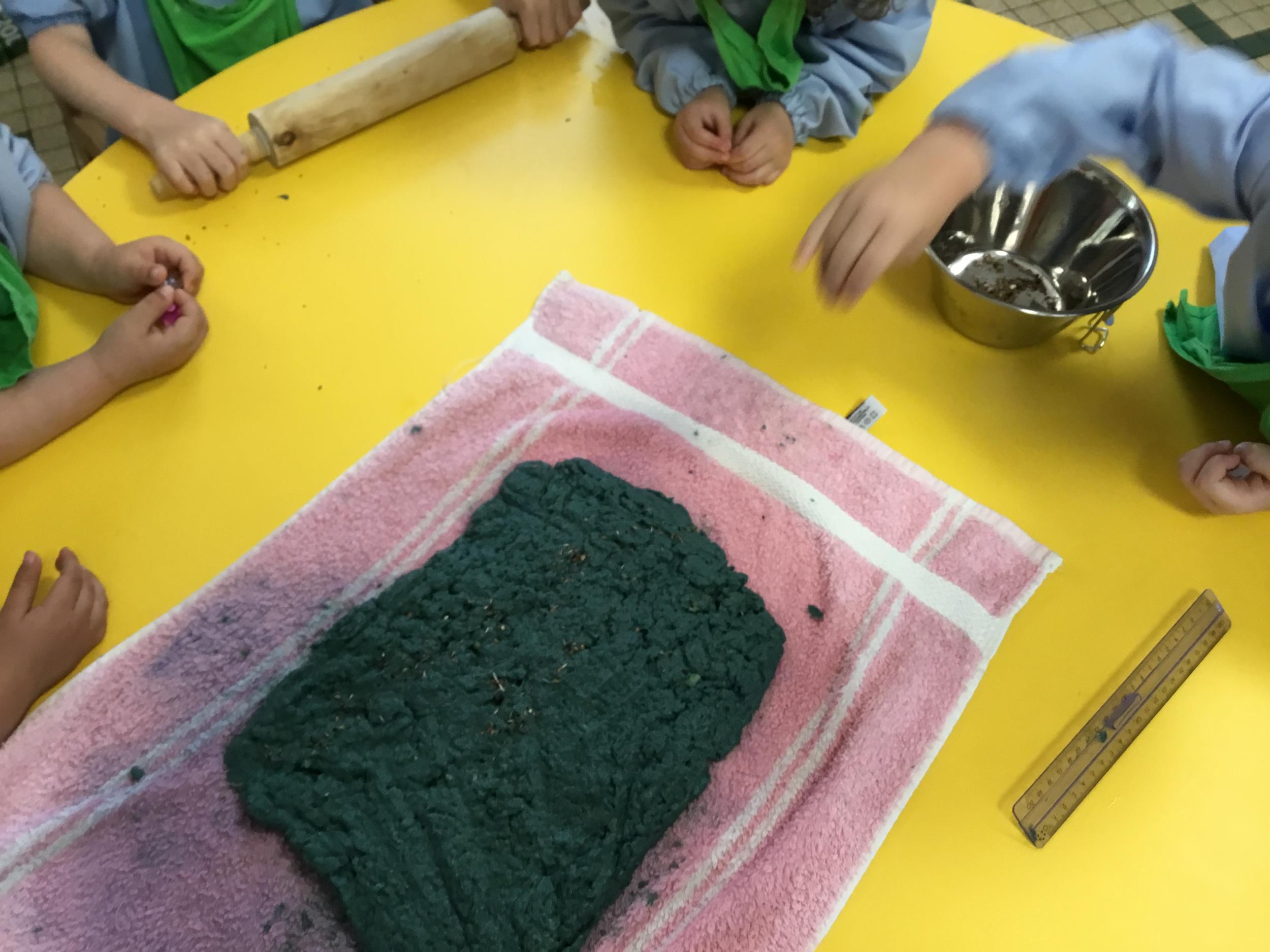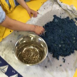 Déchirer des boites à œufs, les laisser tremper dans l’eau et mixer