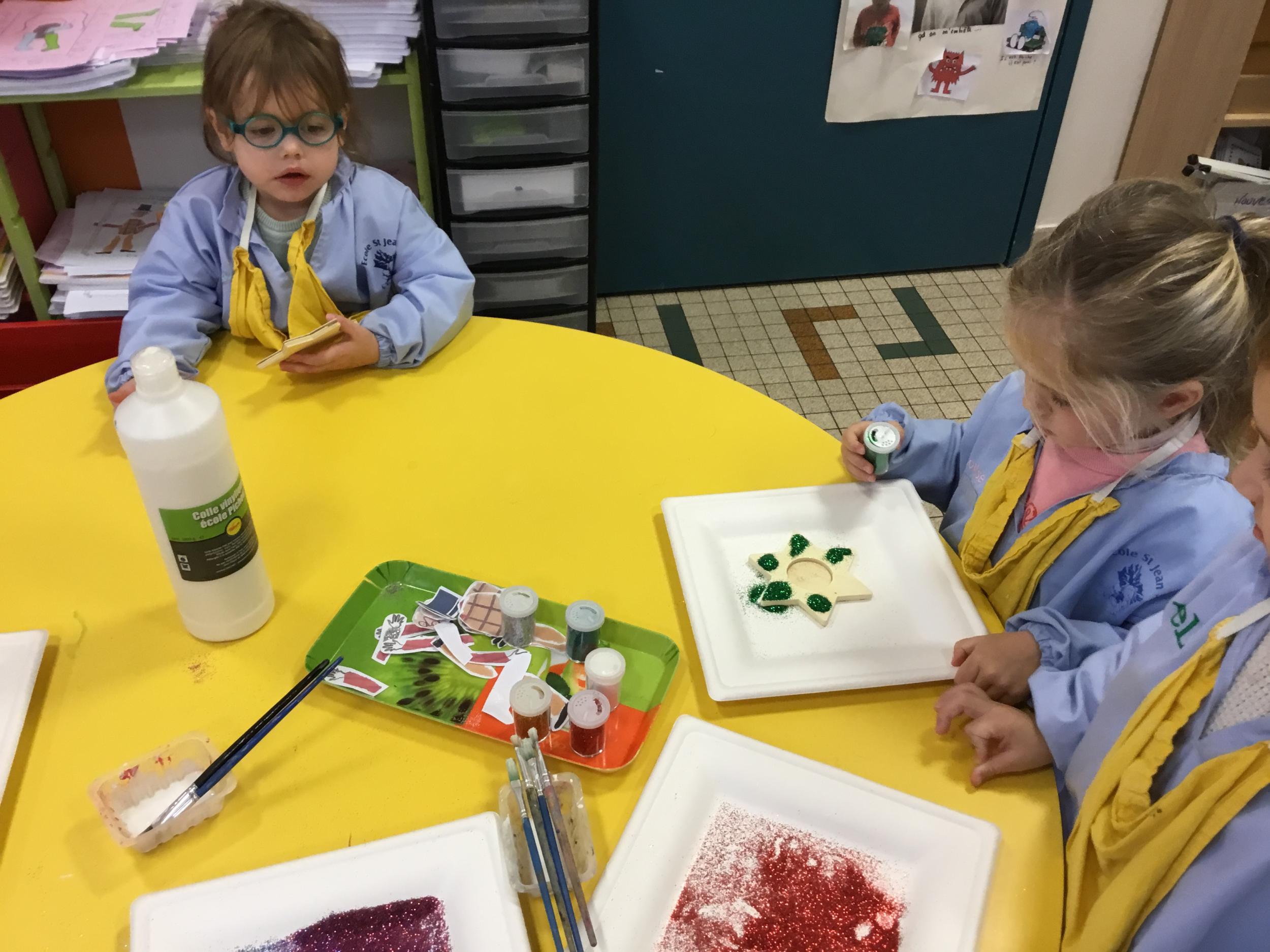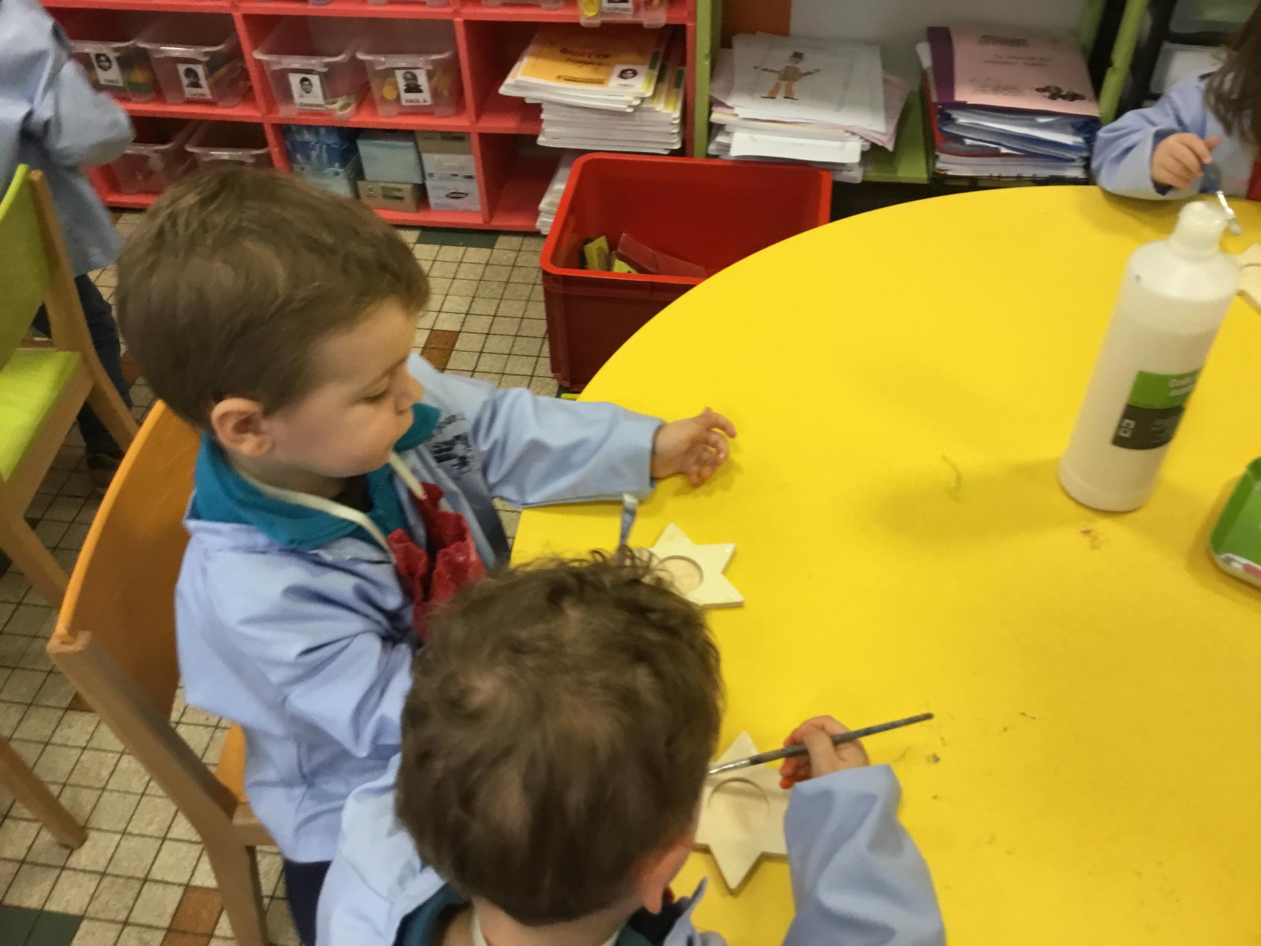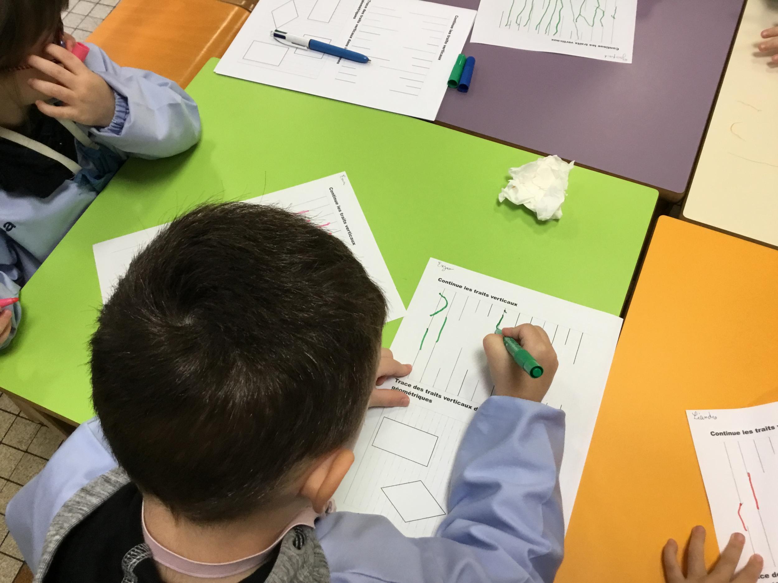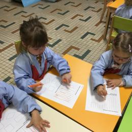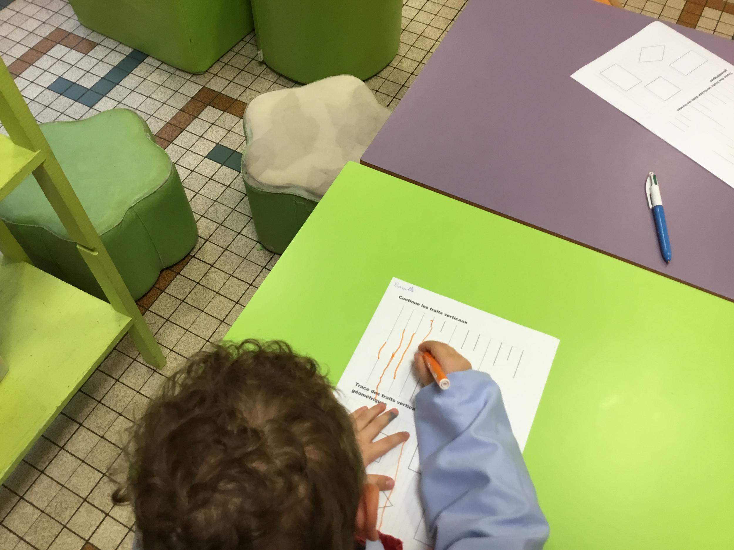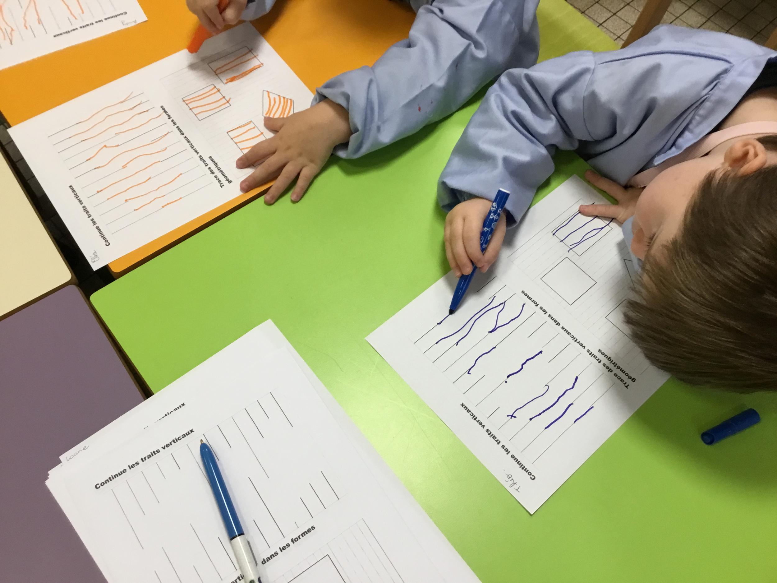 Cette semaine les élèves ont commencé leur bricolage de Noël, achevé leur travail autour du trait vertical et ont continué à travailler autour des formes géométriques.