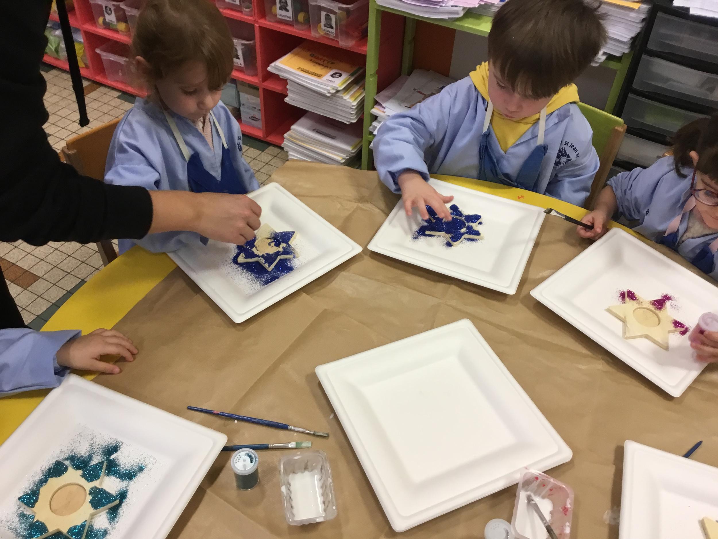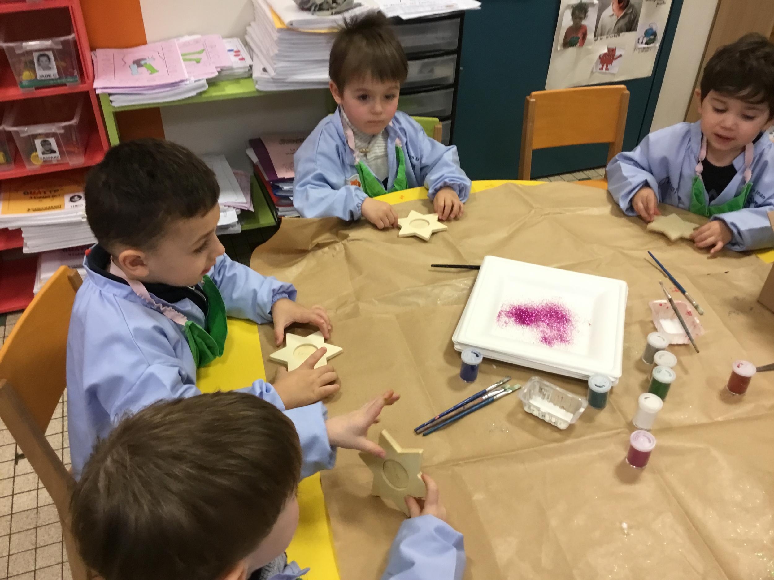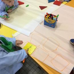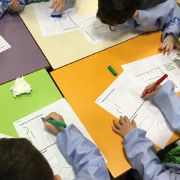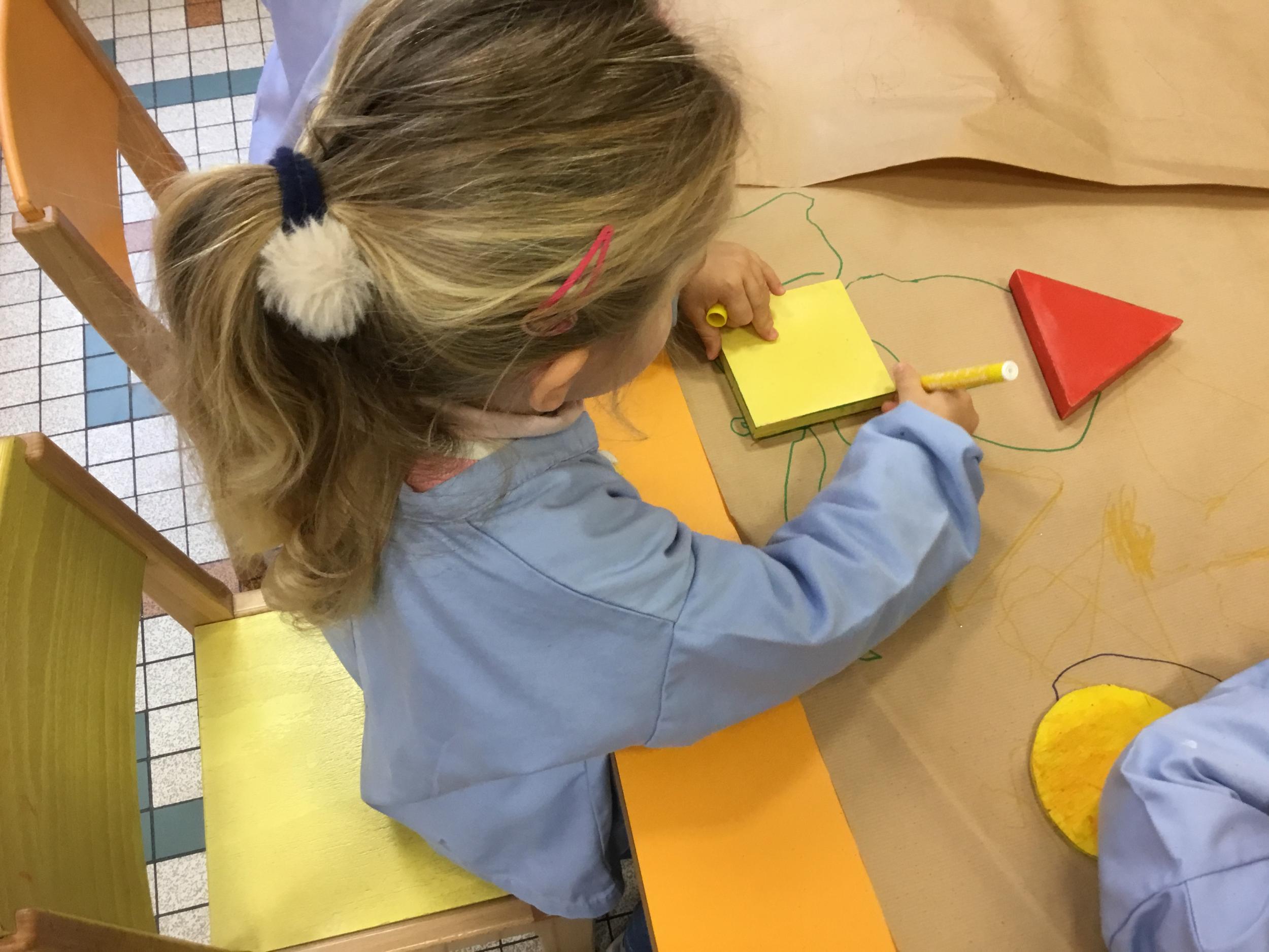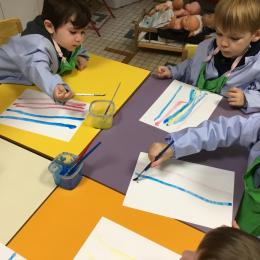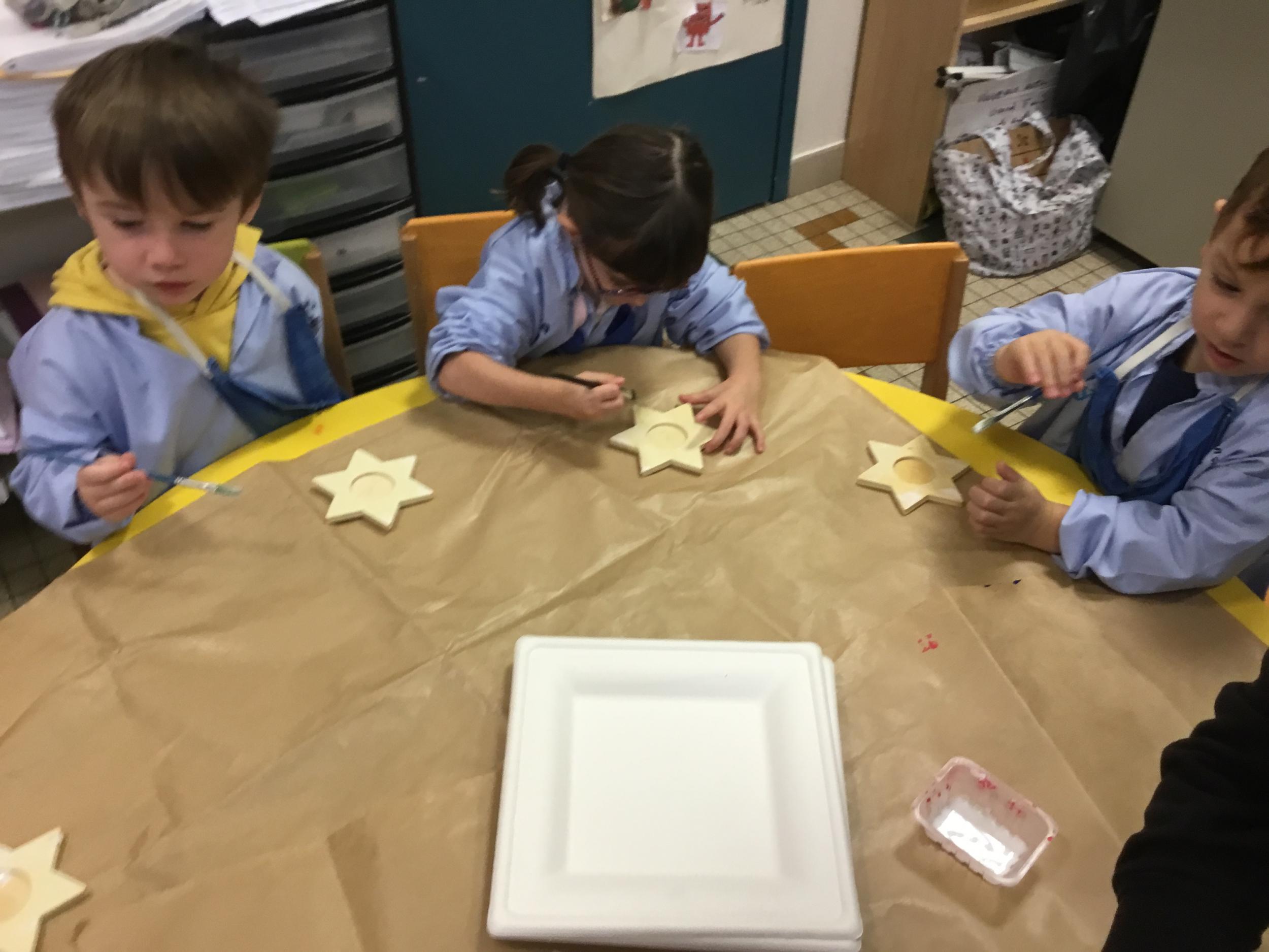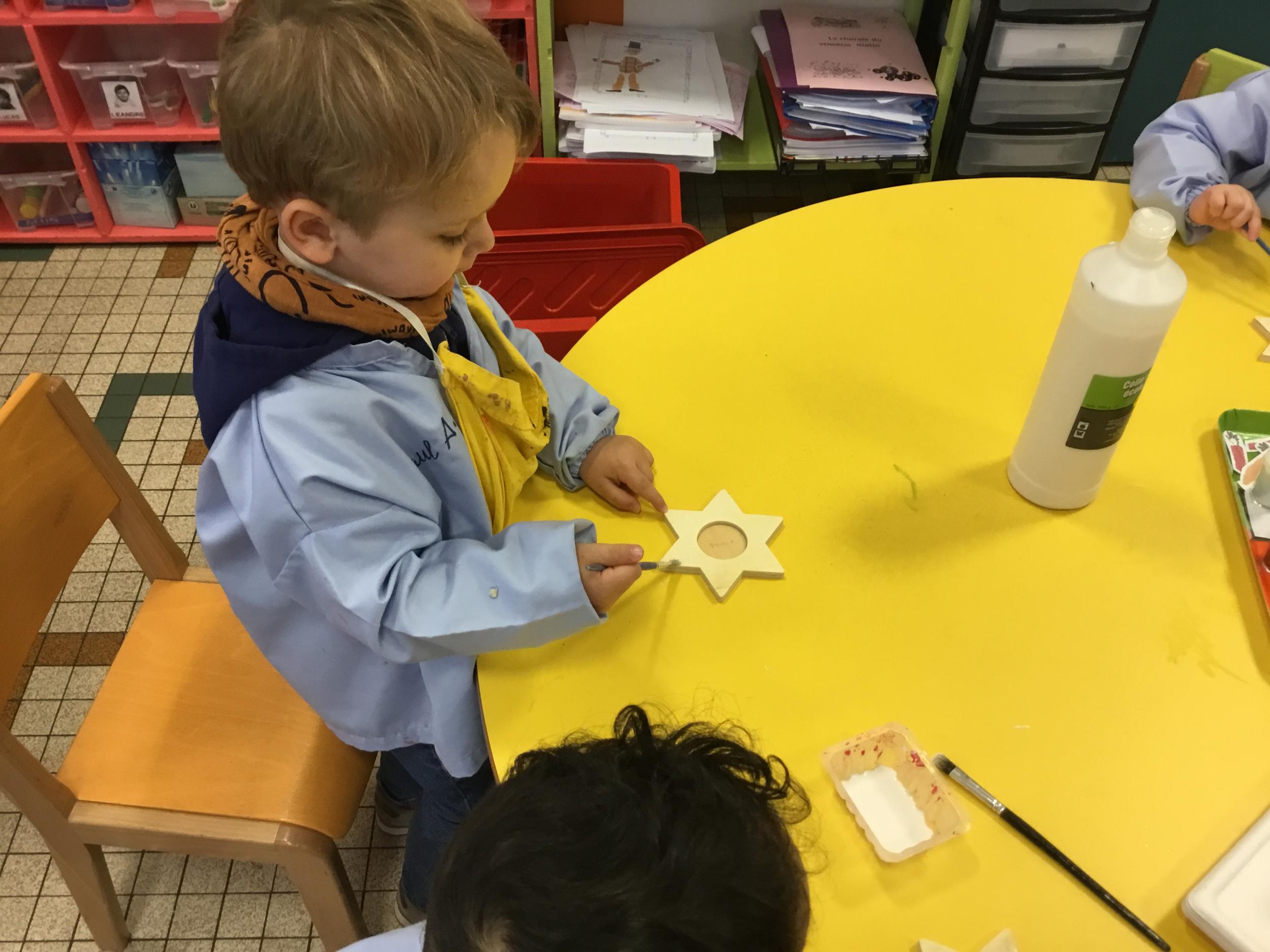 Cette semaine les élèves ont commencé leur bricolage de Noël, achevé leur travail autour du trait vertical et ont continué à travailler autour des formes géométriques.