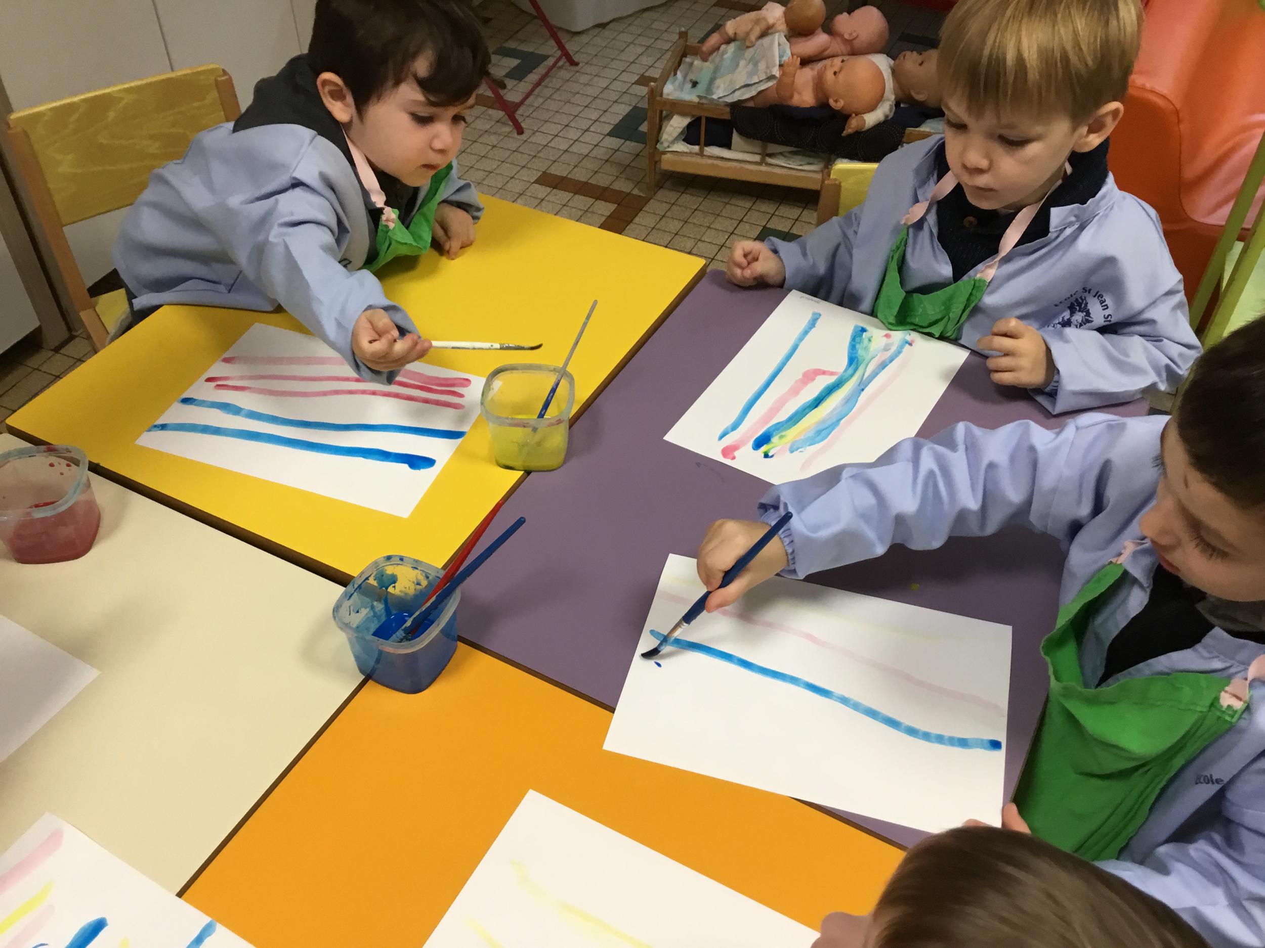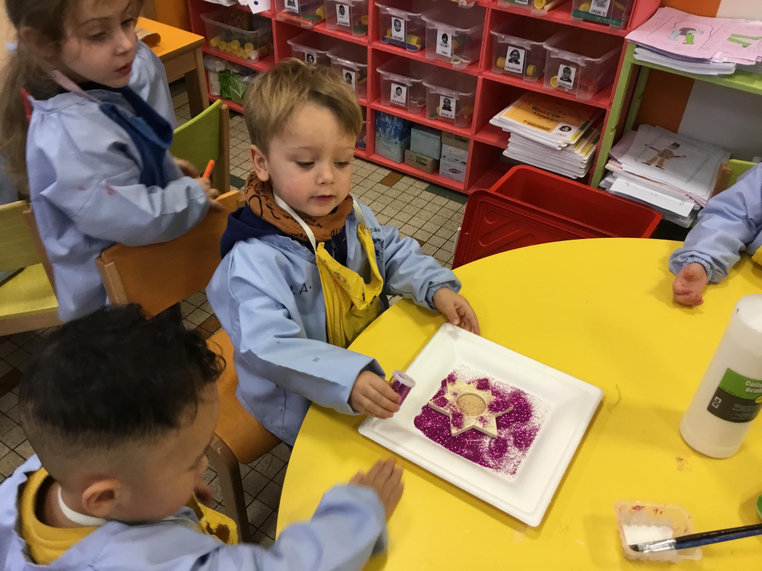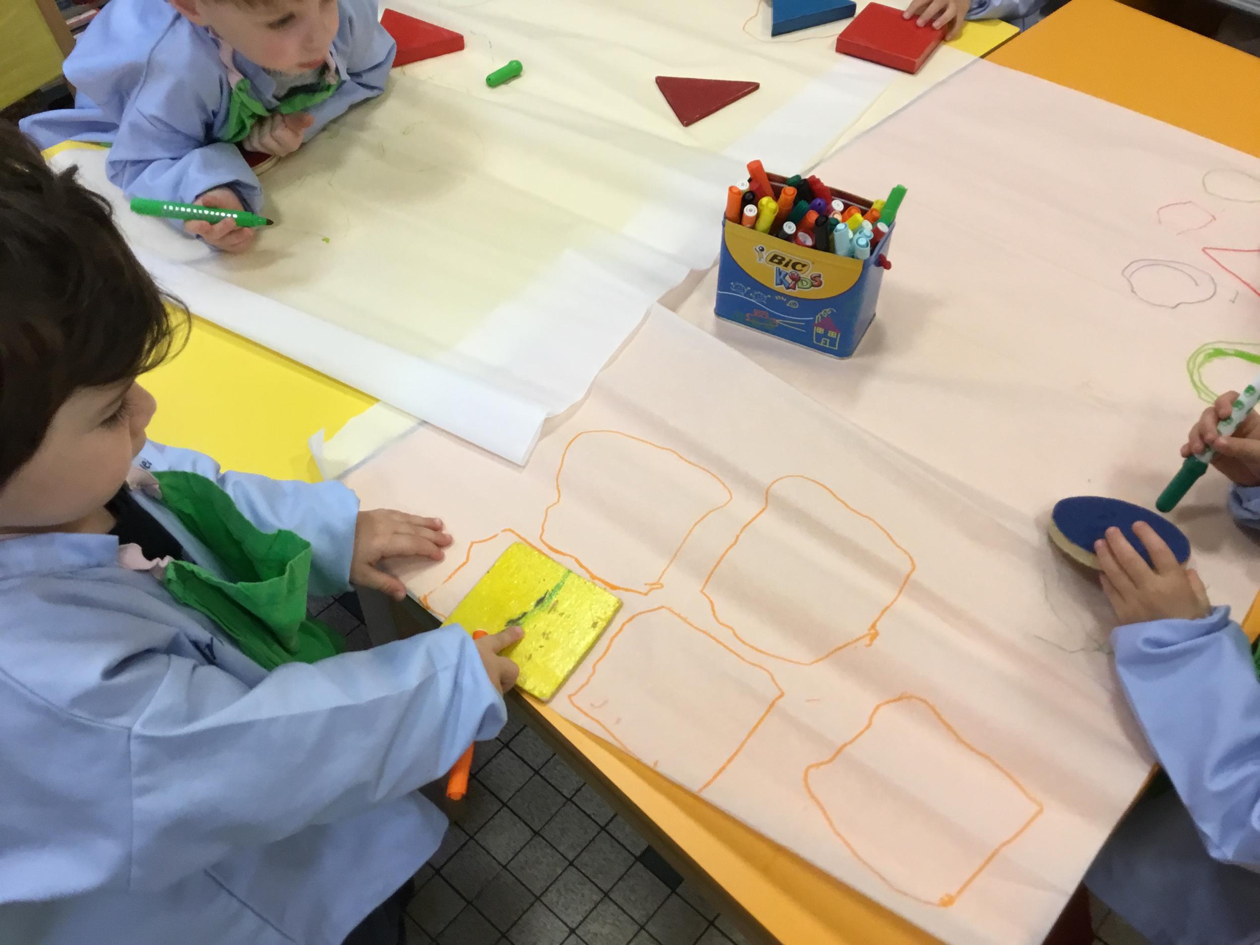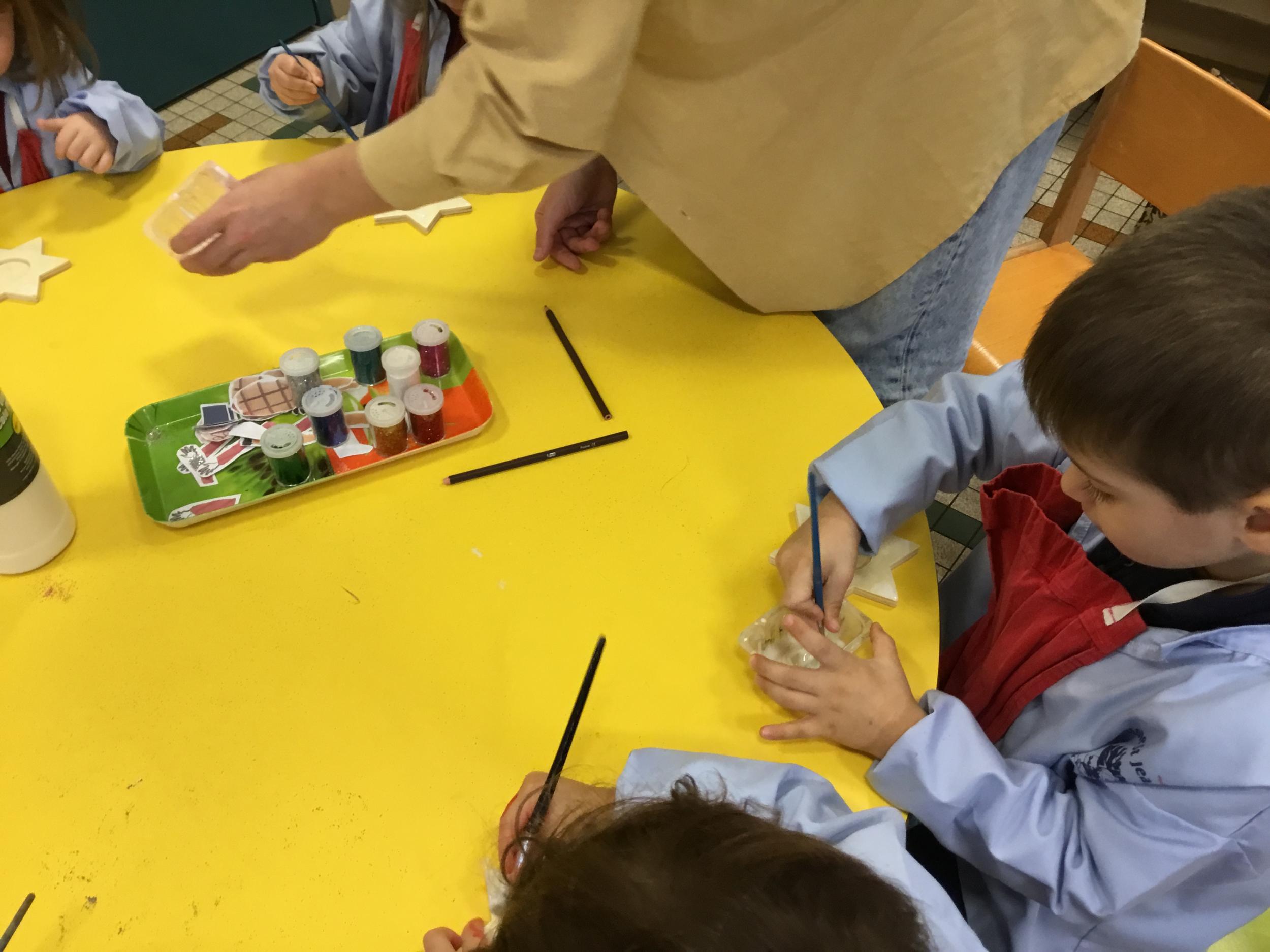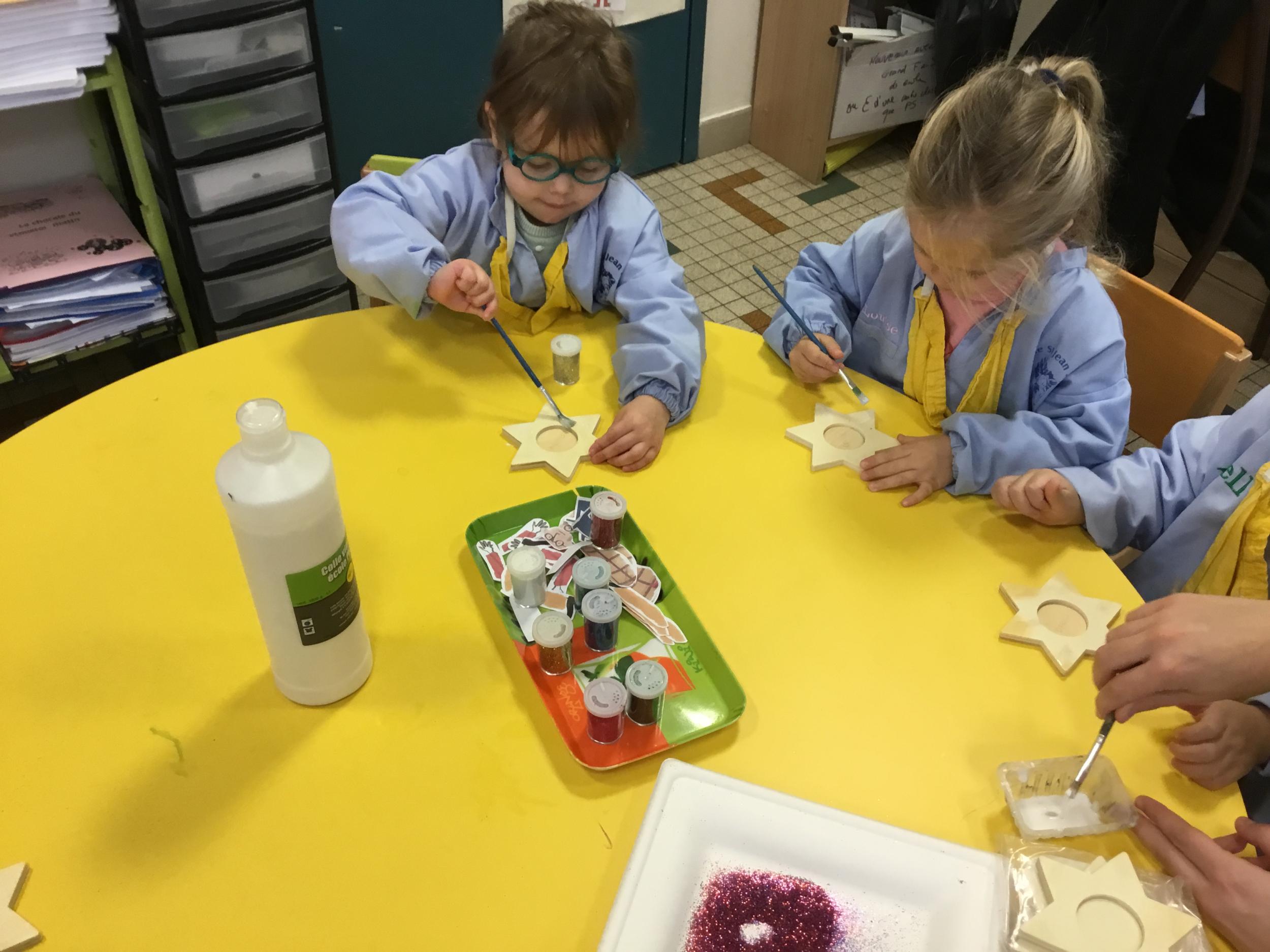 Cette semaine les élèves ont commencé leur bricolage de Noël, achevé leur travail autour du trait vertical et ont continué à travailler autour des formes géométriques.