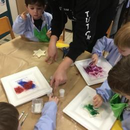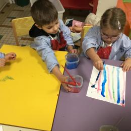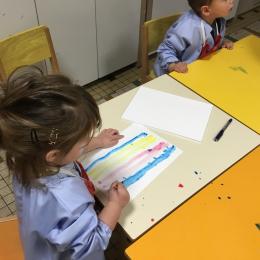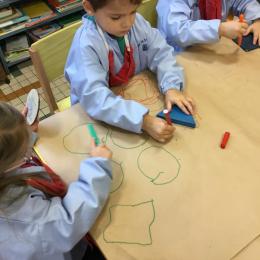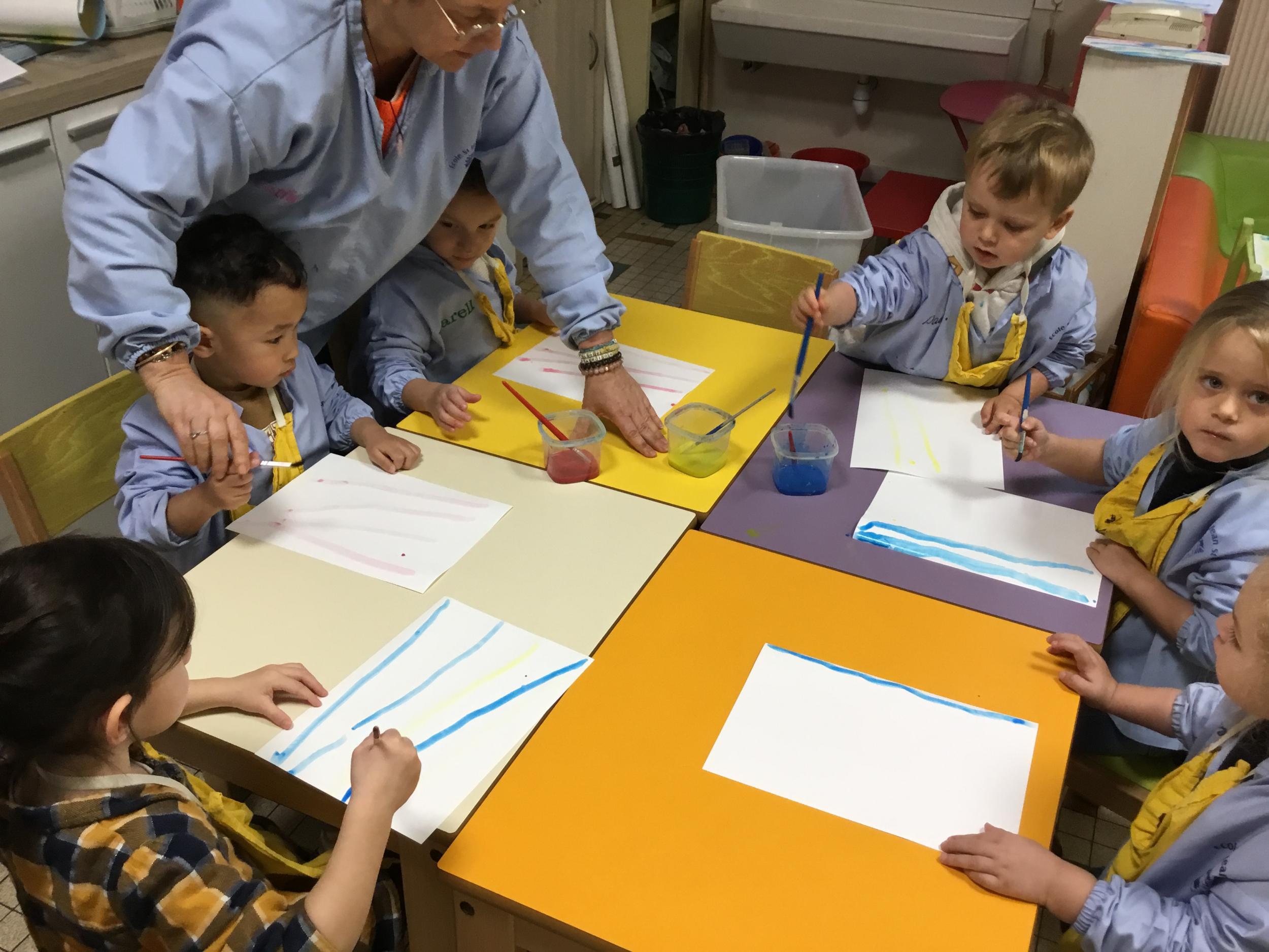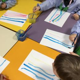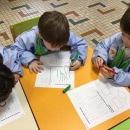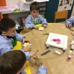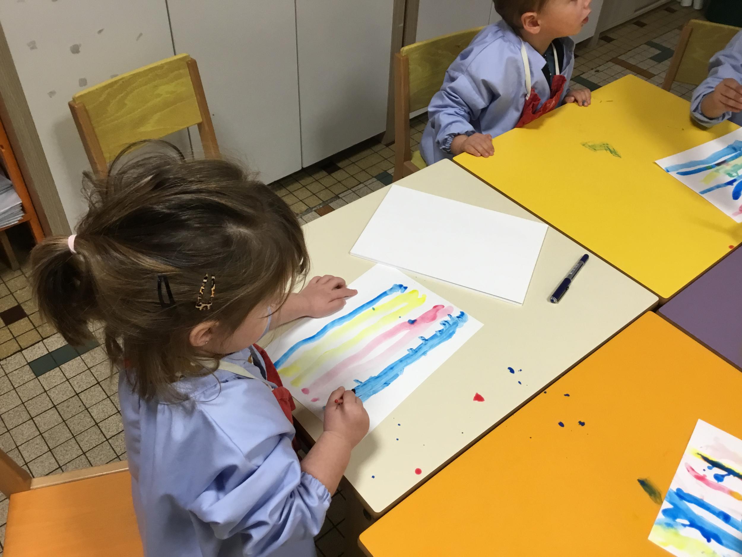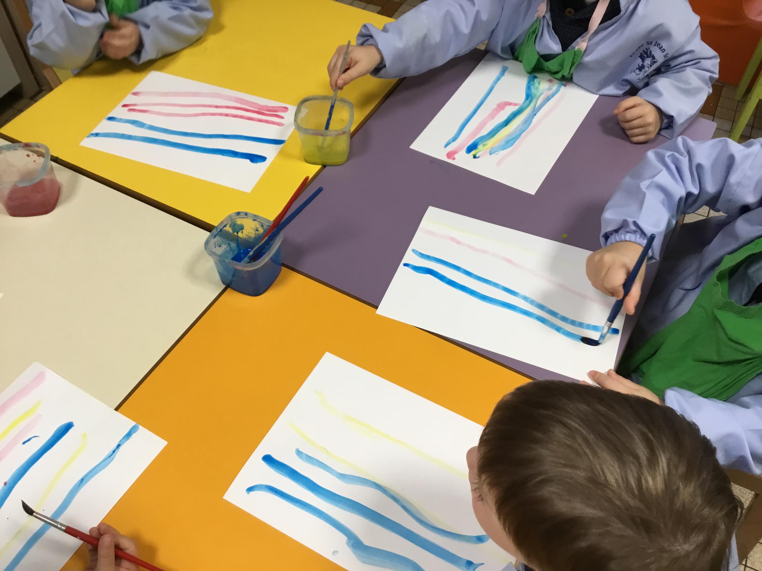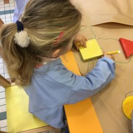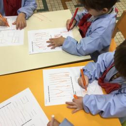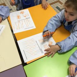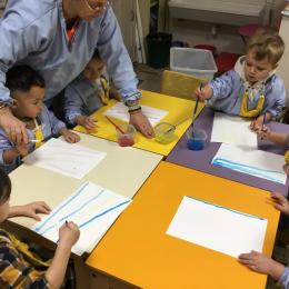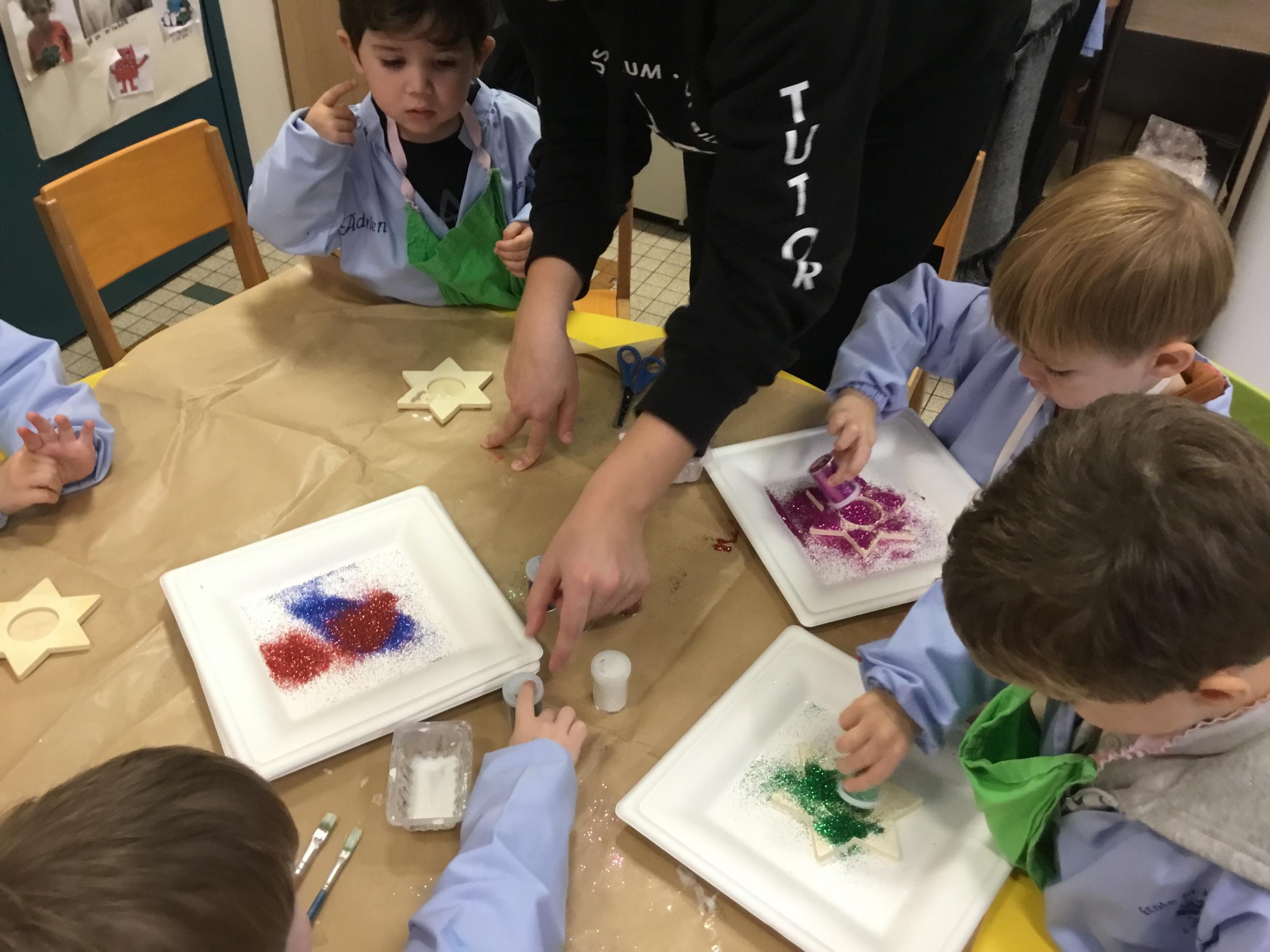Cette semaine les élèves ont commencé leur bricolage de Noël, achevé leur travail autour du trait vertical et ont continué à travailler autour des formes géométriques.