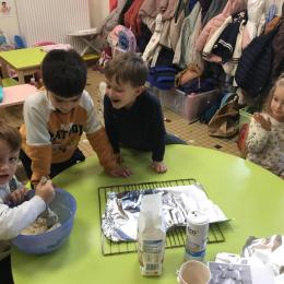 03/12/2024 Nous préparons actuellement le cadeau de Noël en pâte à sel mais c’est une surprise pour les parents 😊Chut !😄