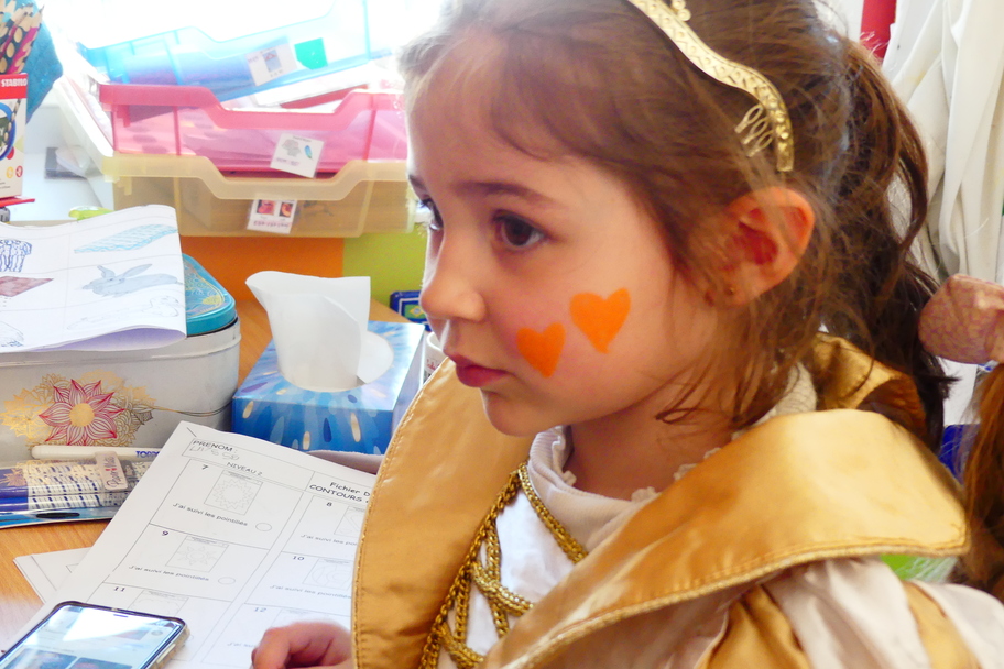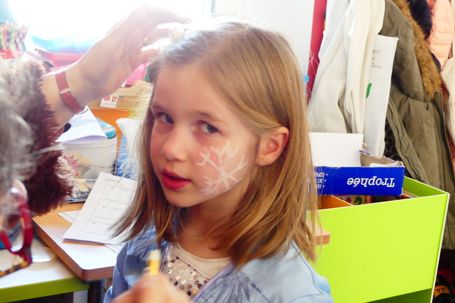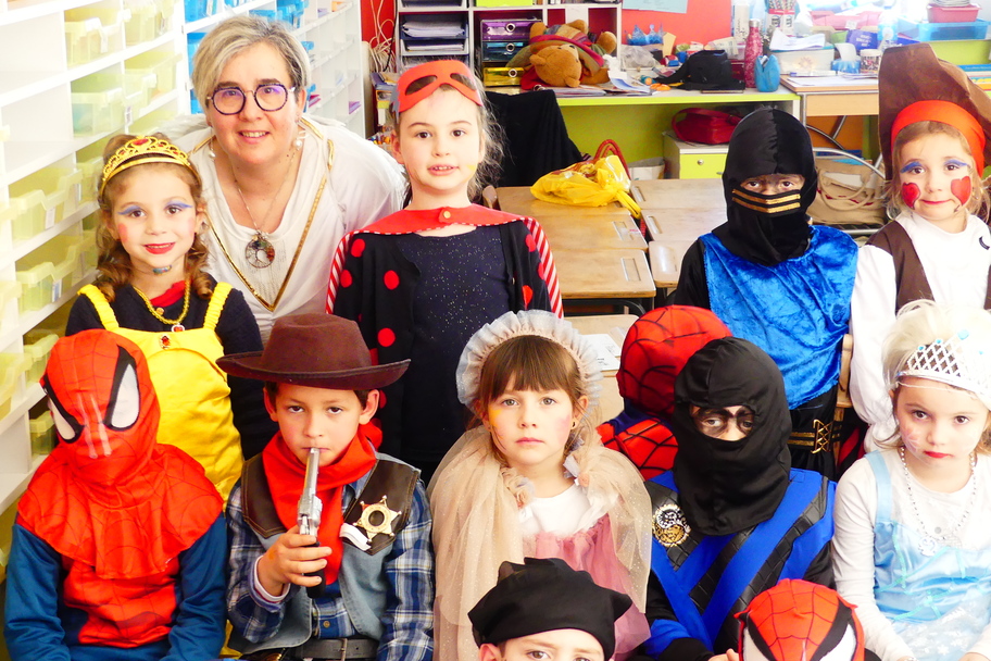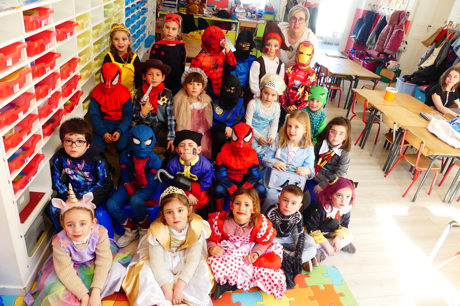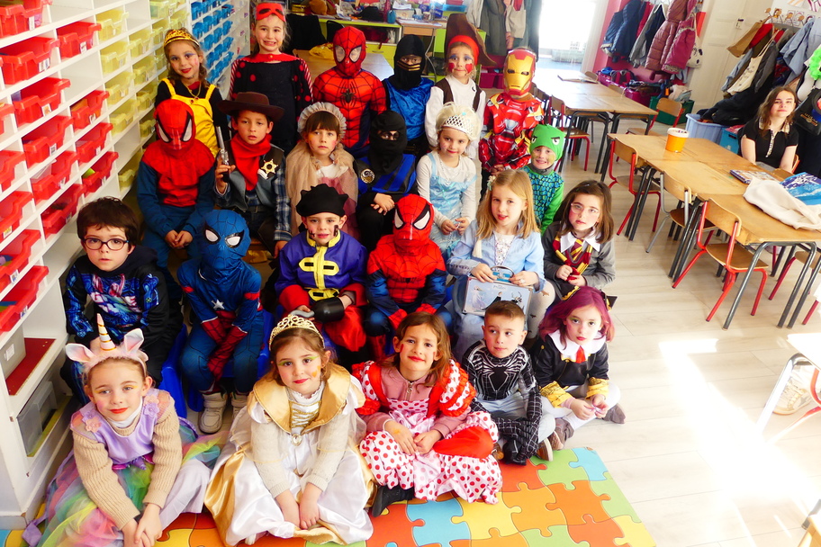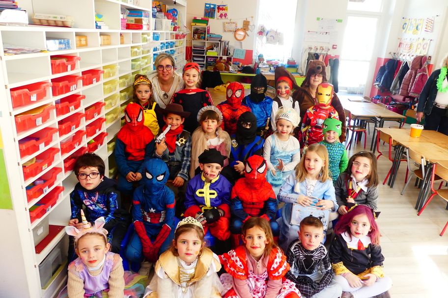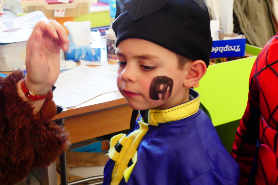 le 16 mars dernier, le soleil nous a permis de vivre un bel après midi de carnaval! Séance maquillage, photos de classe, défilé, goûter crêpes (merci l'Apel!) et danse dans la cour, une après midi pleine de bonne humeur!