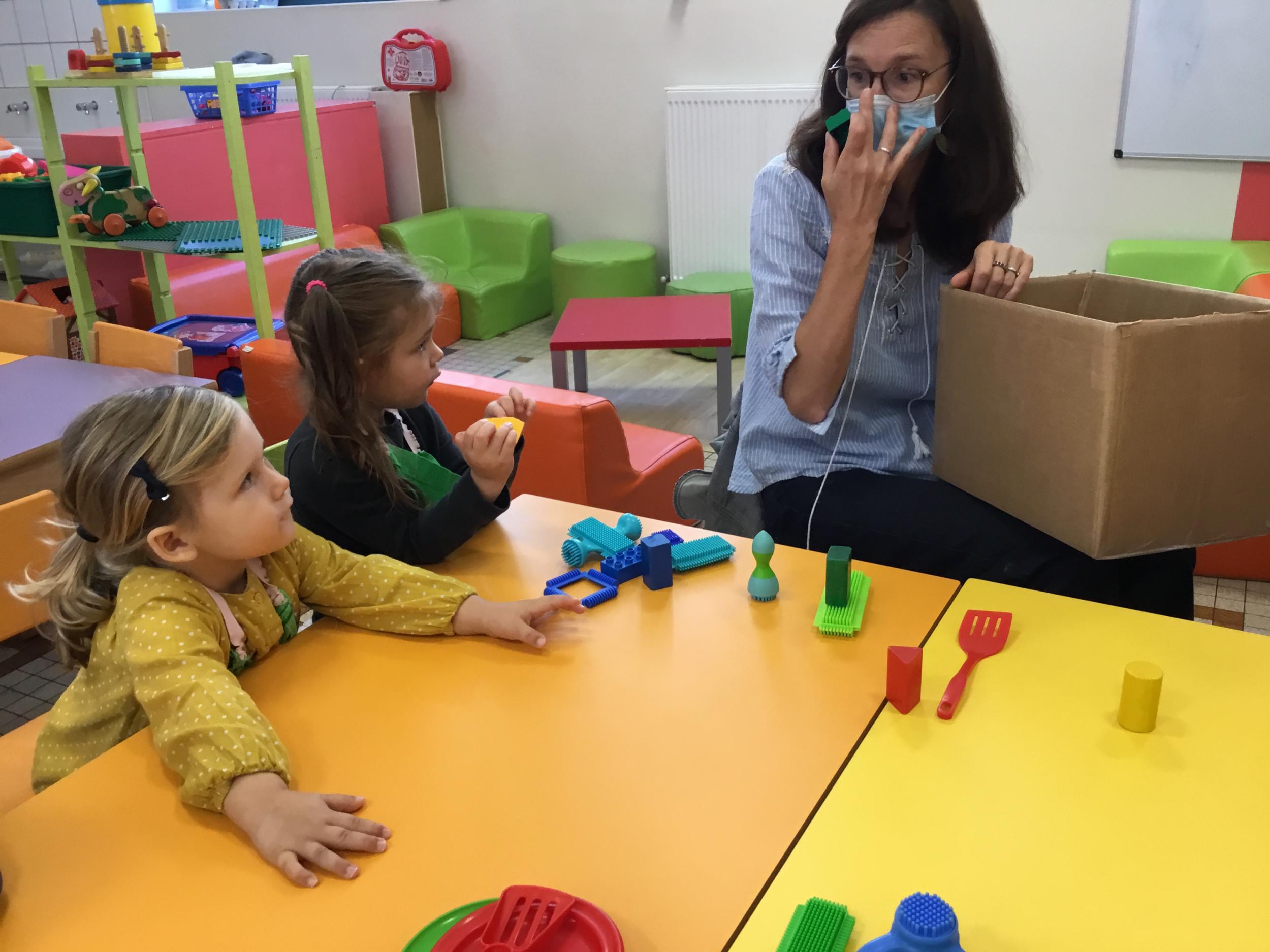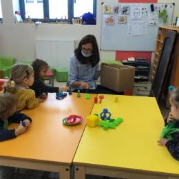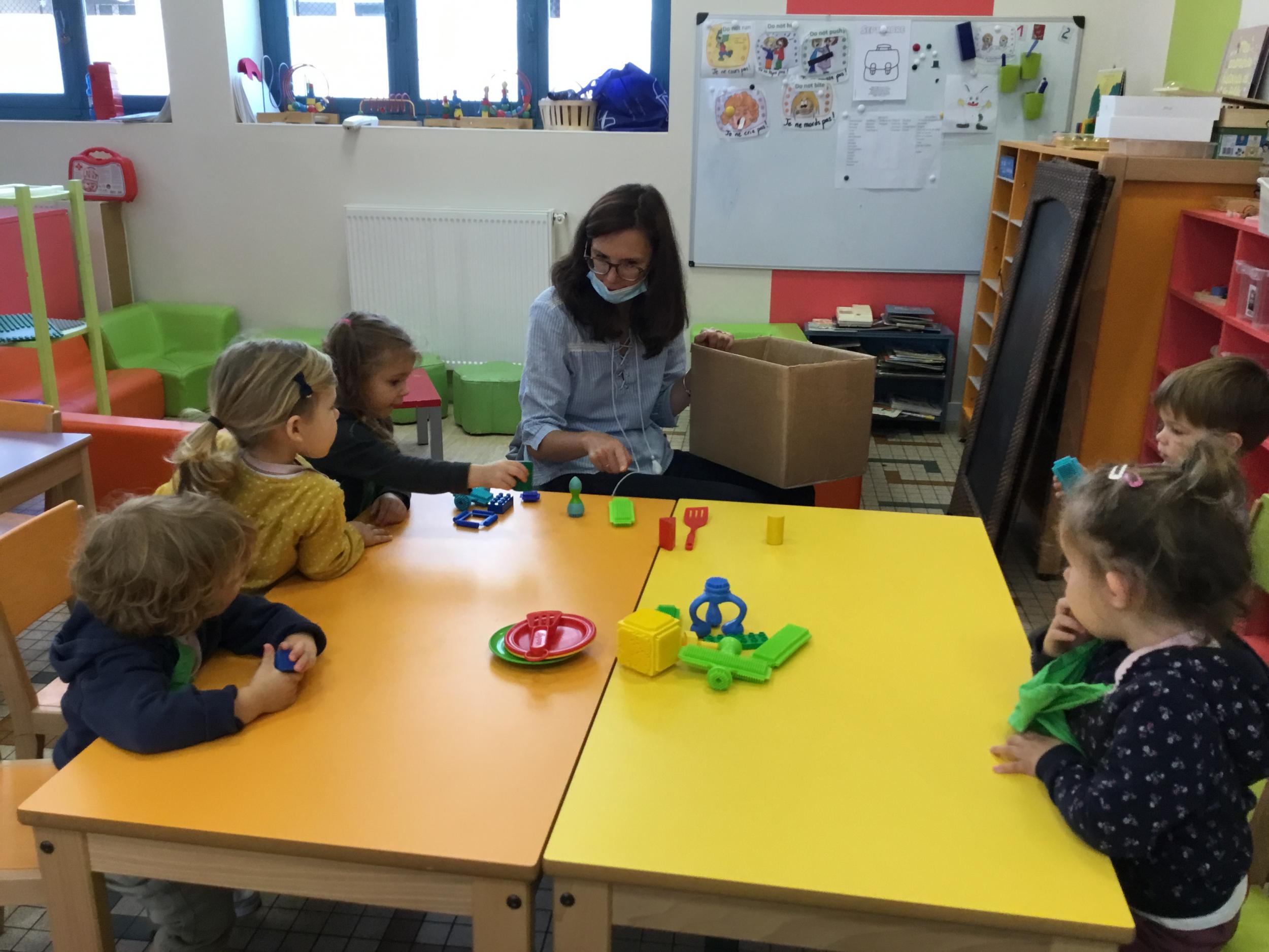 De la dînette, des legos, des clippos, des morceaux de puzzles, des formes géométriques de 4 couleurs…. Les élèves devaient trouver plusieurs façons pour les trier … Un petit jeu pour apprendre du vocabulaire en anglais , et en premier les couleurs .