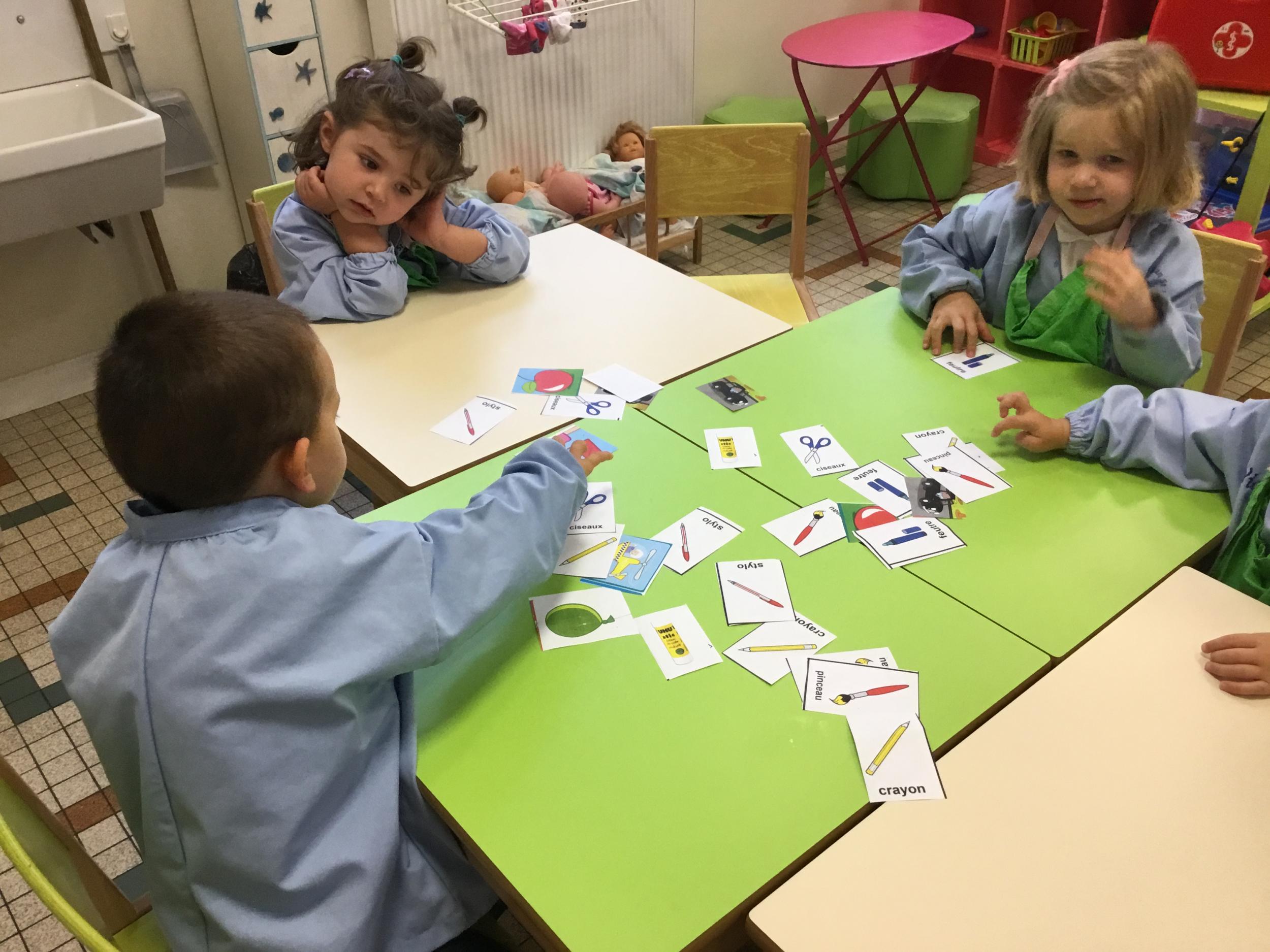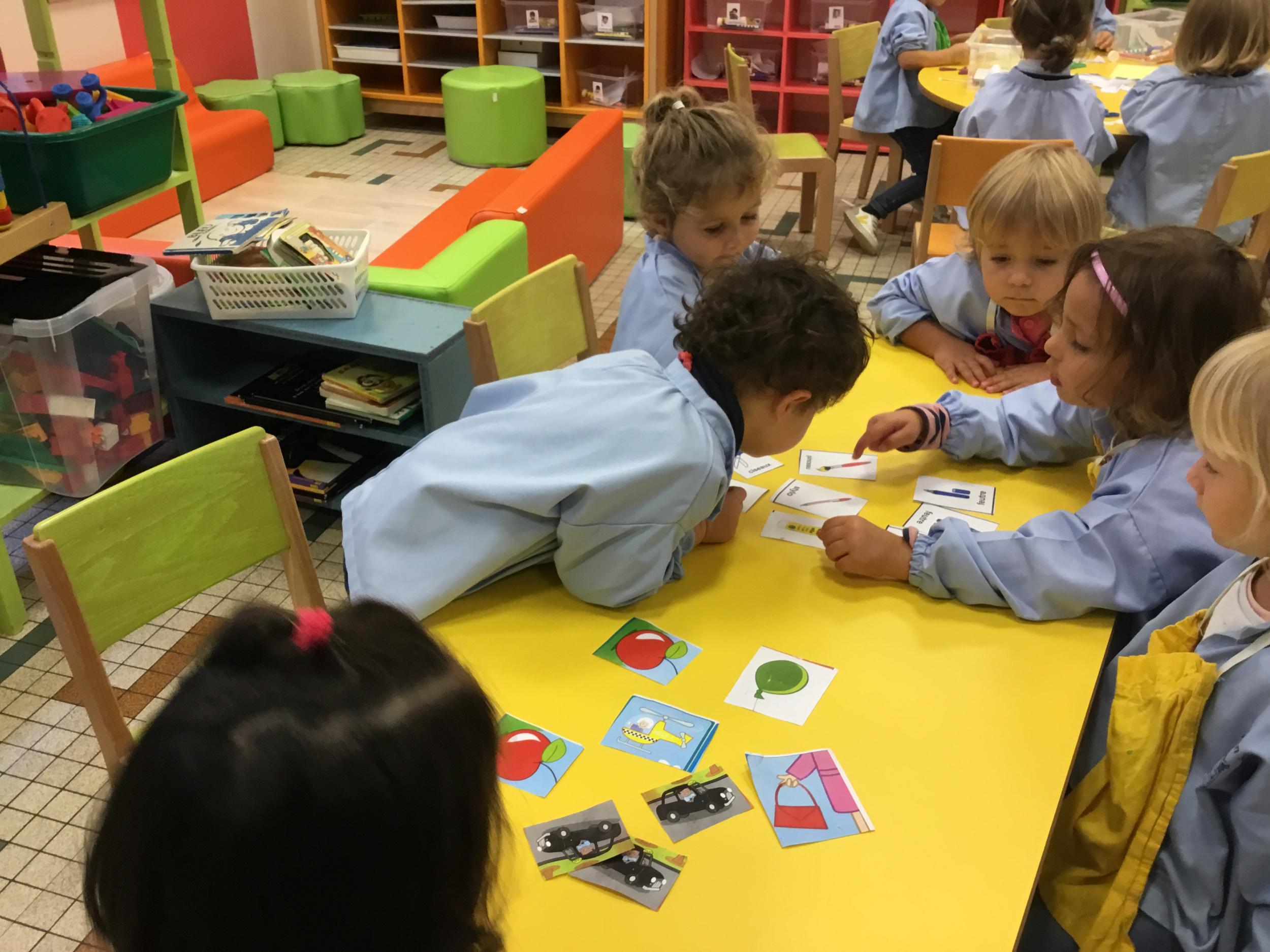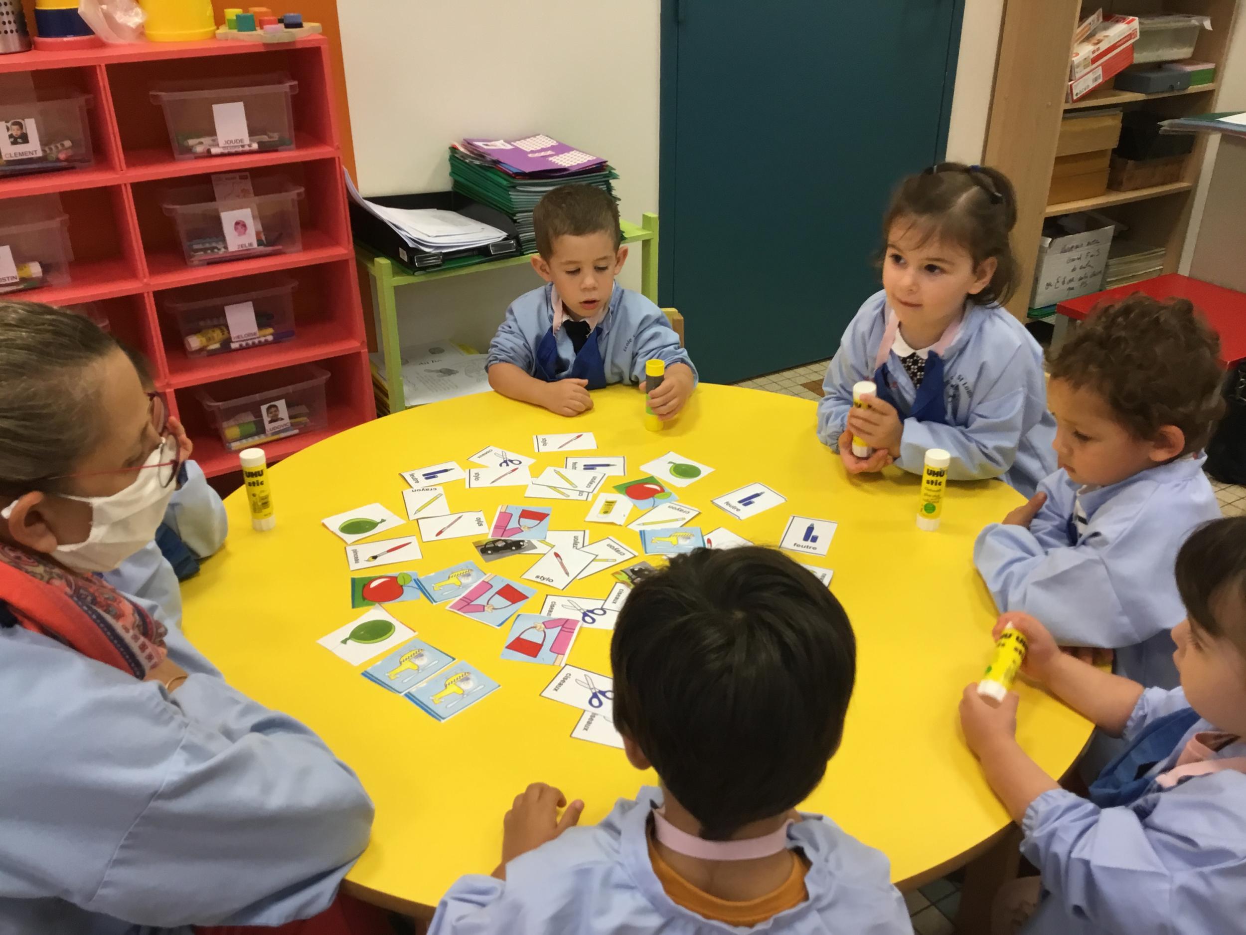 Après avoir nommé tout ce qu’ils voyaient sur les images, les élèves ont essayé de les trier, de les ranger. Nous avons découvert ensemble une famille , ou catégorie : celle des outils de la classe.