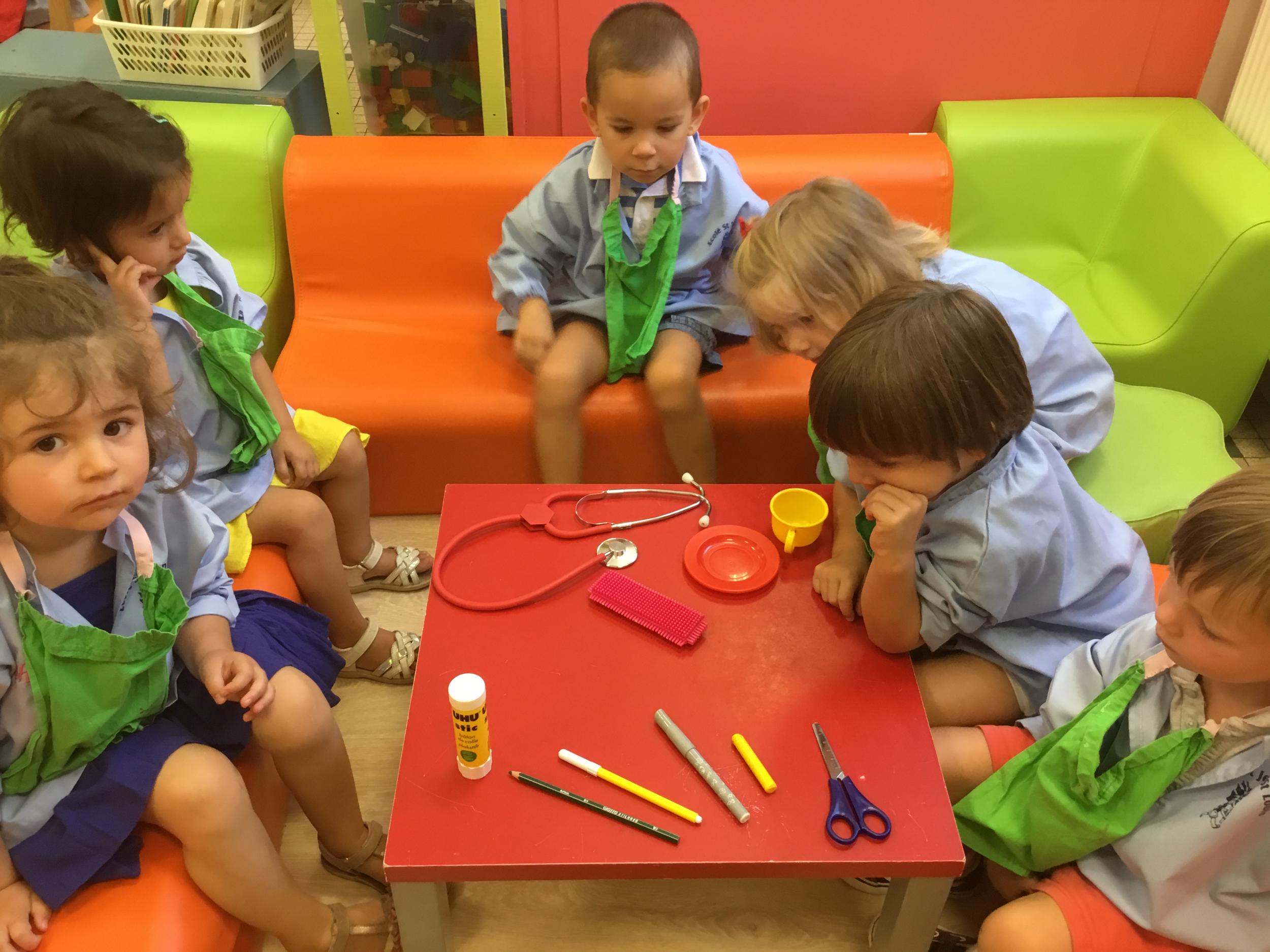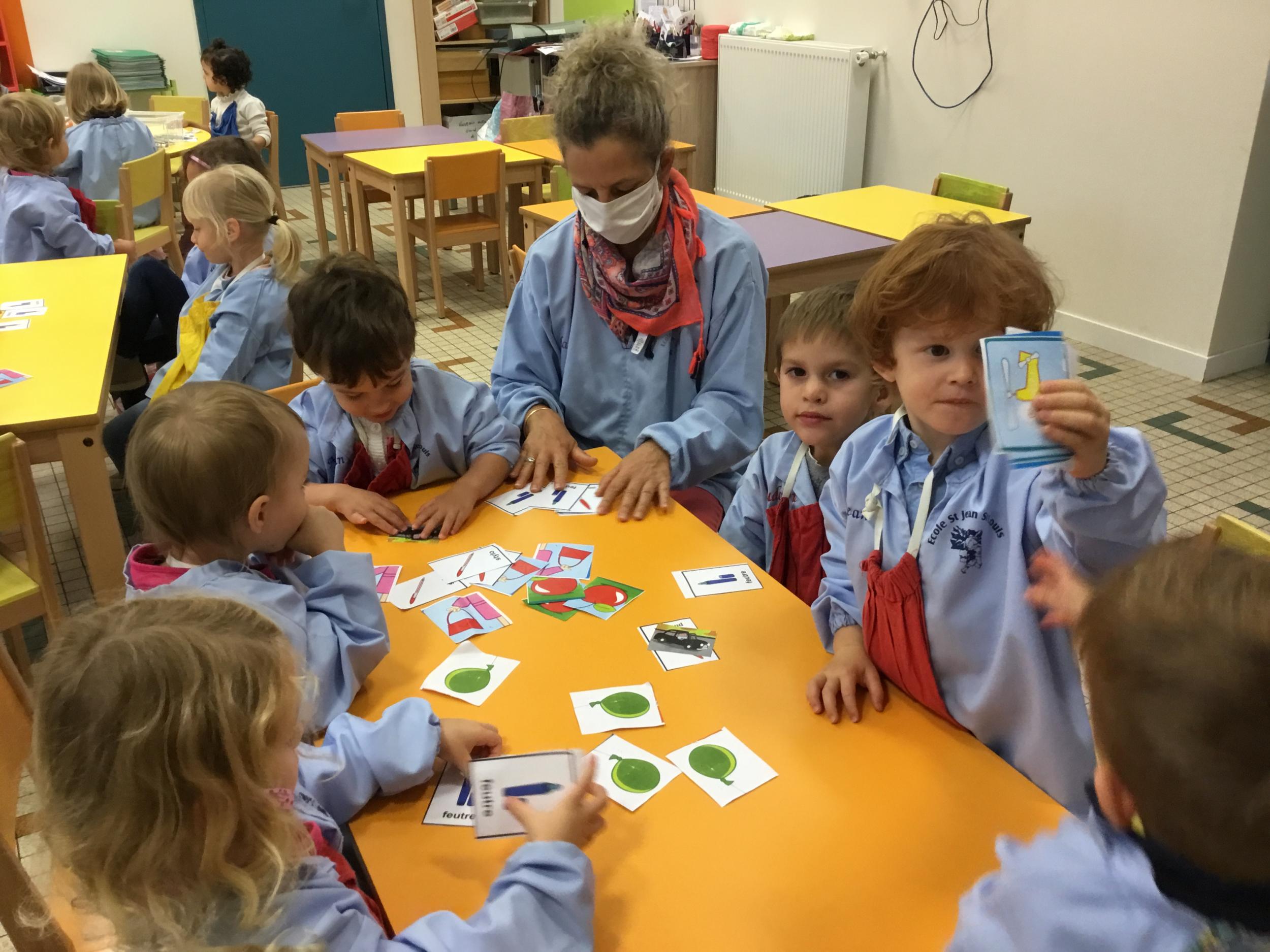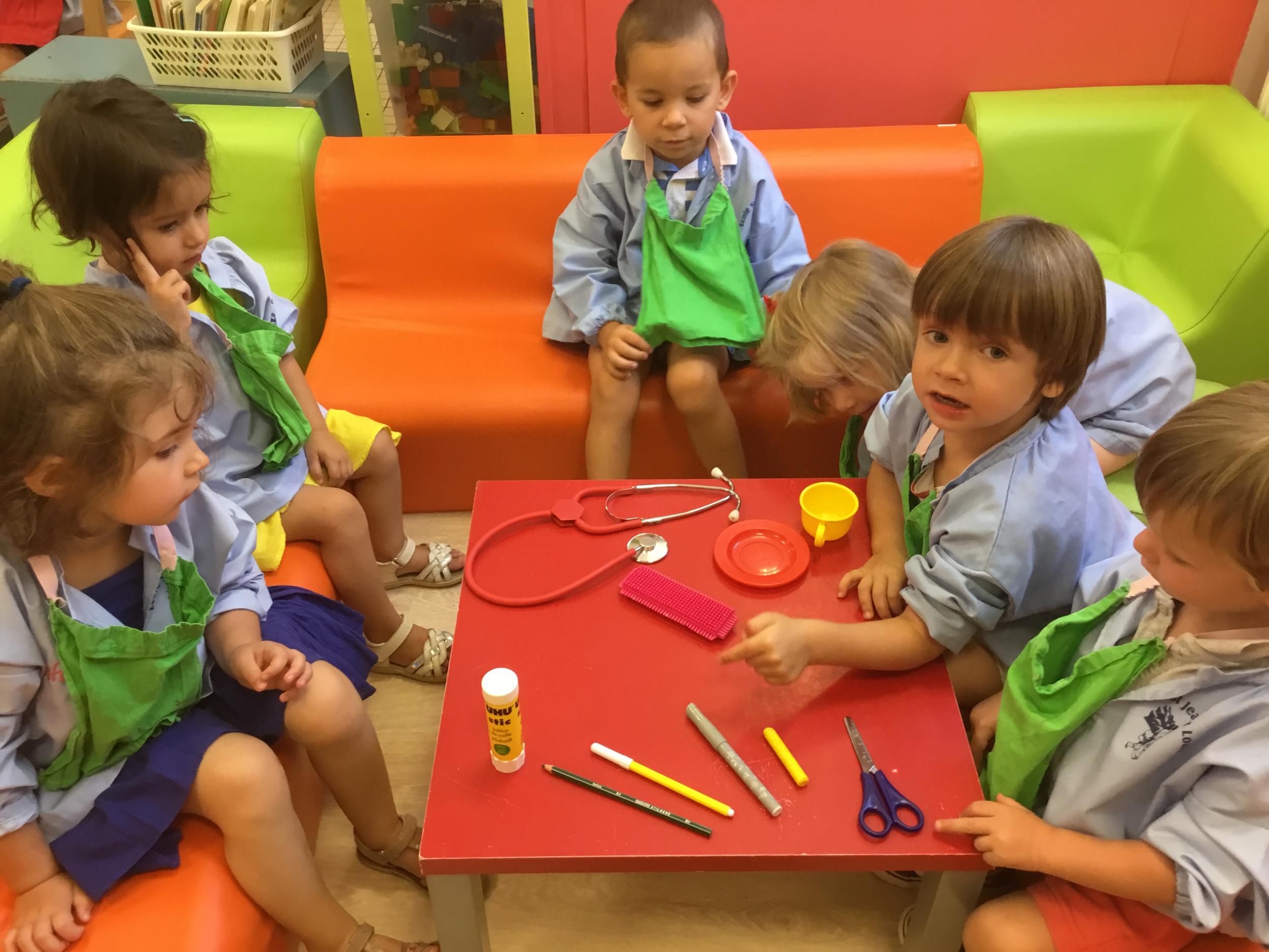 Après avoir nommé tout ce qu’ils voyaient sur les images, les élèves ont essayé de les trier, de les ranger. Nous avons découvert ensemble une famille , ou catégorie : celle des outils de la classe.