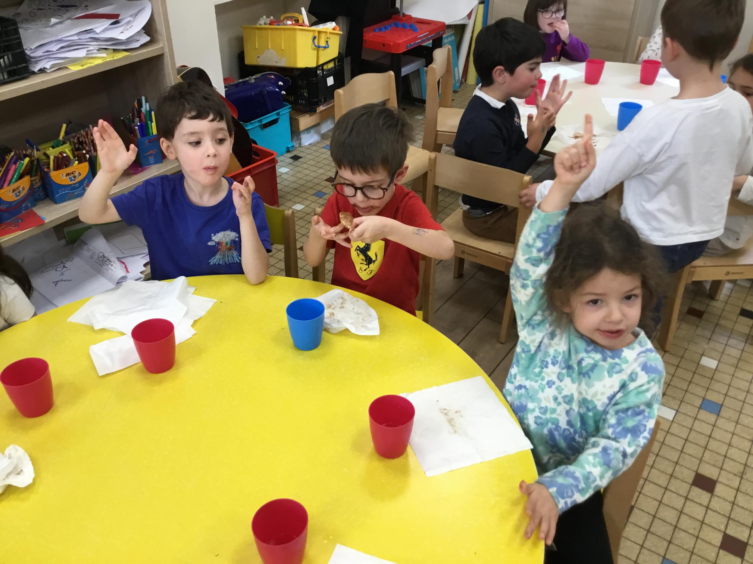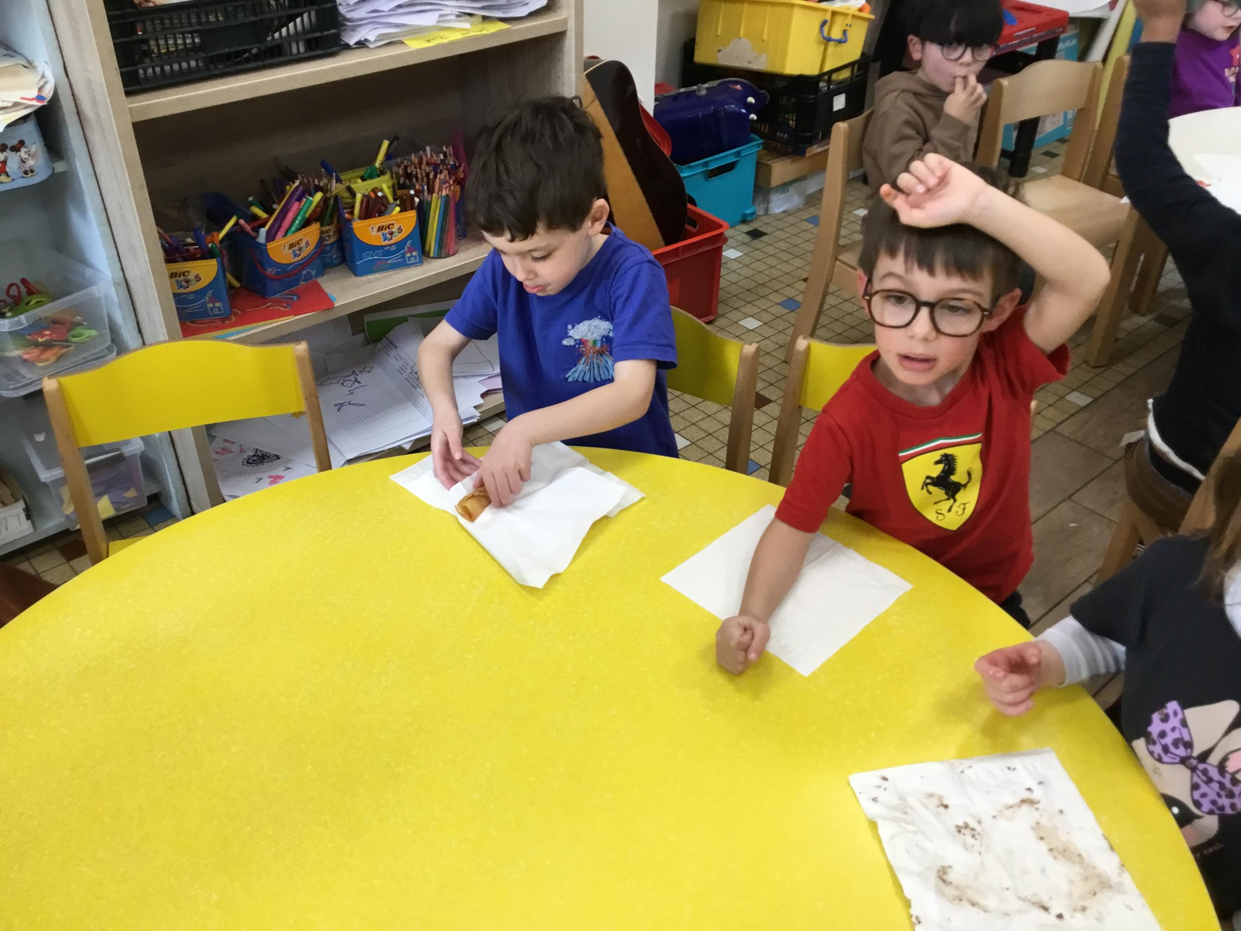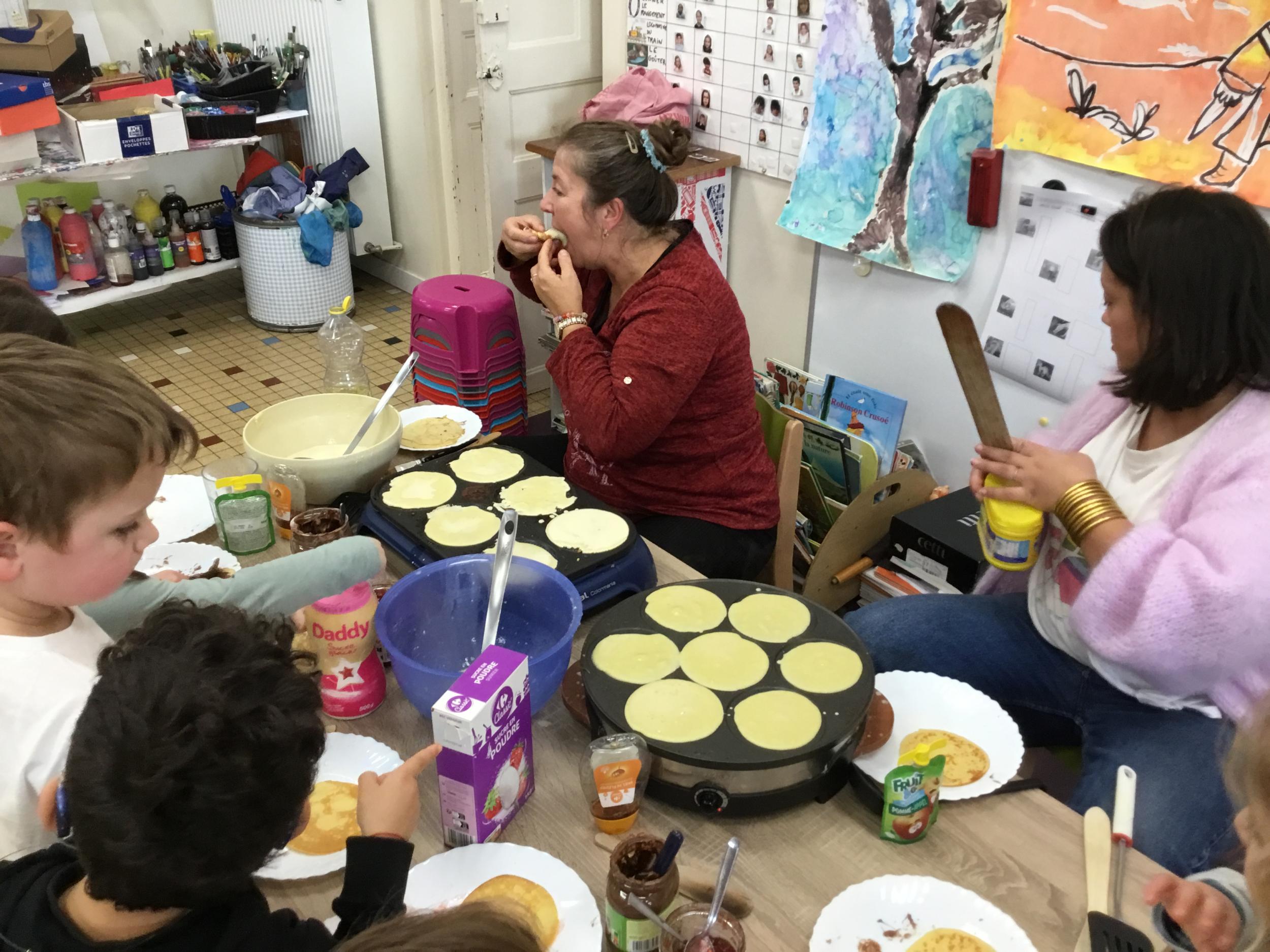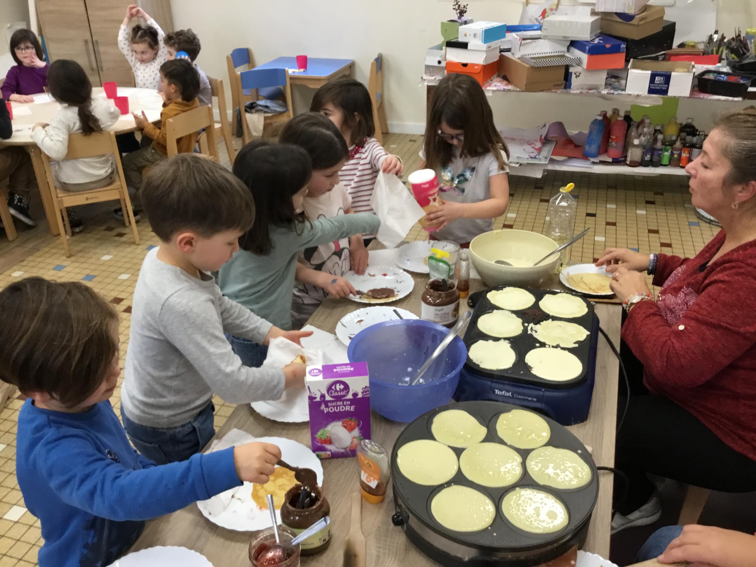 Petite et moyenne section 08/02/2025 Vendredi dernier, nous avons fêté la chandeleur. Au programme, préparation et apprentissages de la recette de la pâte à crêpes le matin et cuisson et dégustation d’après- midi. Nous nous sommes régalés, merci aux mamans et à Marion pour leur aide.