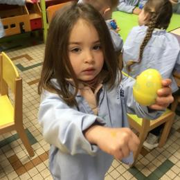 28/03/2025 Dans la classe, nous avons fait une chasse à l’œuf… Il s’agissait pour chaque élève de retrouver un œuf de la couleur que lui avait indiqué la maîtresse. Un grand moment de jeu et de joie .