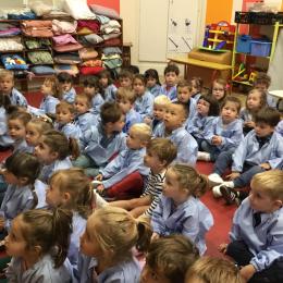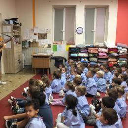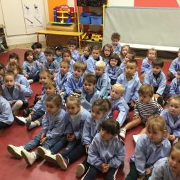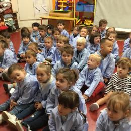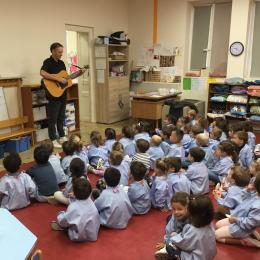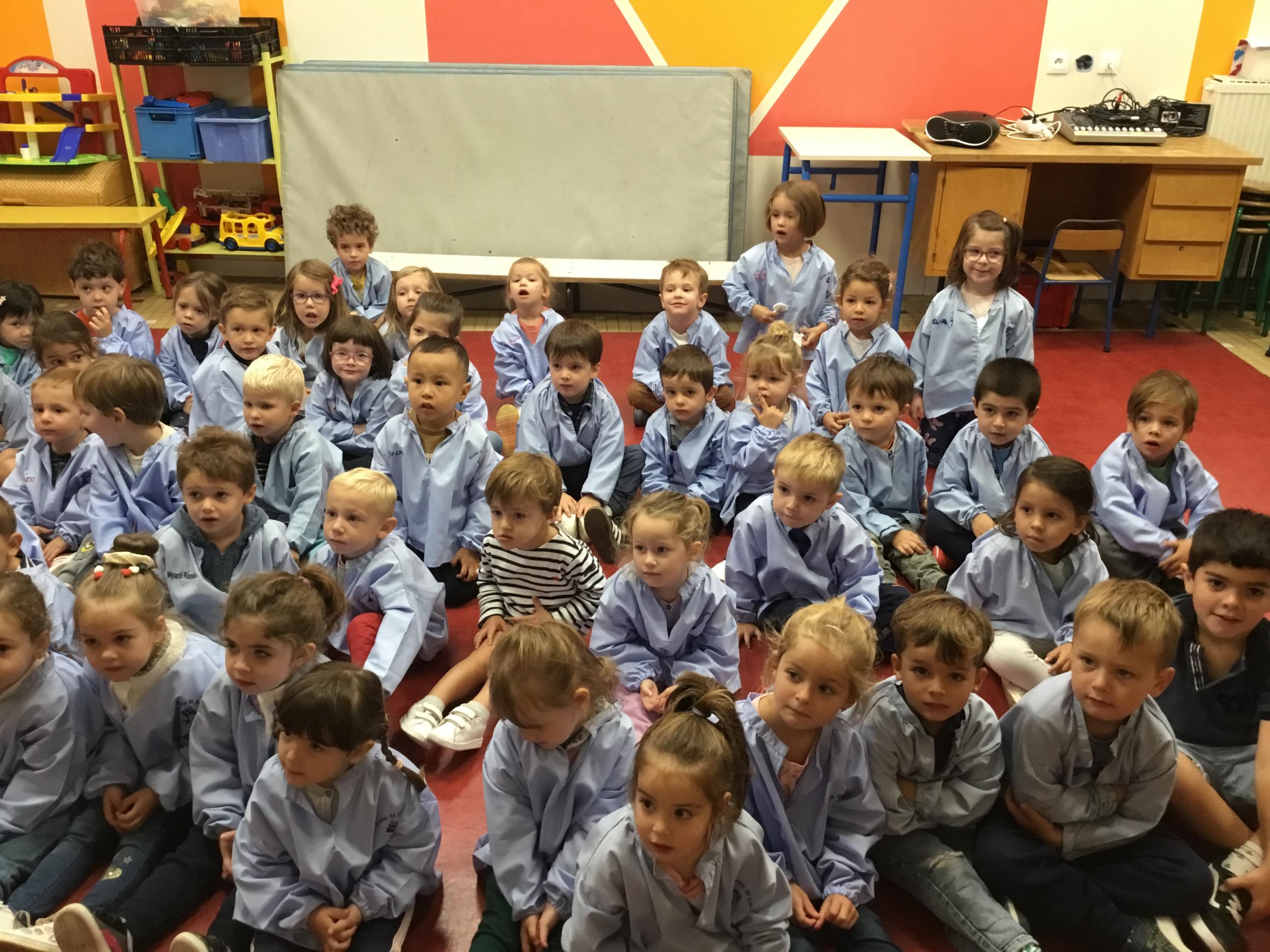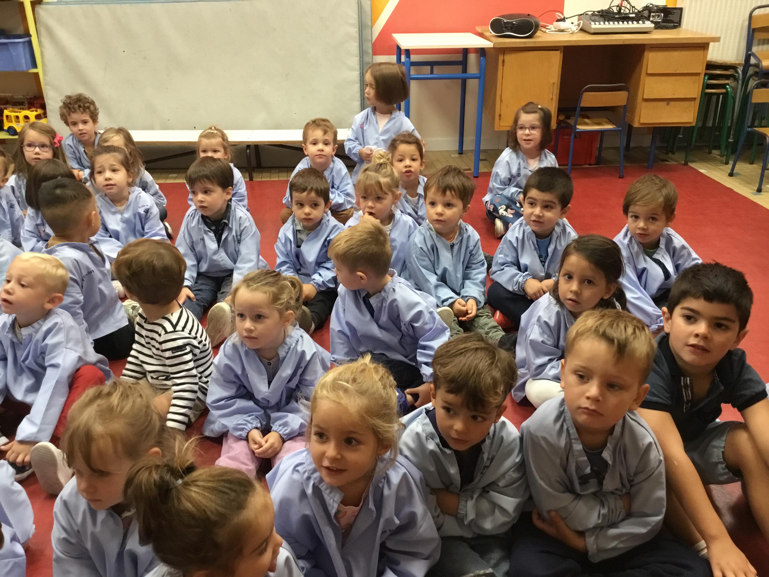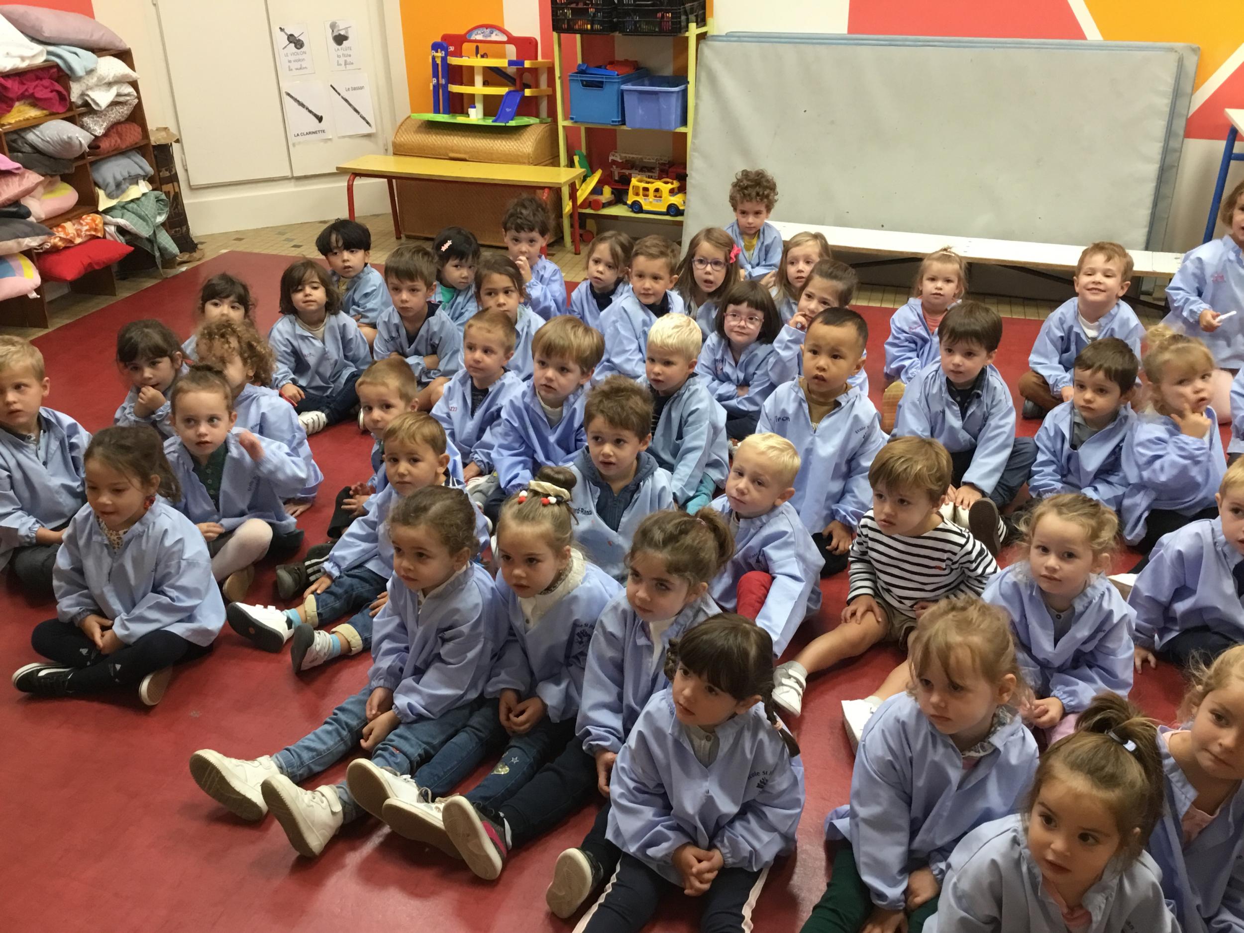 Petite et moyenne section 20/09/2024 Tous les vendredis , nous nous retrouverons pour chanter avec la classe des moyens. Les petits étaient ravis de découvrir la guitare du maître.